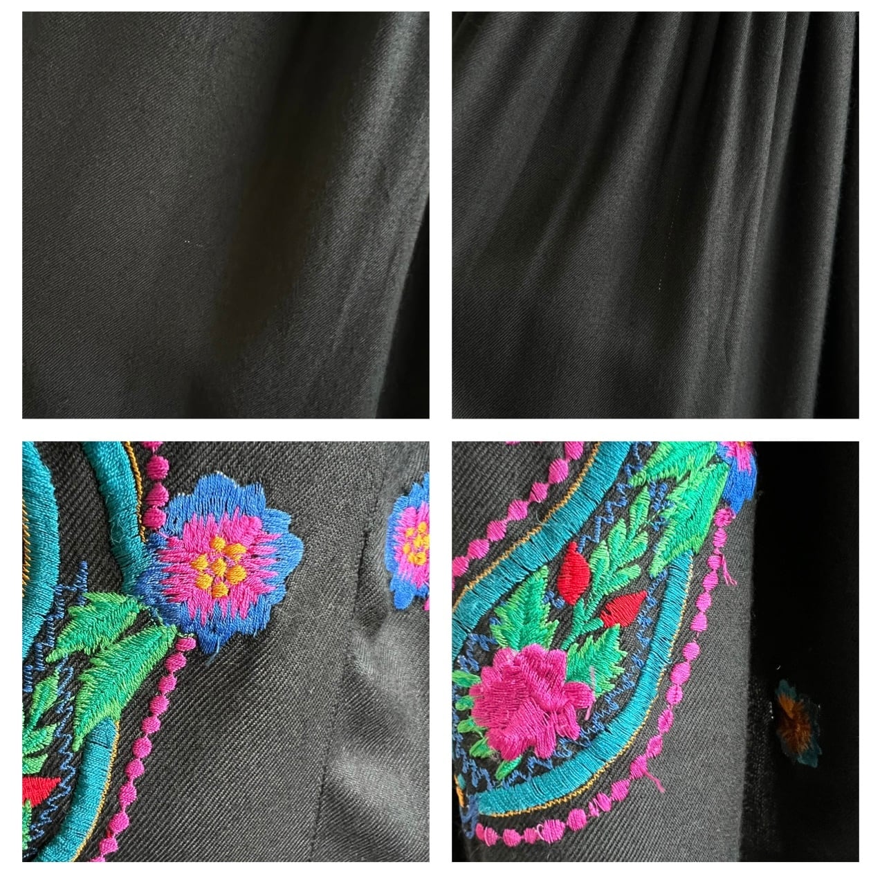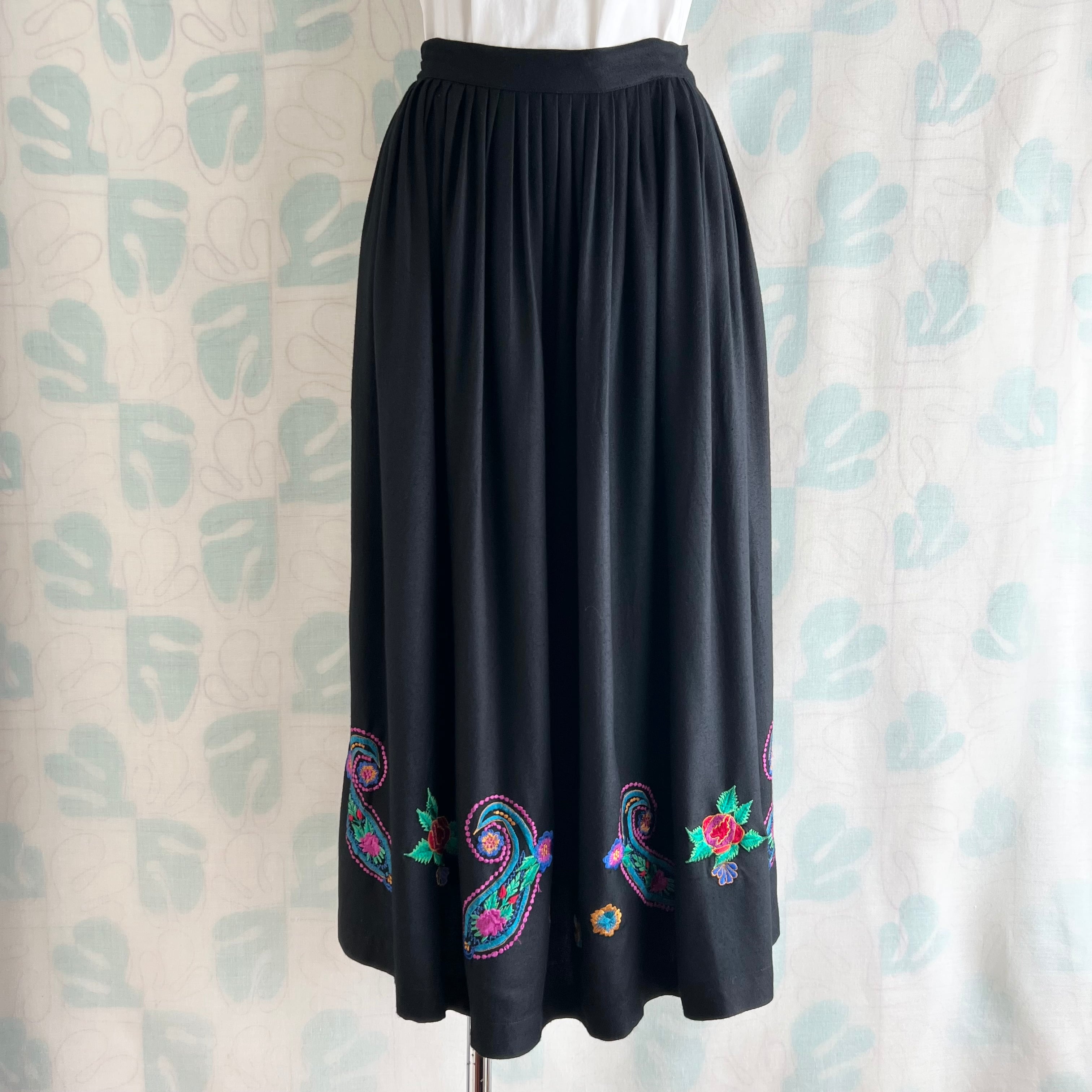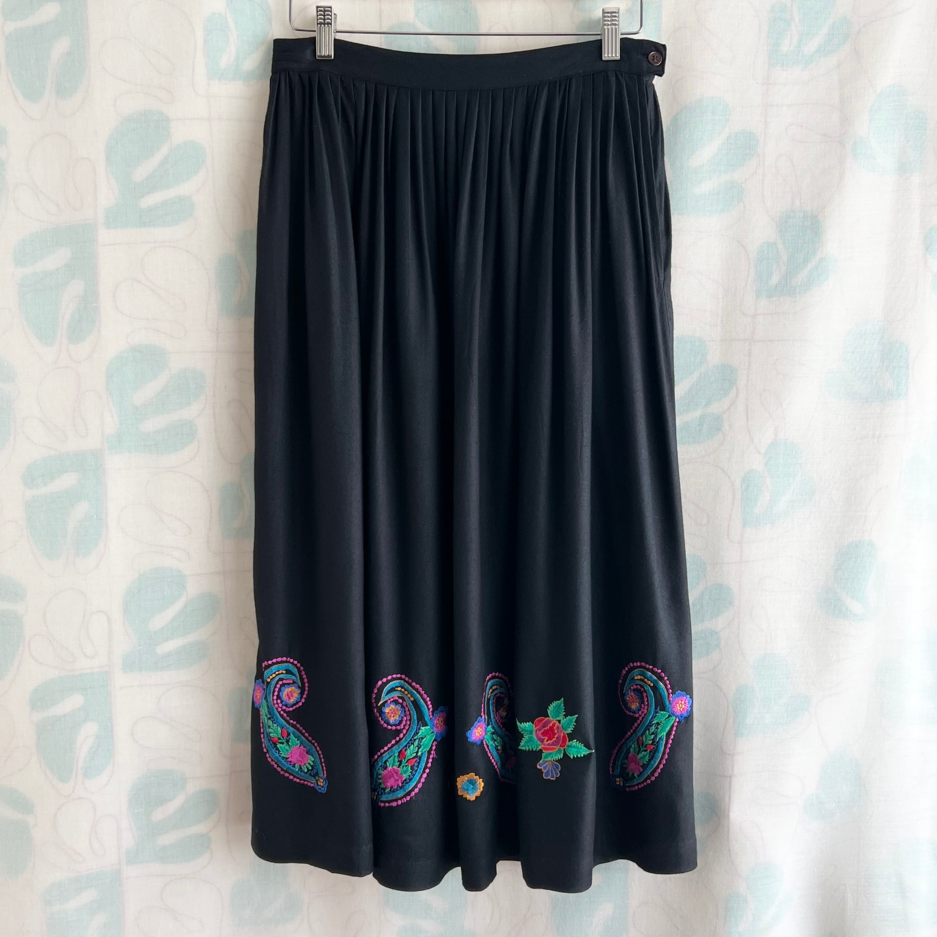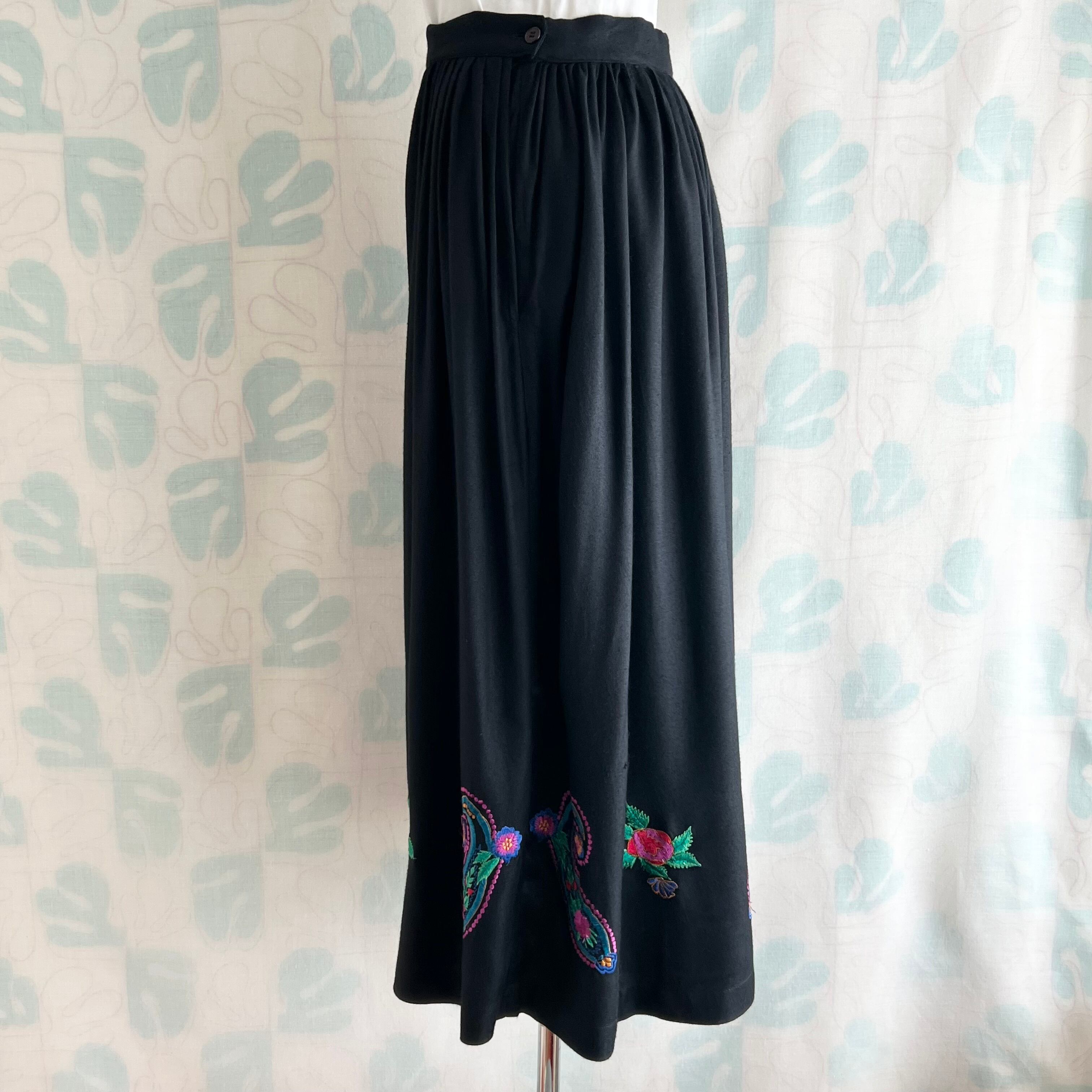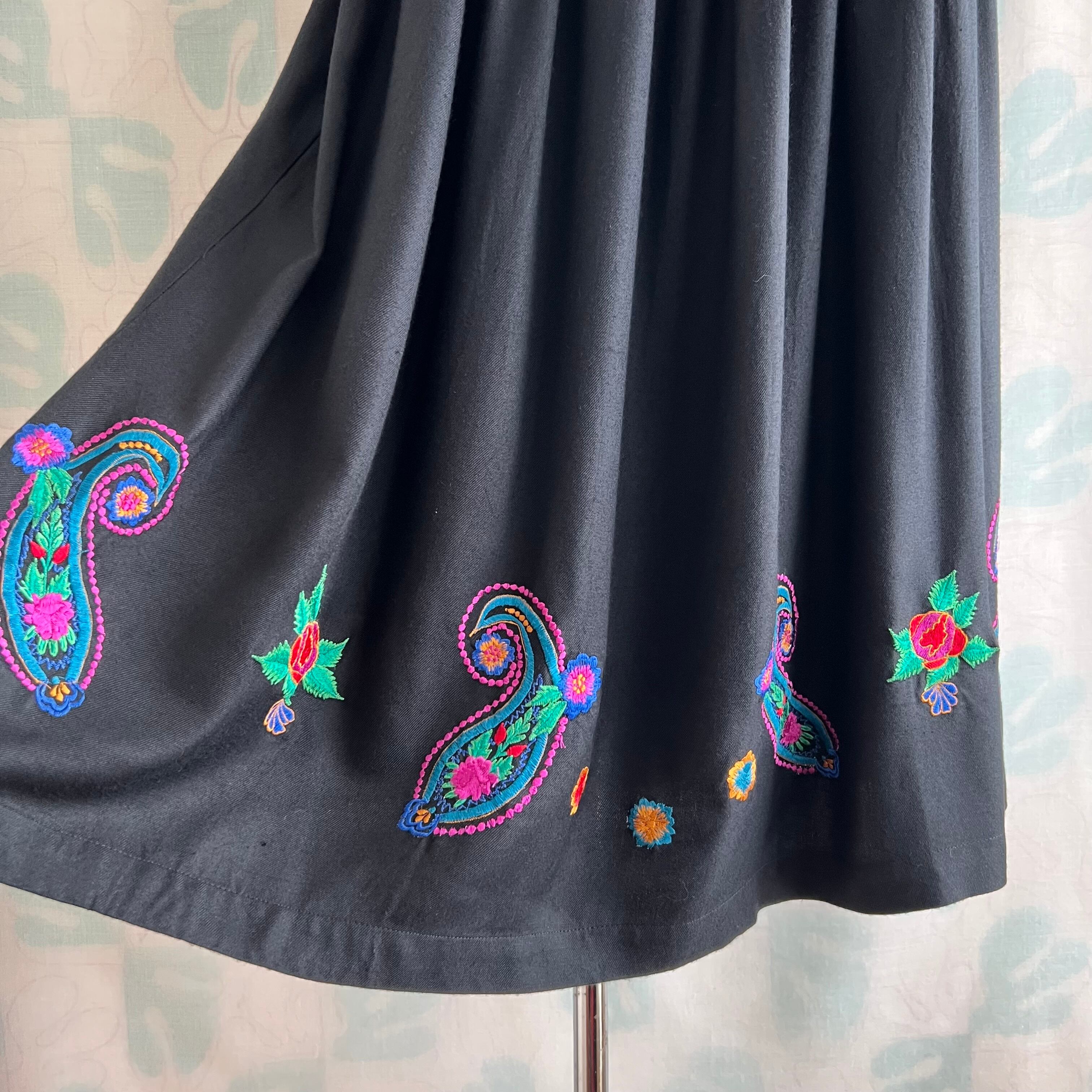 vintage カラフル刺繍ブラックロングスカート。