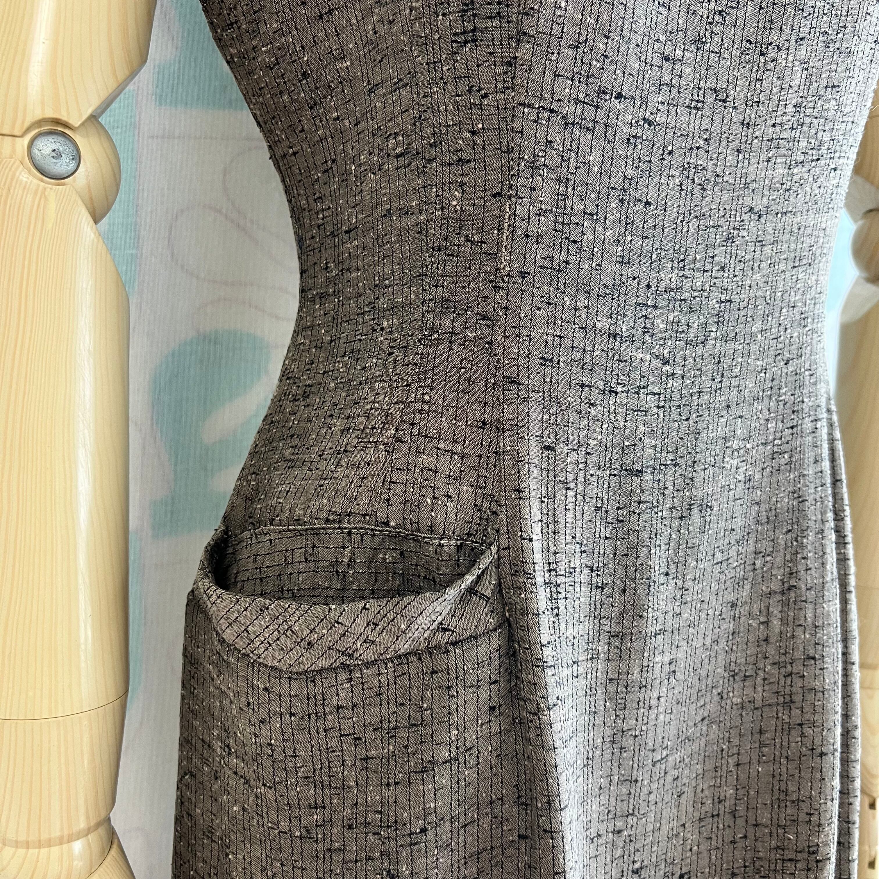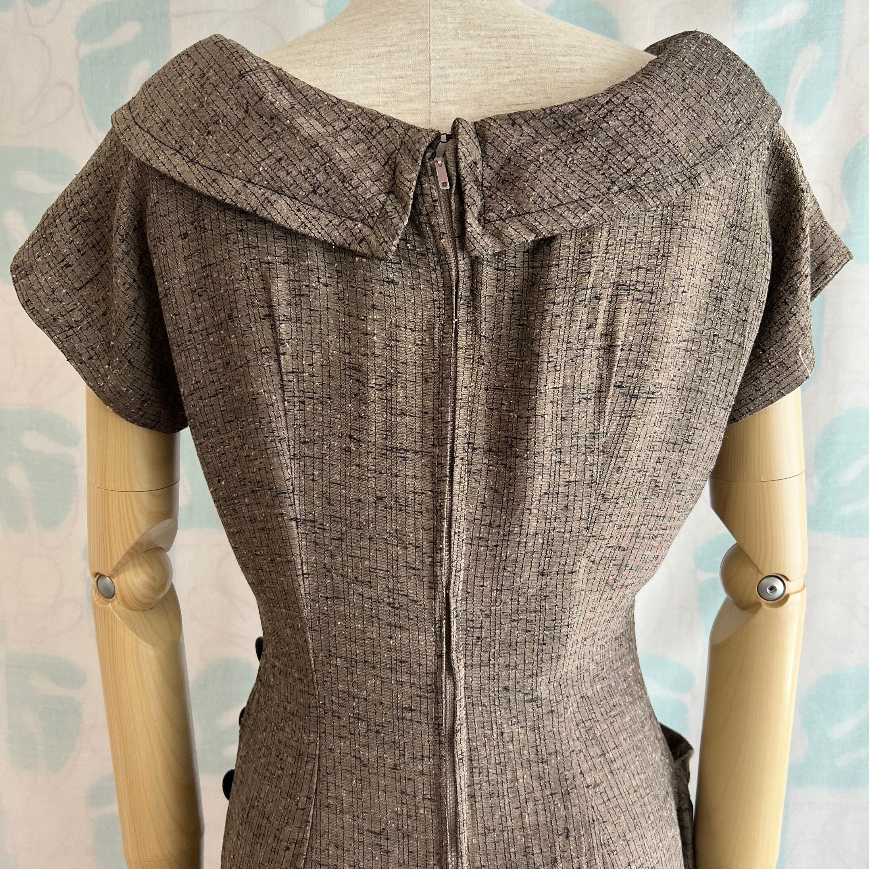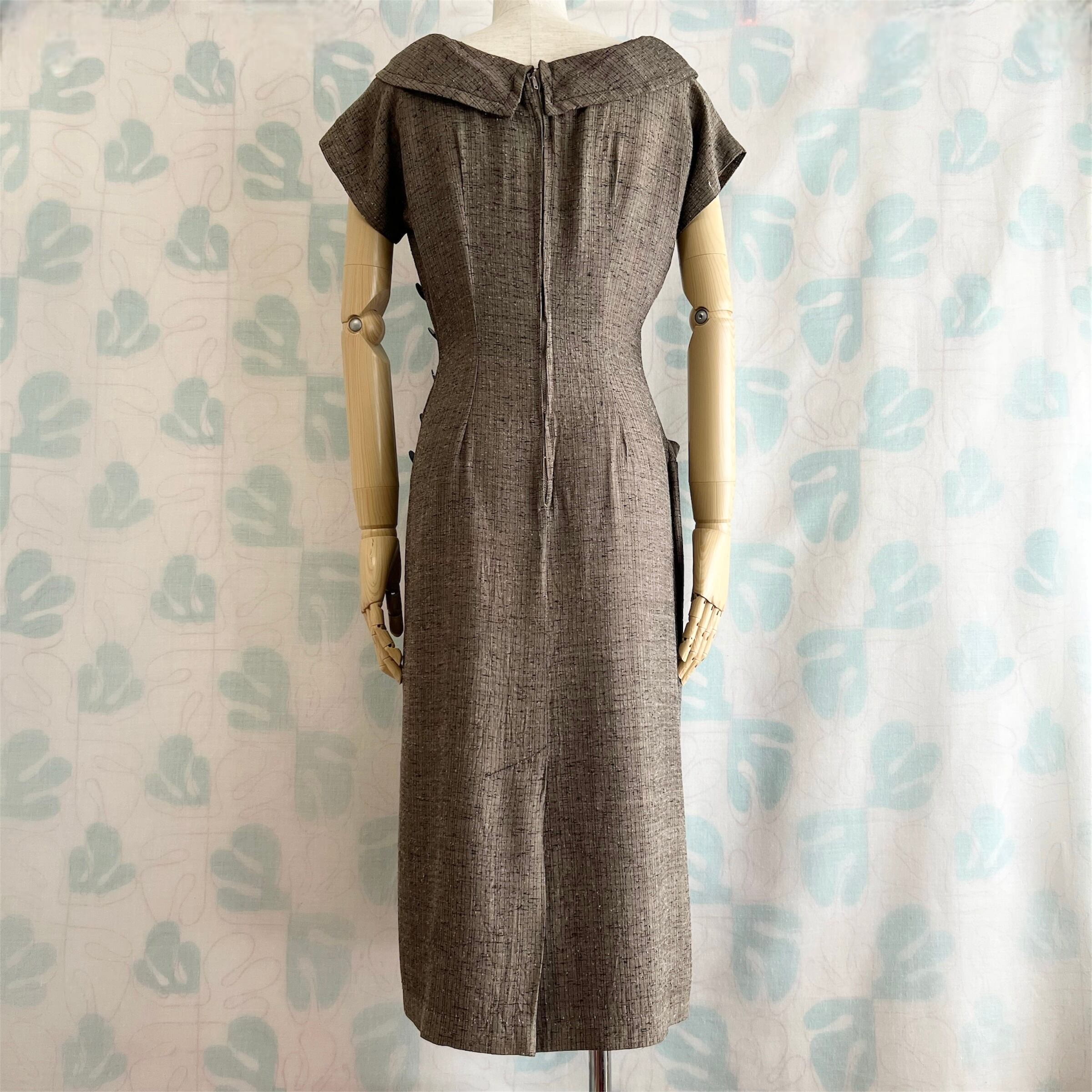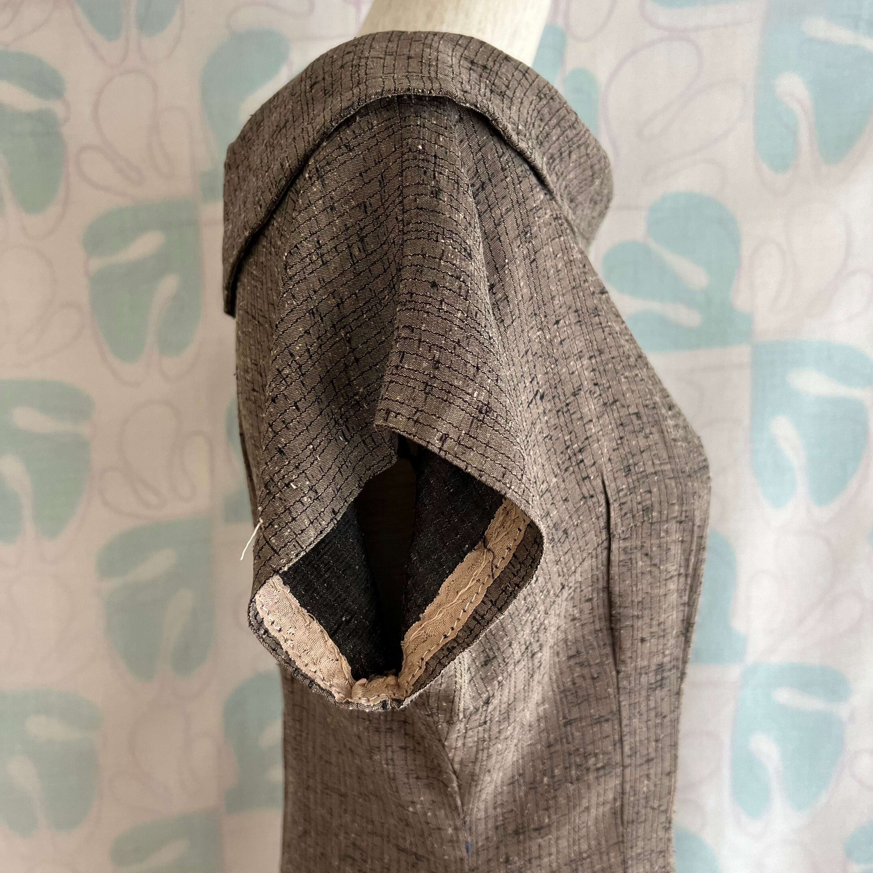 50's ブラウン ロールカラー フレンチスリーブドレス。