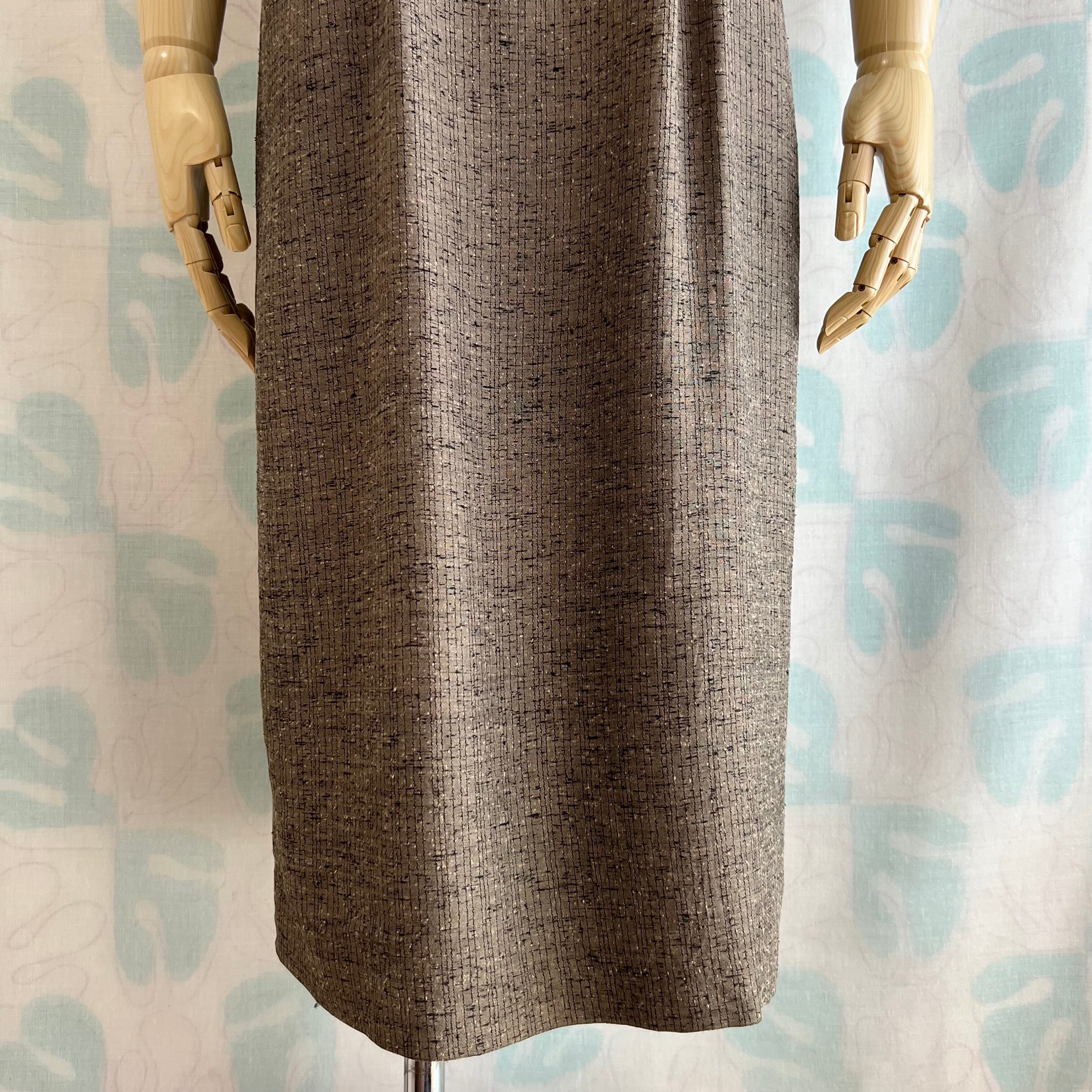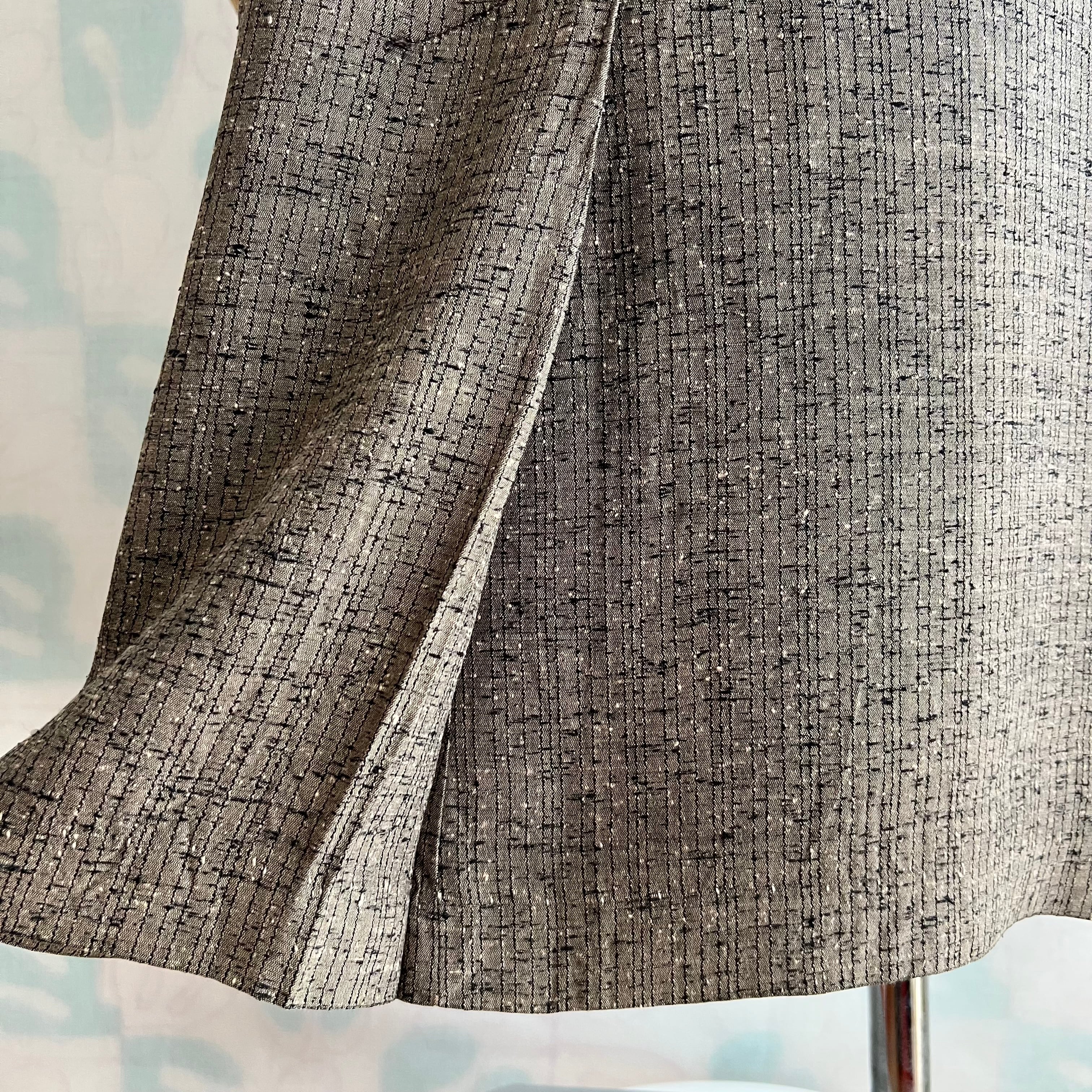 スカートは長めのタイトシルエット。後ろの裾にタックが施されています。