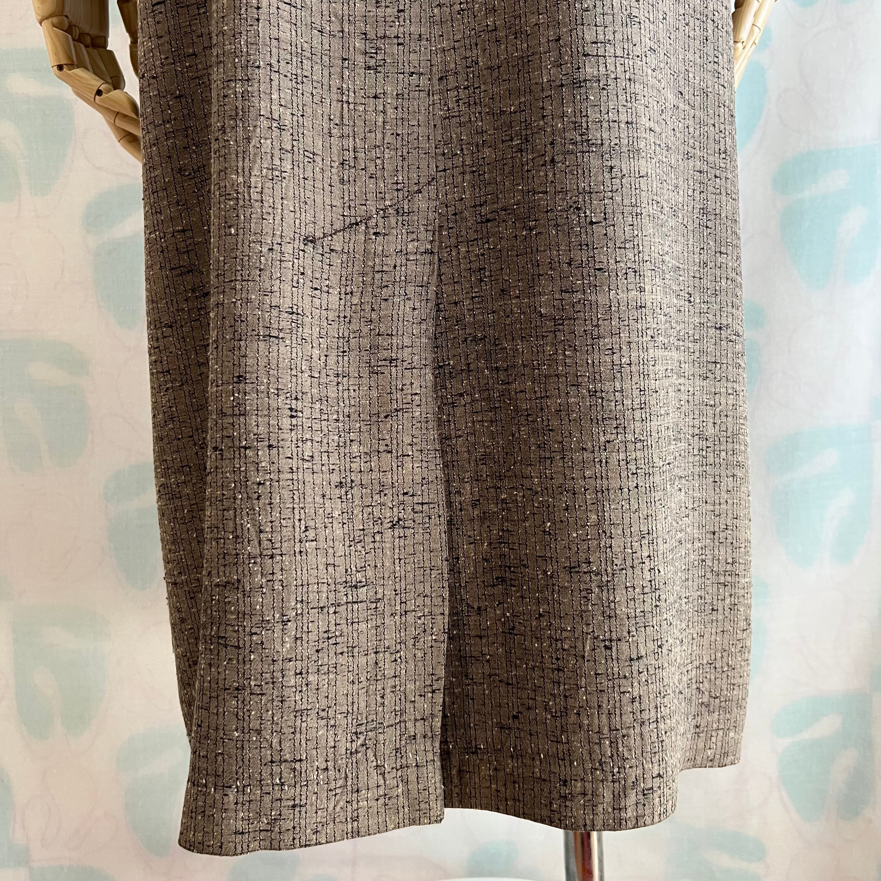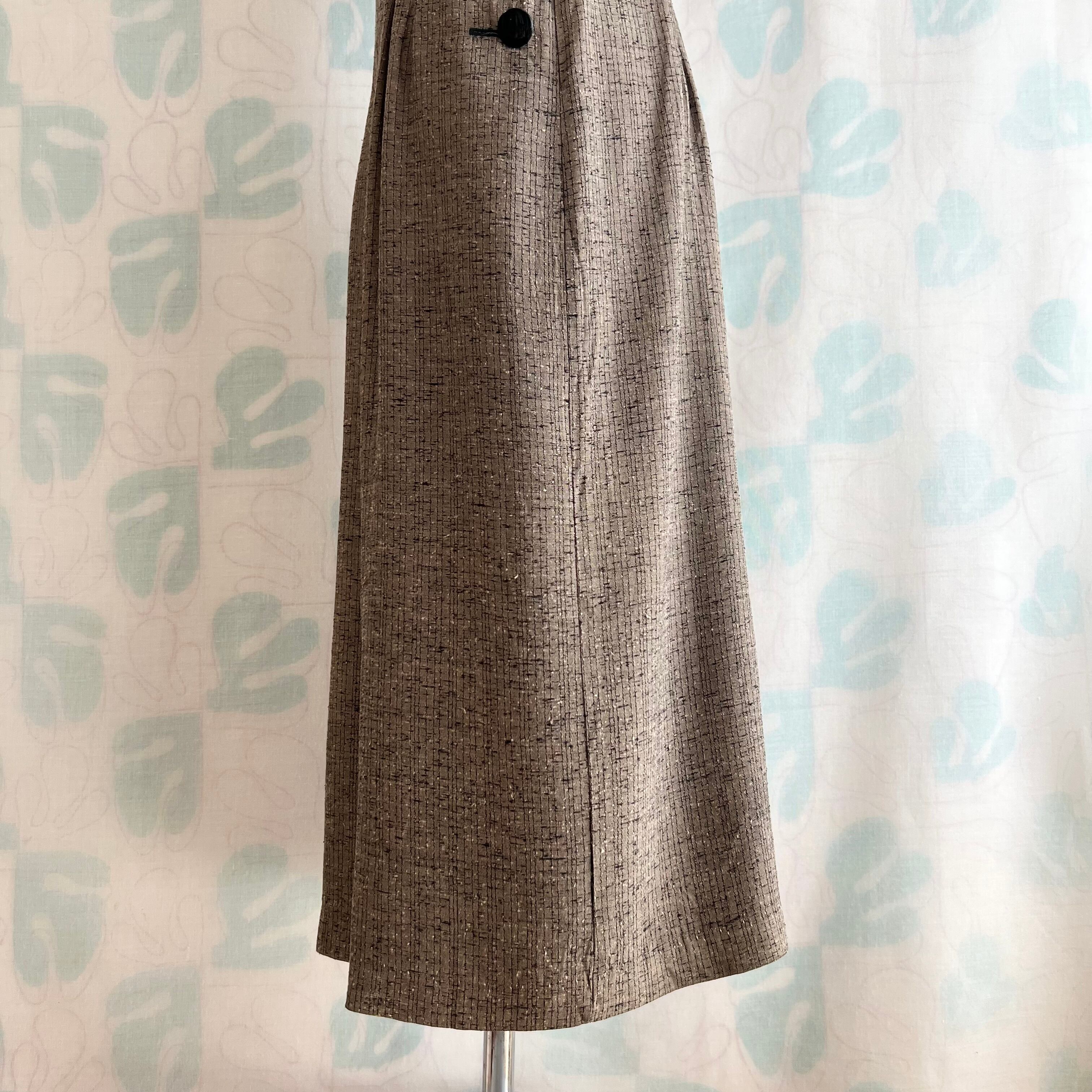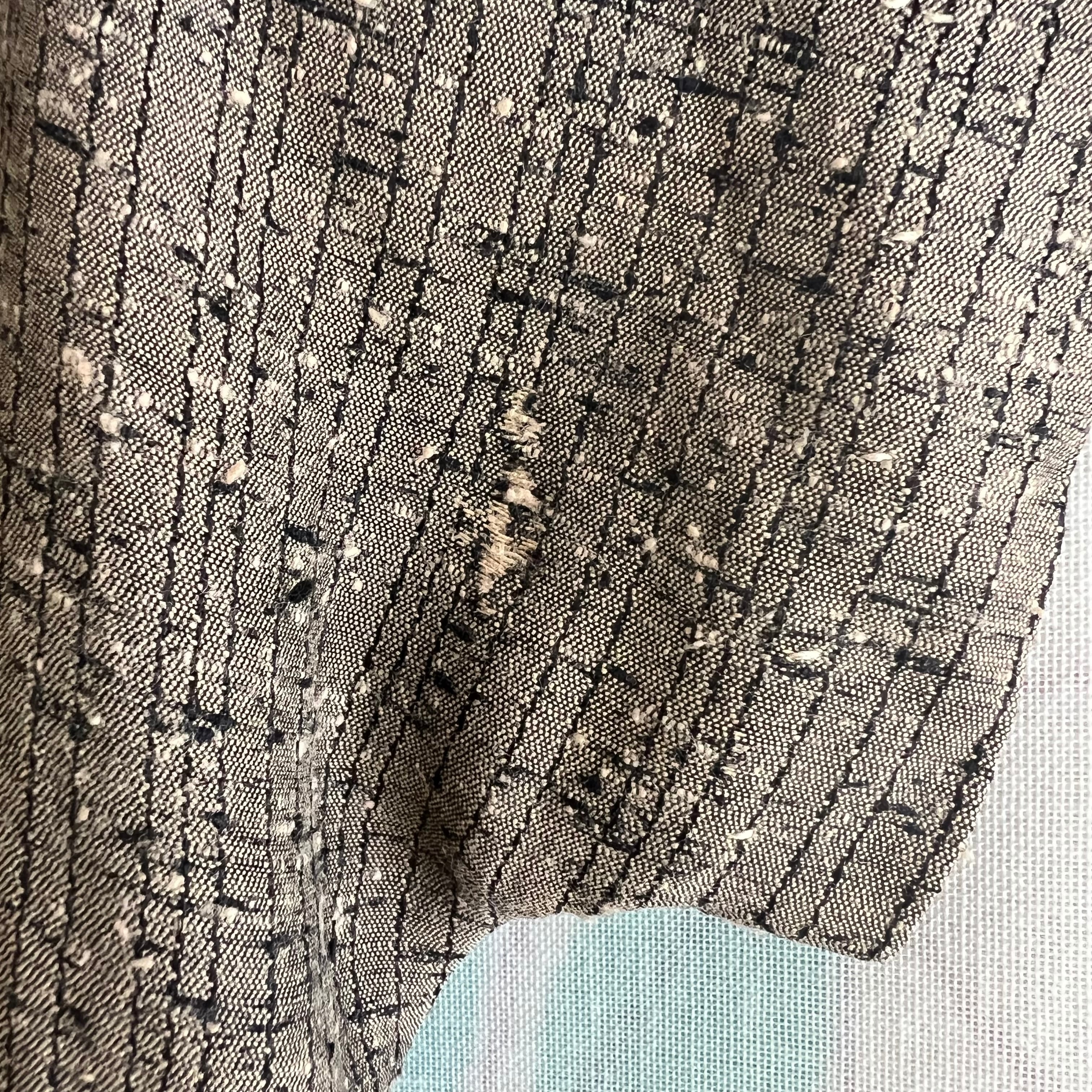 黒とベージュの糸がネップのように入った表情のあるレーヨン素材。柔らかい手触りで綺麗な落ち感の生地です。