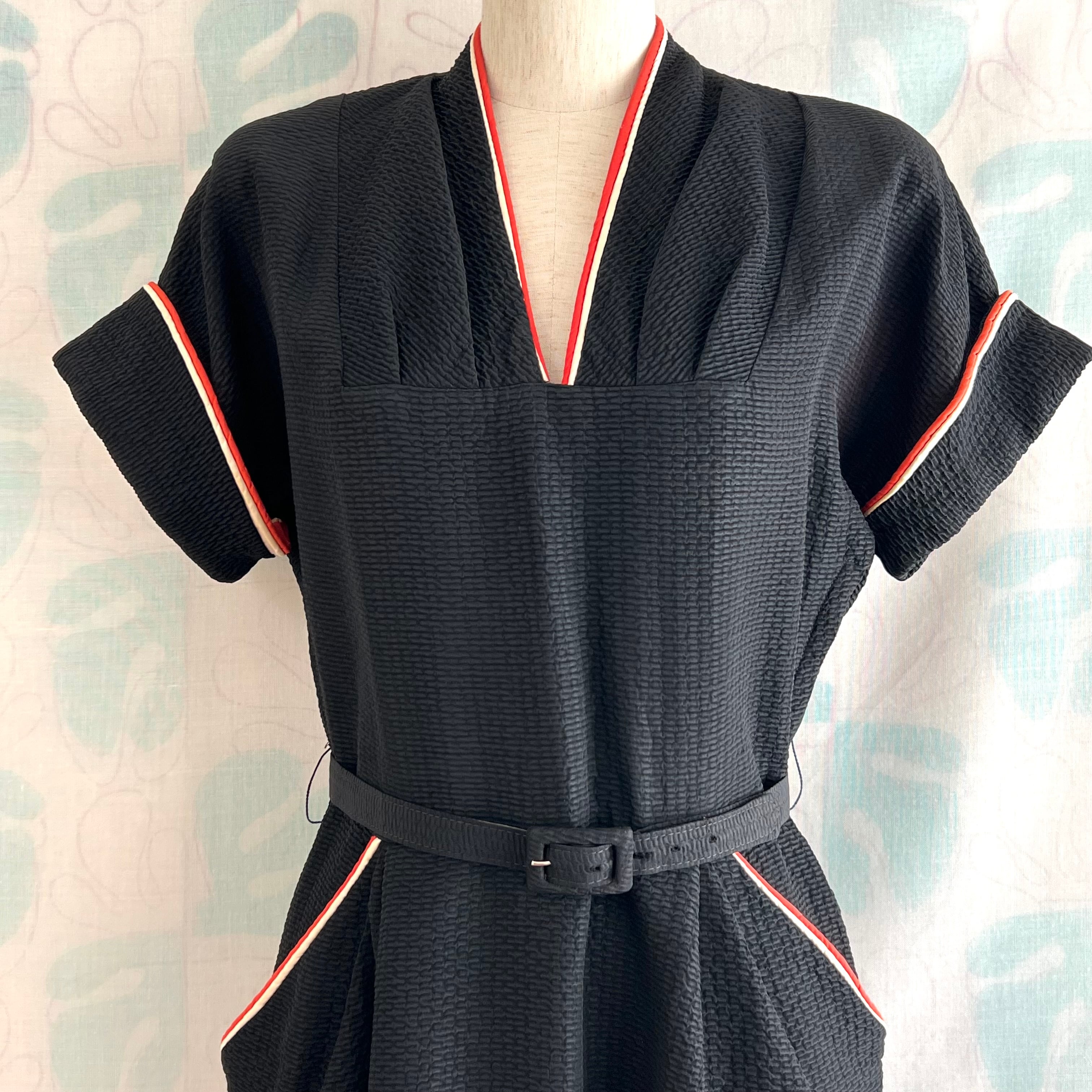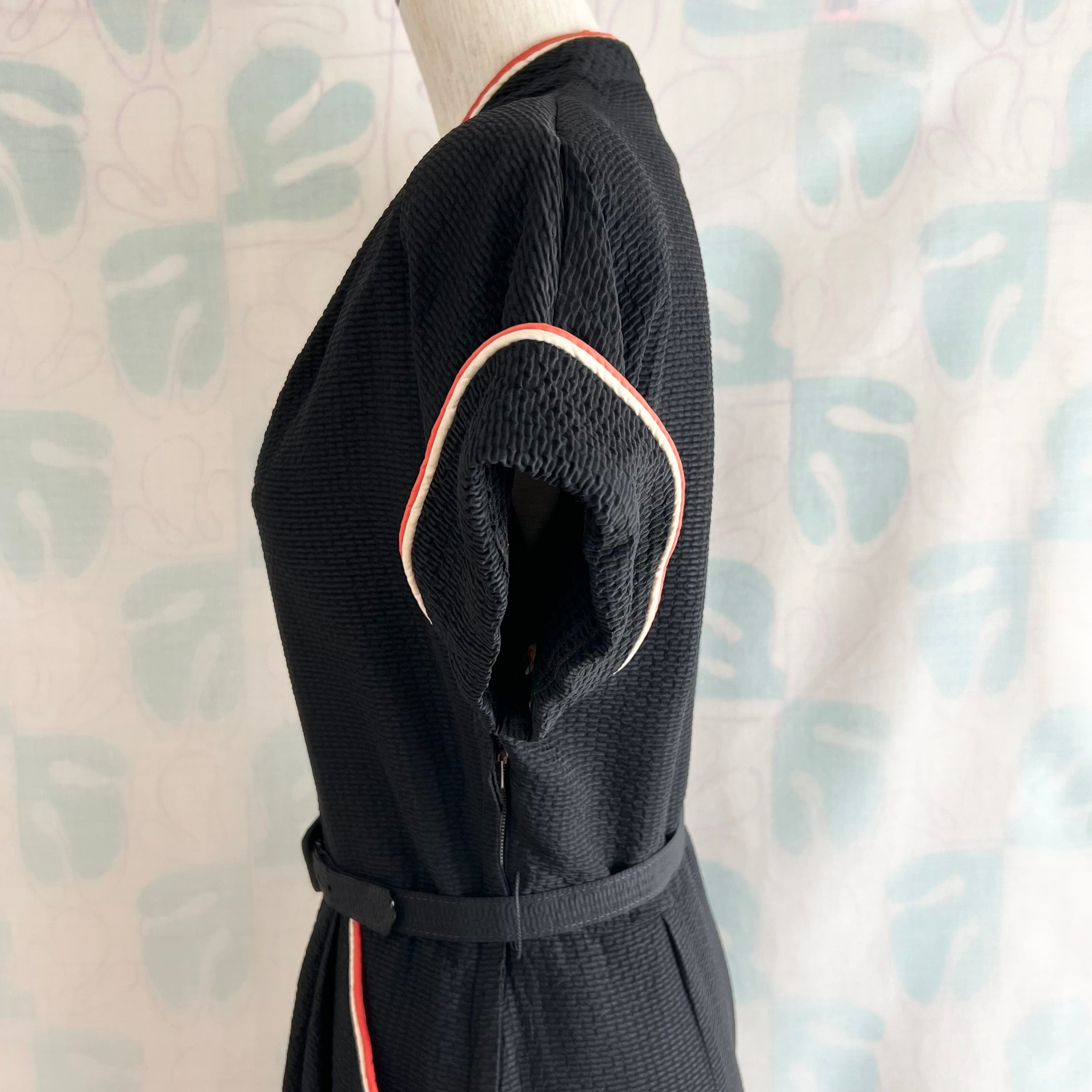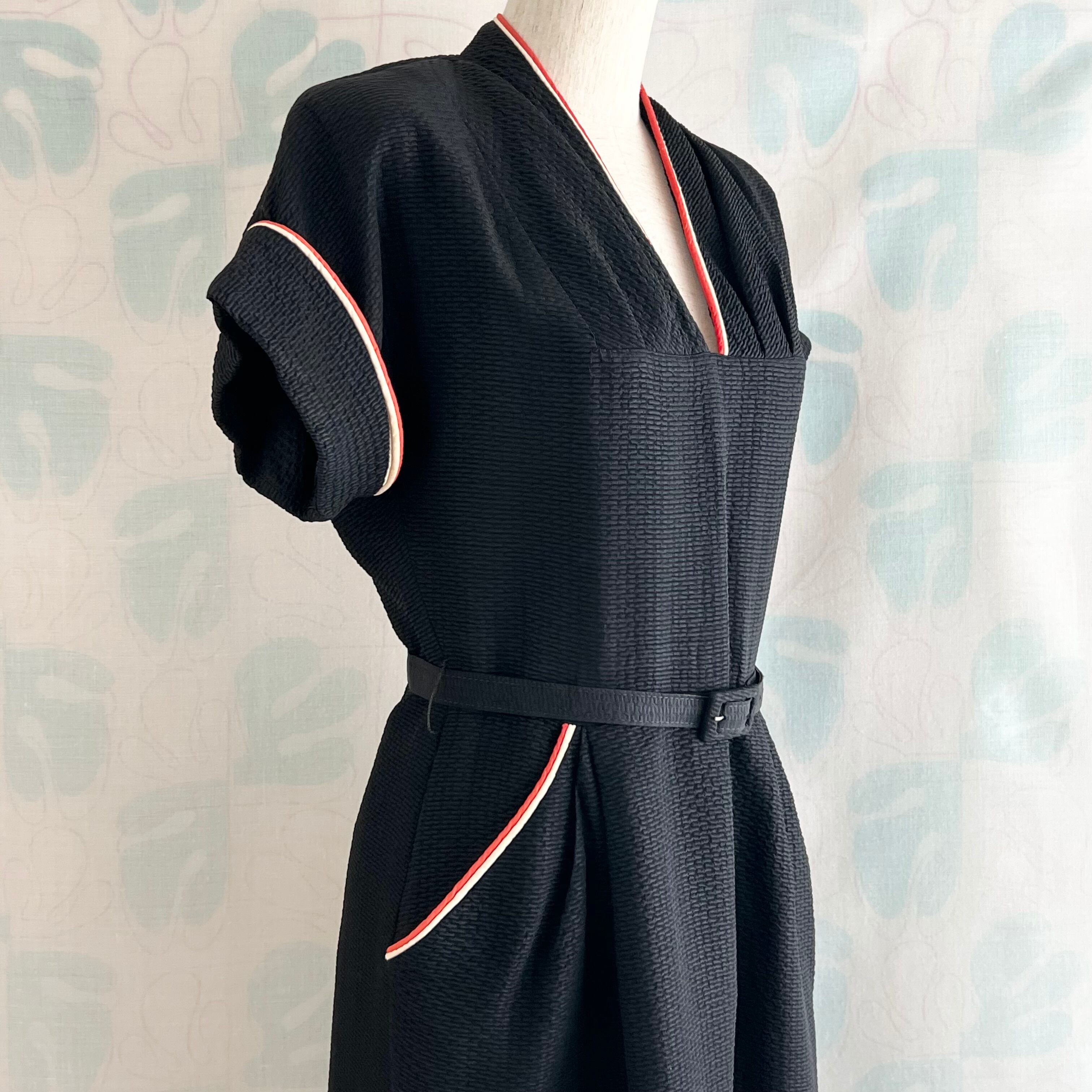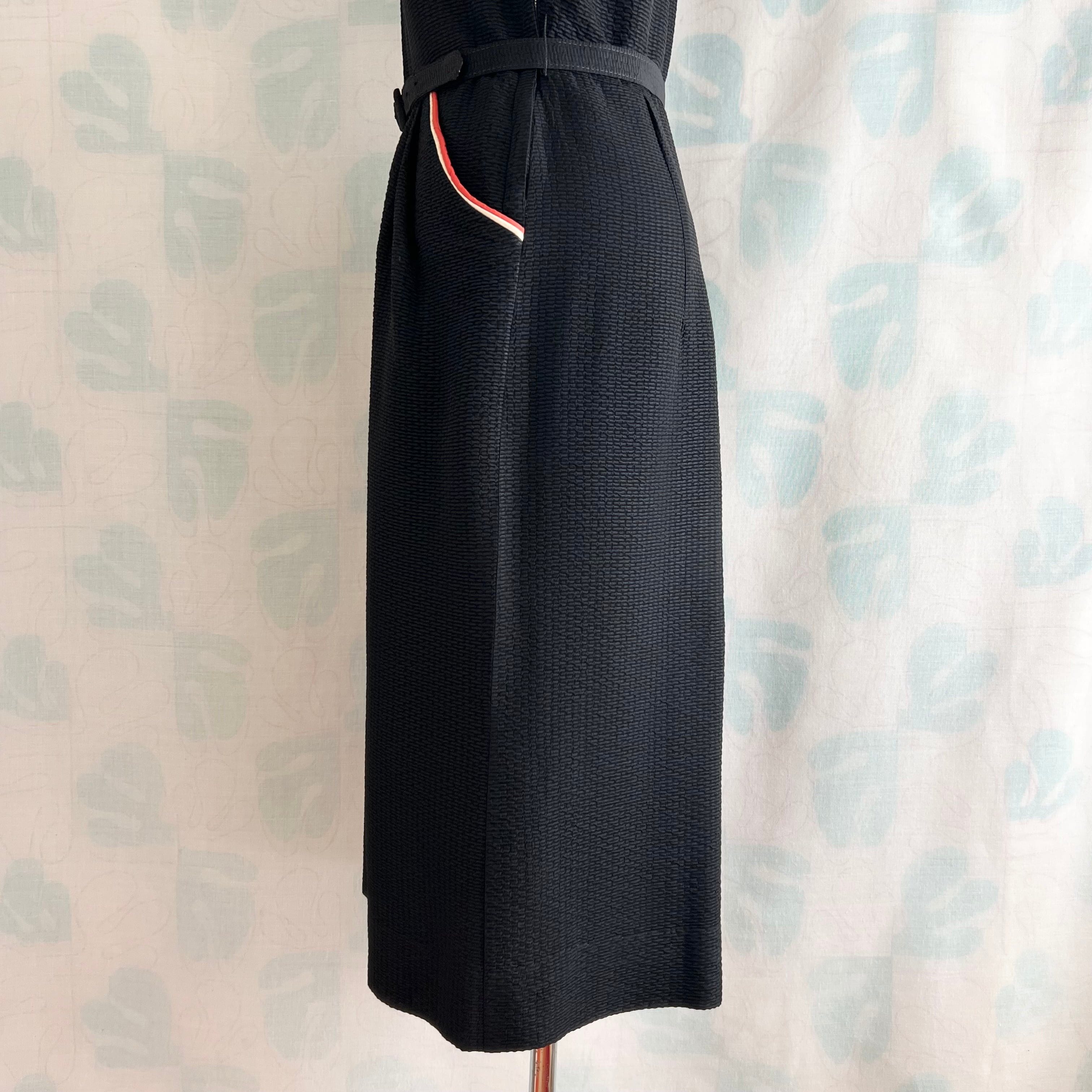 40's〜50's black tight dress with belt