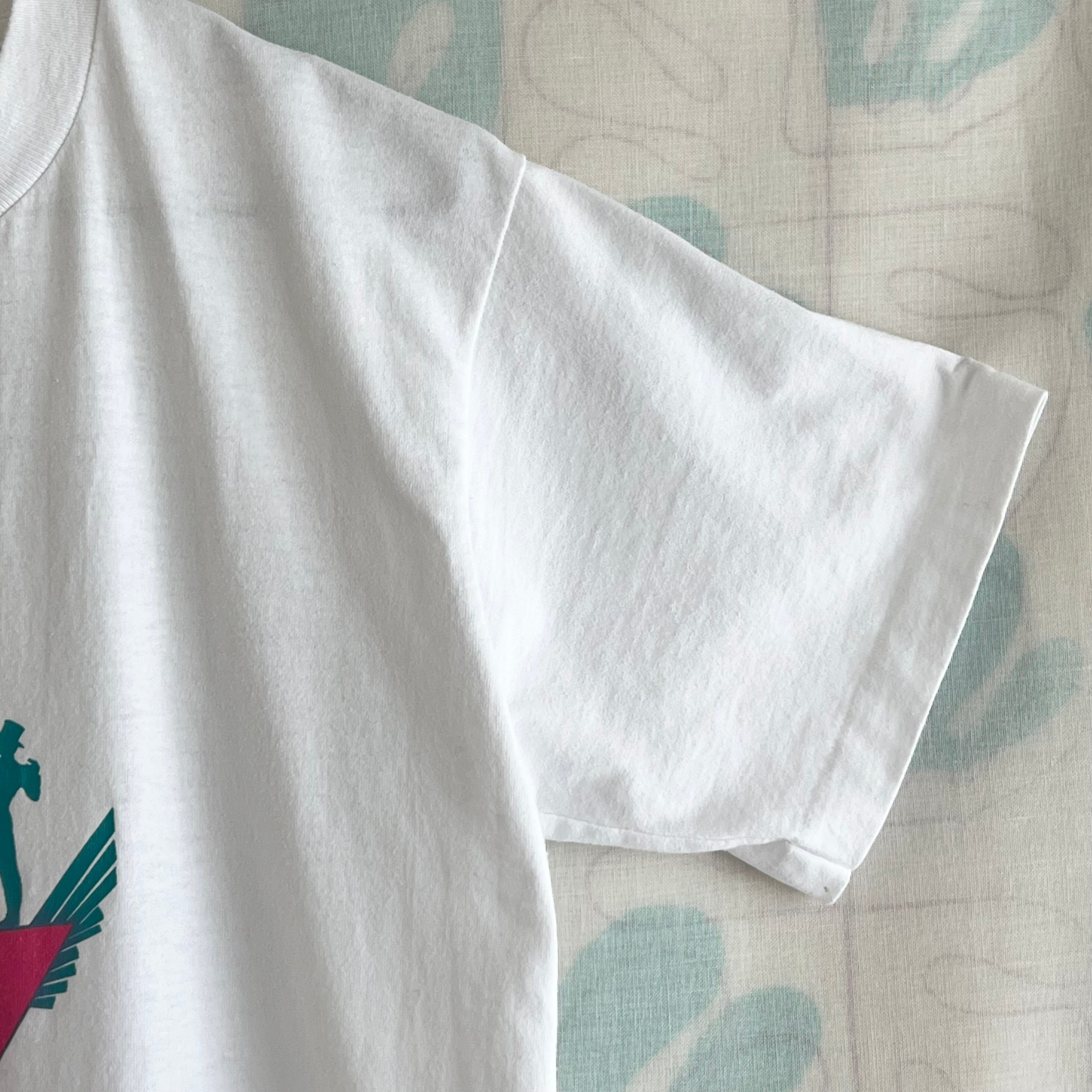 POPな色合いとブロードウェイをイメージさせるプリントが可愛いホワイトTシャツです。