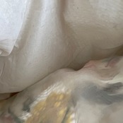 縫製の雑さや経年感は見られますが、繊細な素材の割には比較的キレイな状態と思います。