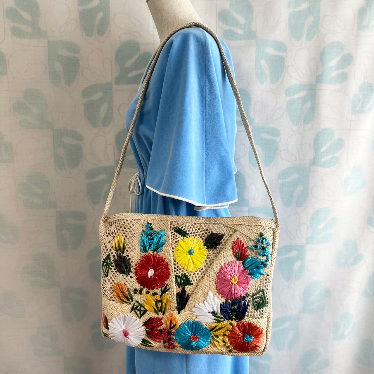 鮮やかな色味のお花刺繍が可愛すぎるショルダーバッグです。