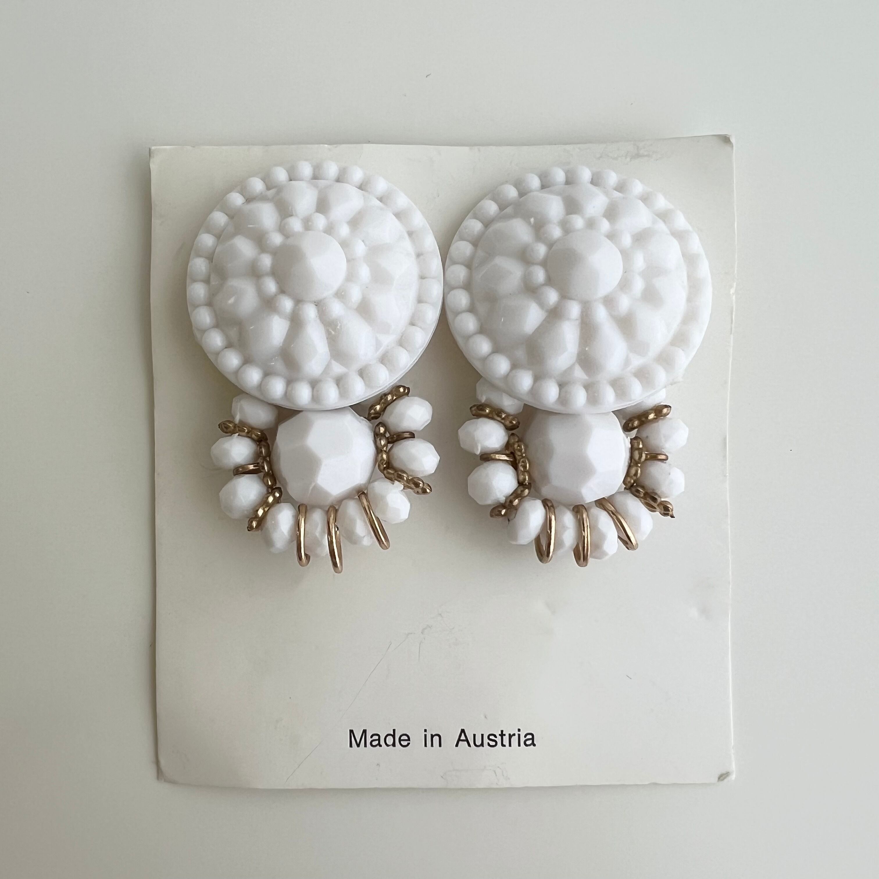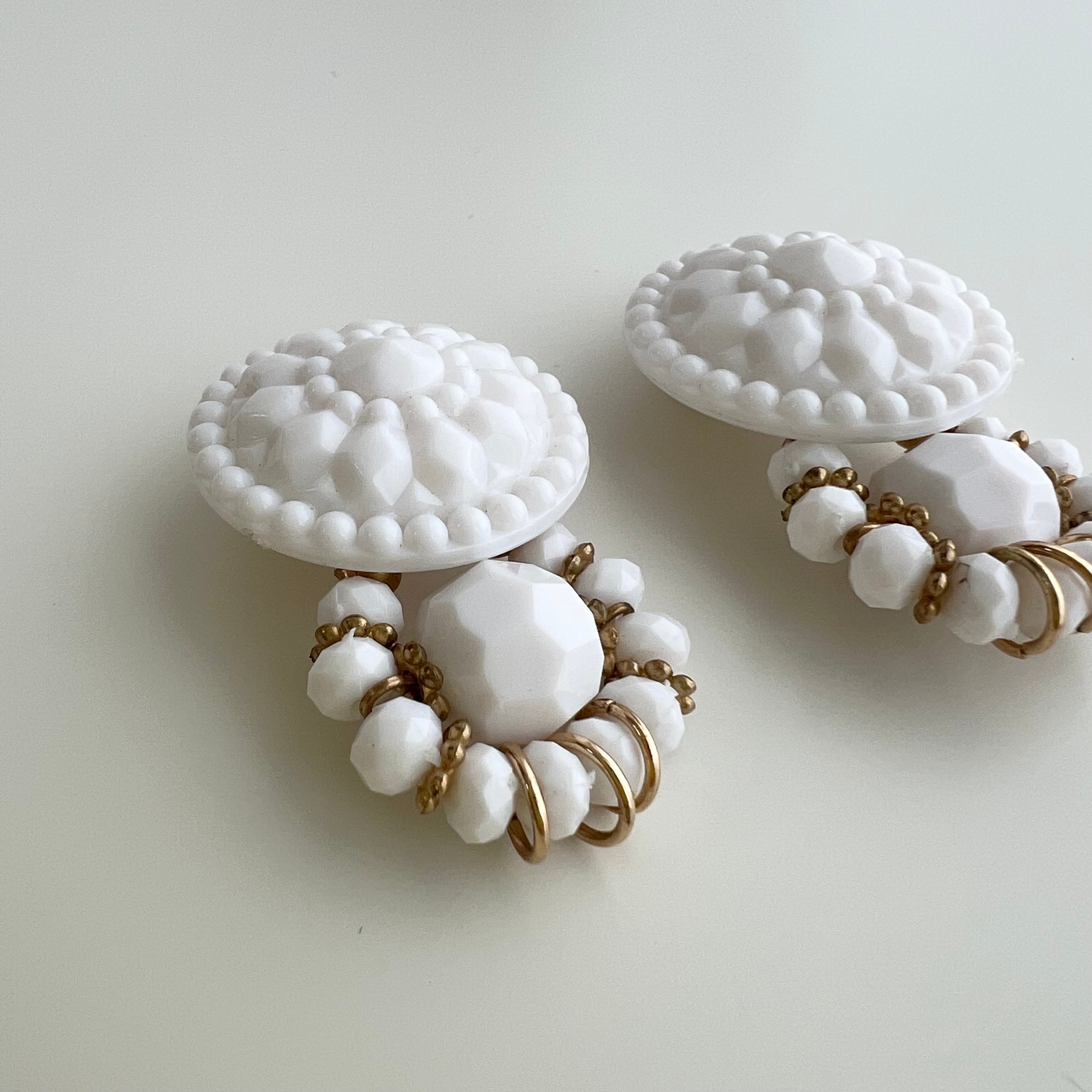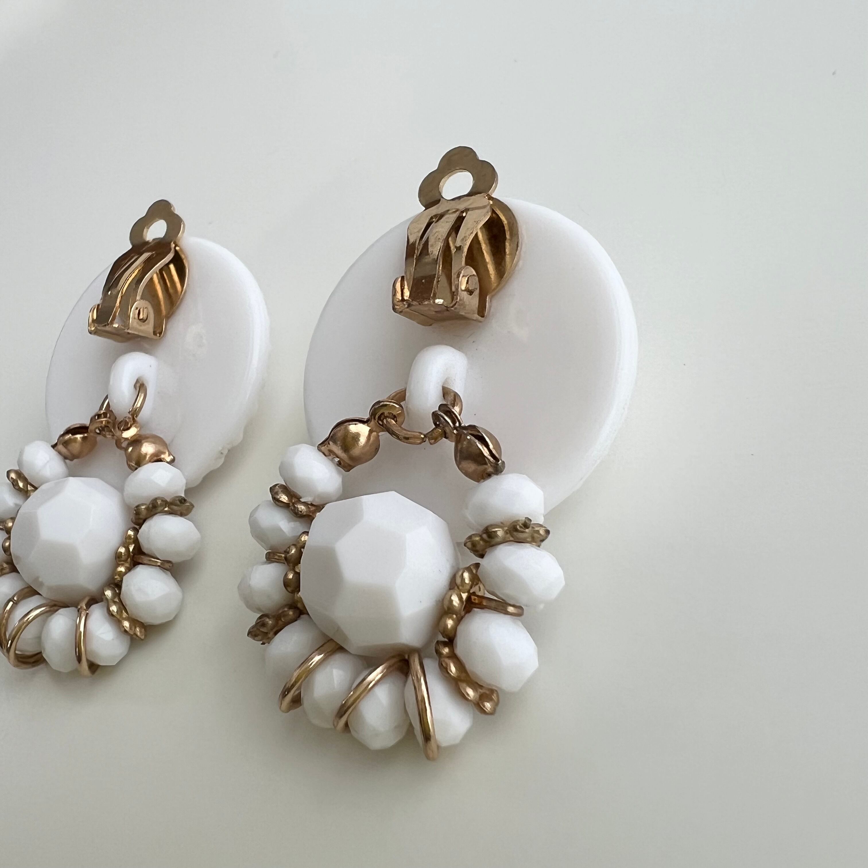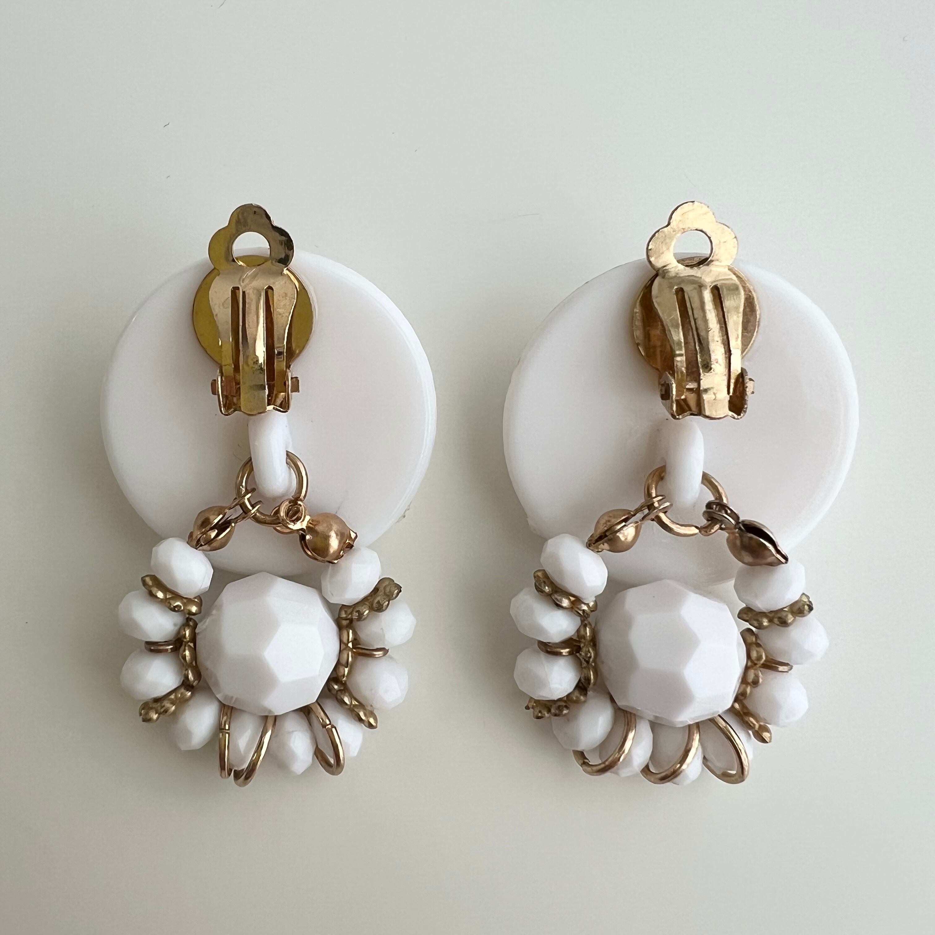 ヴィンテージ オーストリア ホワイトプラスチック スイングイヤリング。
