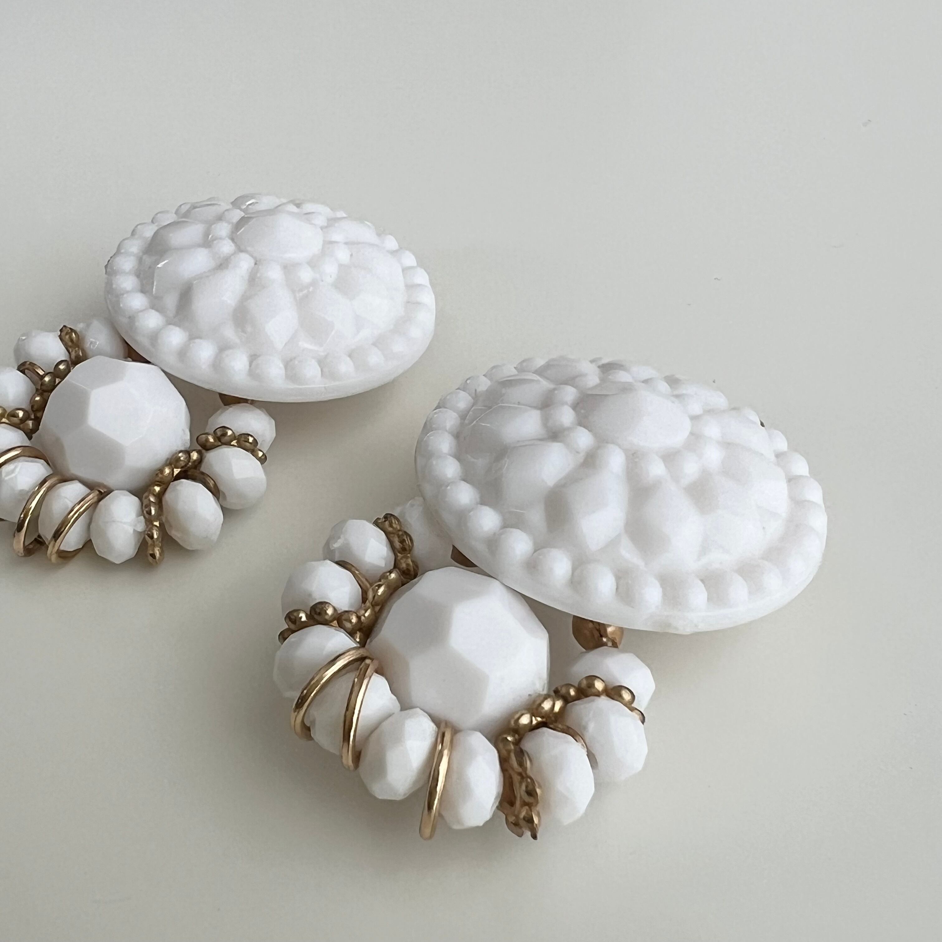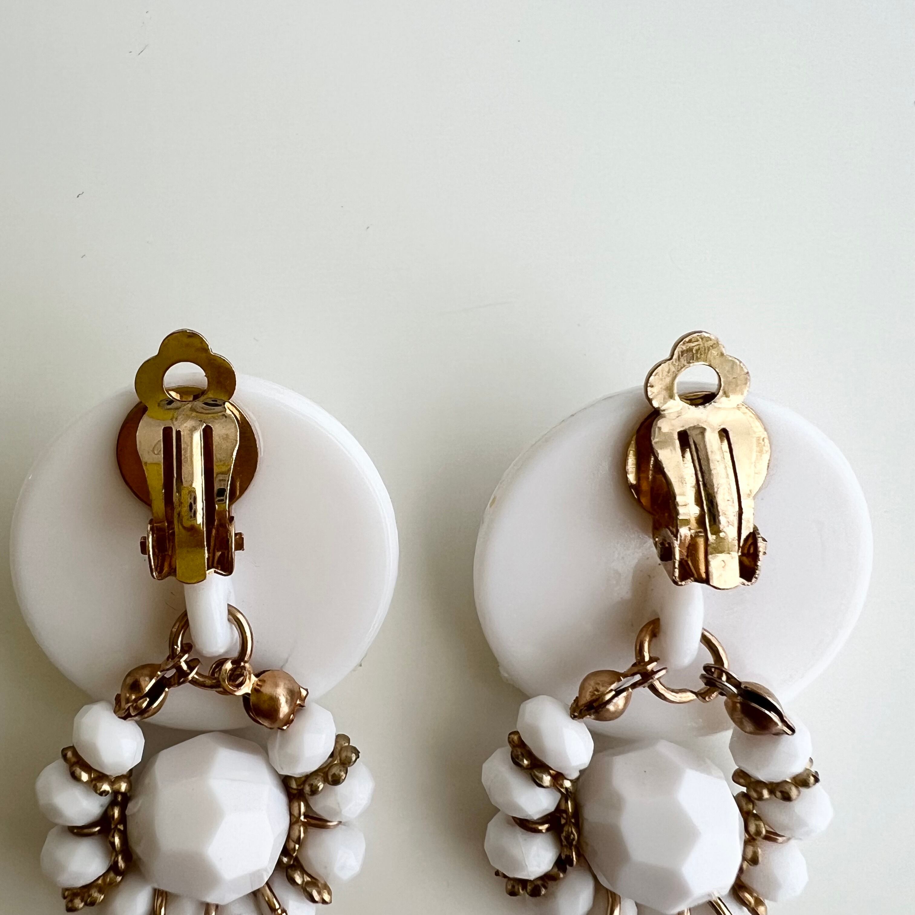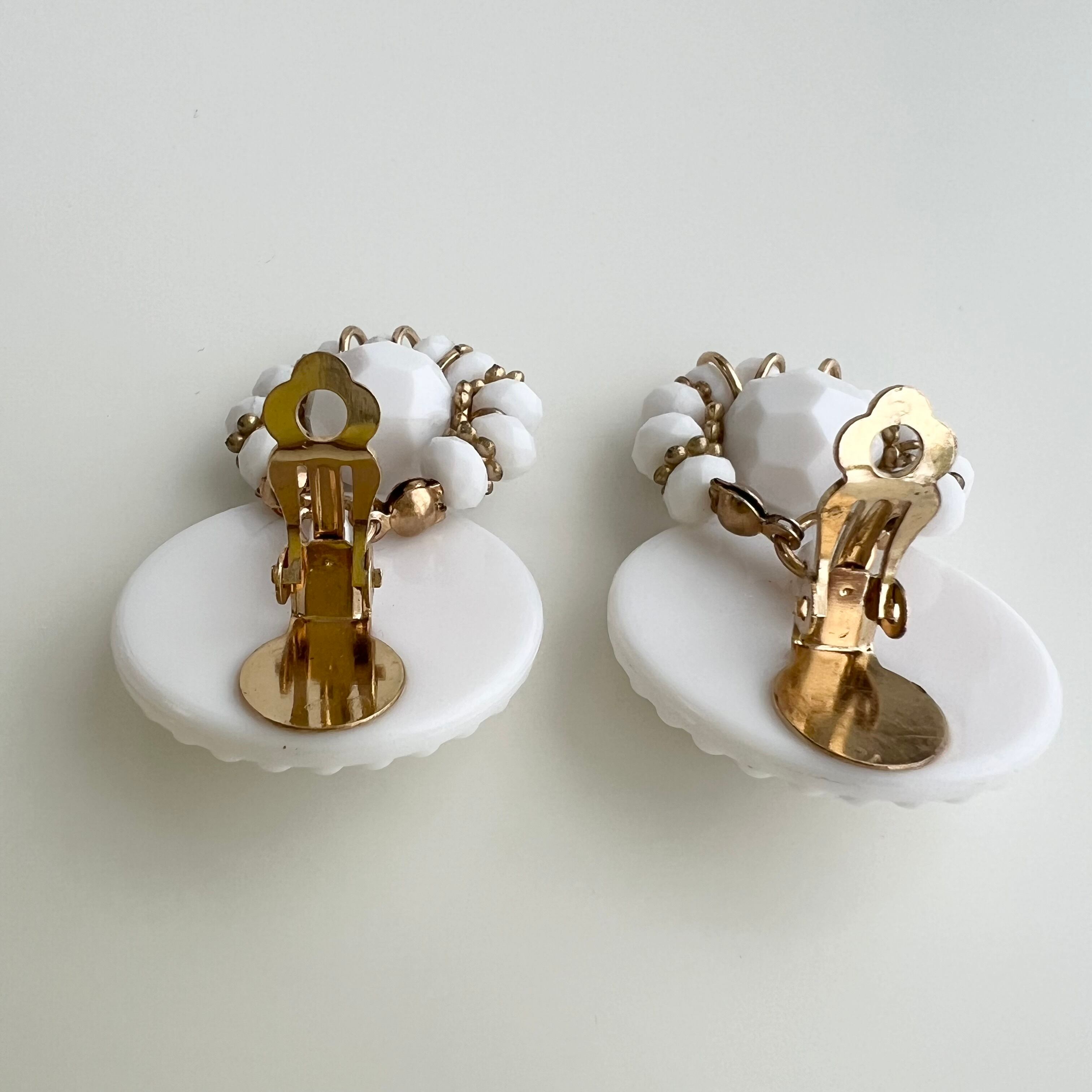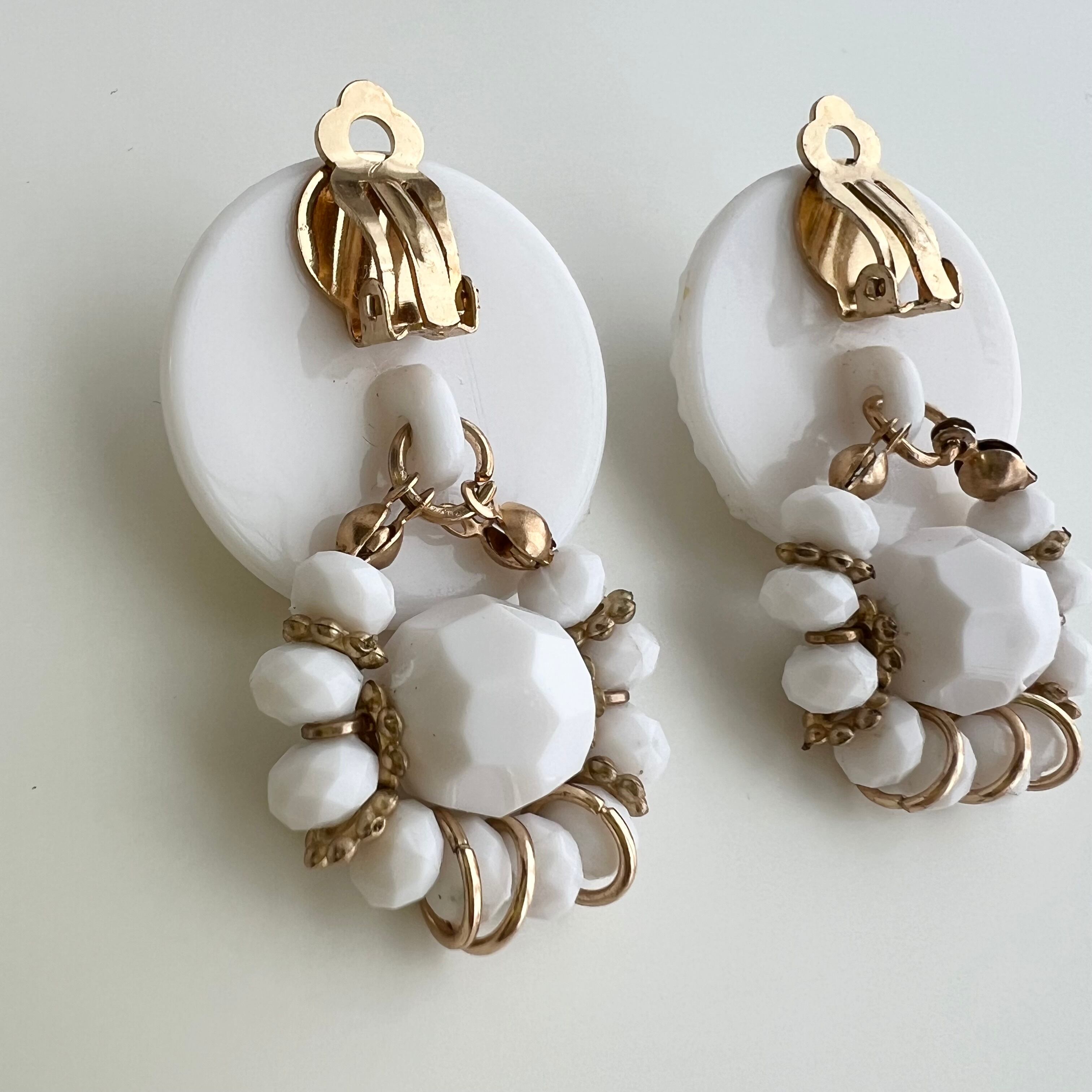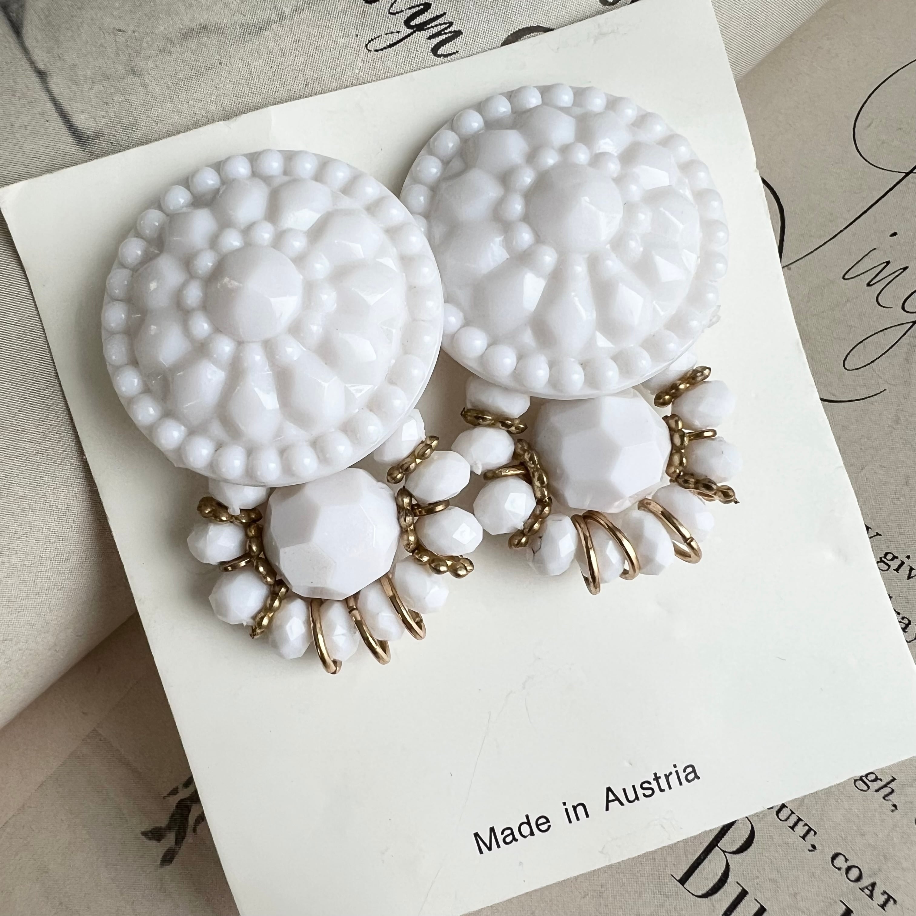 ヴィンテージ オーストリア ホワイトプラスチック スイングイヤリング。