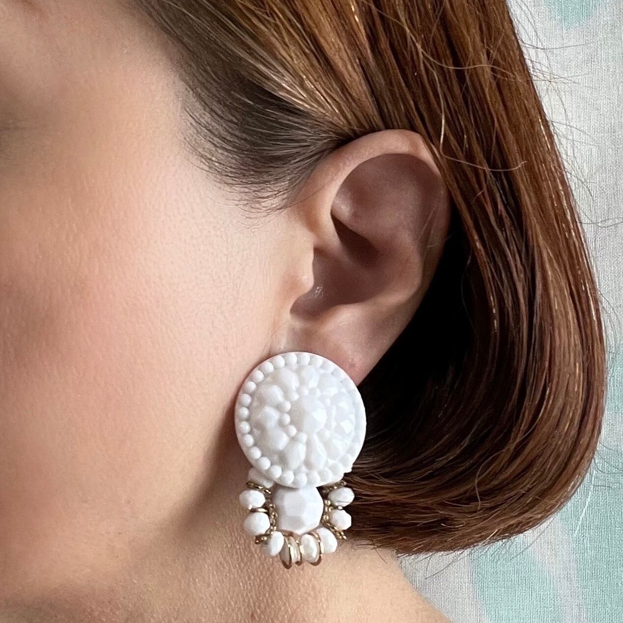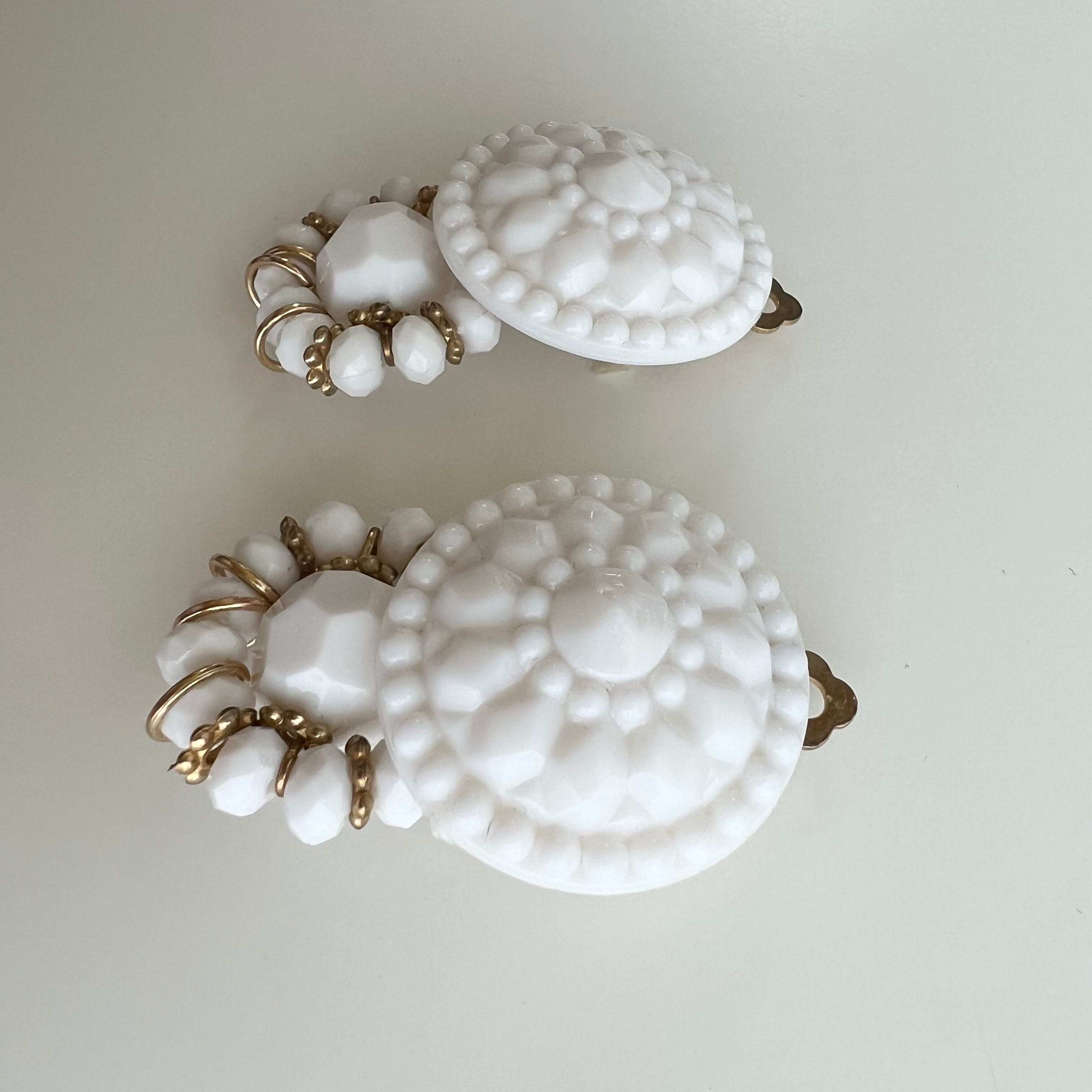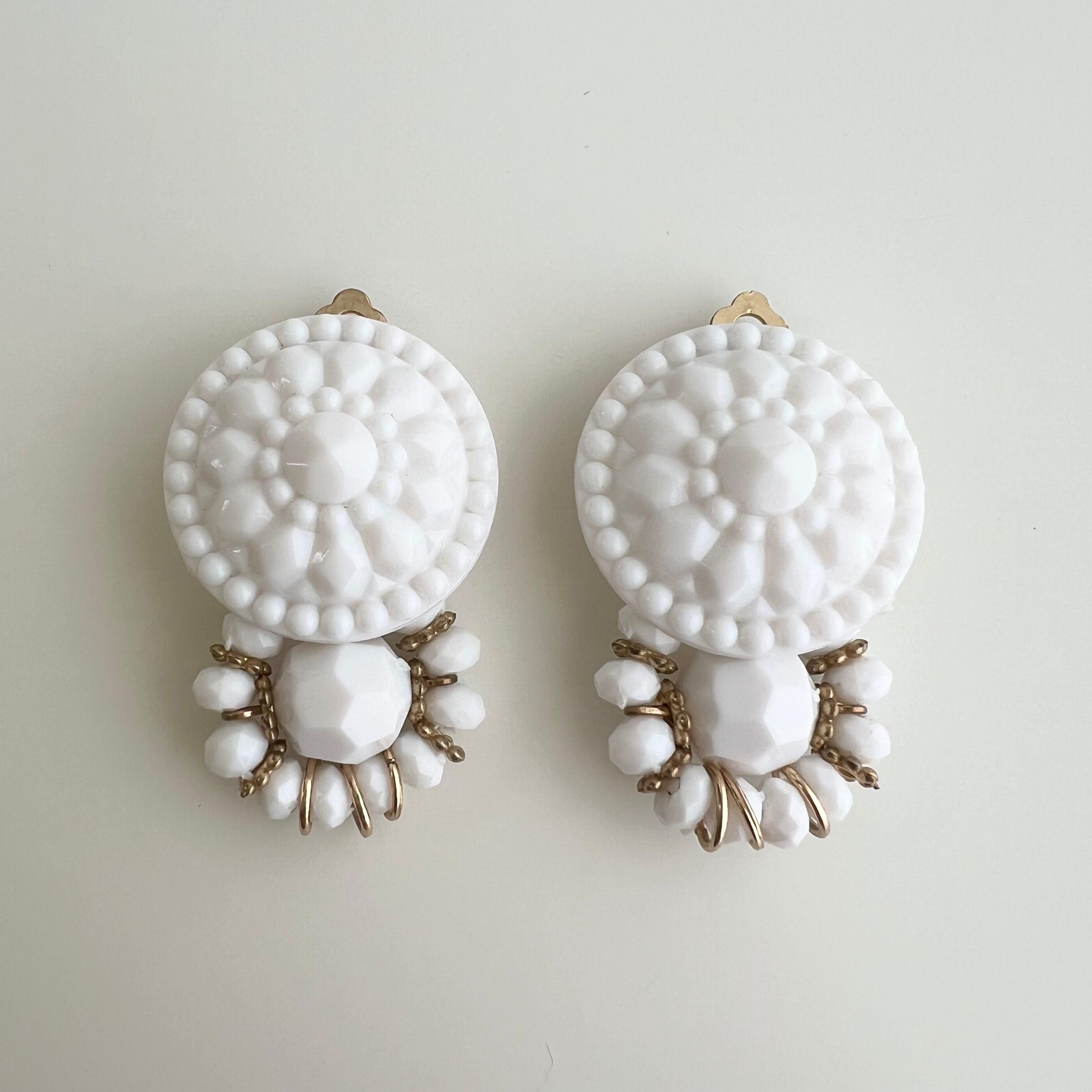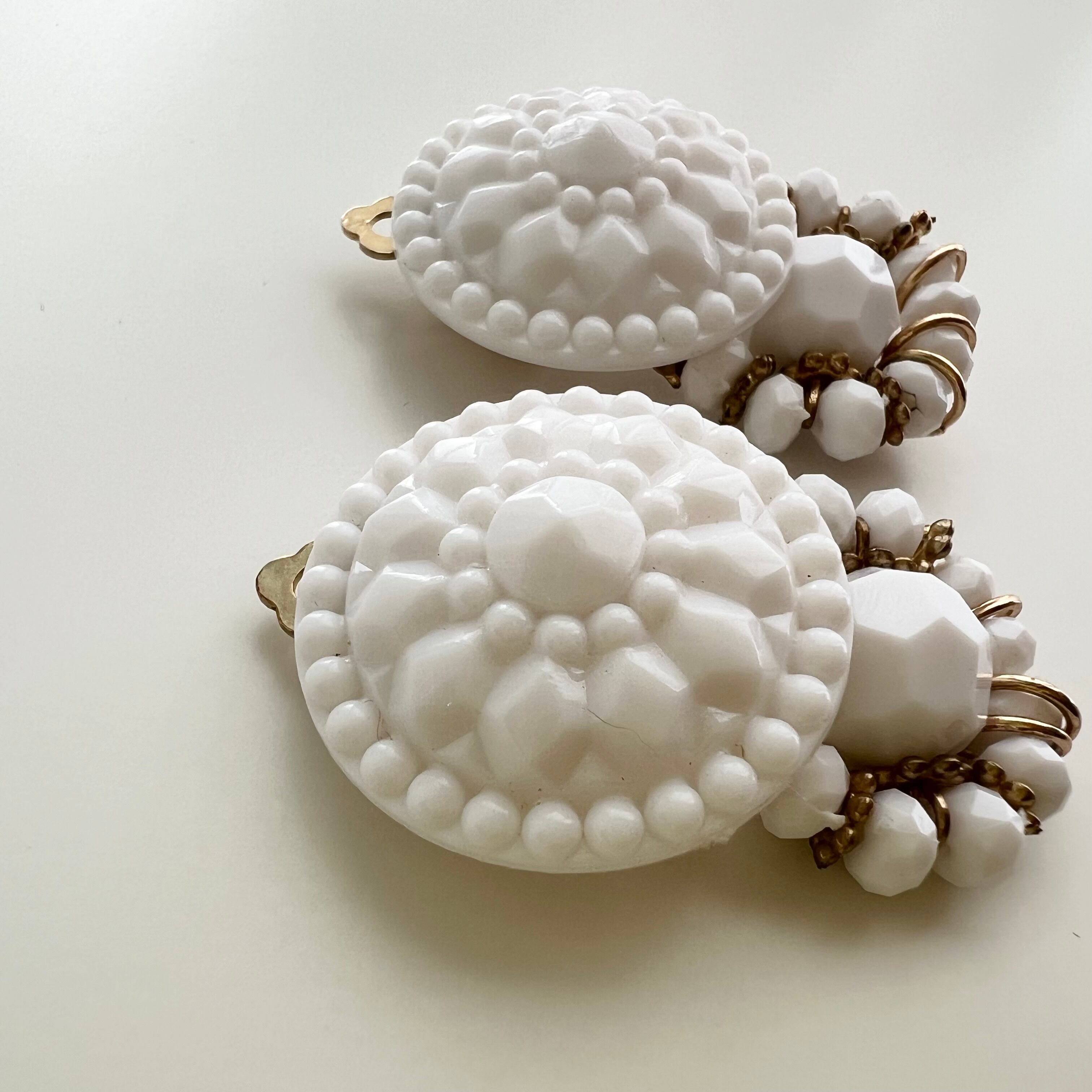 ヴィンテージ オーストリア ホワイトプラスチック スイングイヤリング。