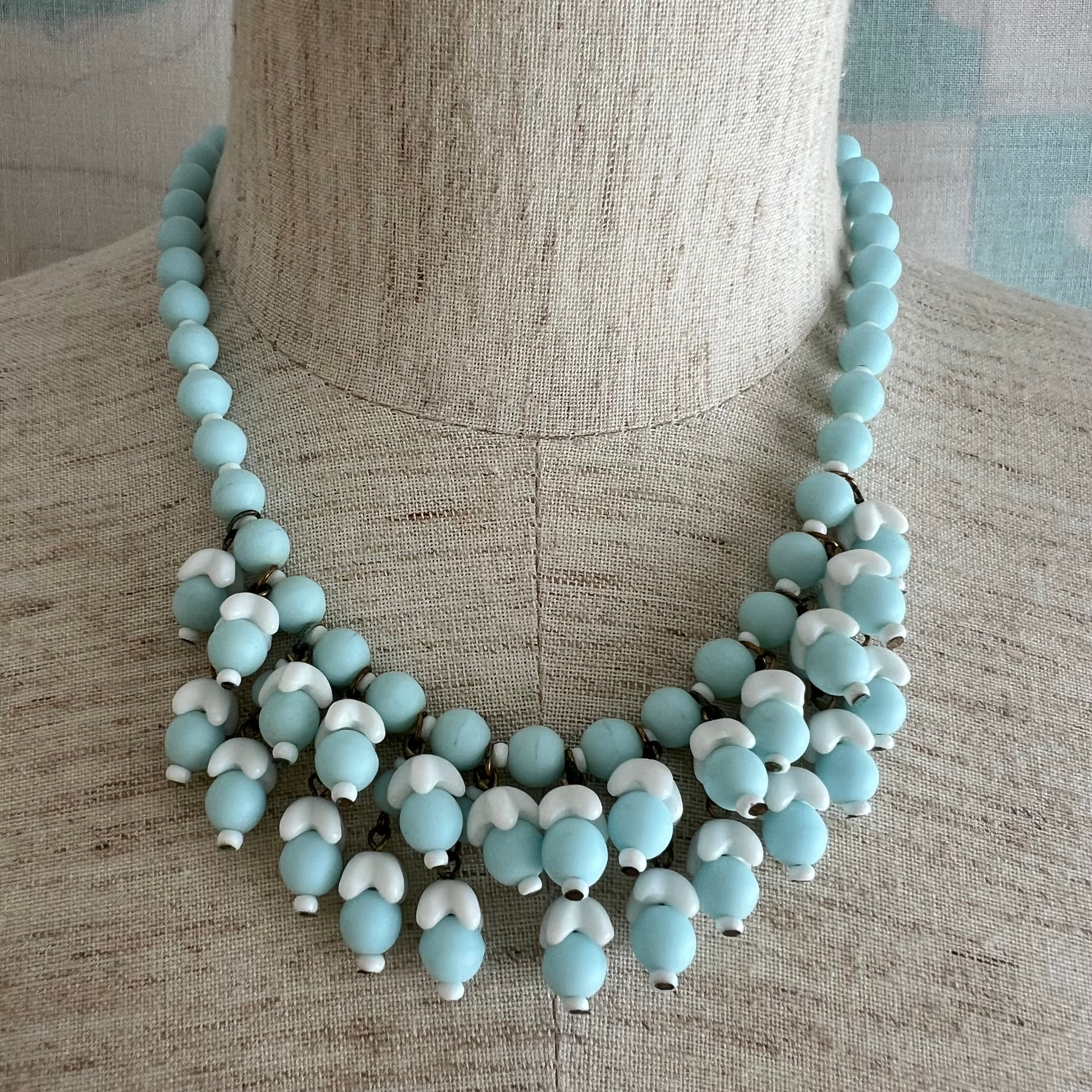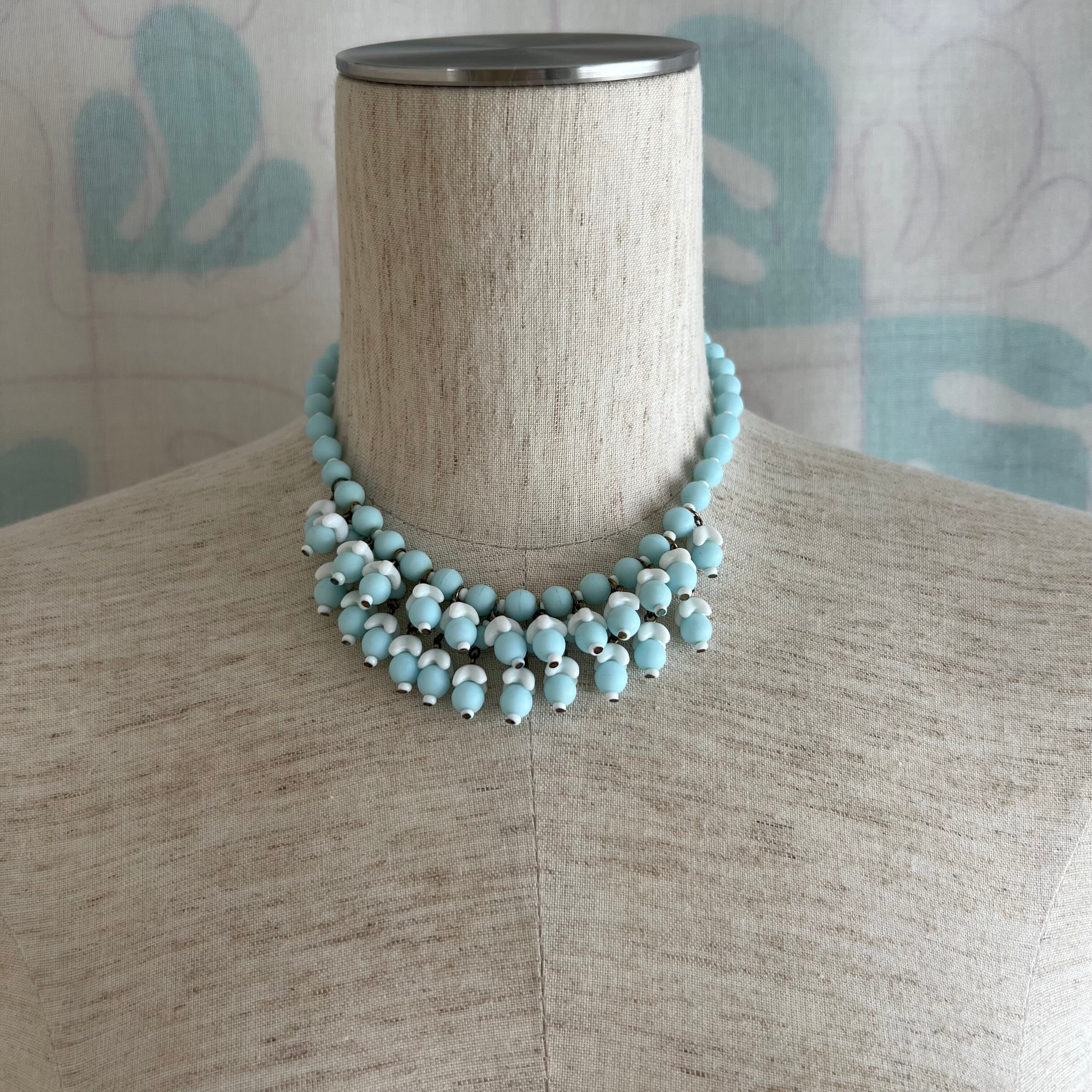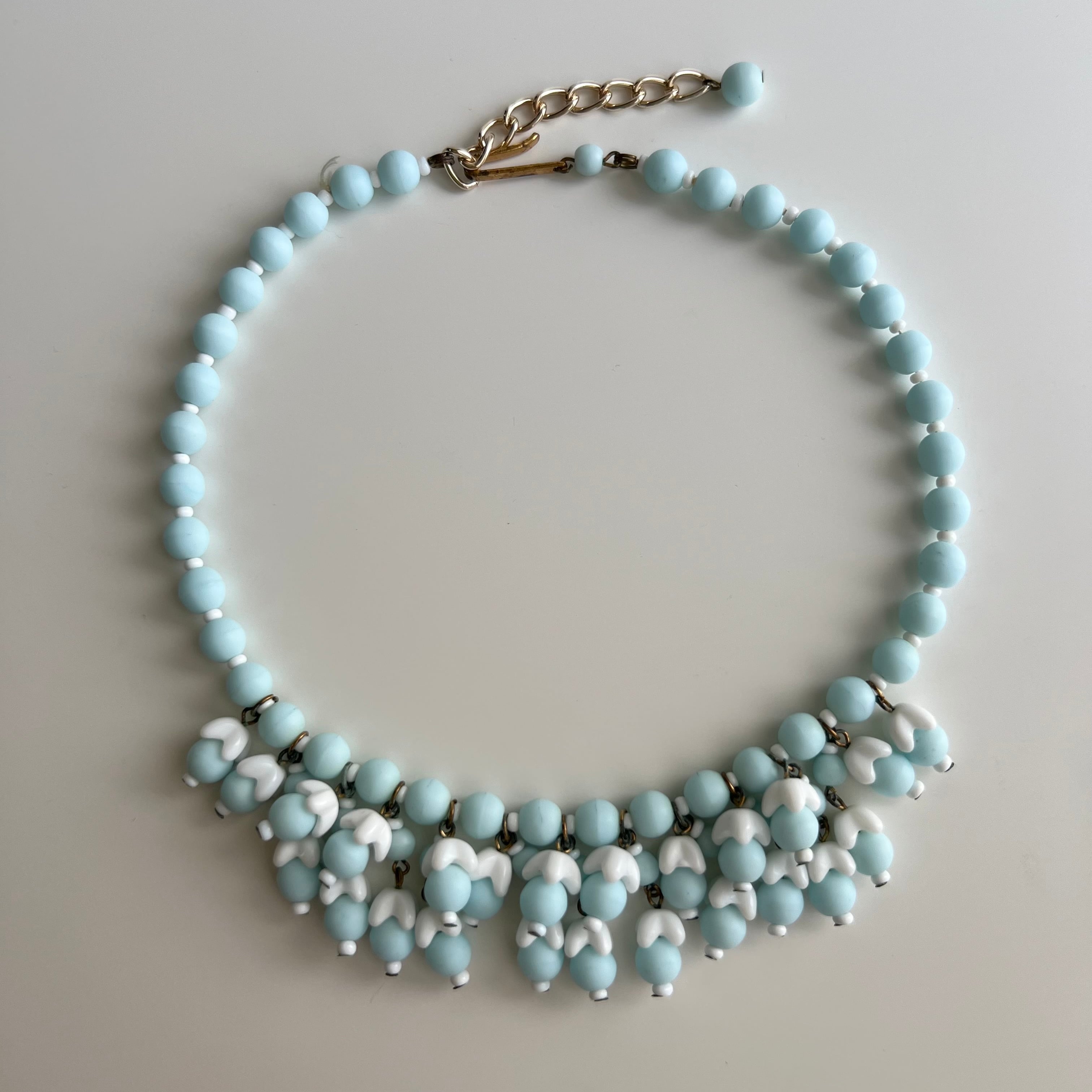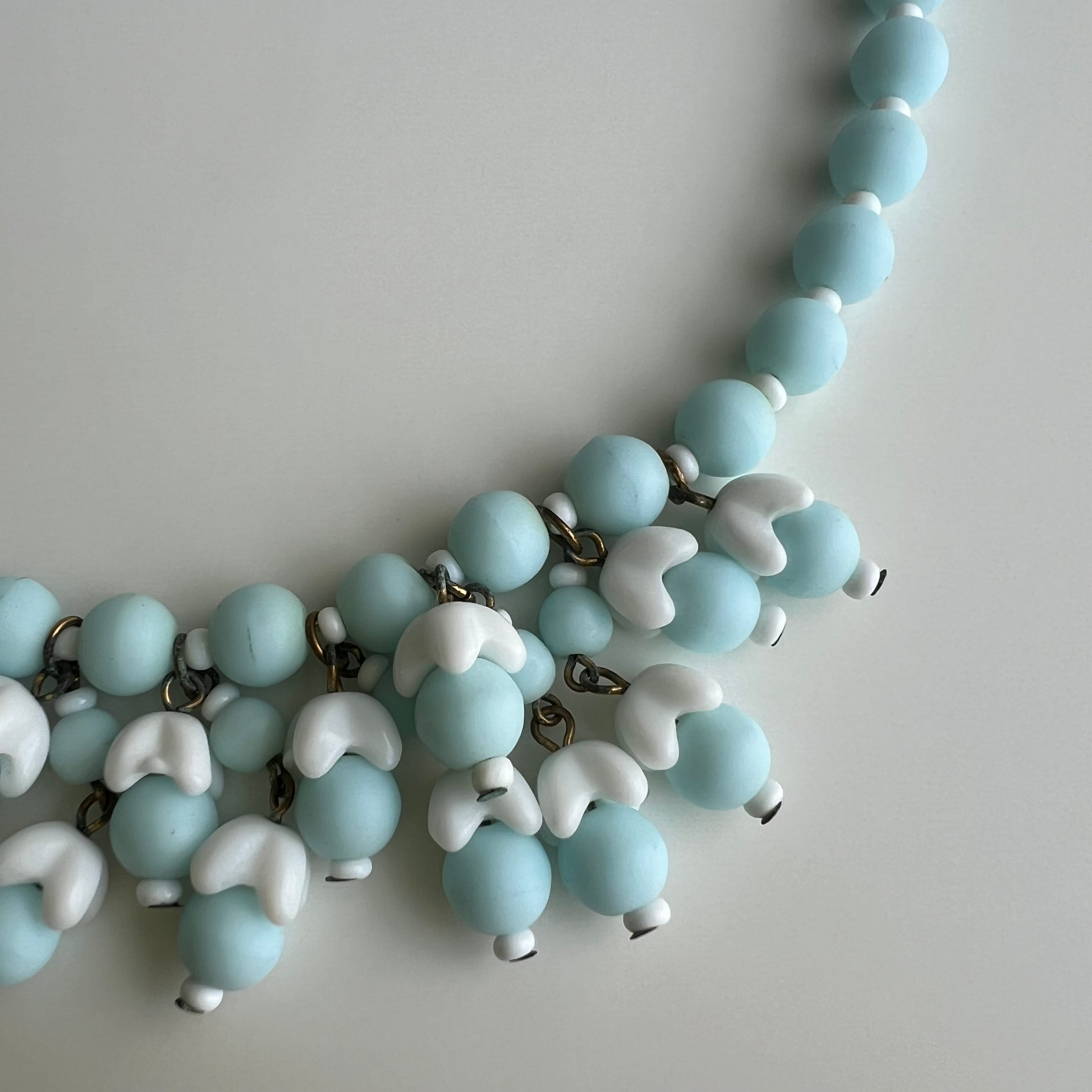 清涼感あふれるアイスブルーのプラスチックネックレスです。
