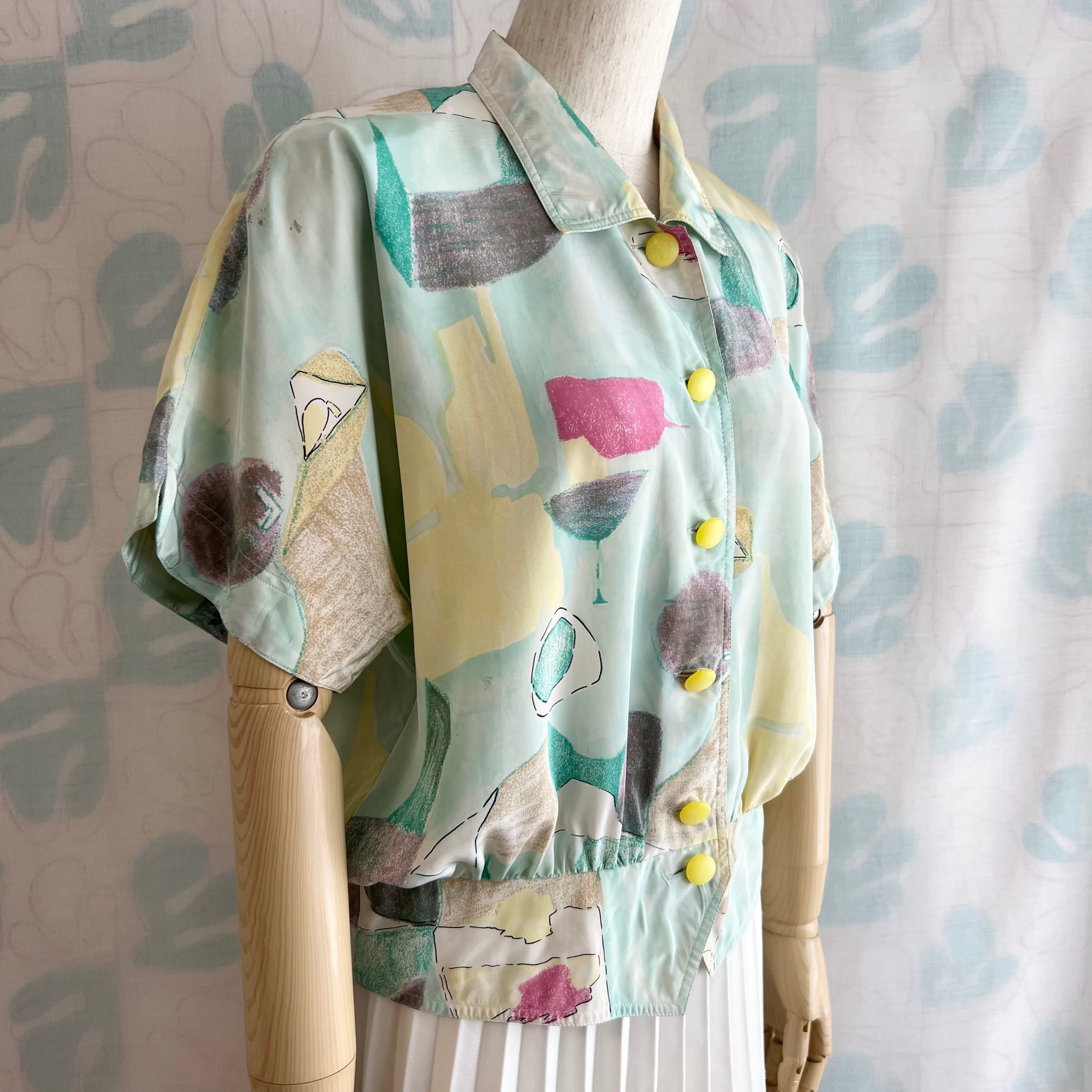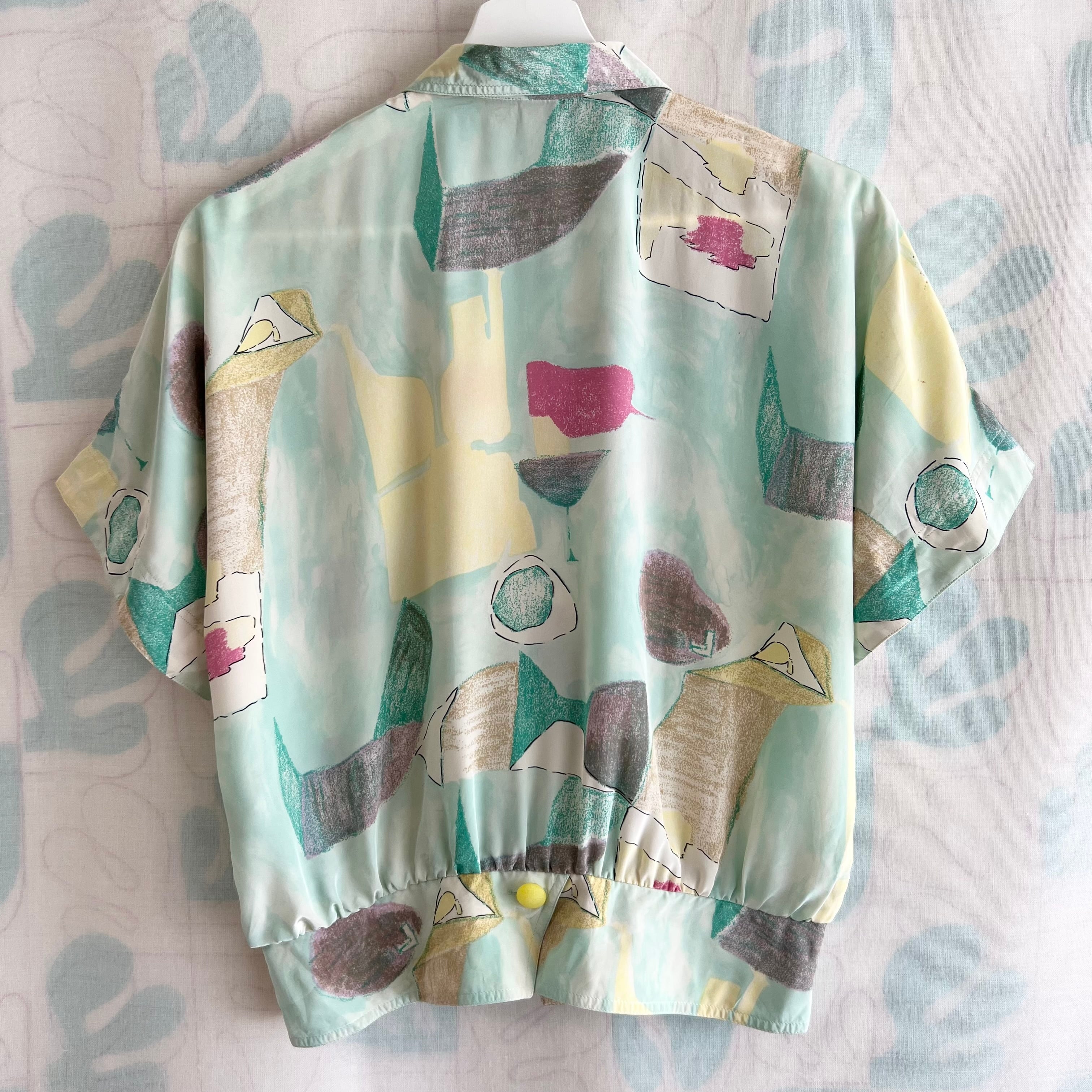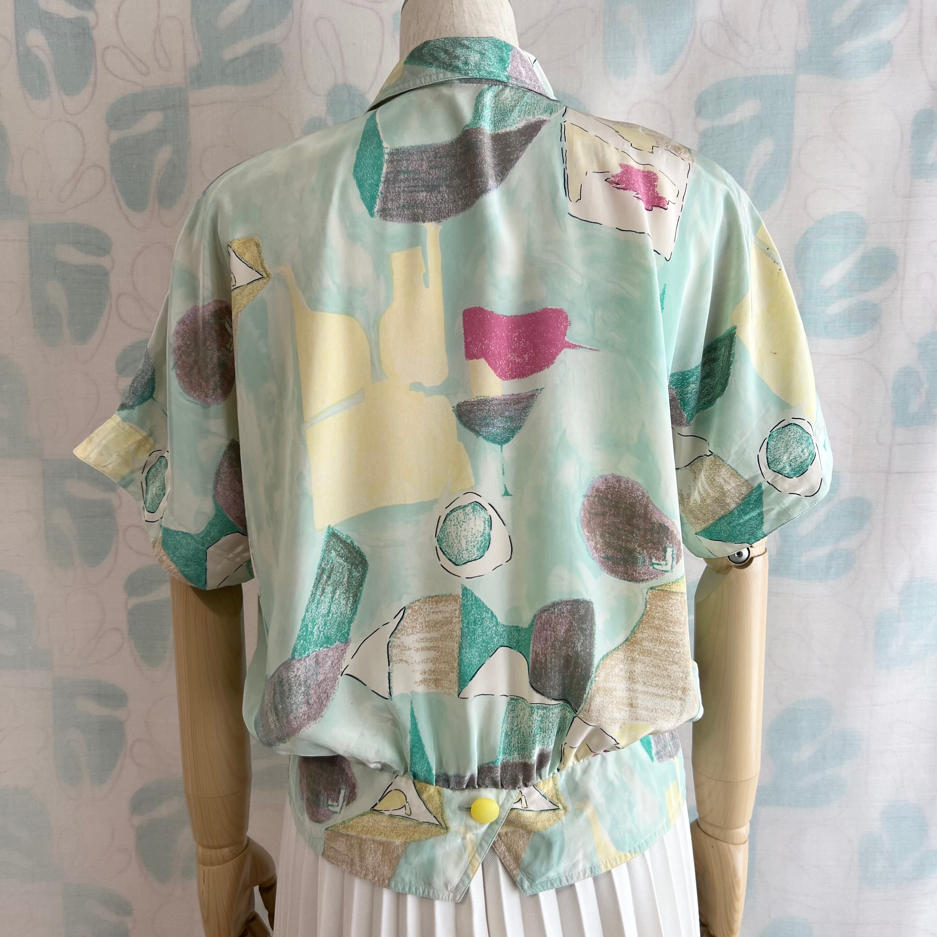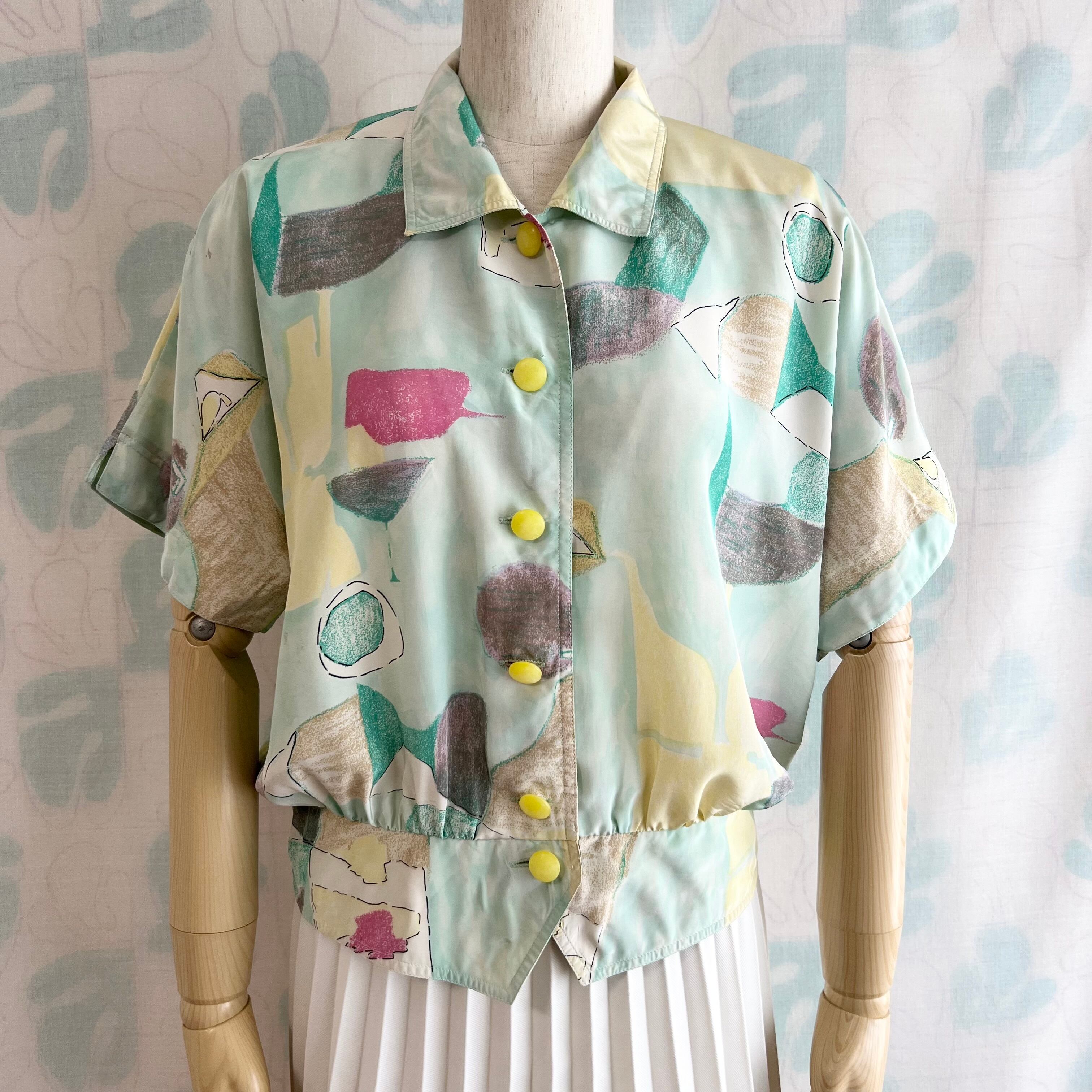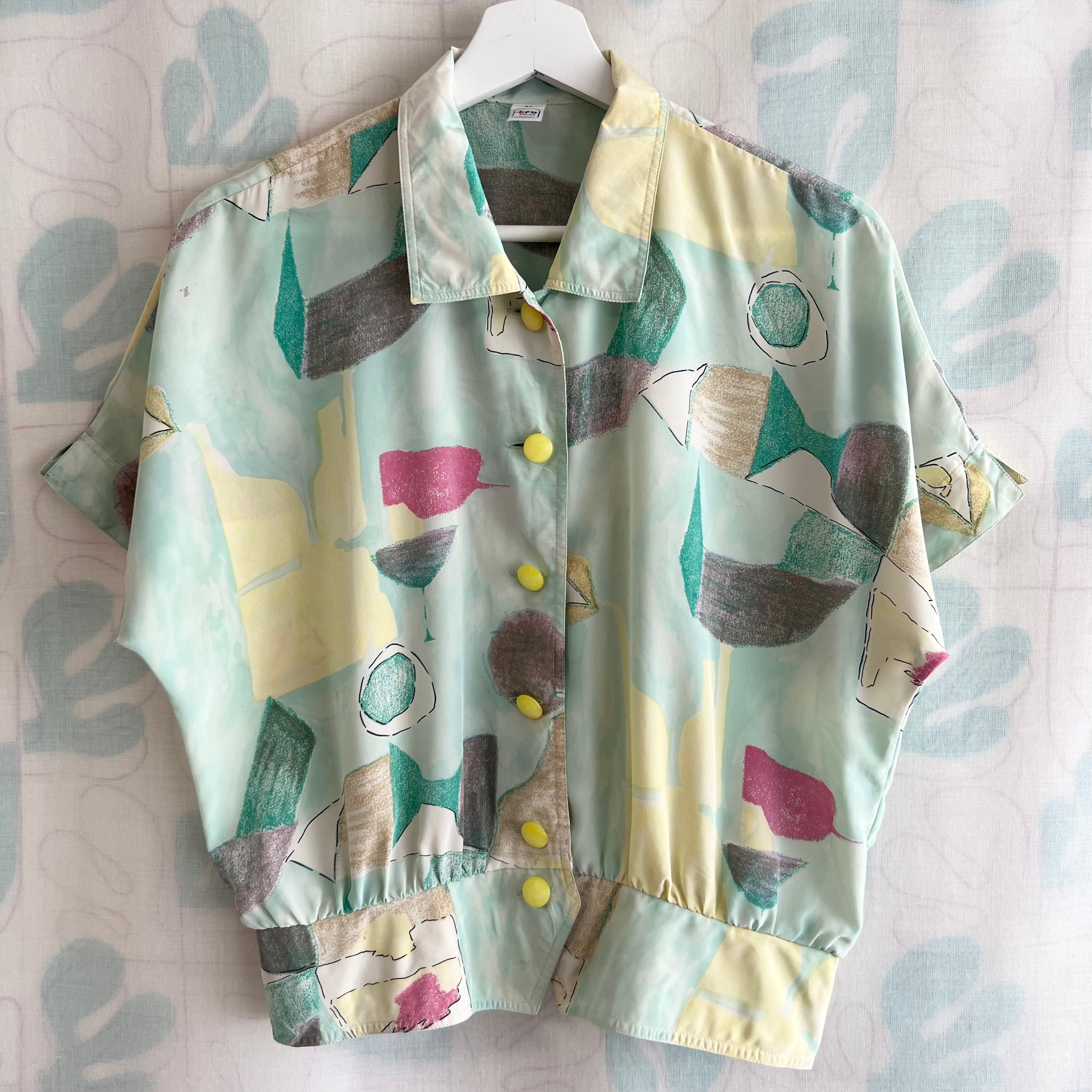 ペパーミントベースにアトミックプリントのポップなブラウス。