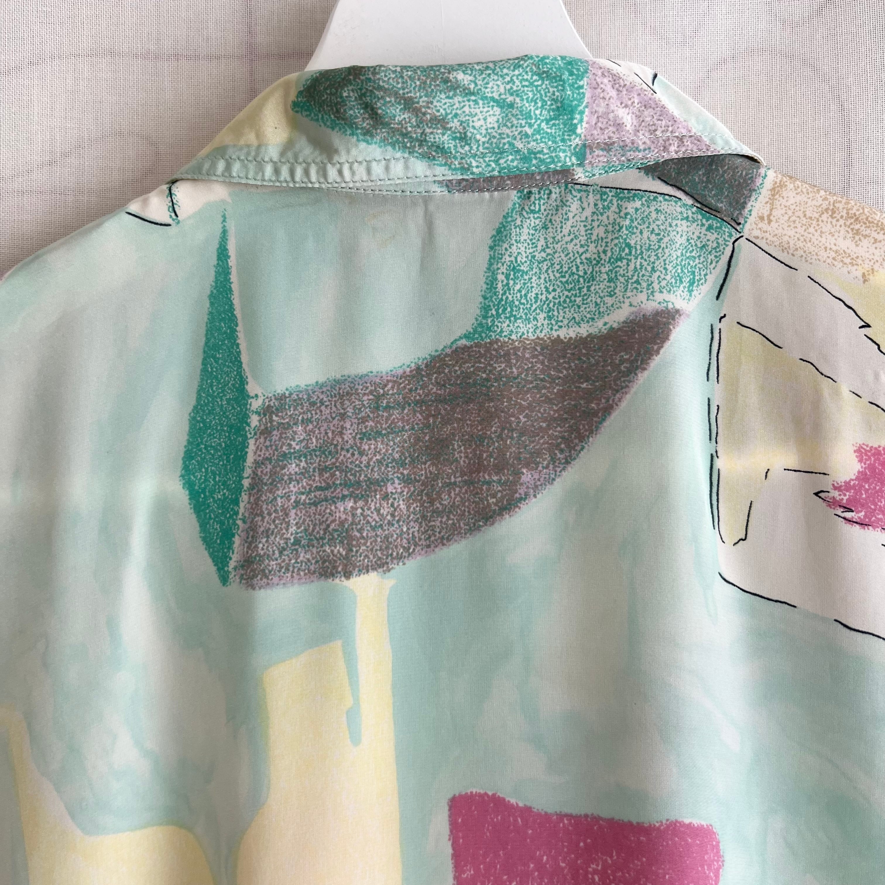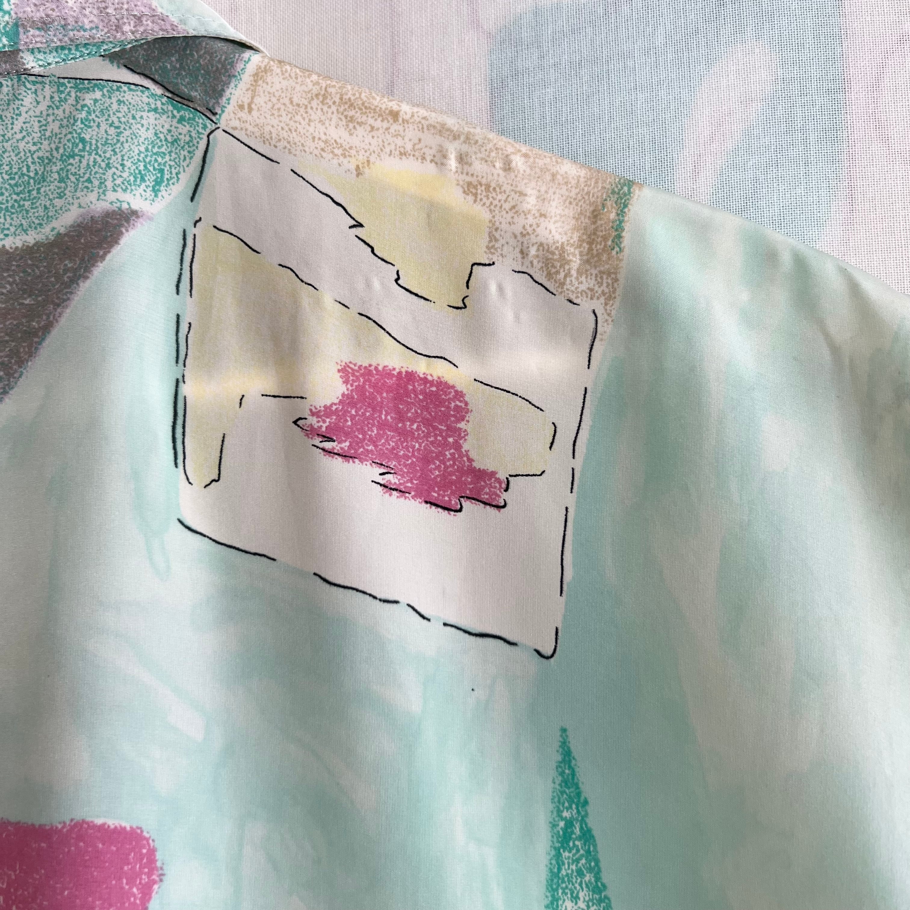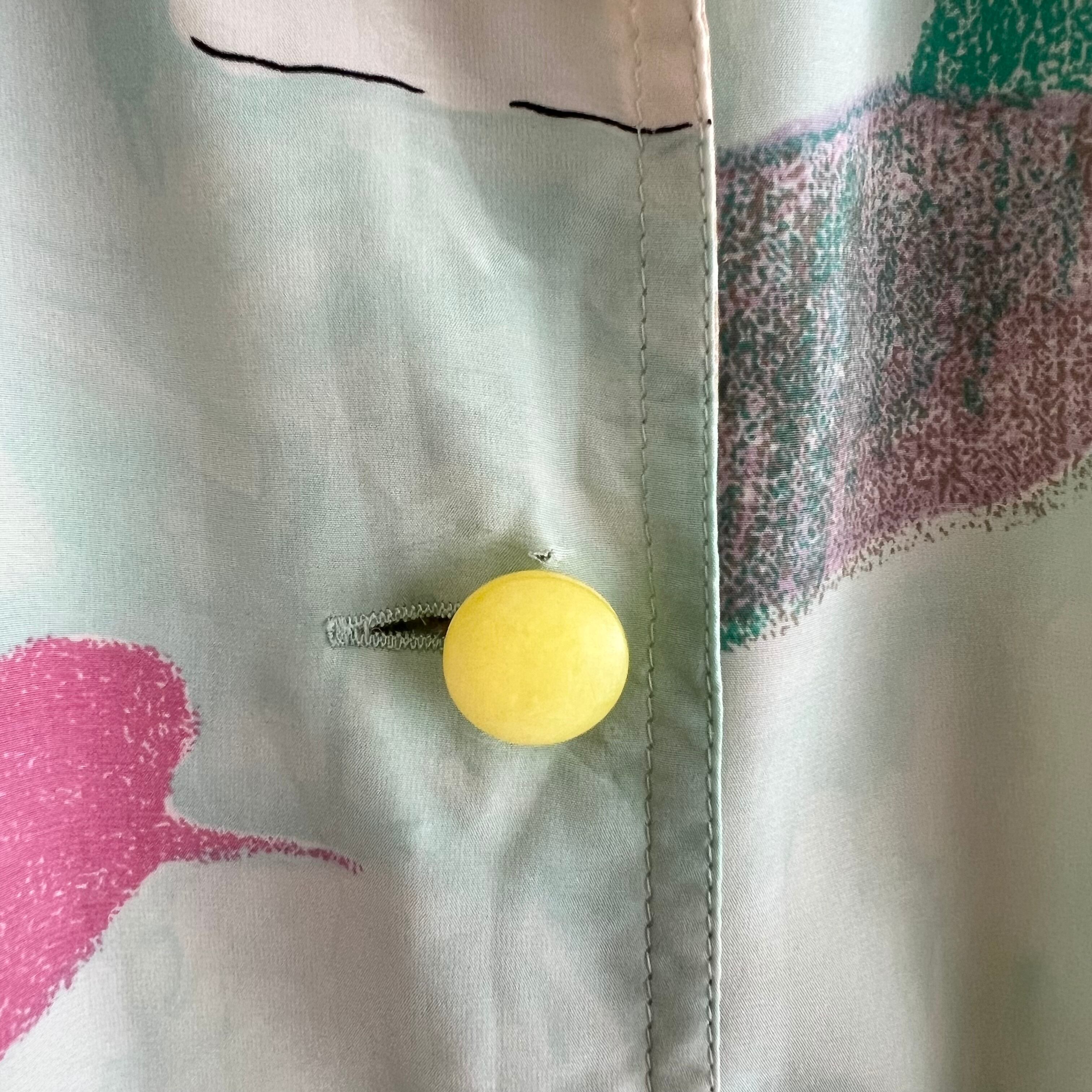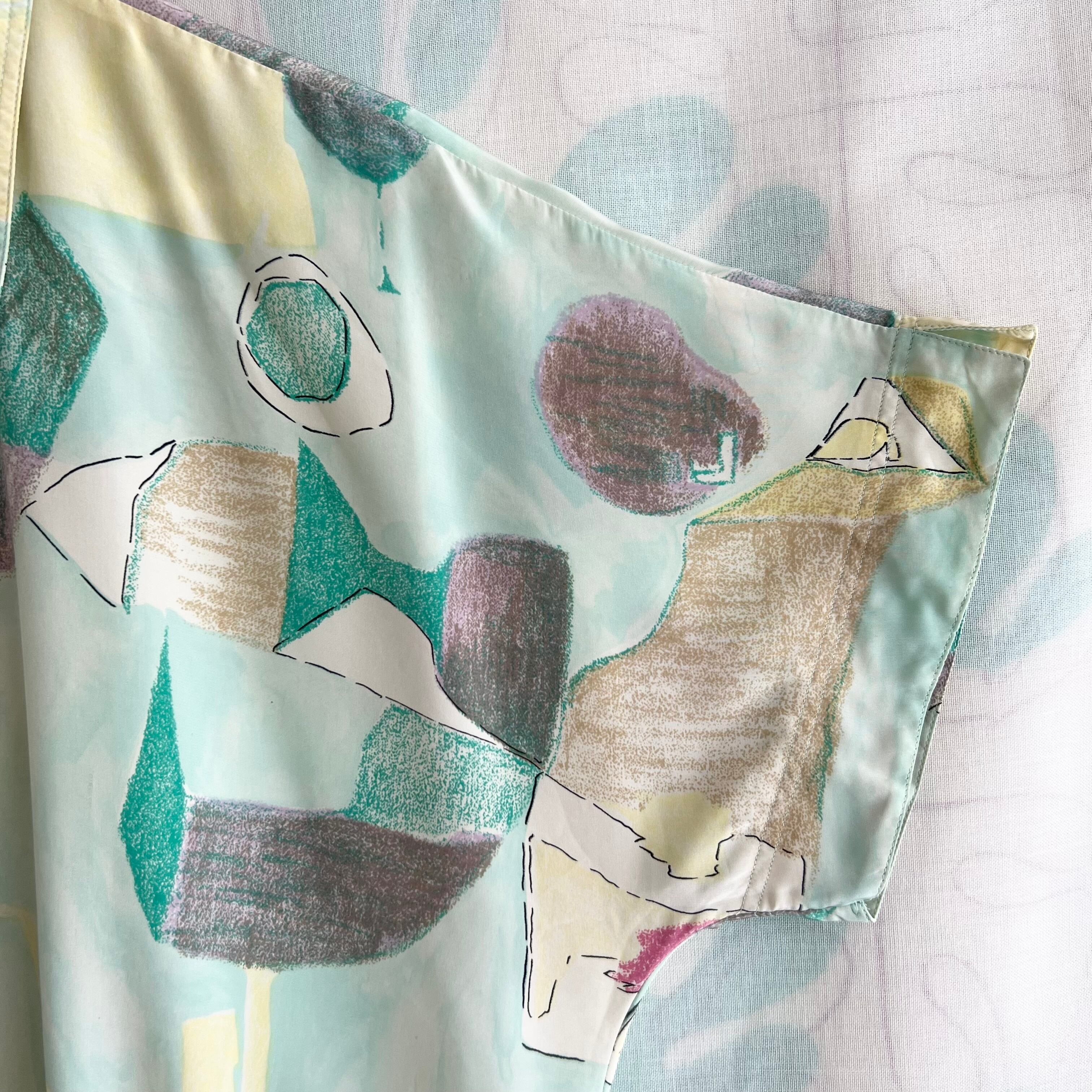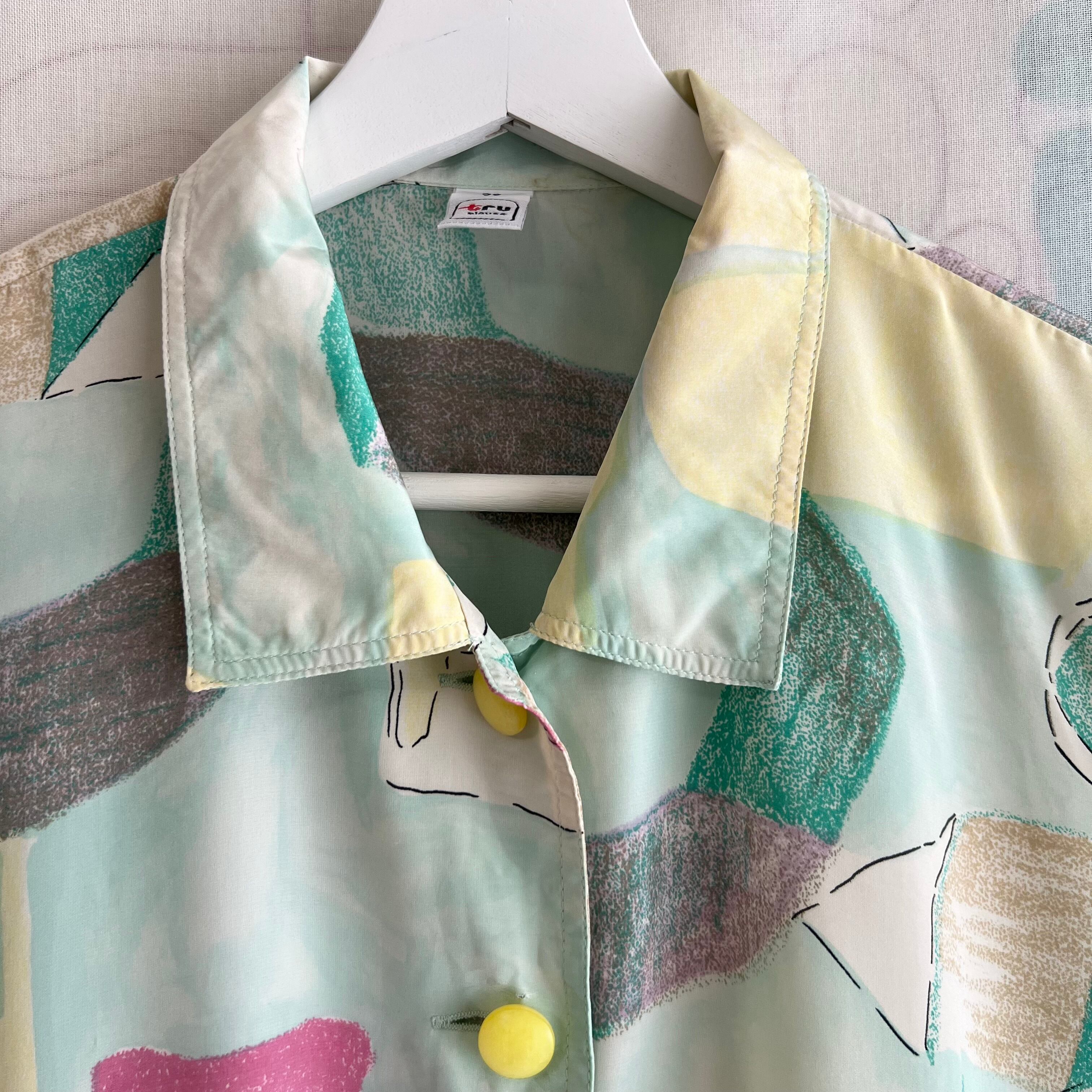 ペパーミントベースにアトミックプリントのポップなブラウス。