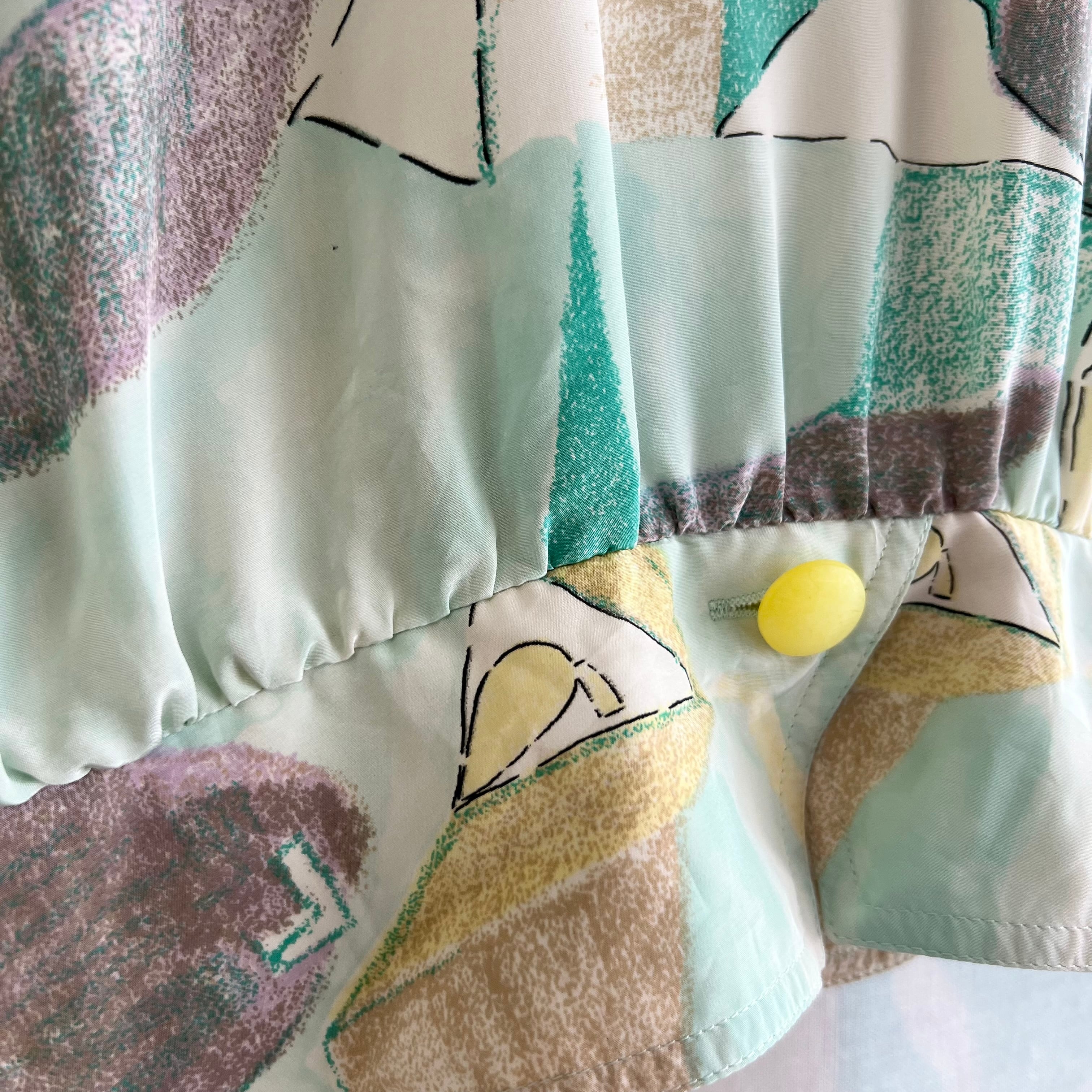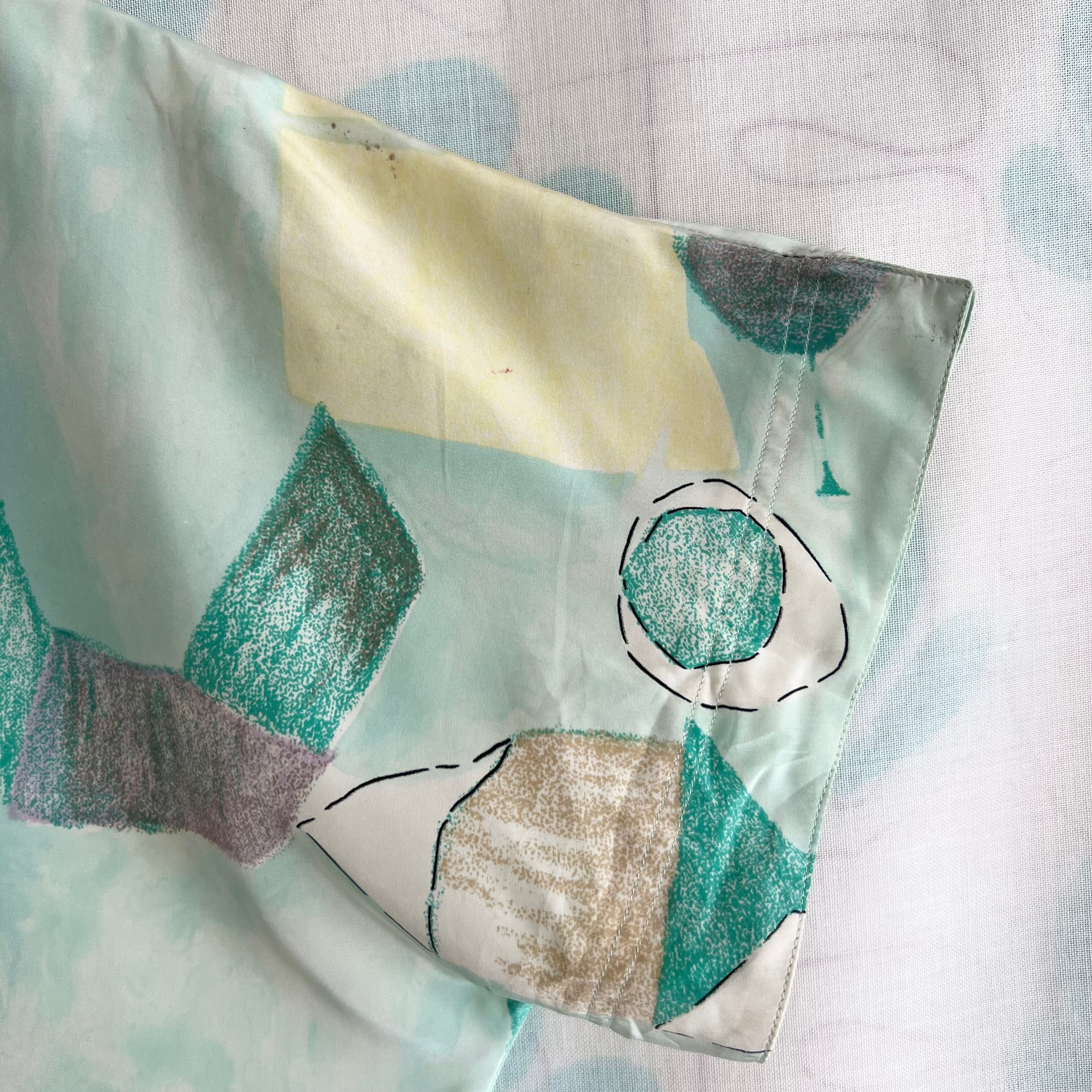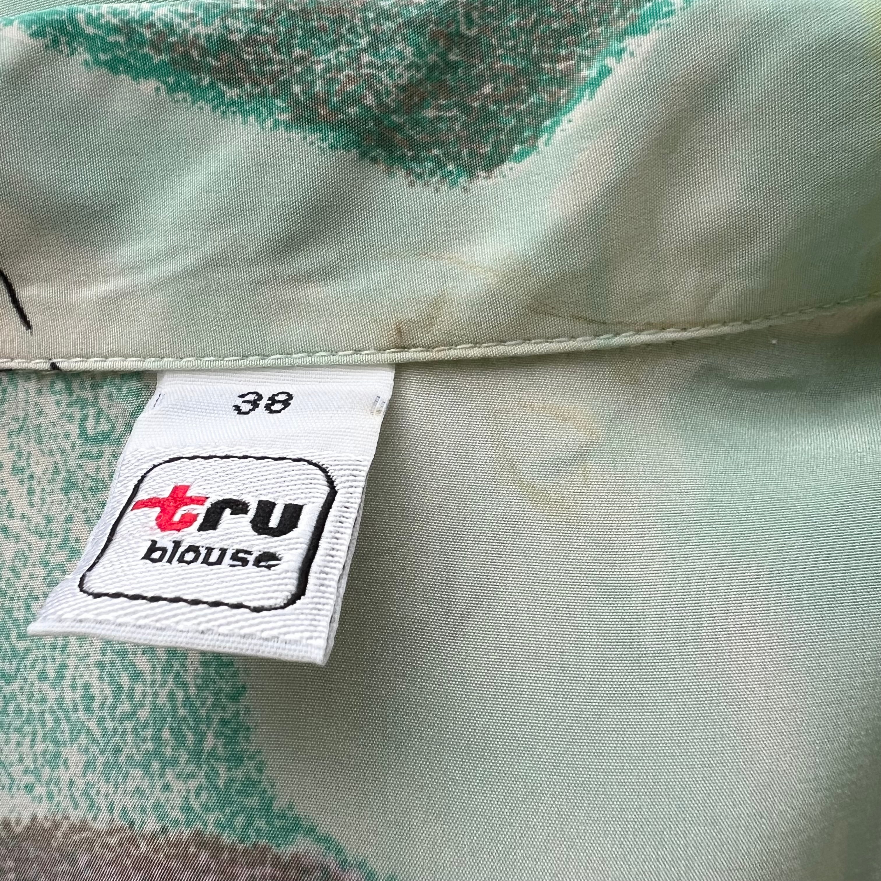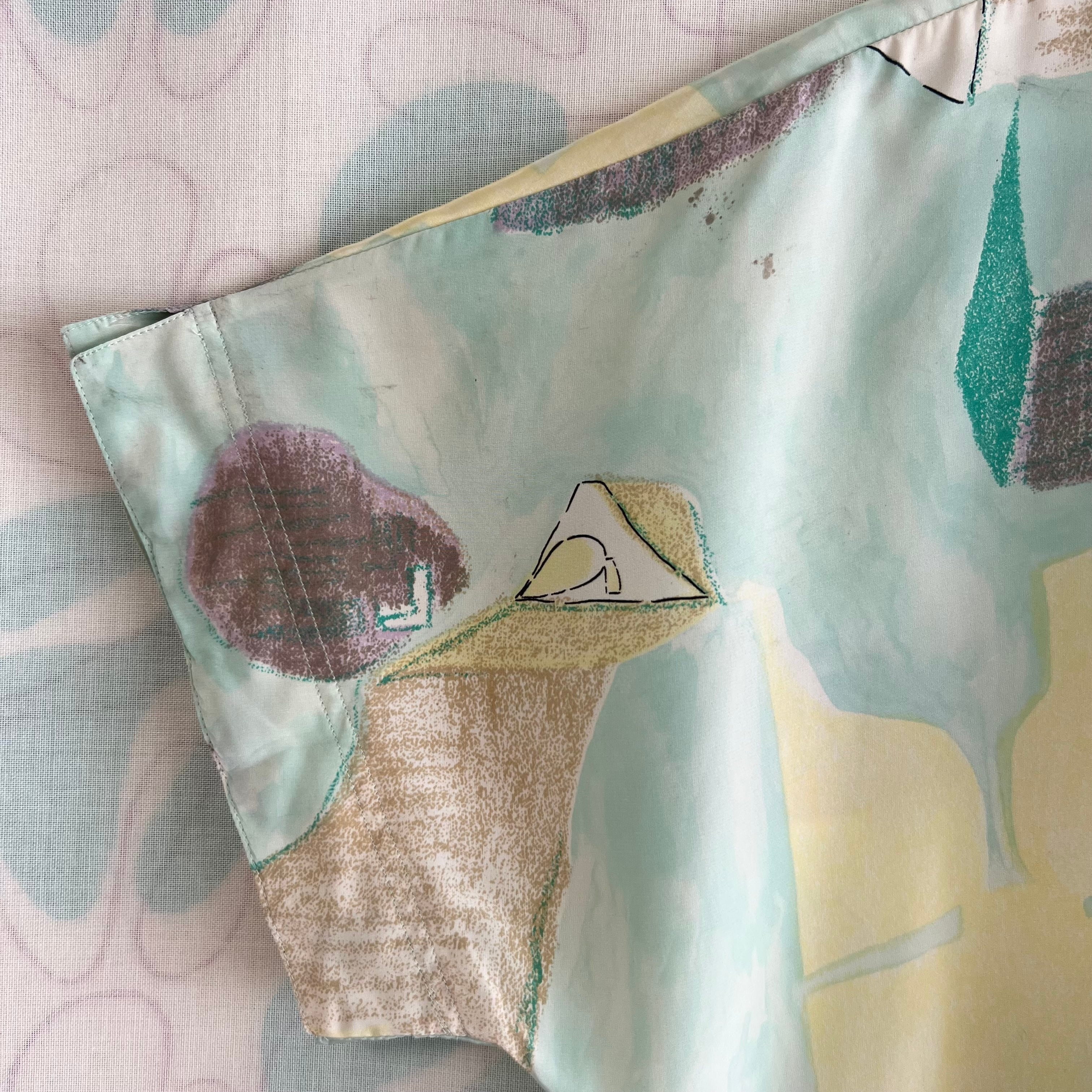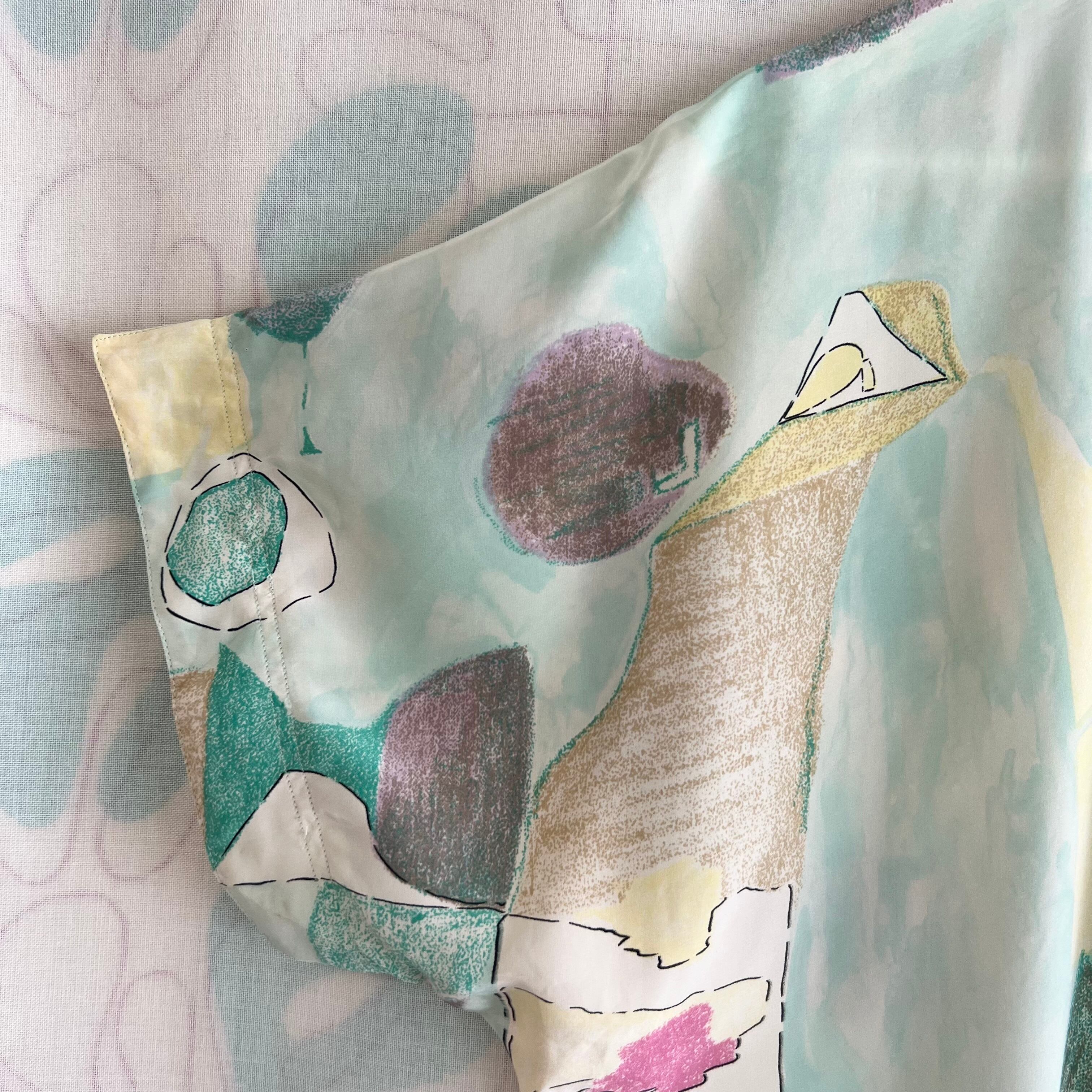 ペパーミントベースにアトミックプリントのポップなブラウス。