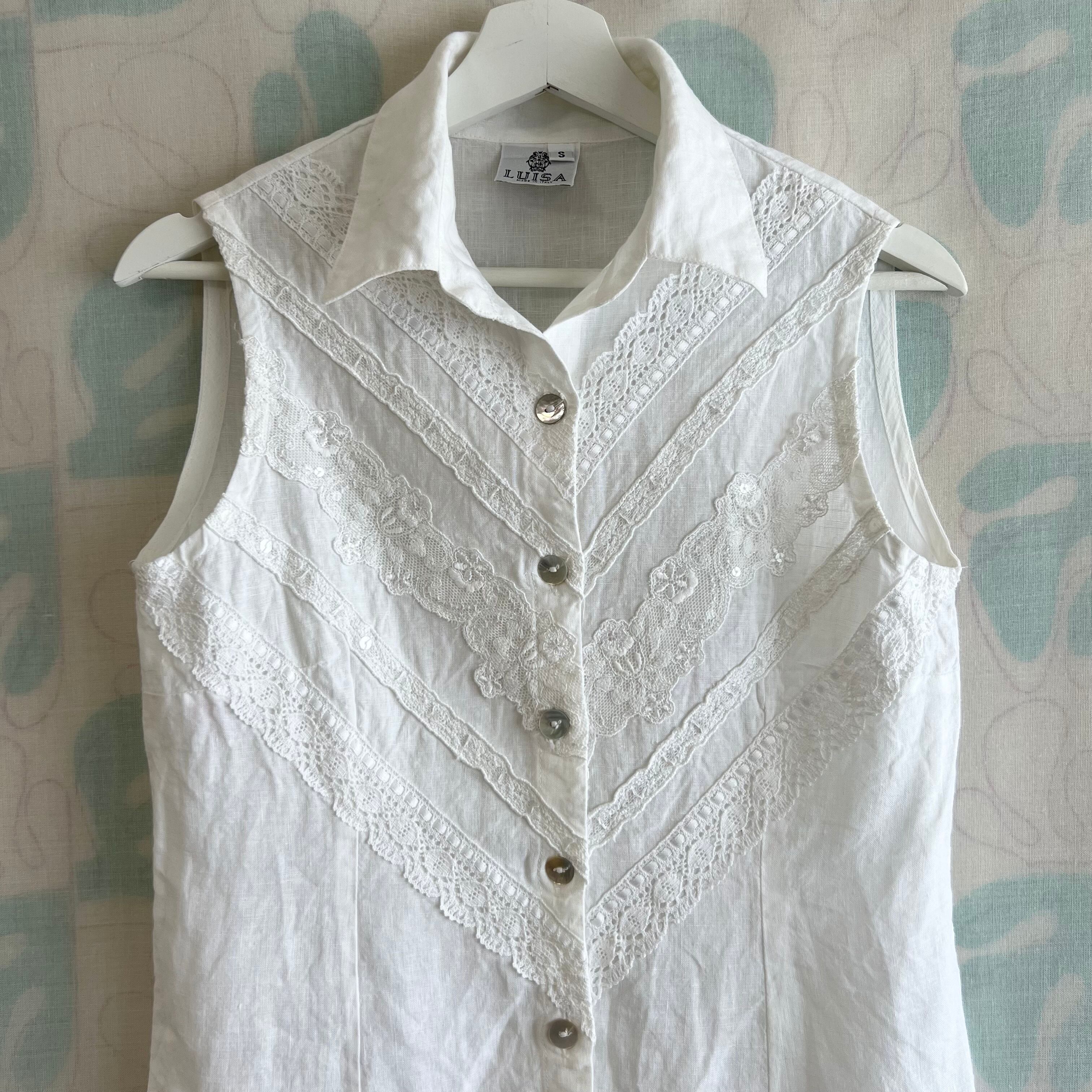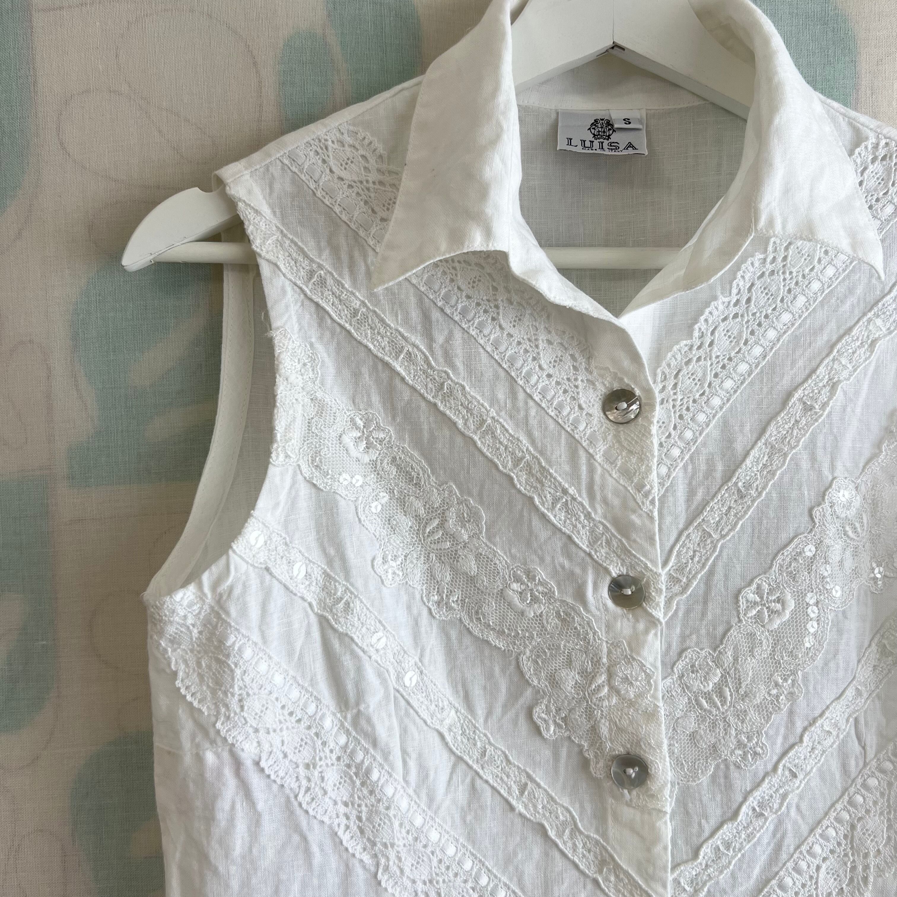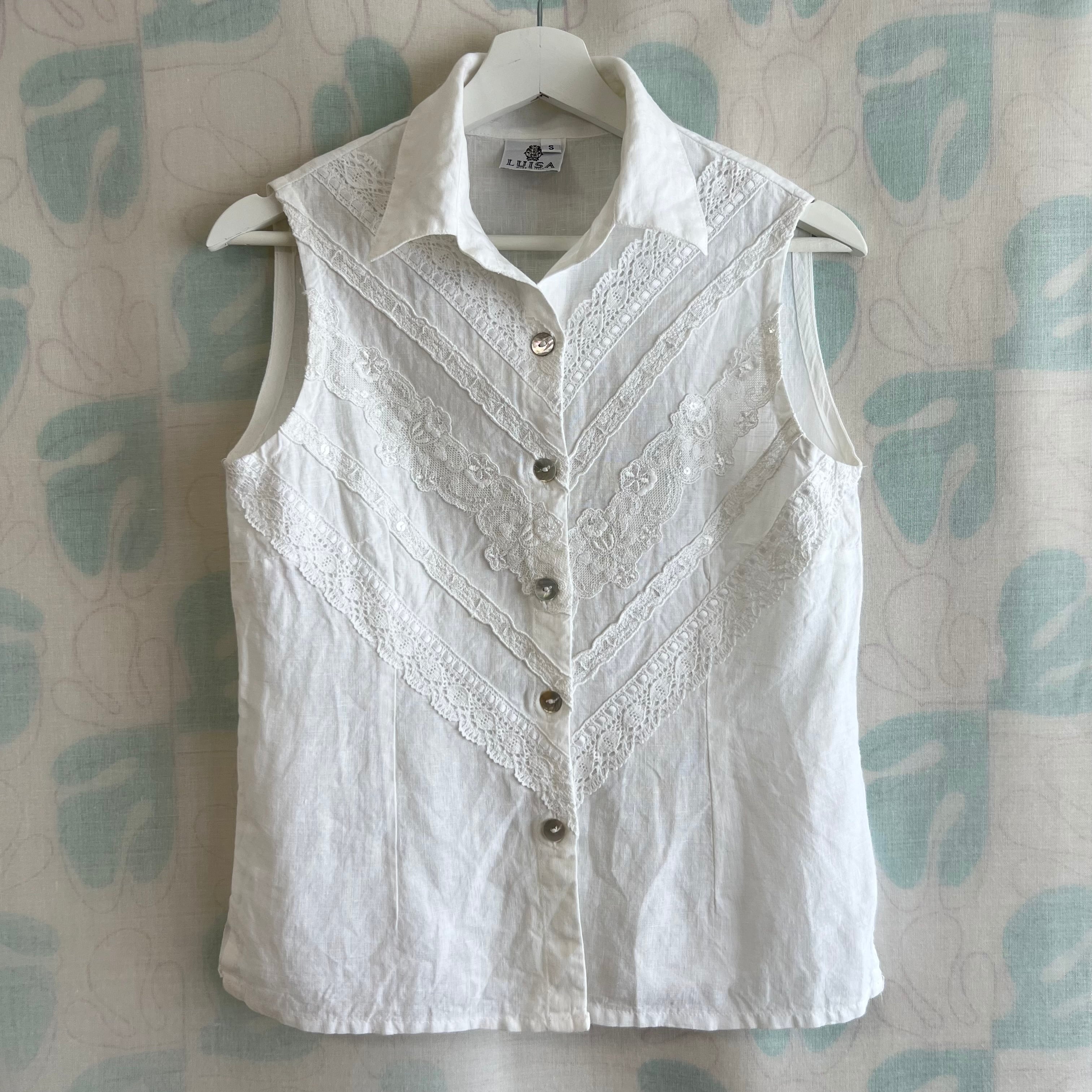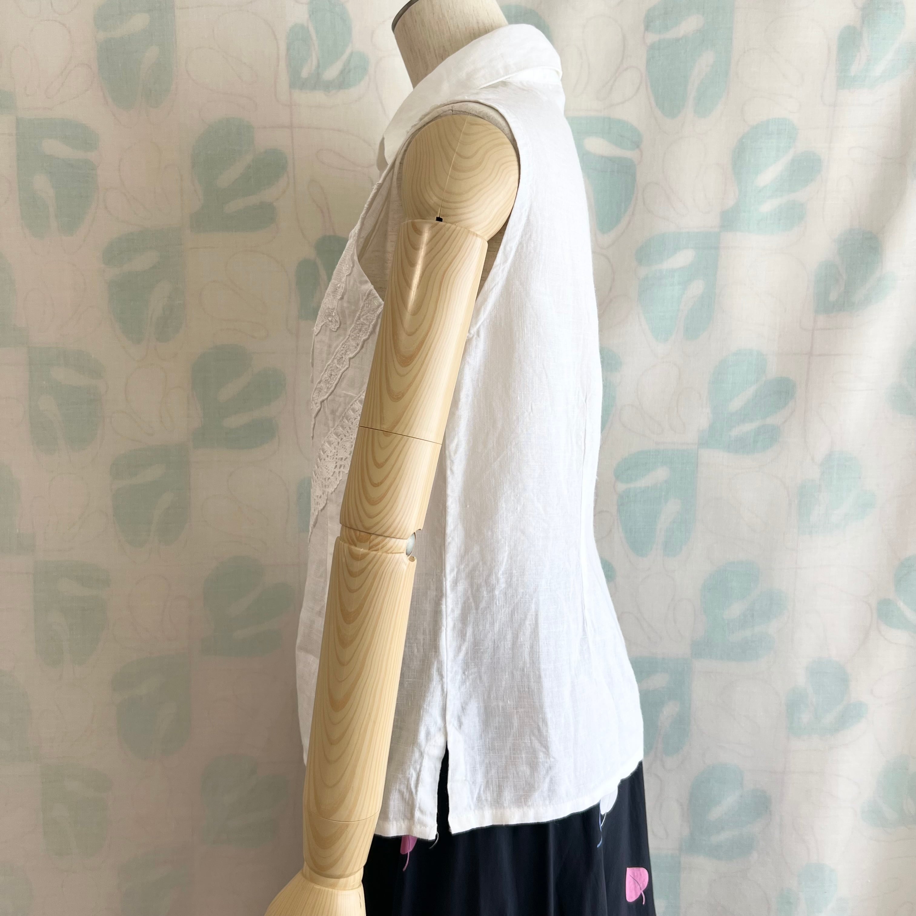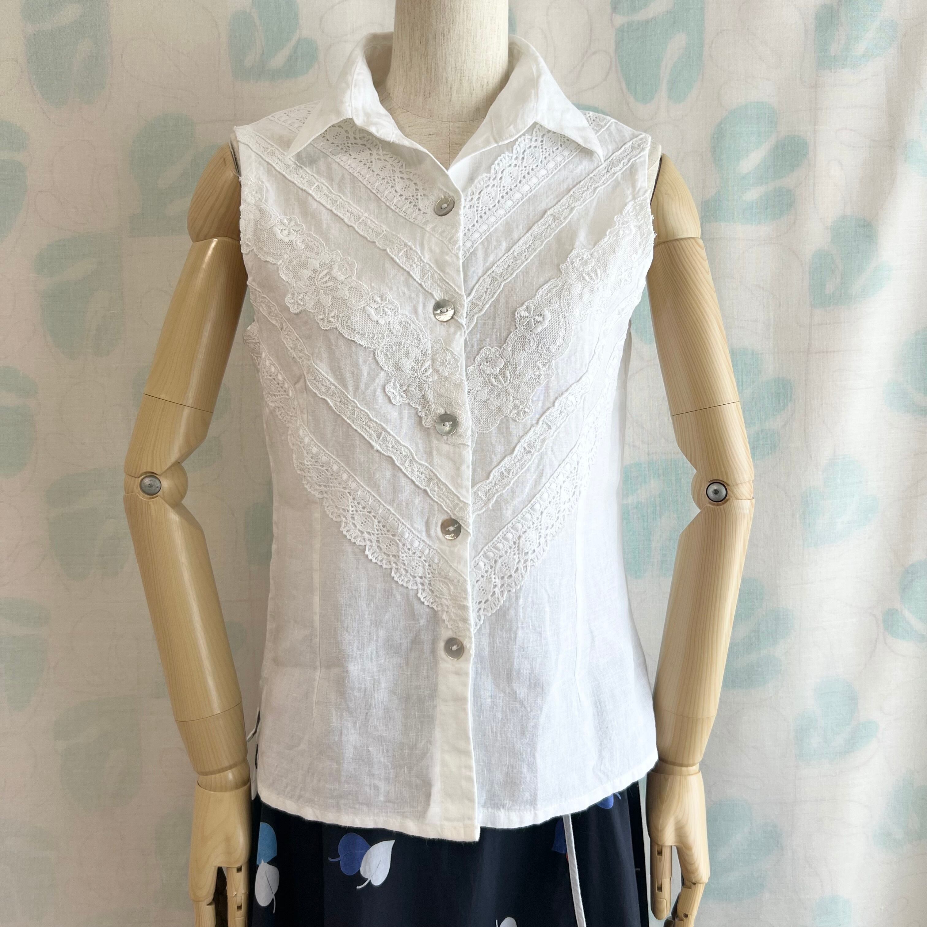 3種類のレースがあしらわれたノースリーブブラウス。イタリア製。