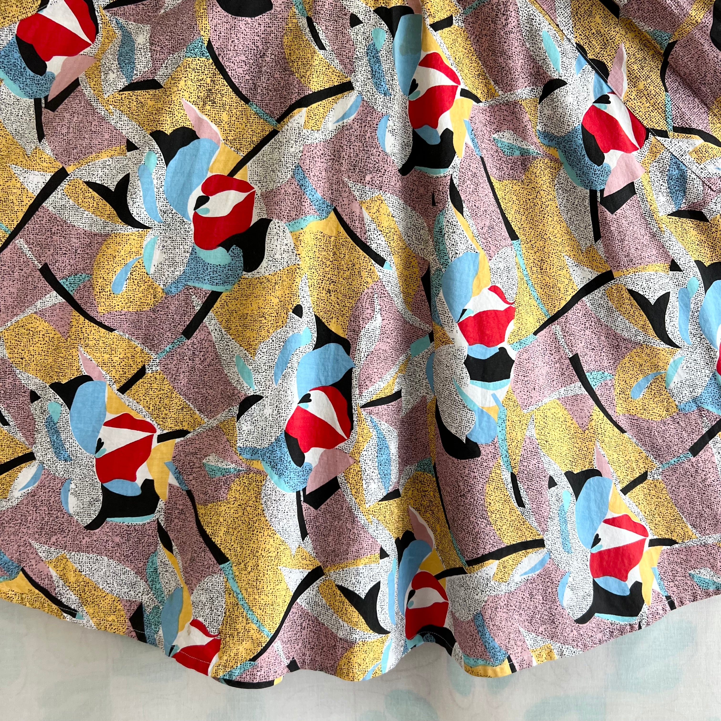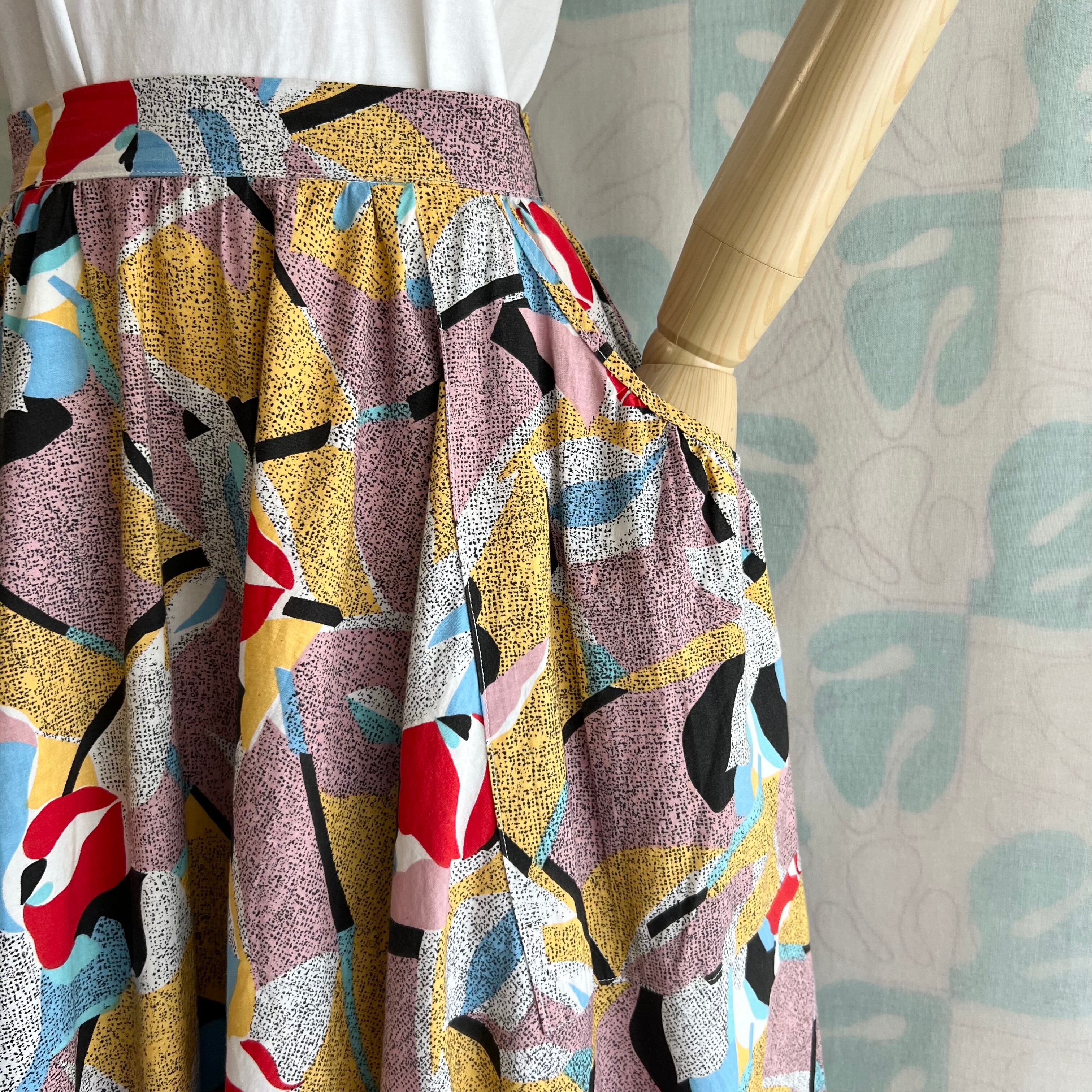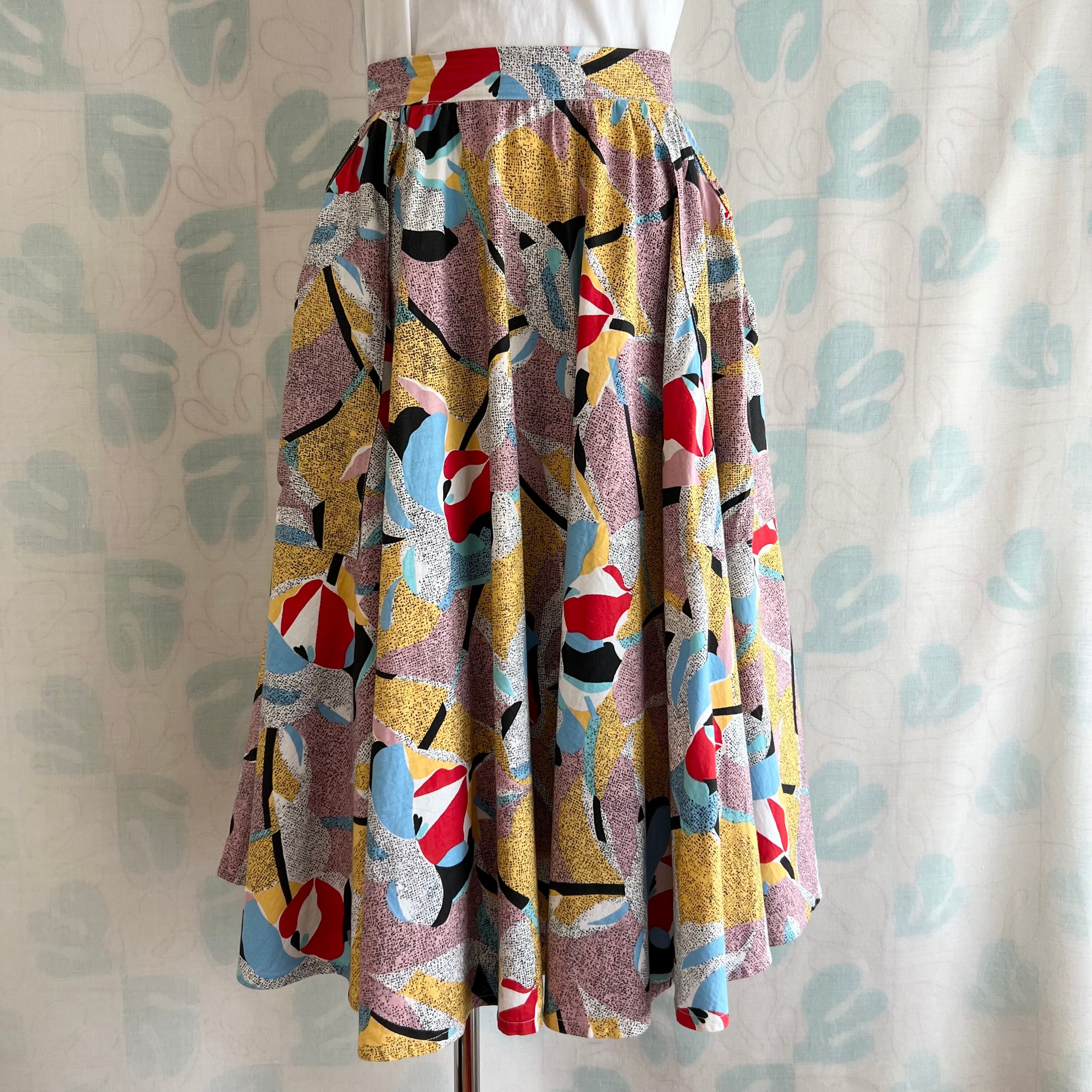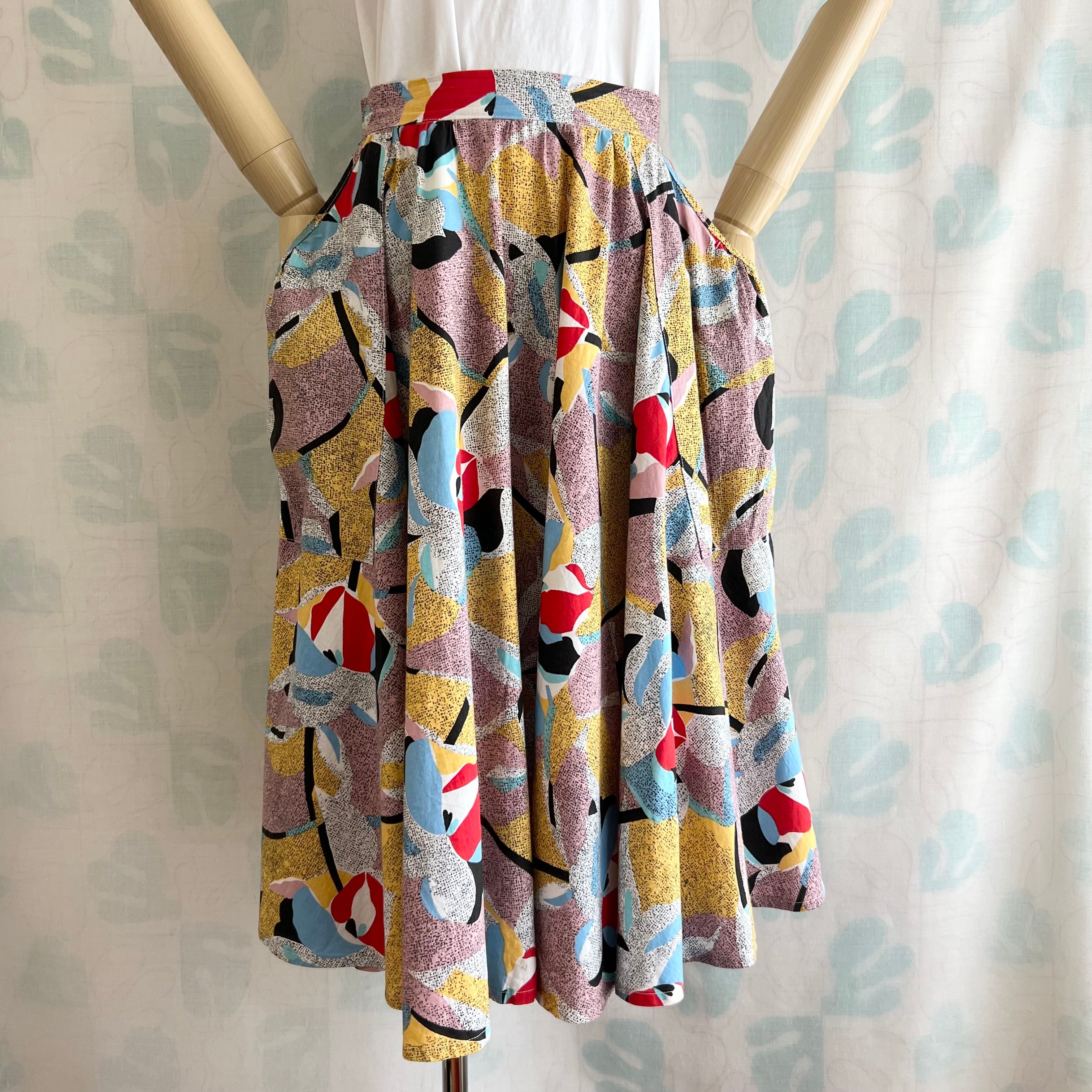 ヴィンテージ モダン柄ギャザーフレアースカート。