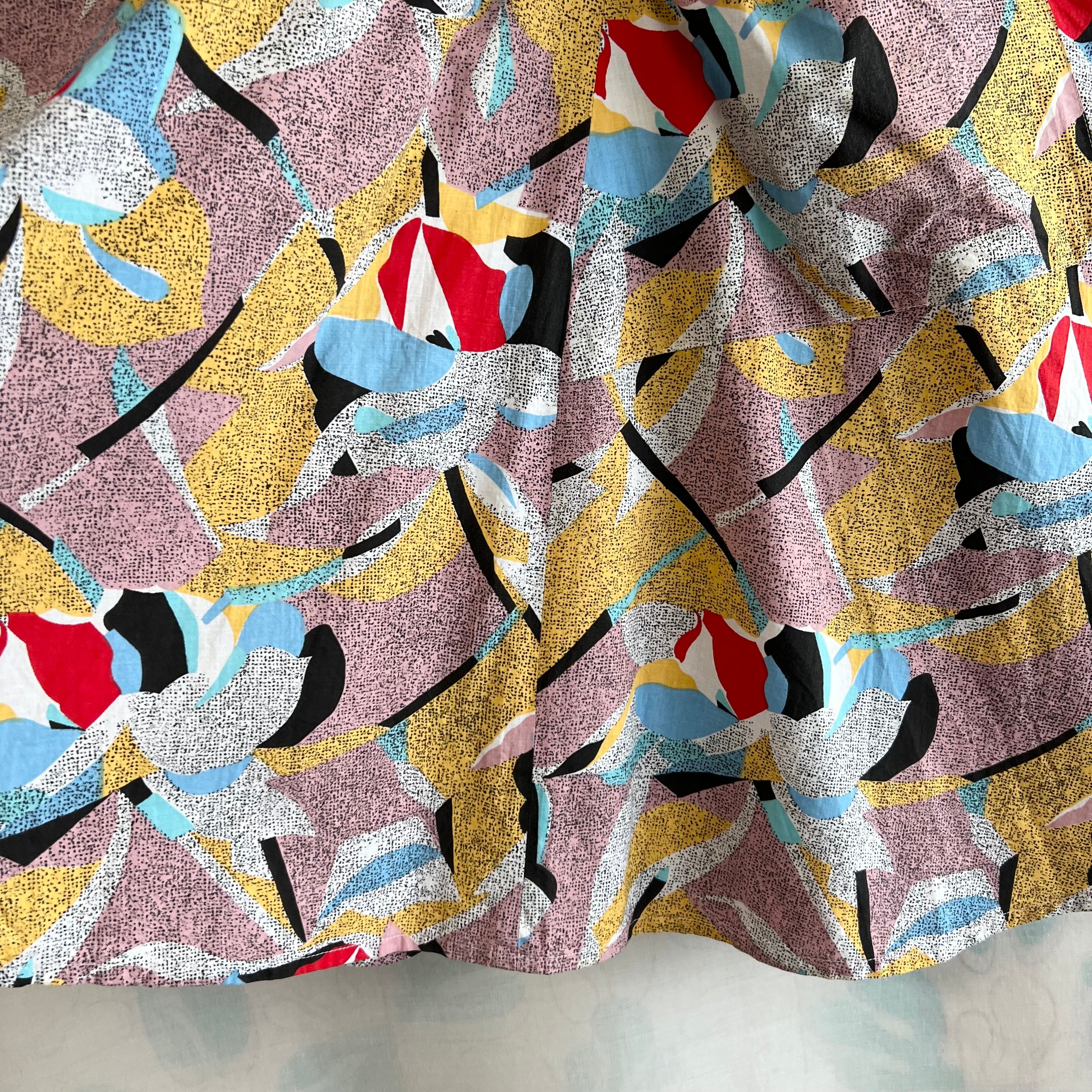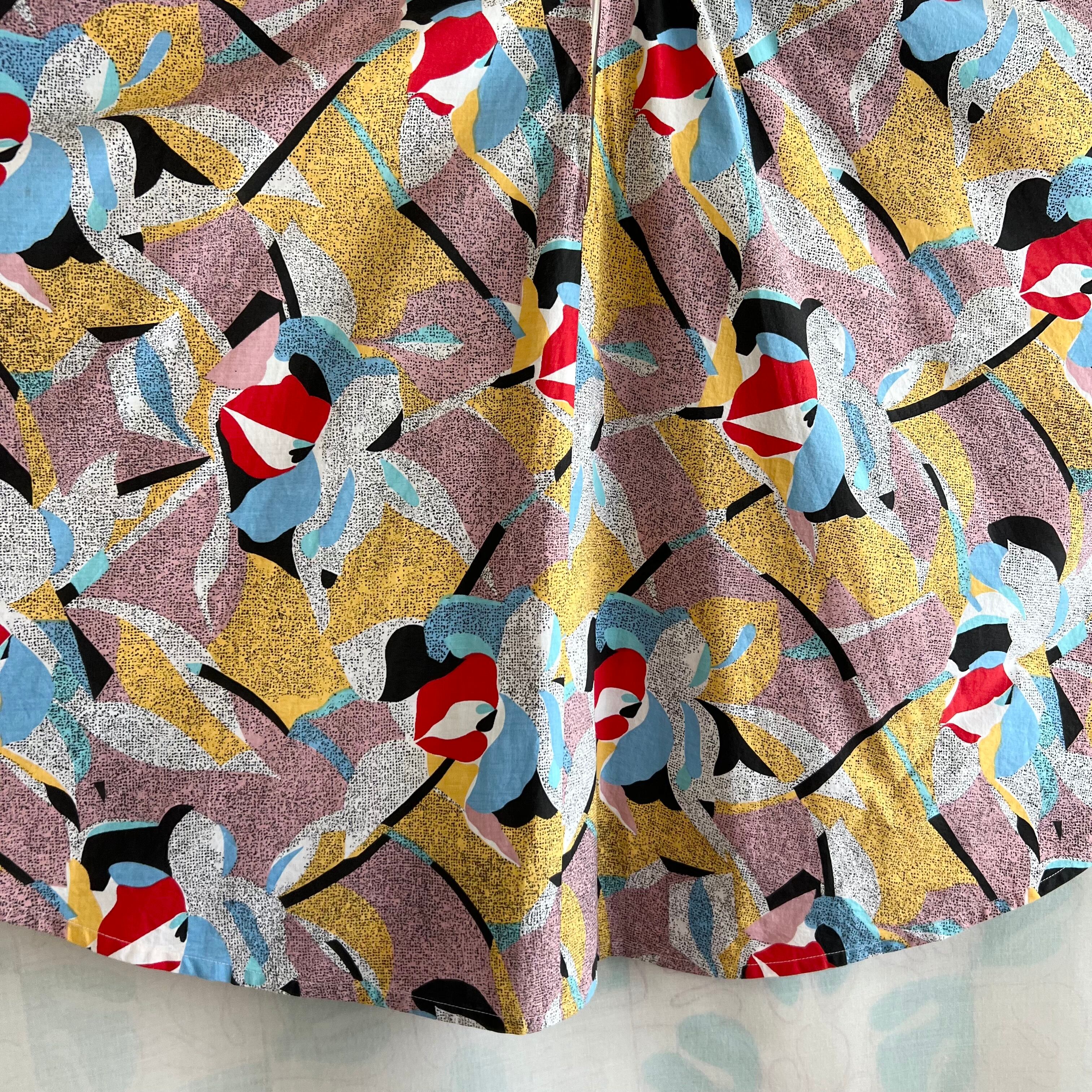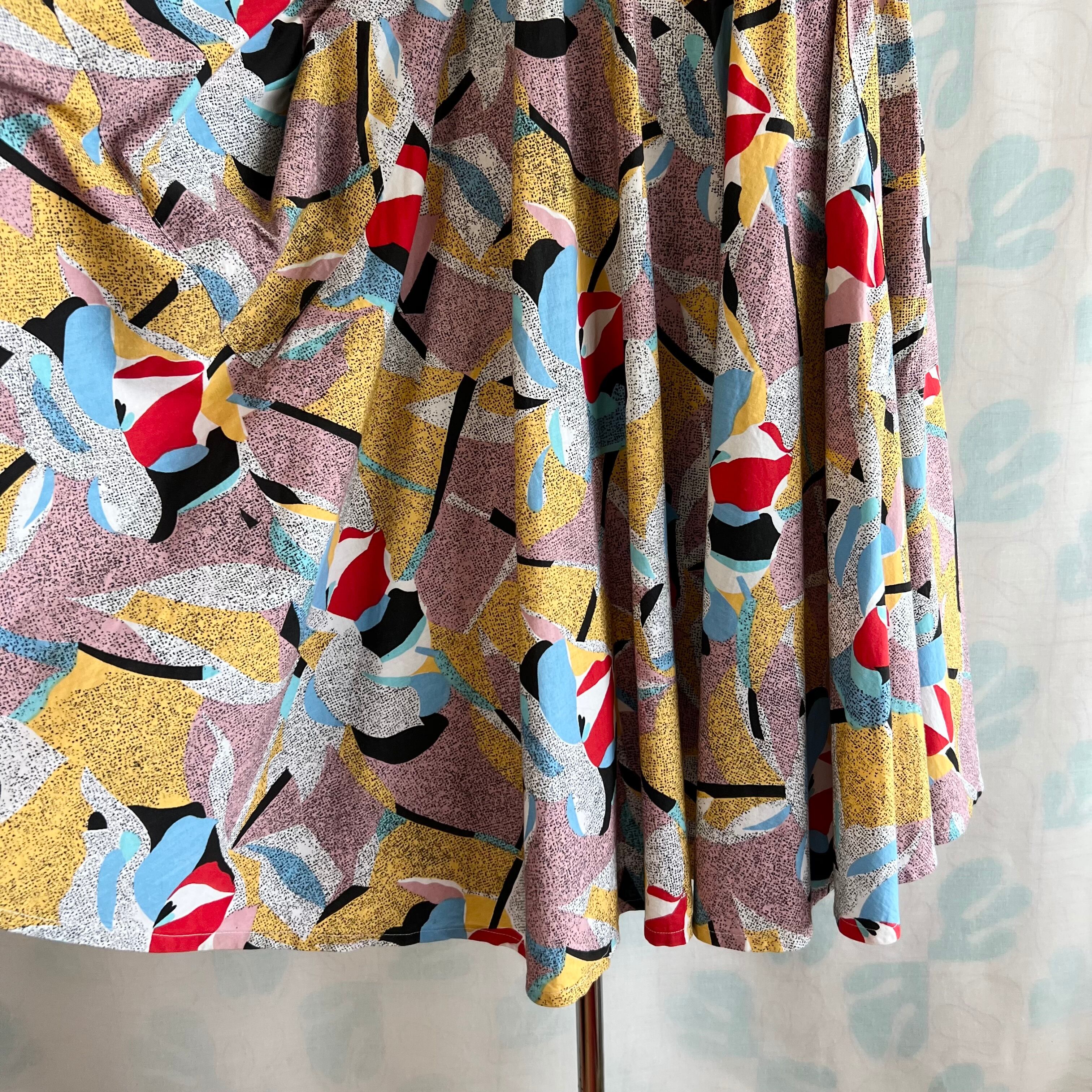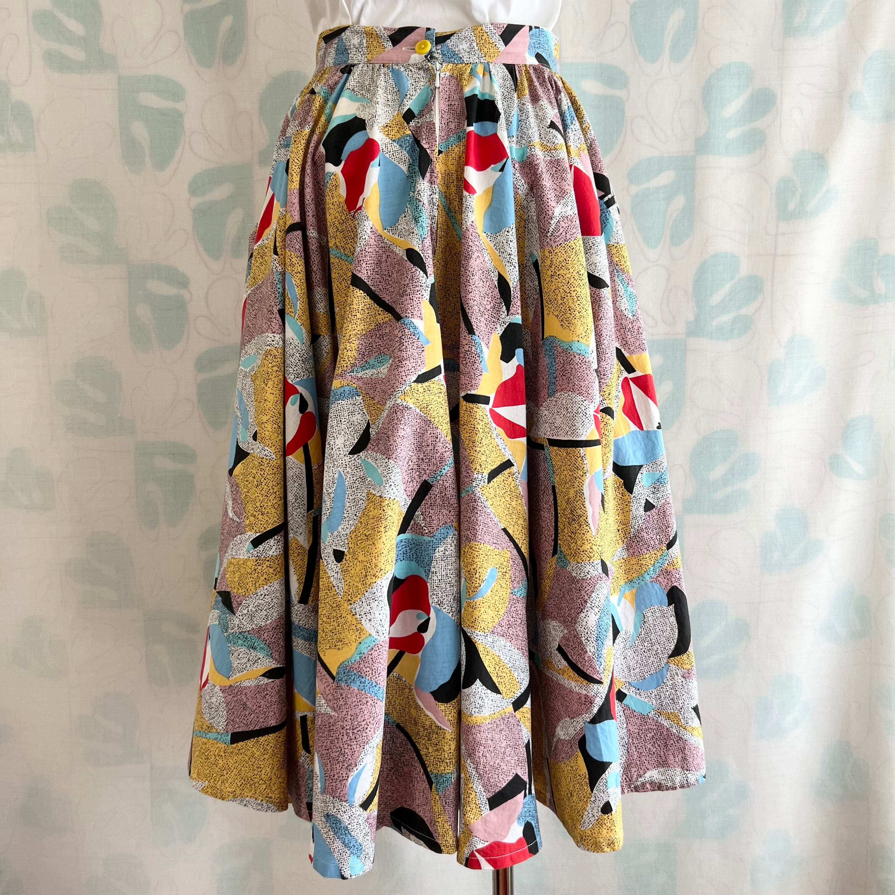 ヴィンテージ モダン柄ギャザーフレアースカート。