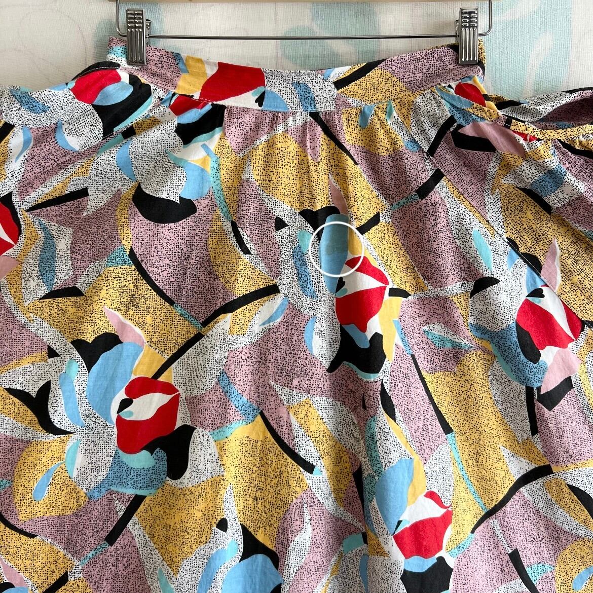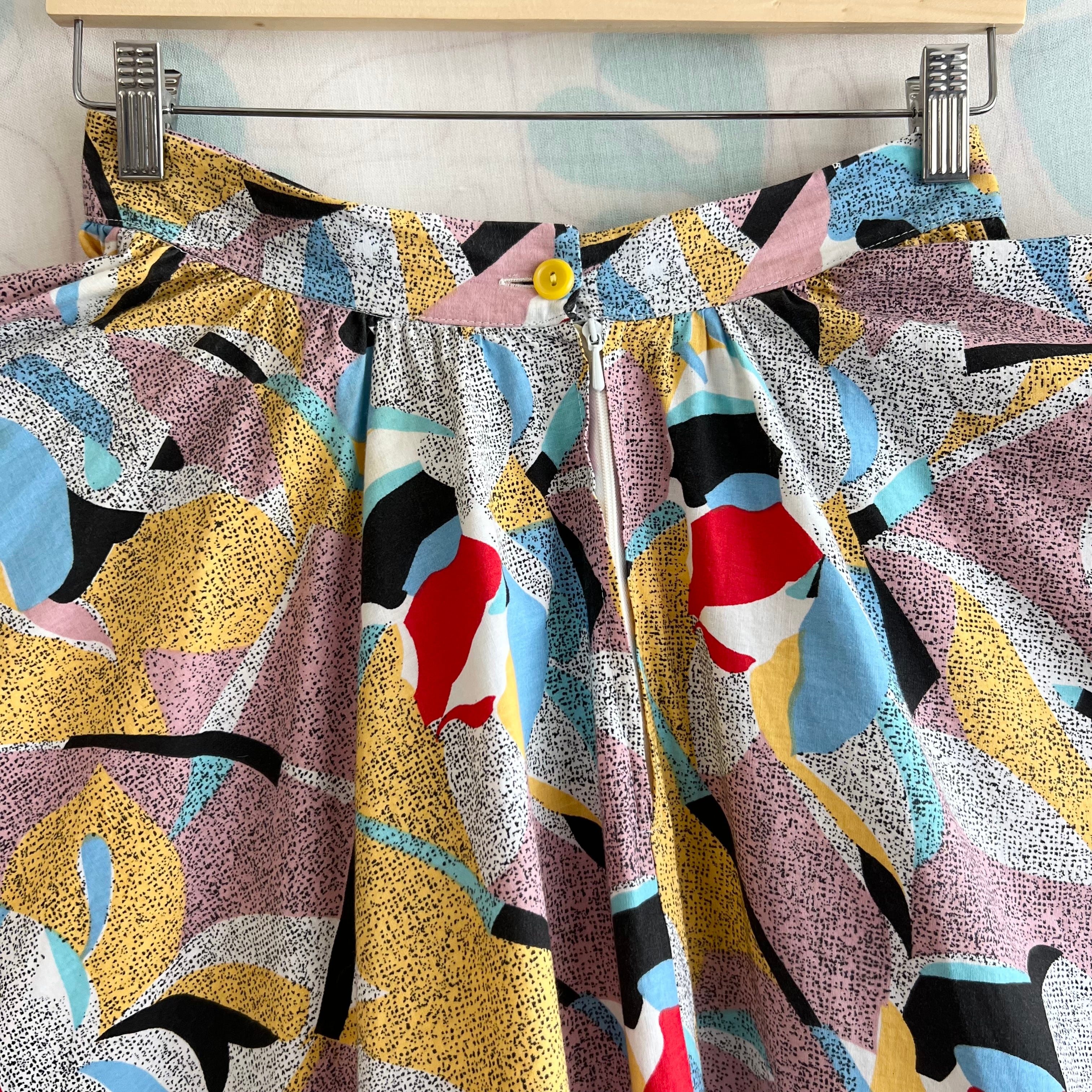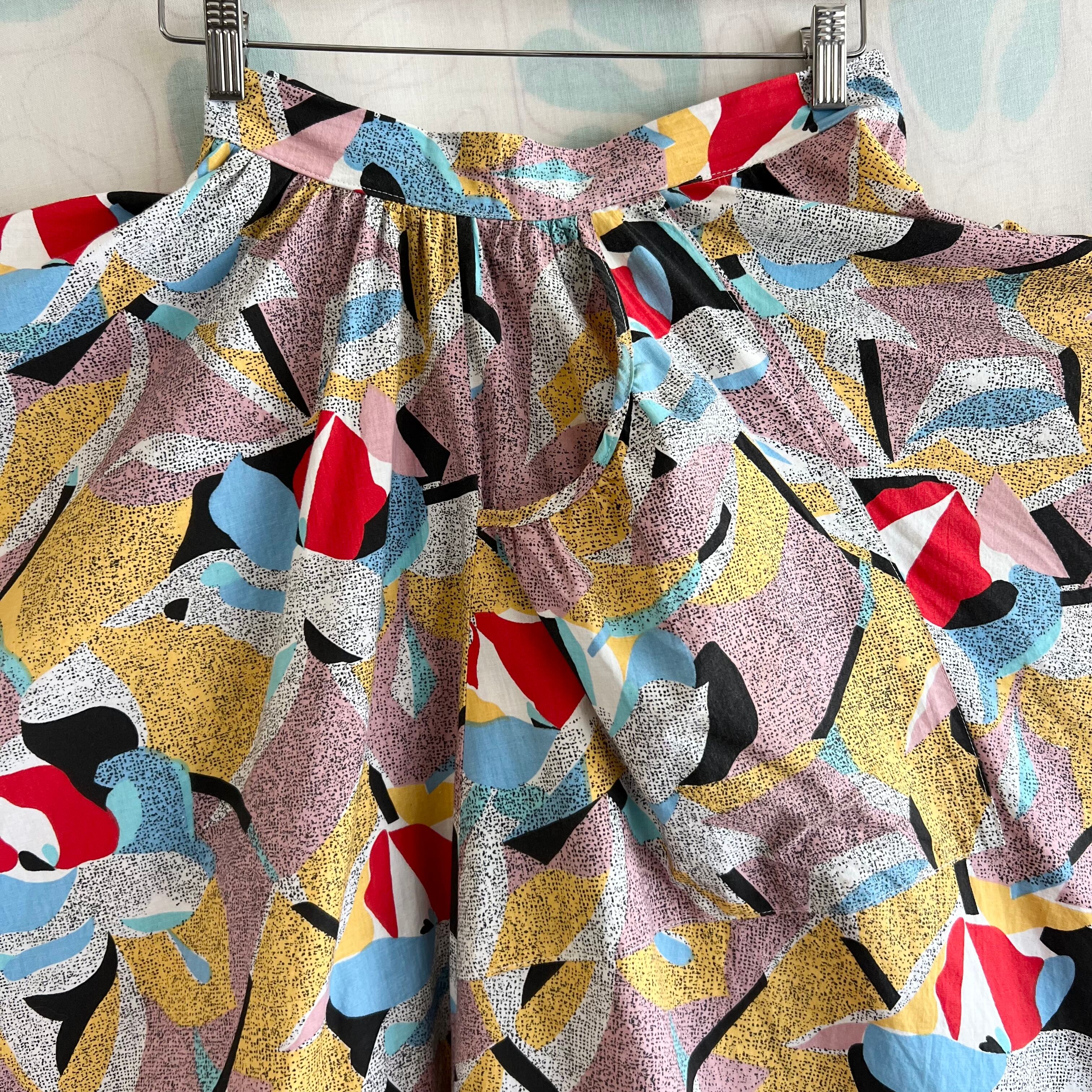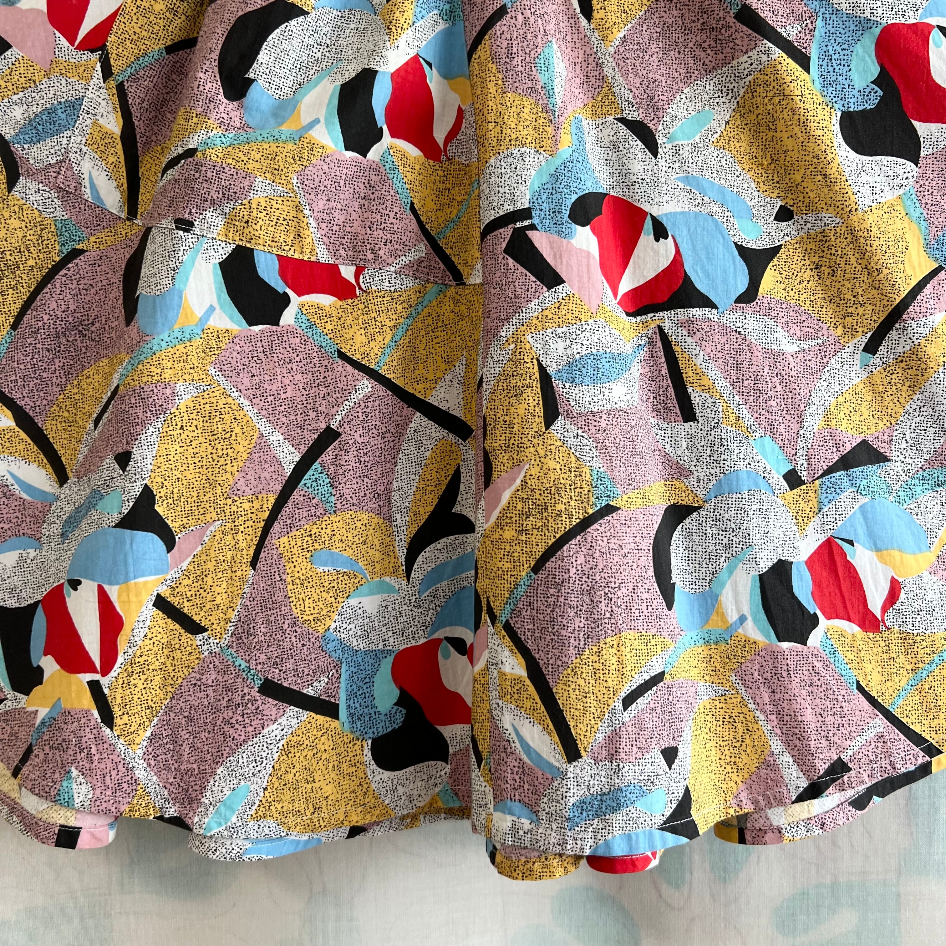 ヴィンテージ モダン柄ギャザーフレアースカート。