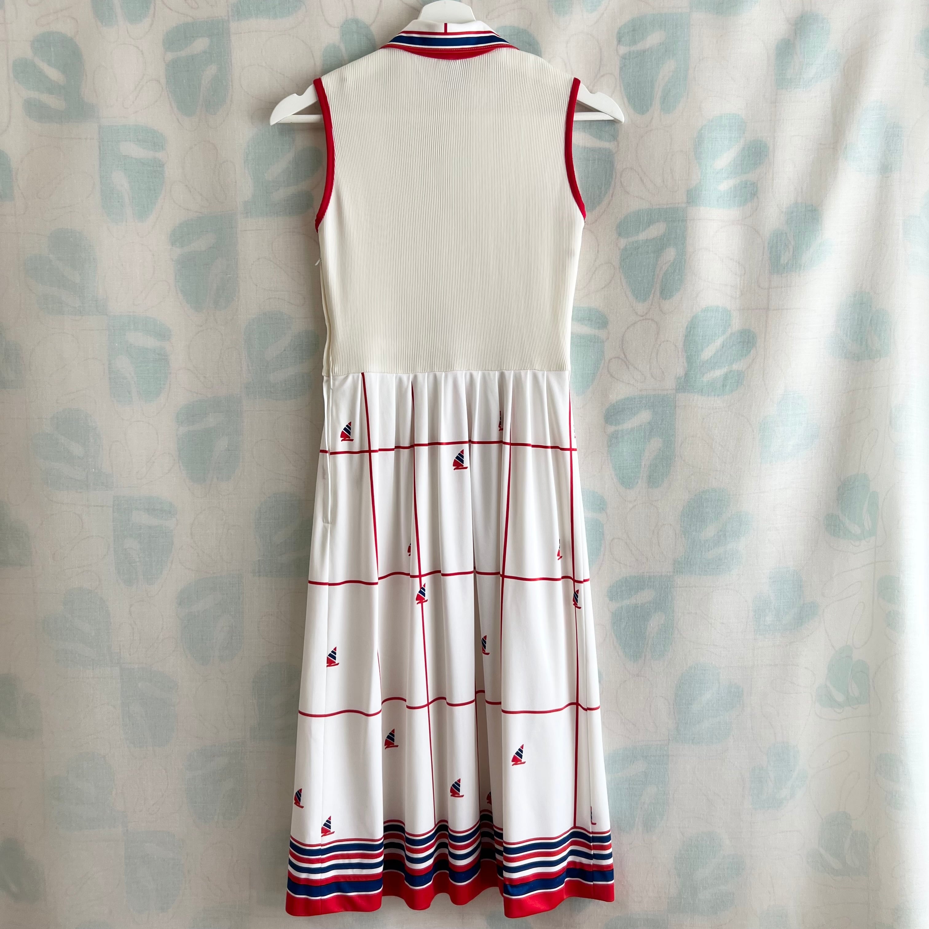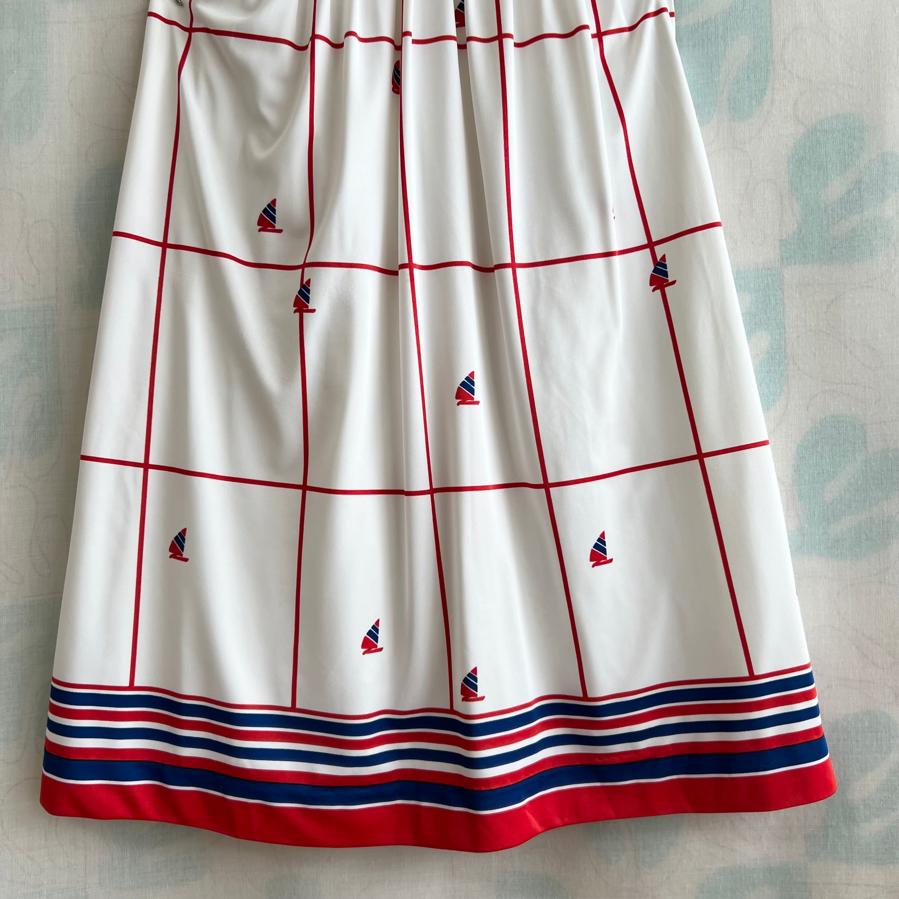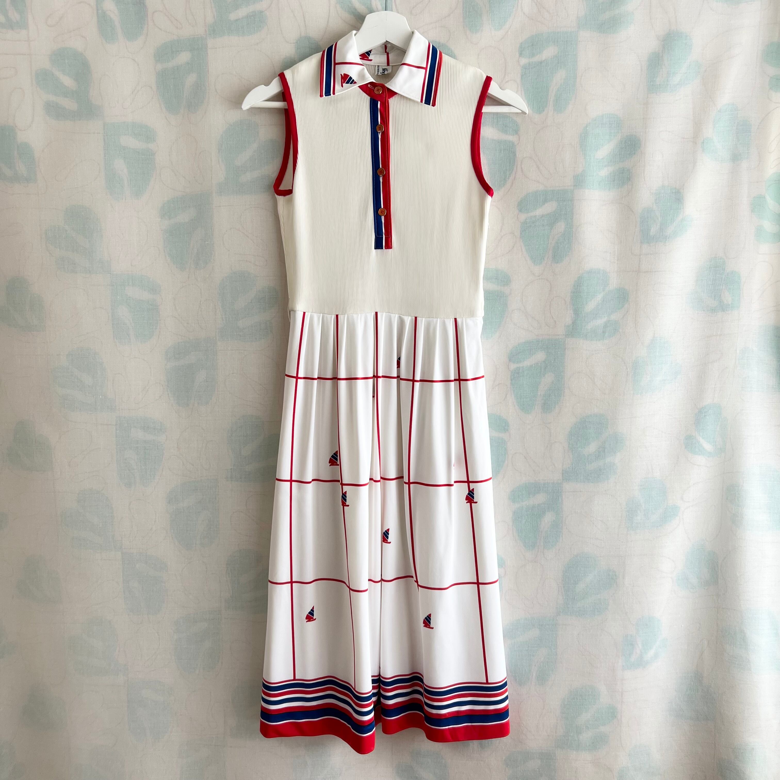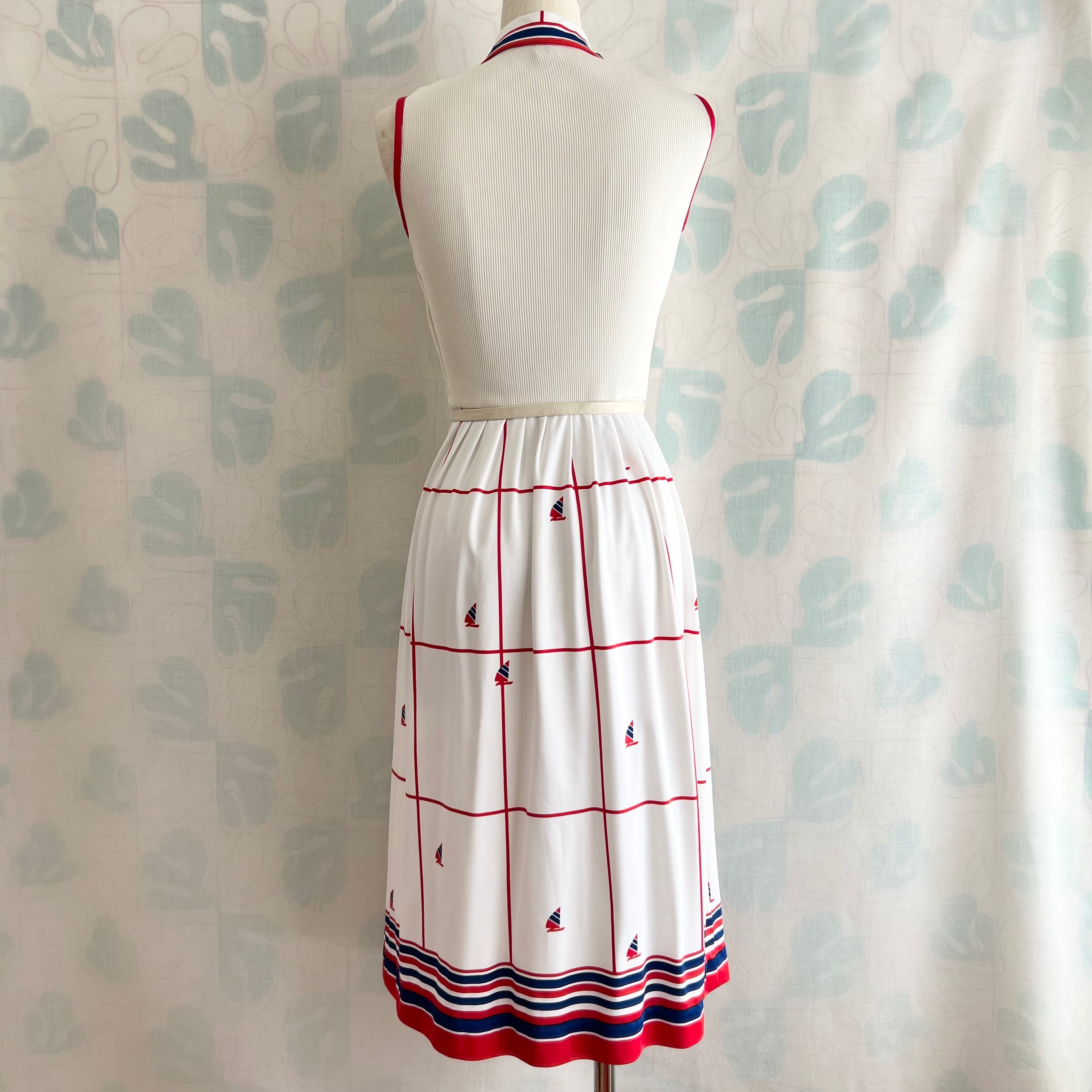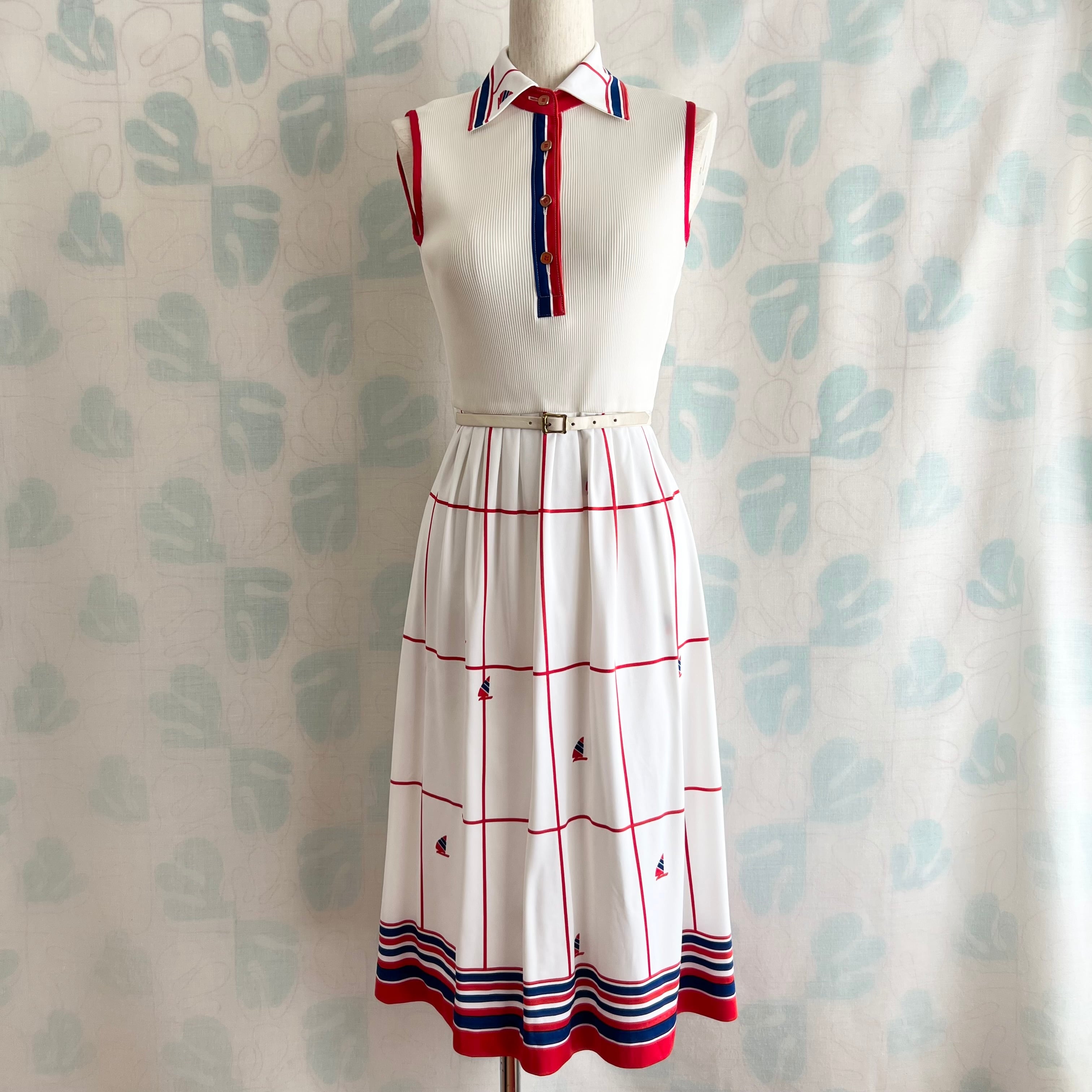 80's トリコロール マリンプリントワンピース。ベルト付き。