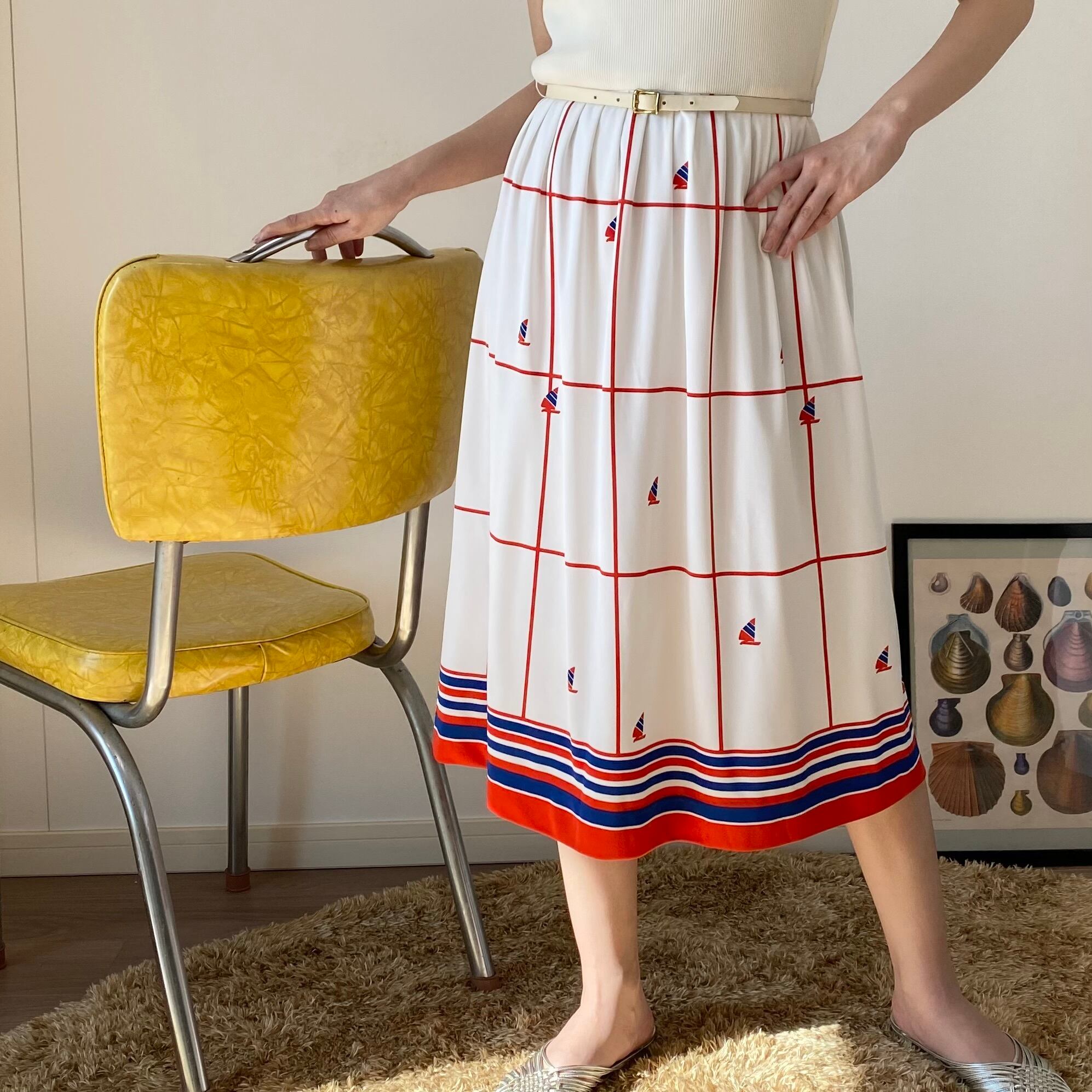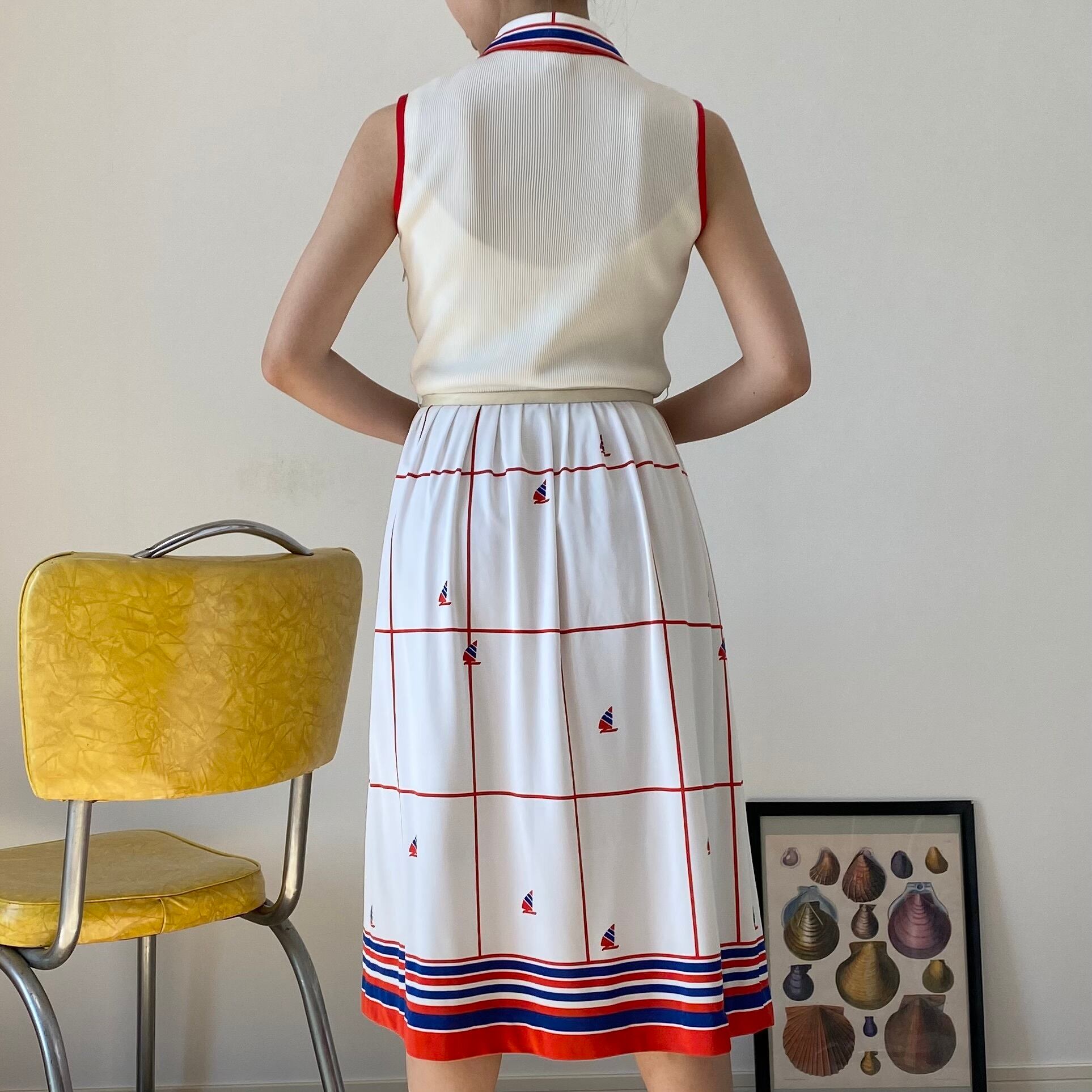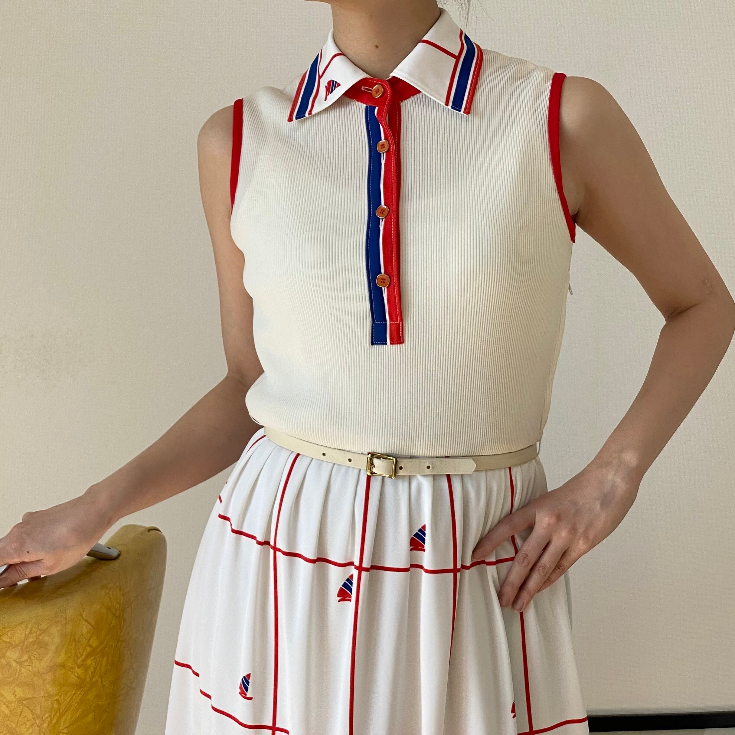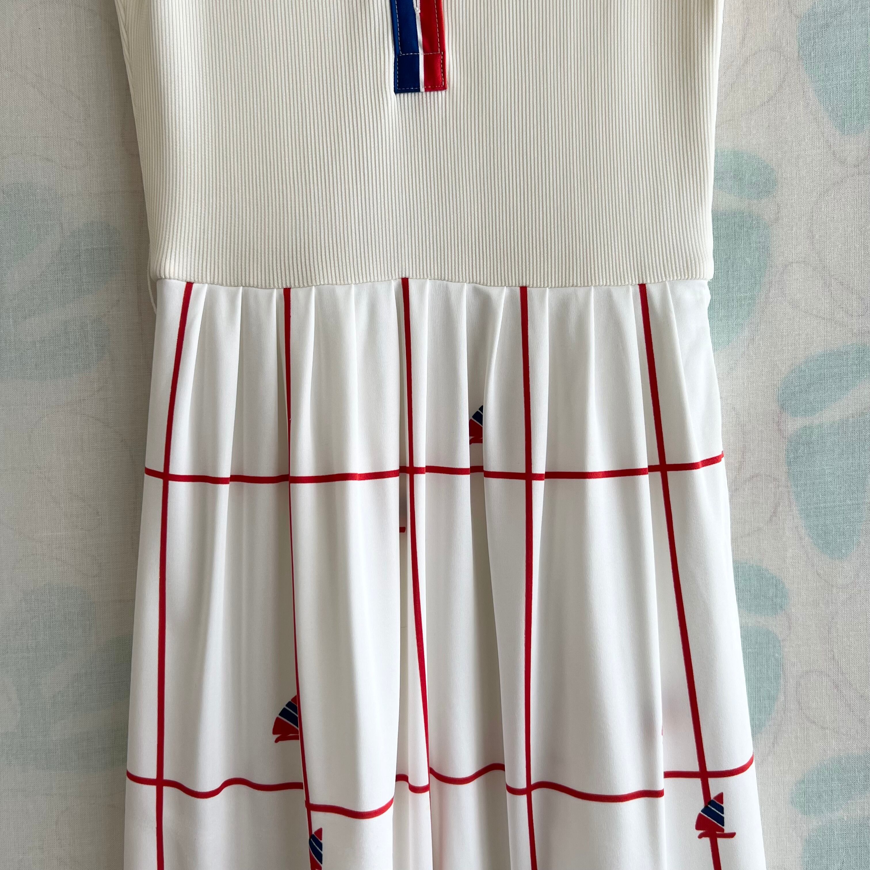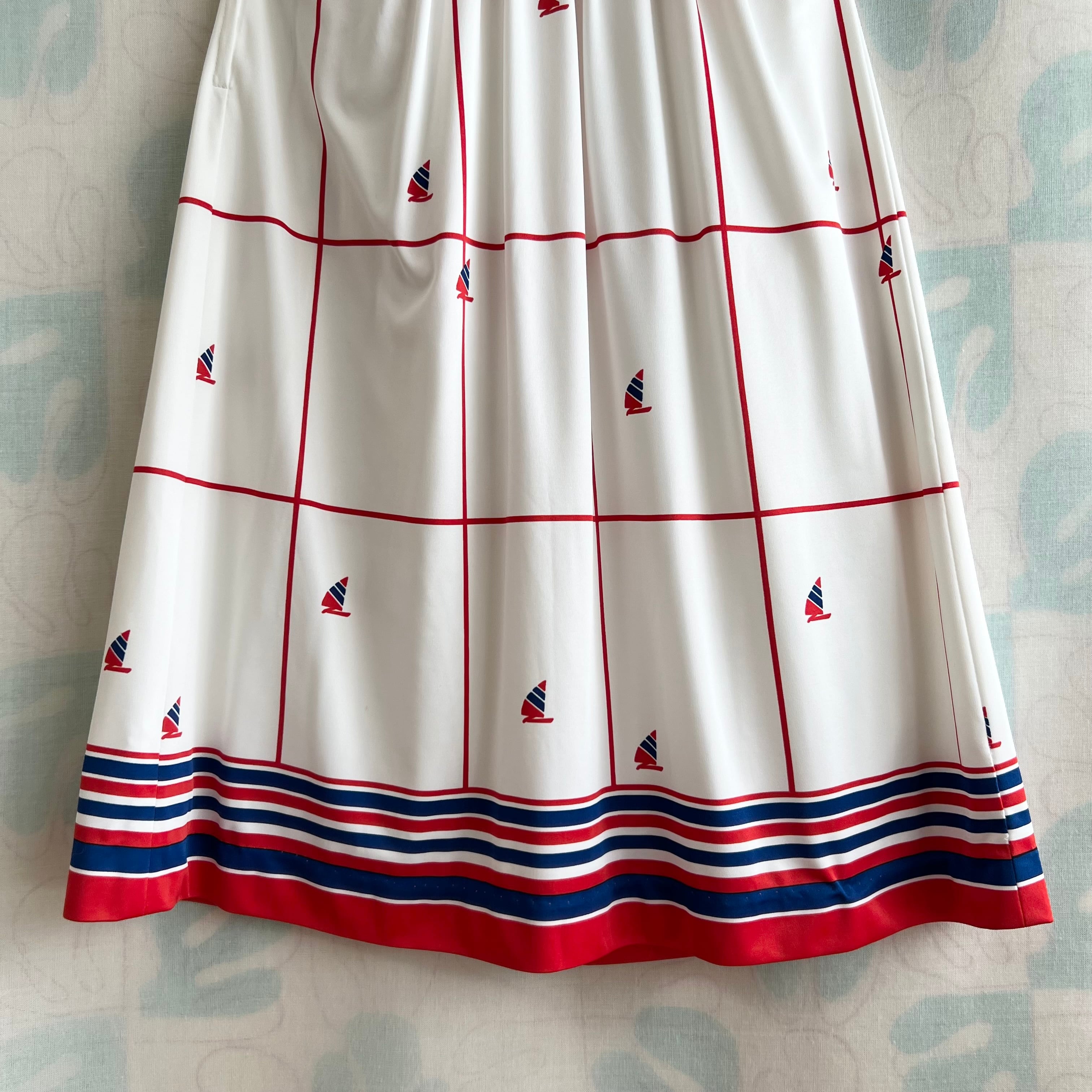 80's トリコロール マリンプリントワンピース。ベルト付き。