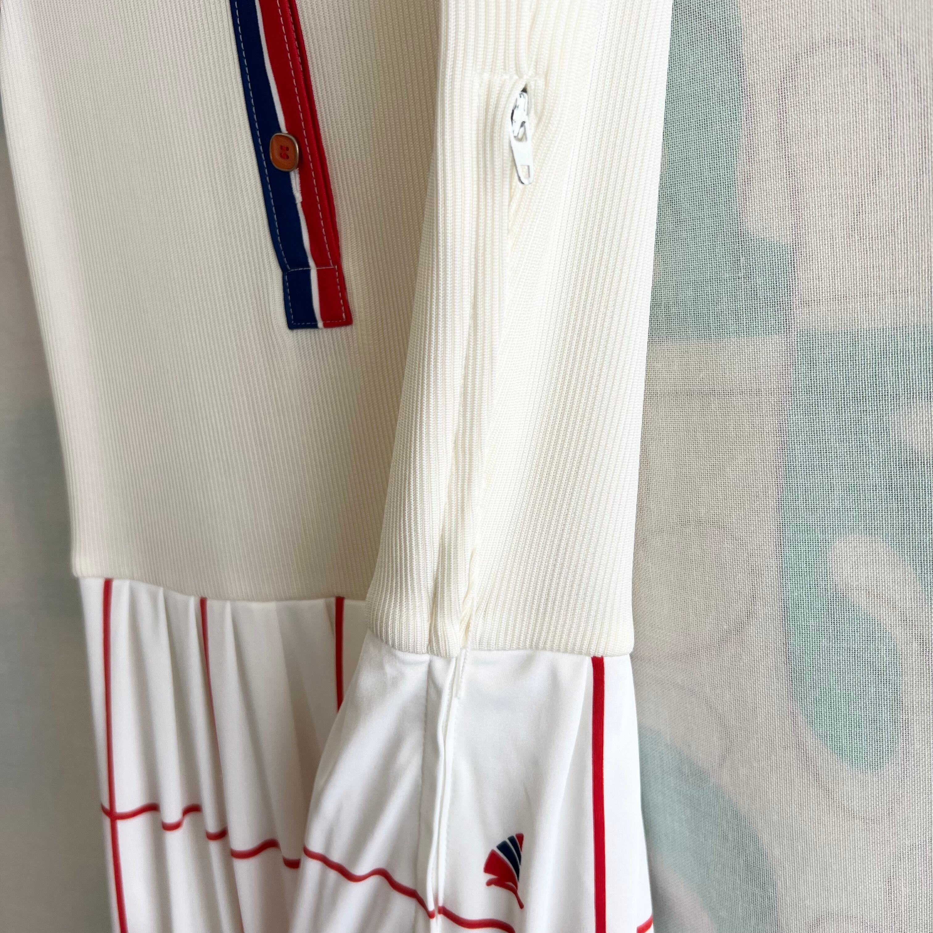 襟と前立て、スカートはツルッとしたホワイト生地。