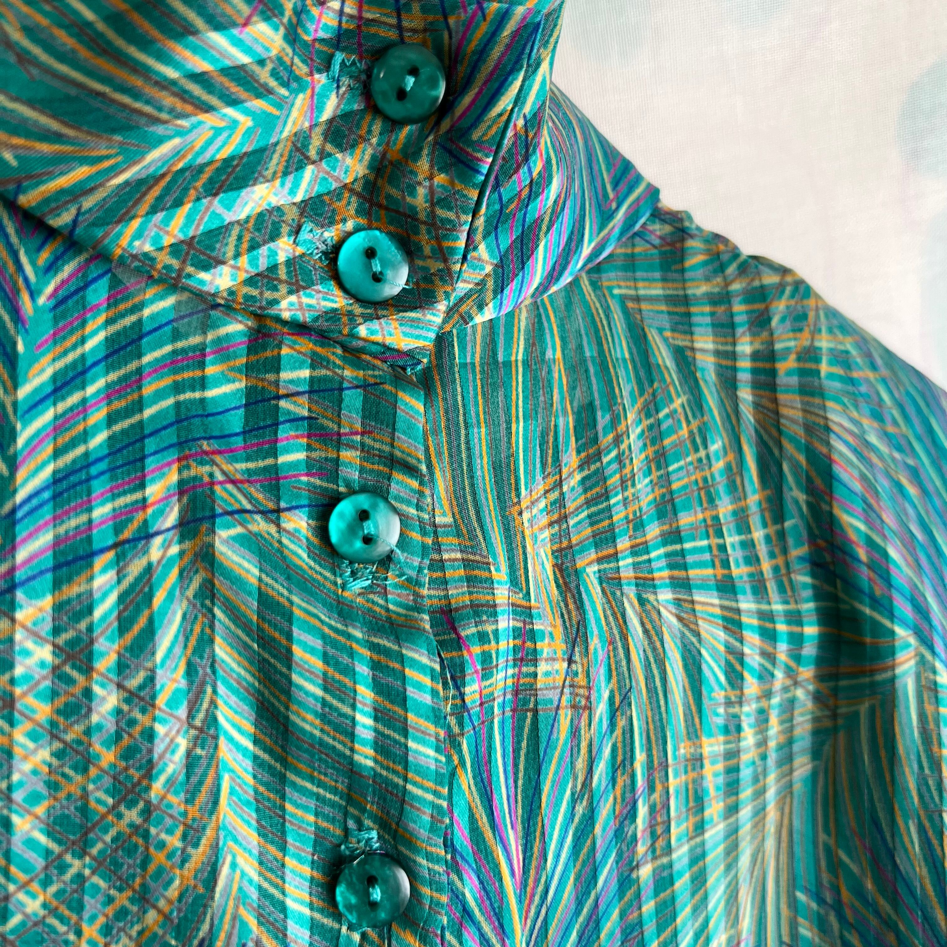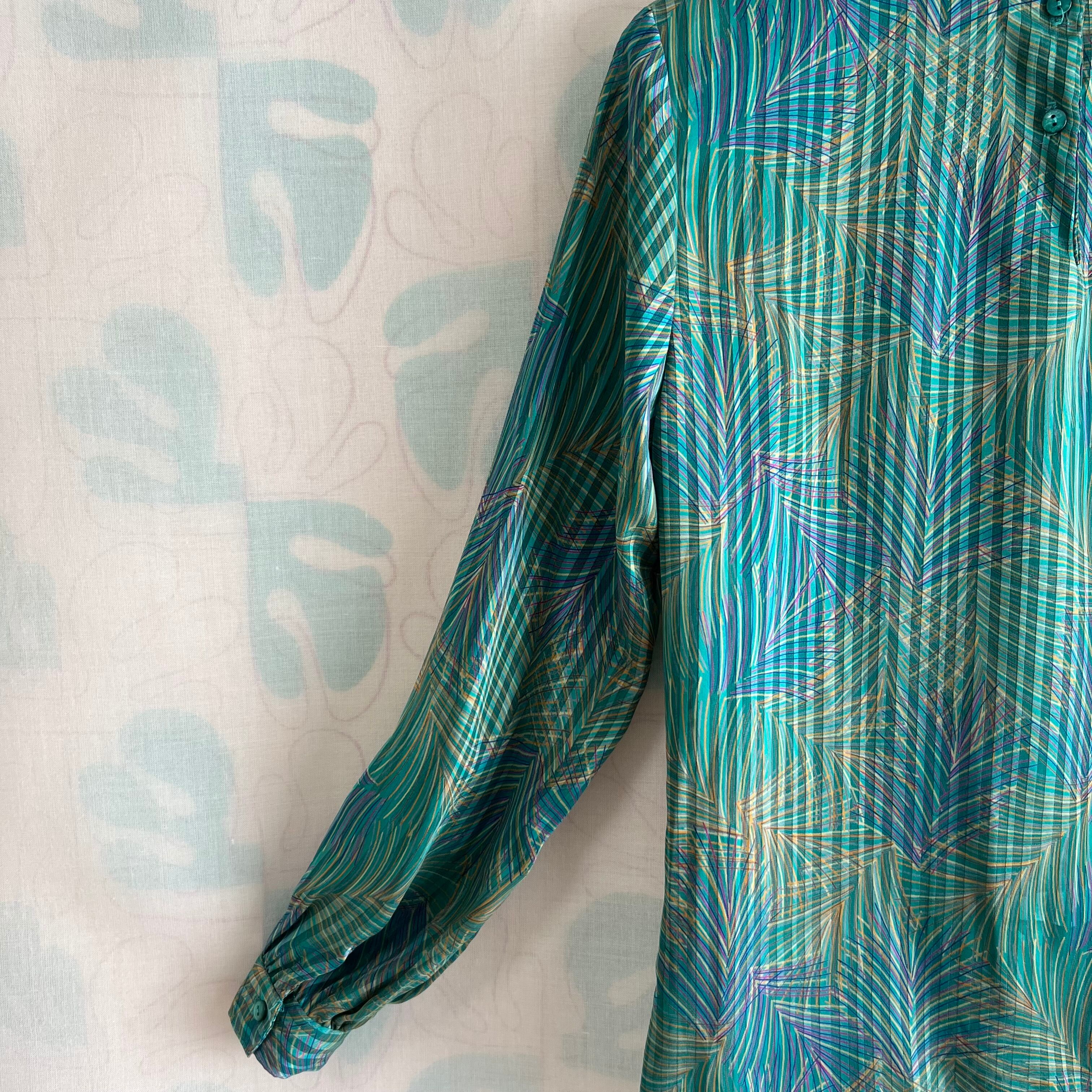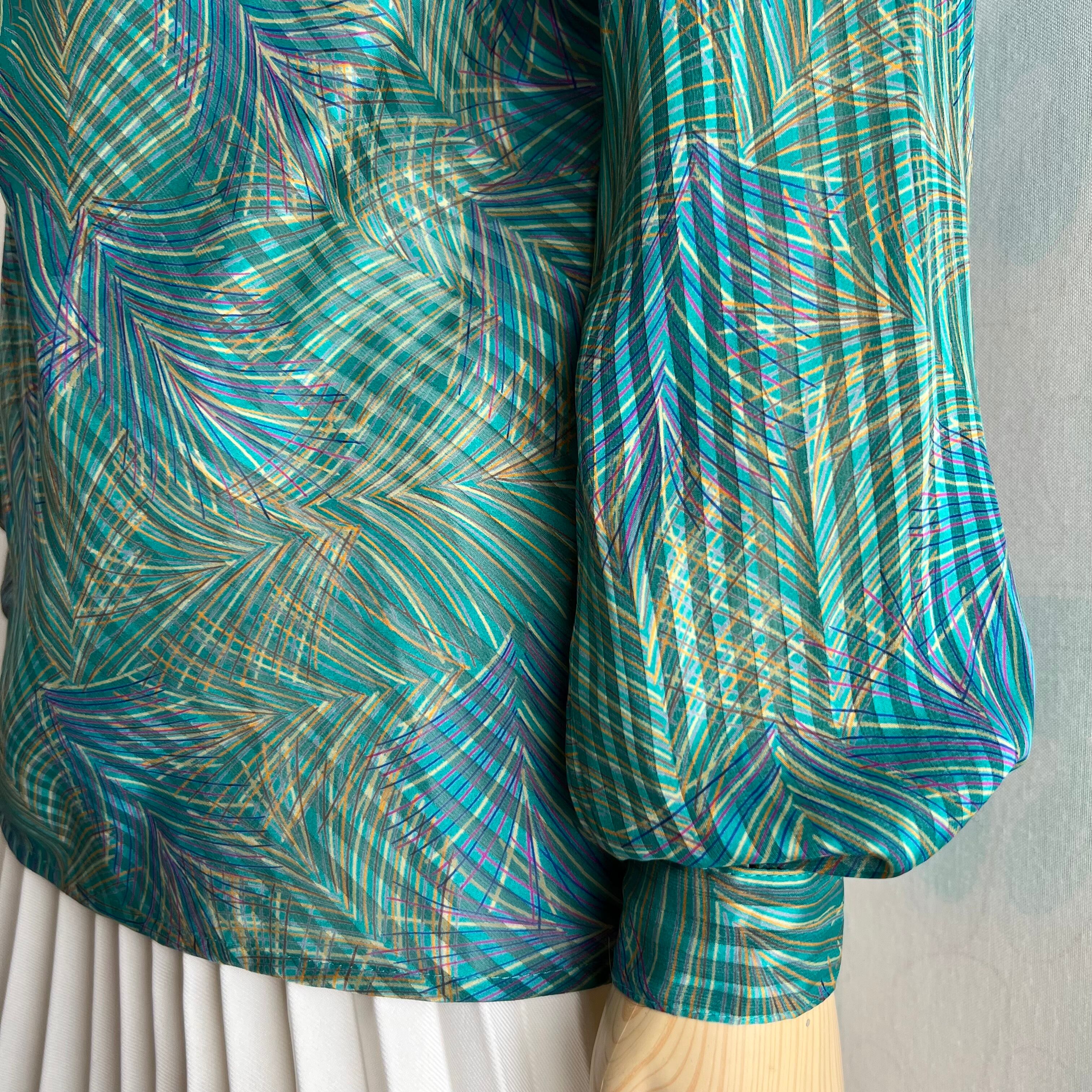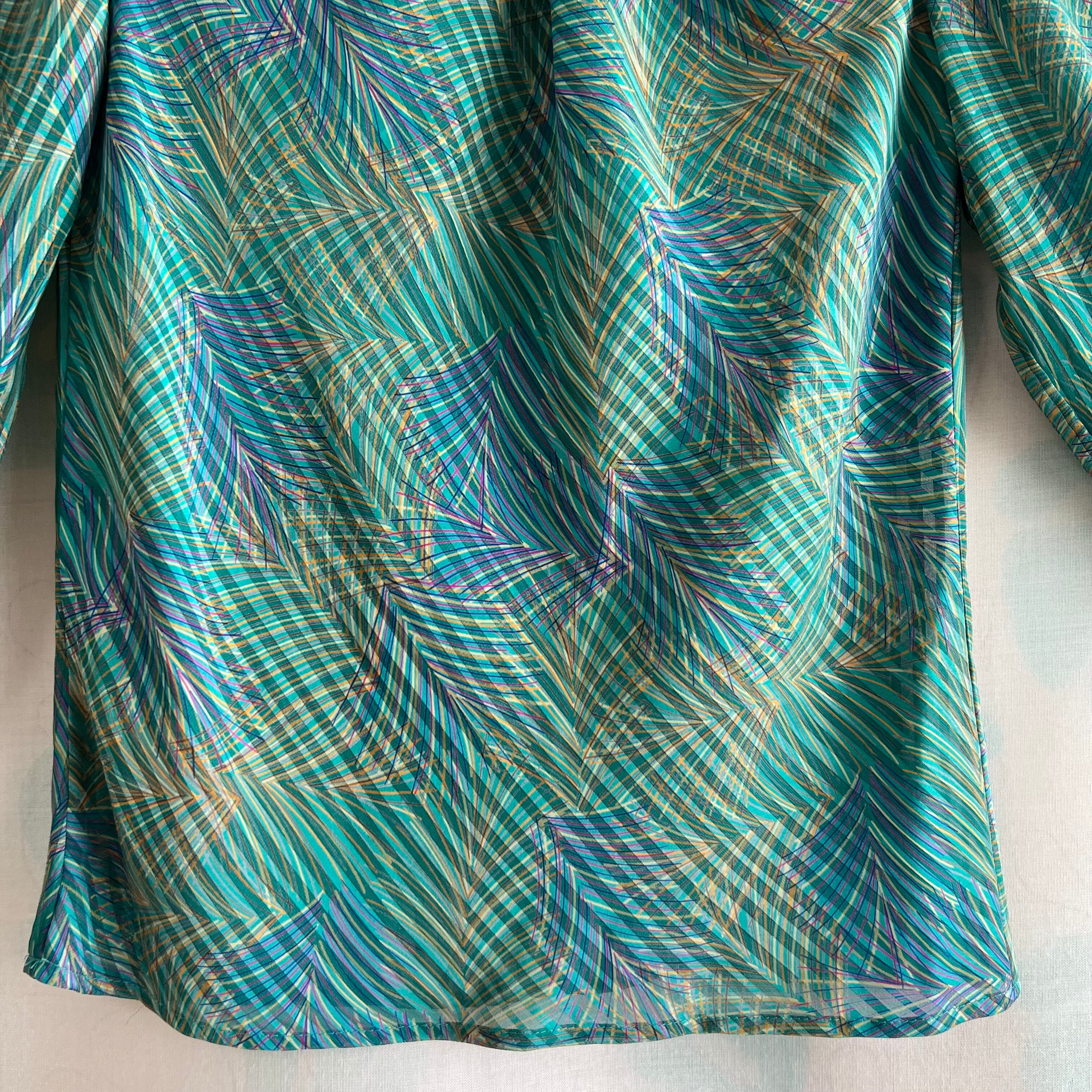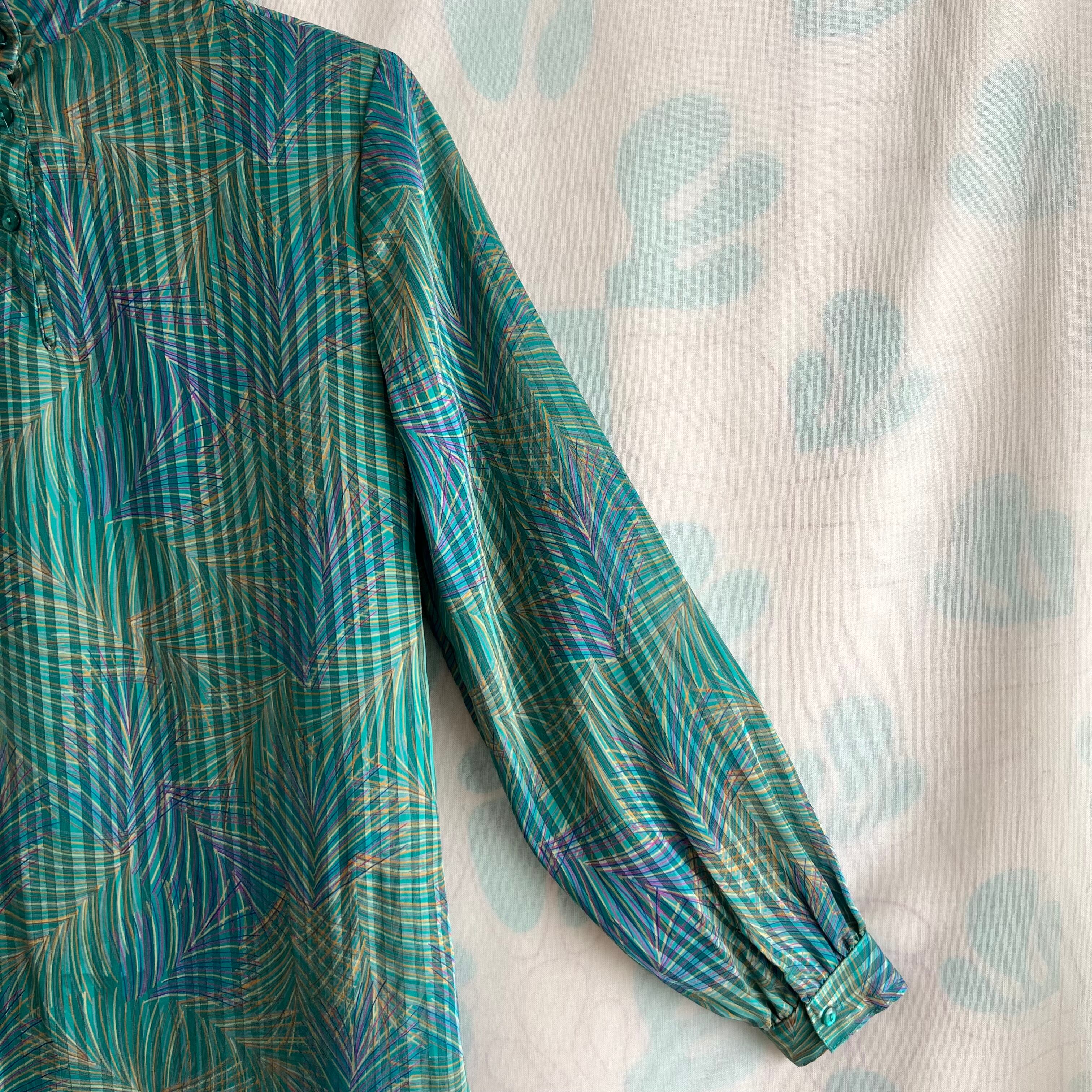 80's green print sheer pullover