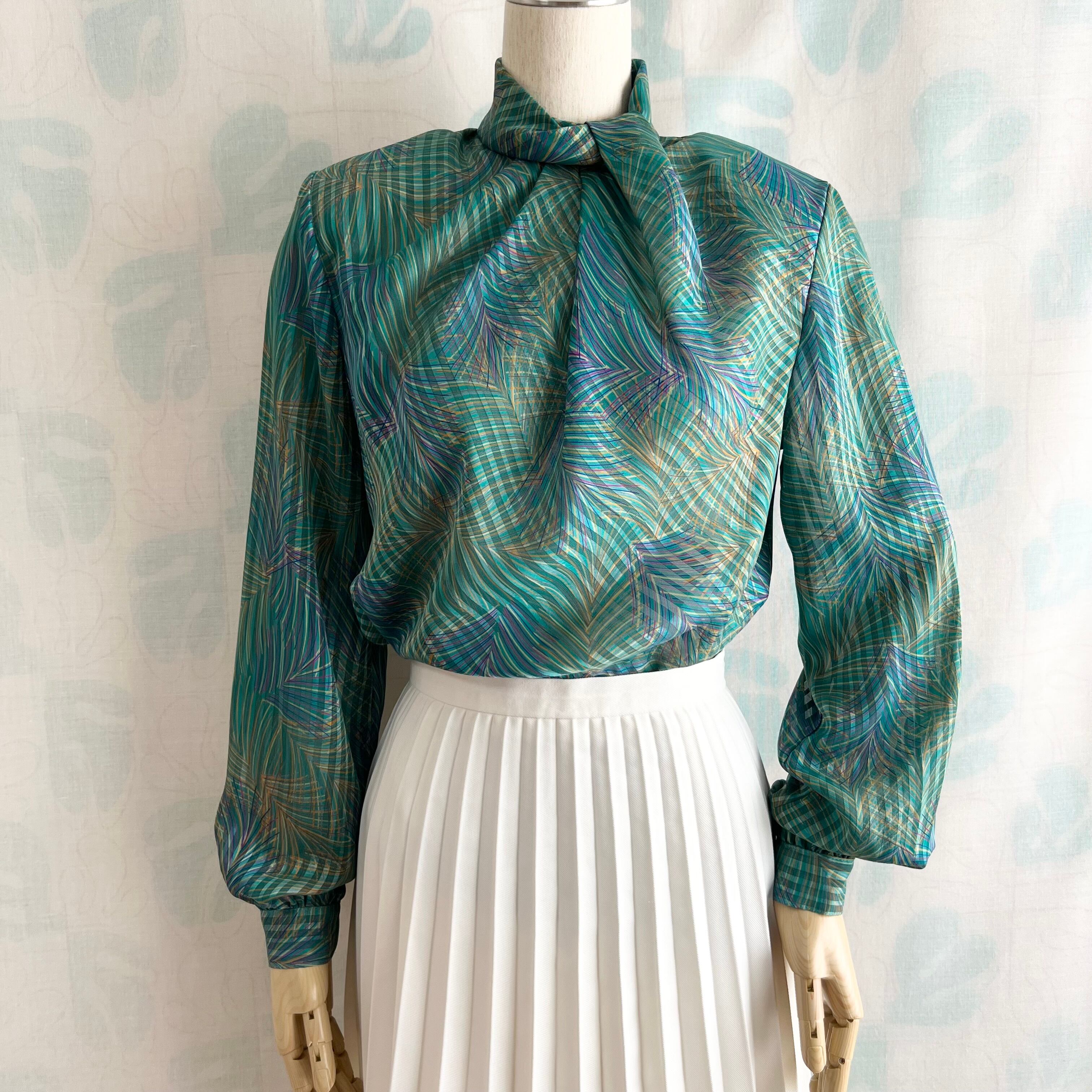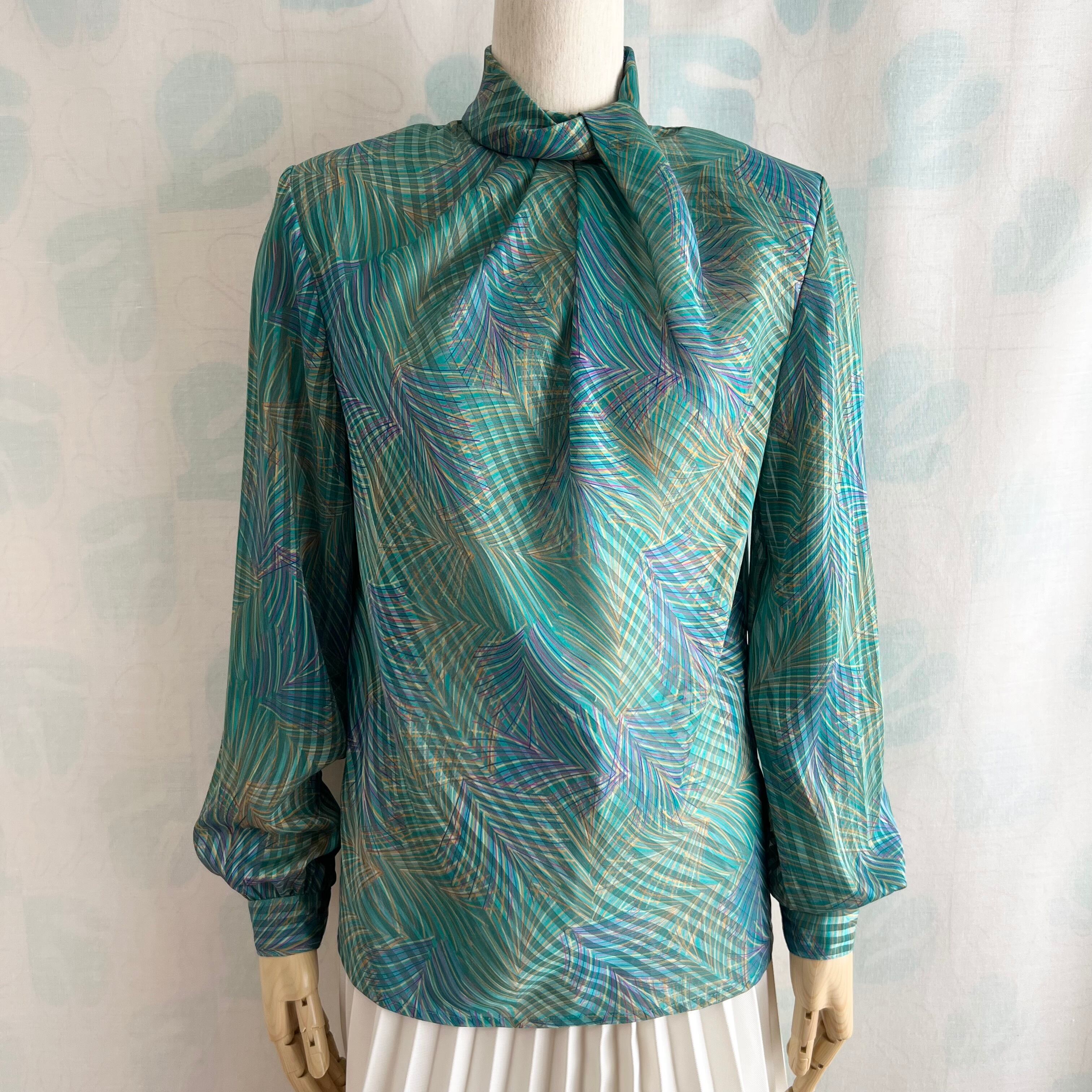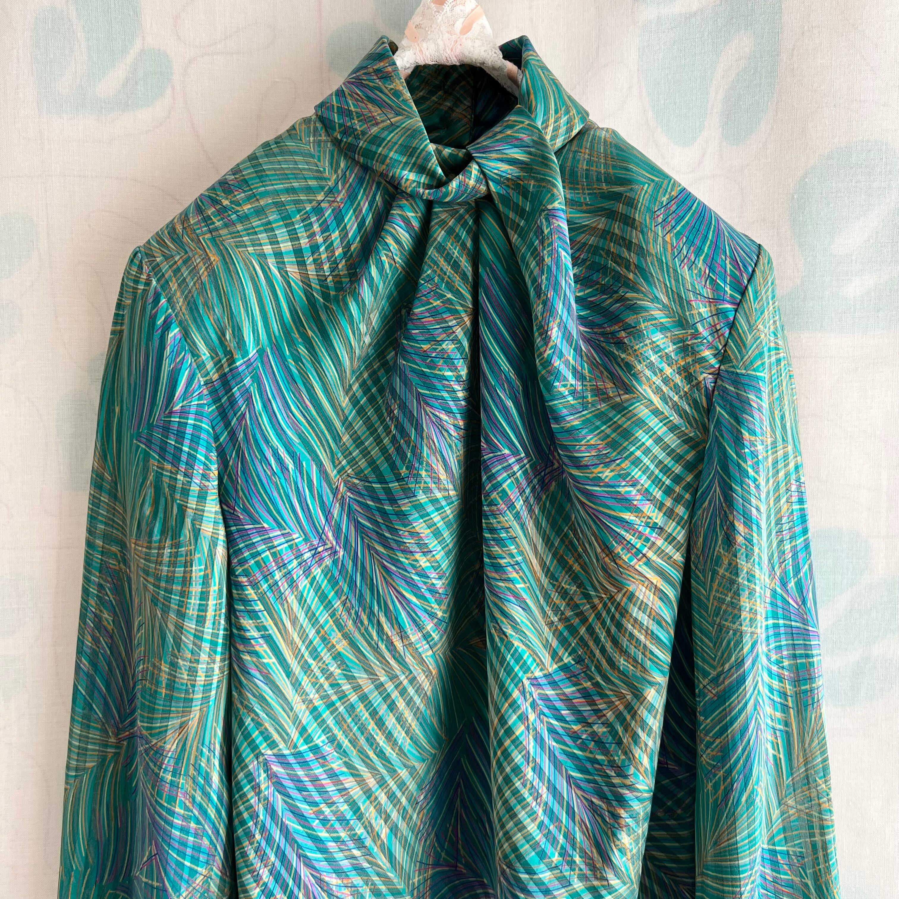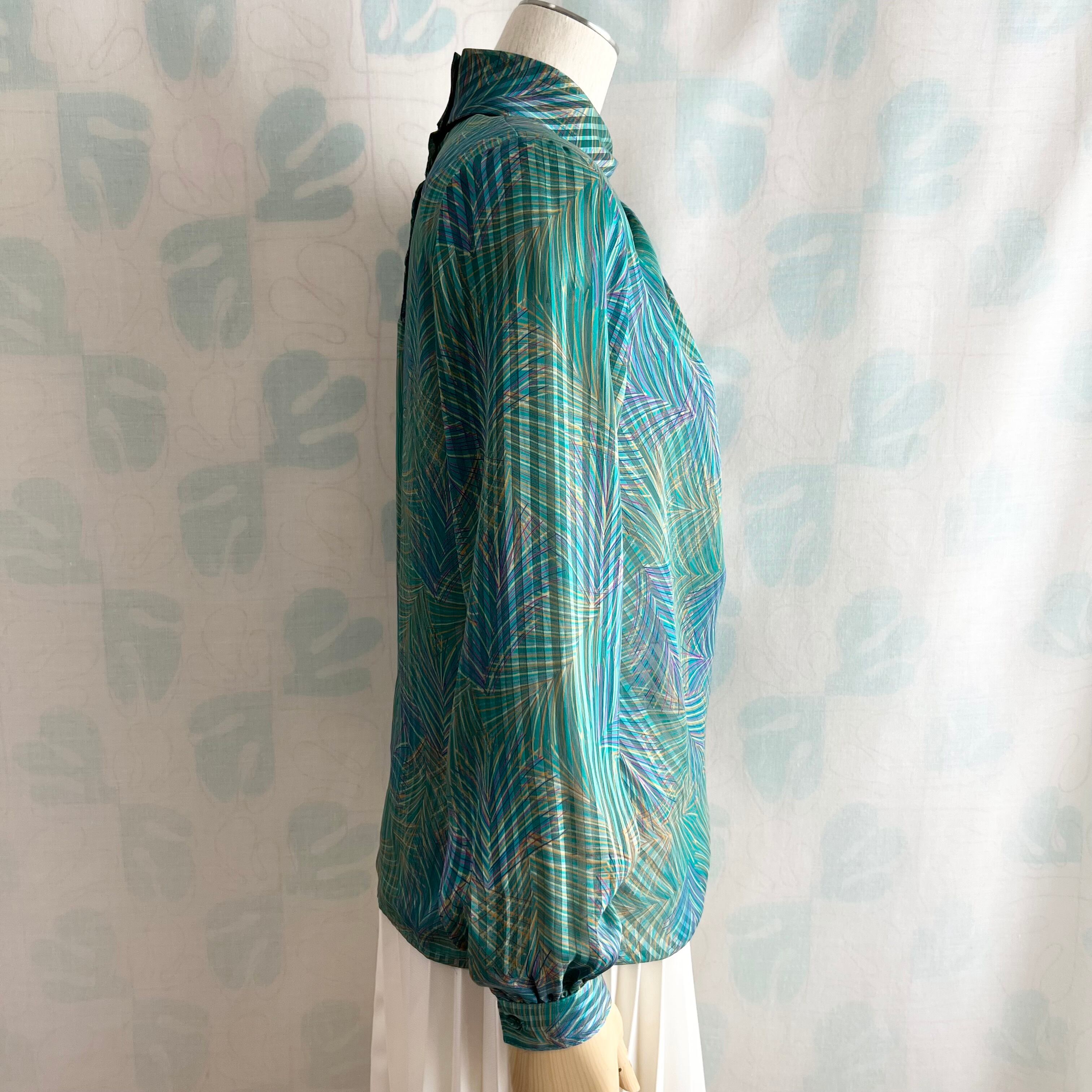 80's グリーン系プリント シアー プルオーバー。