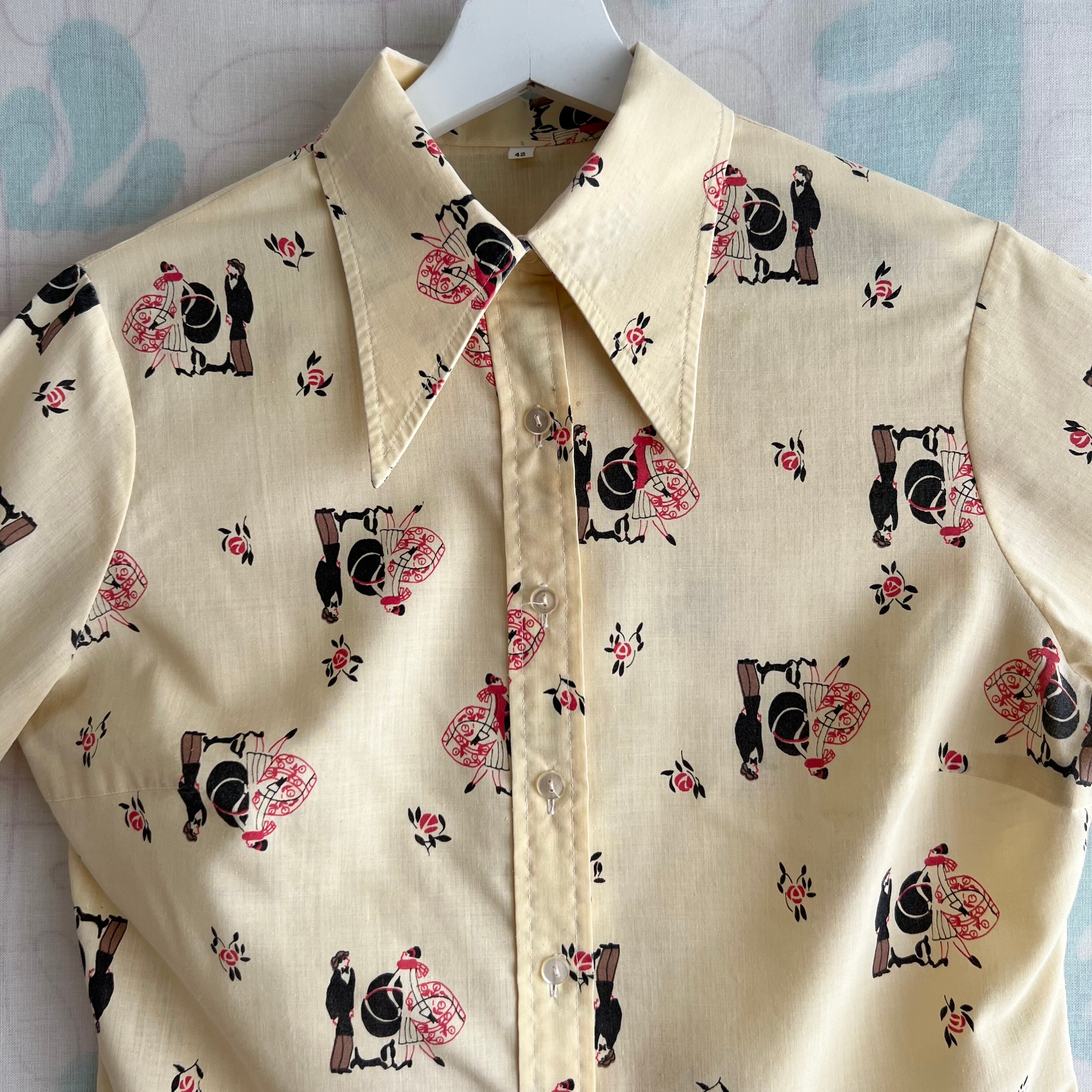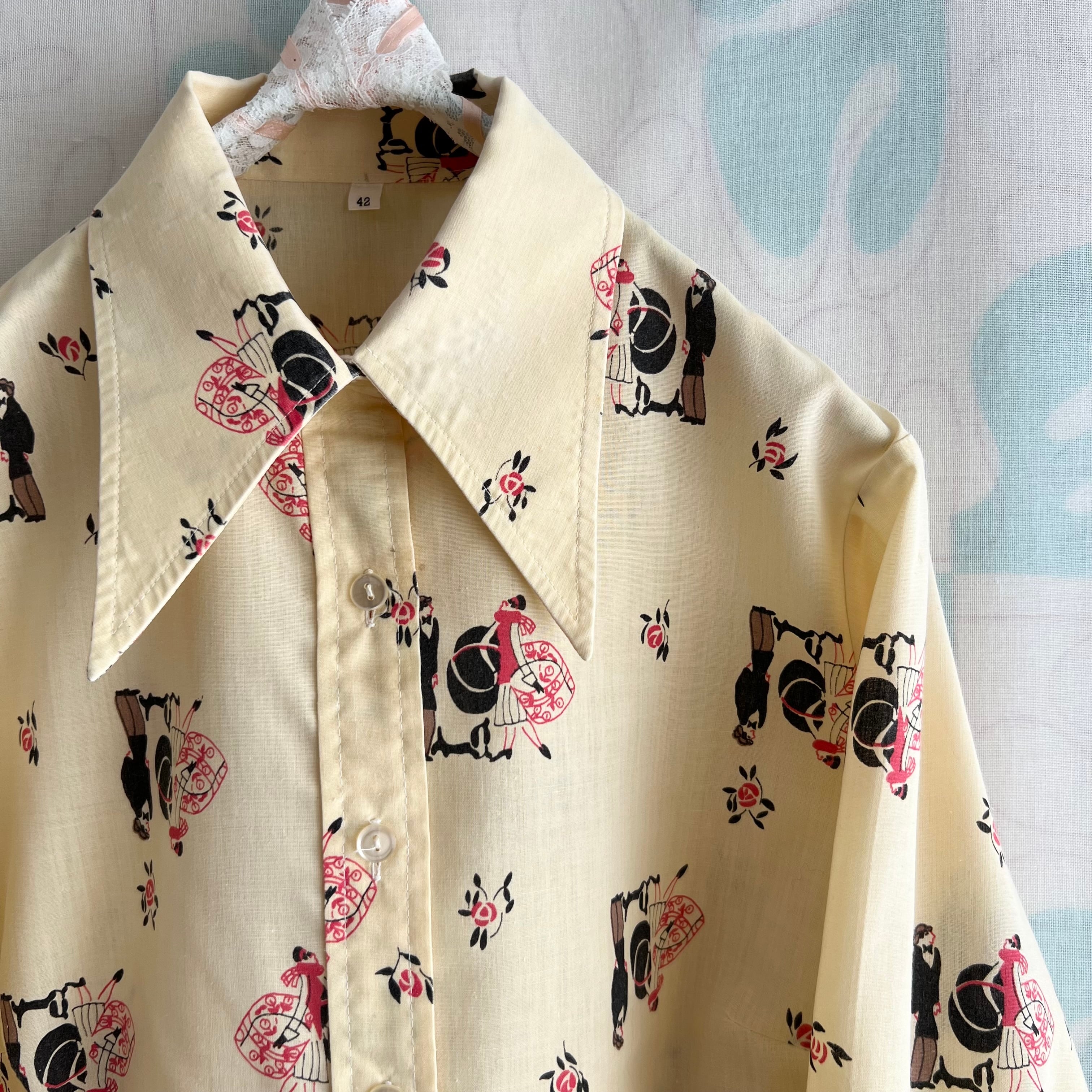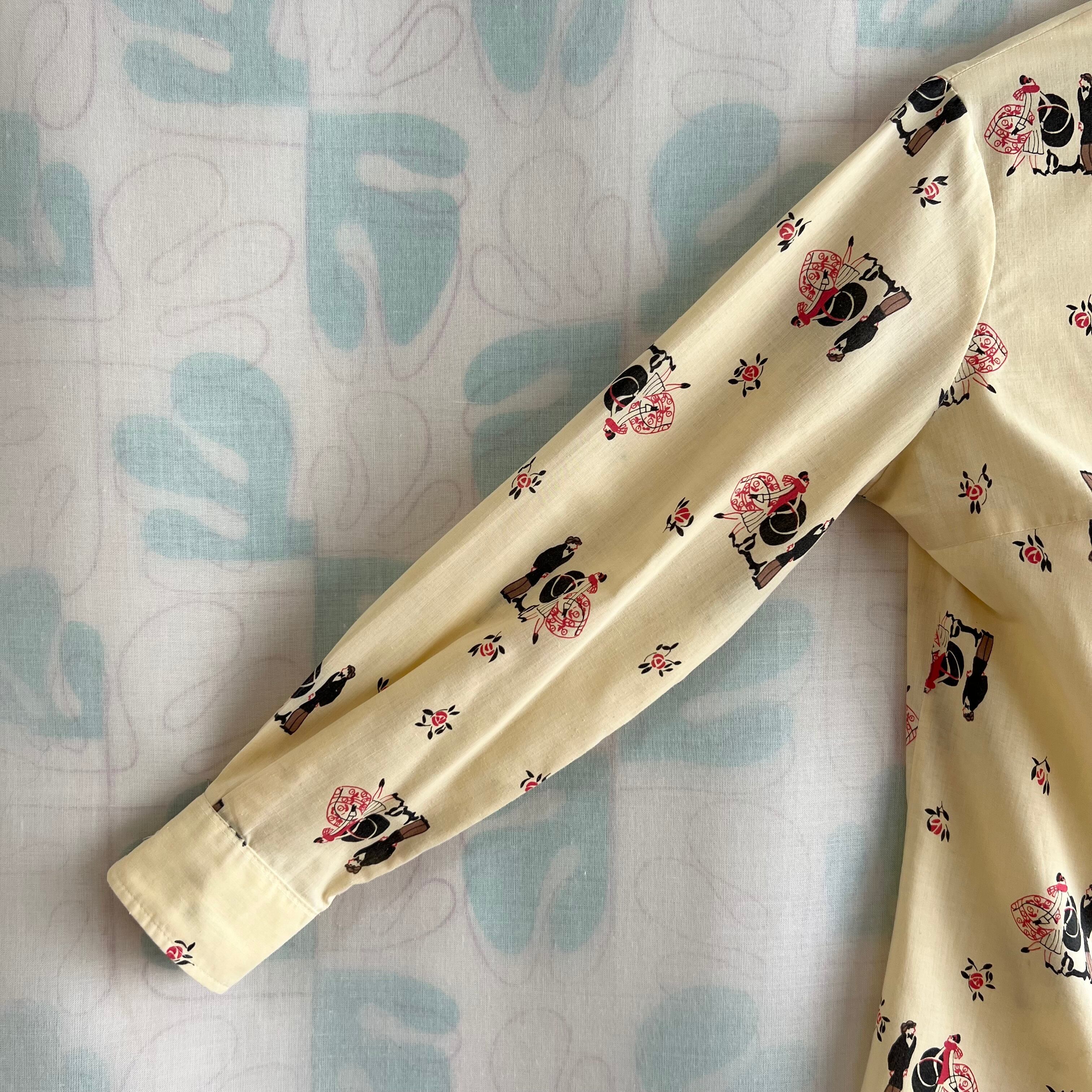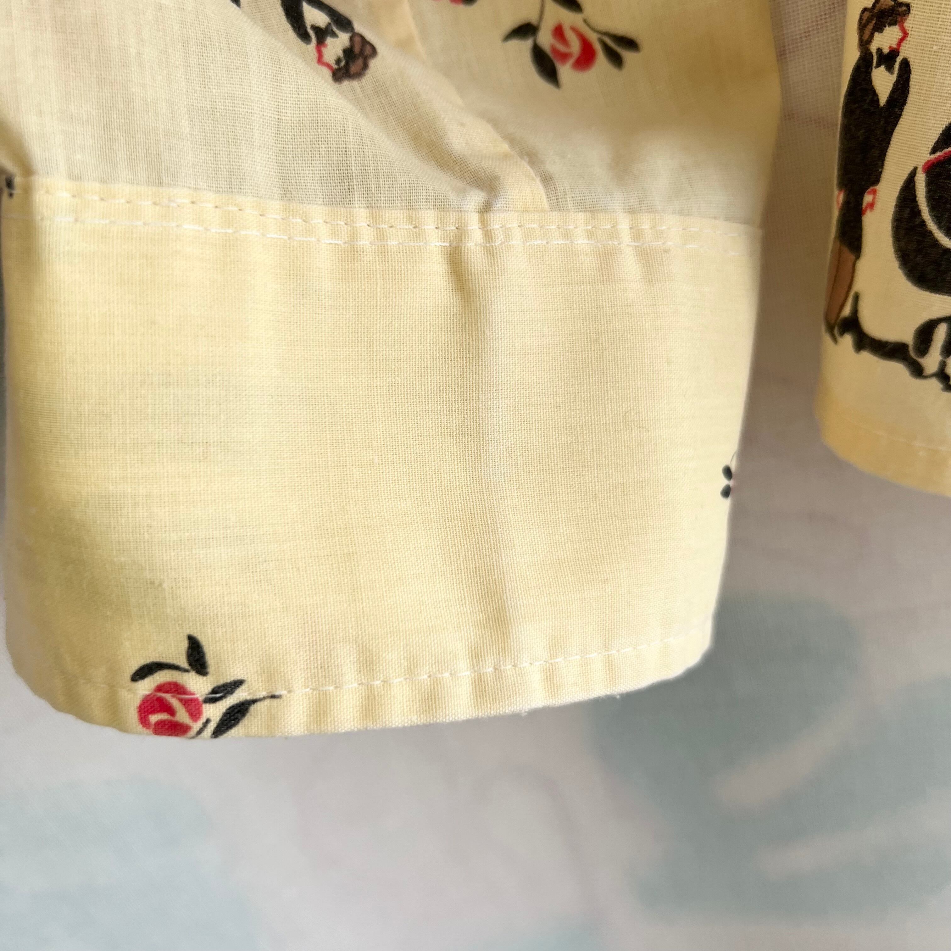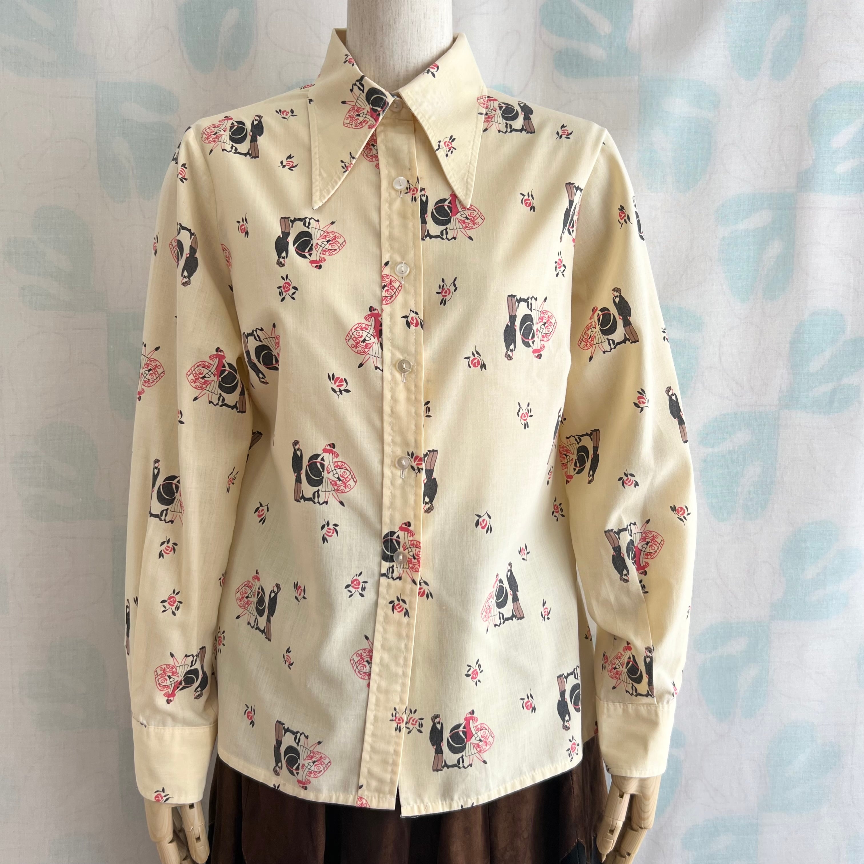 70's 「20年代ギャッツビーな装いの淑女と紳士」プリントの長袖ブラウス。