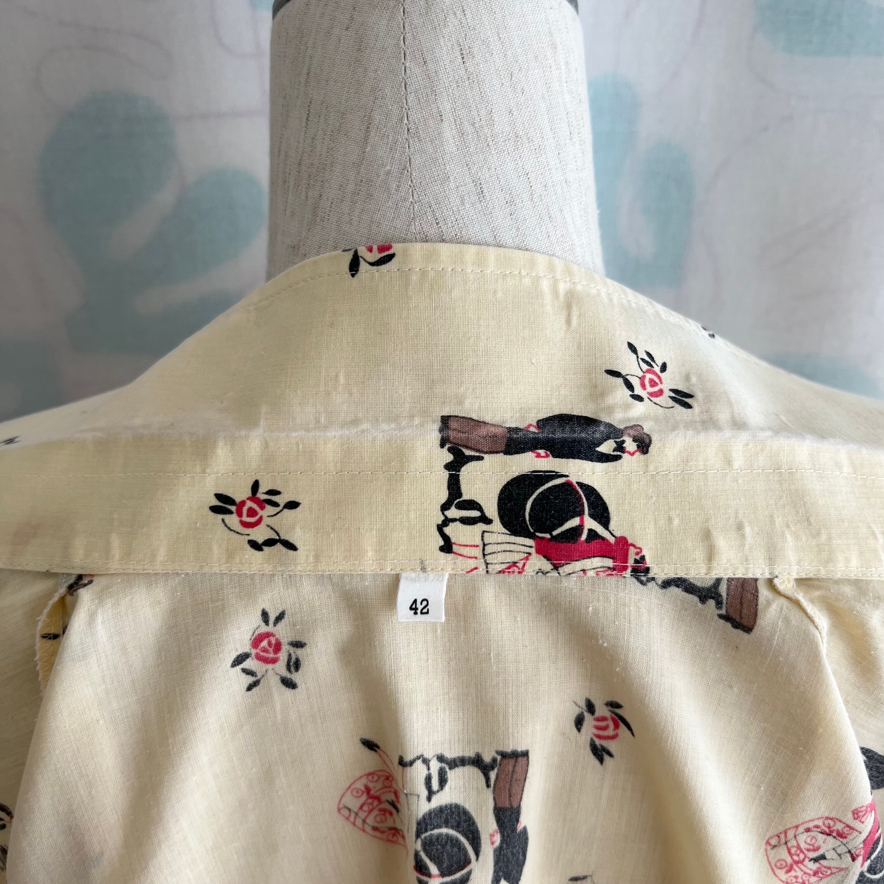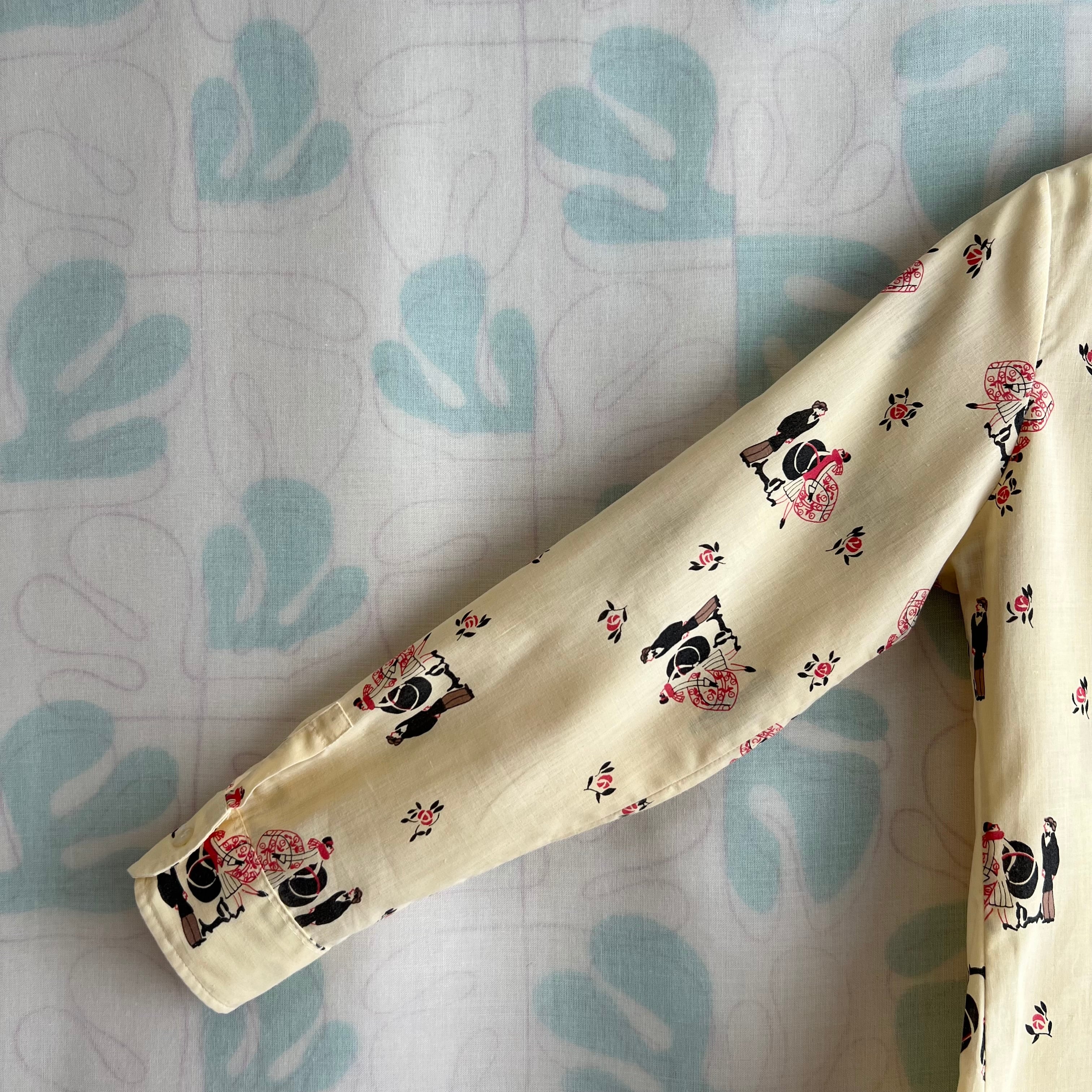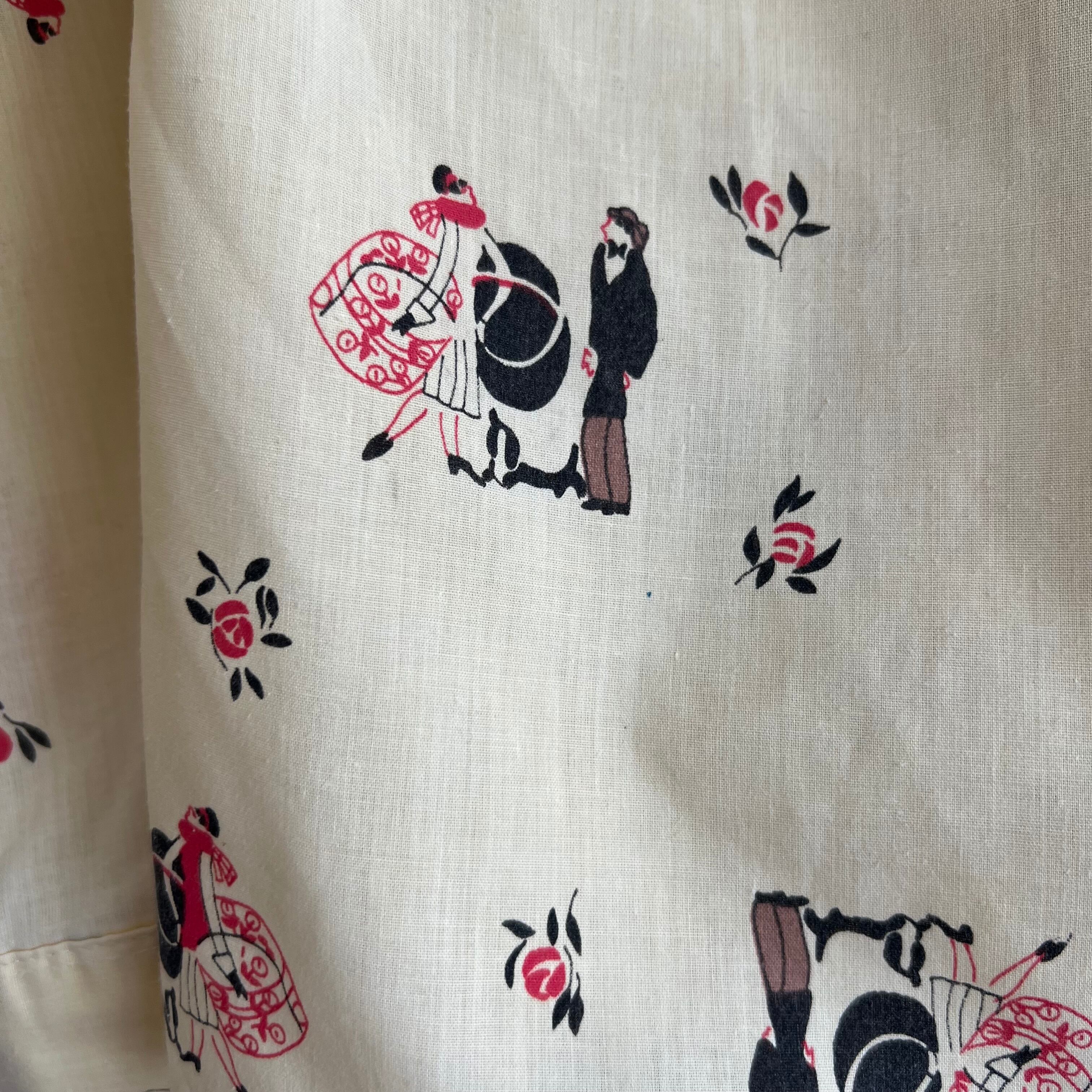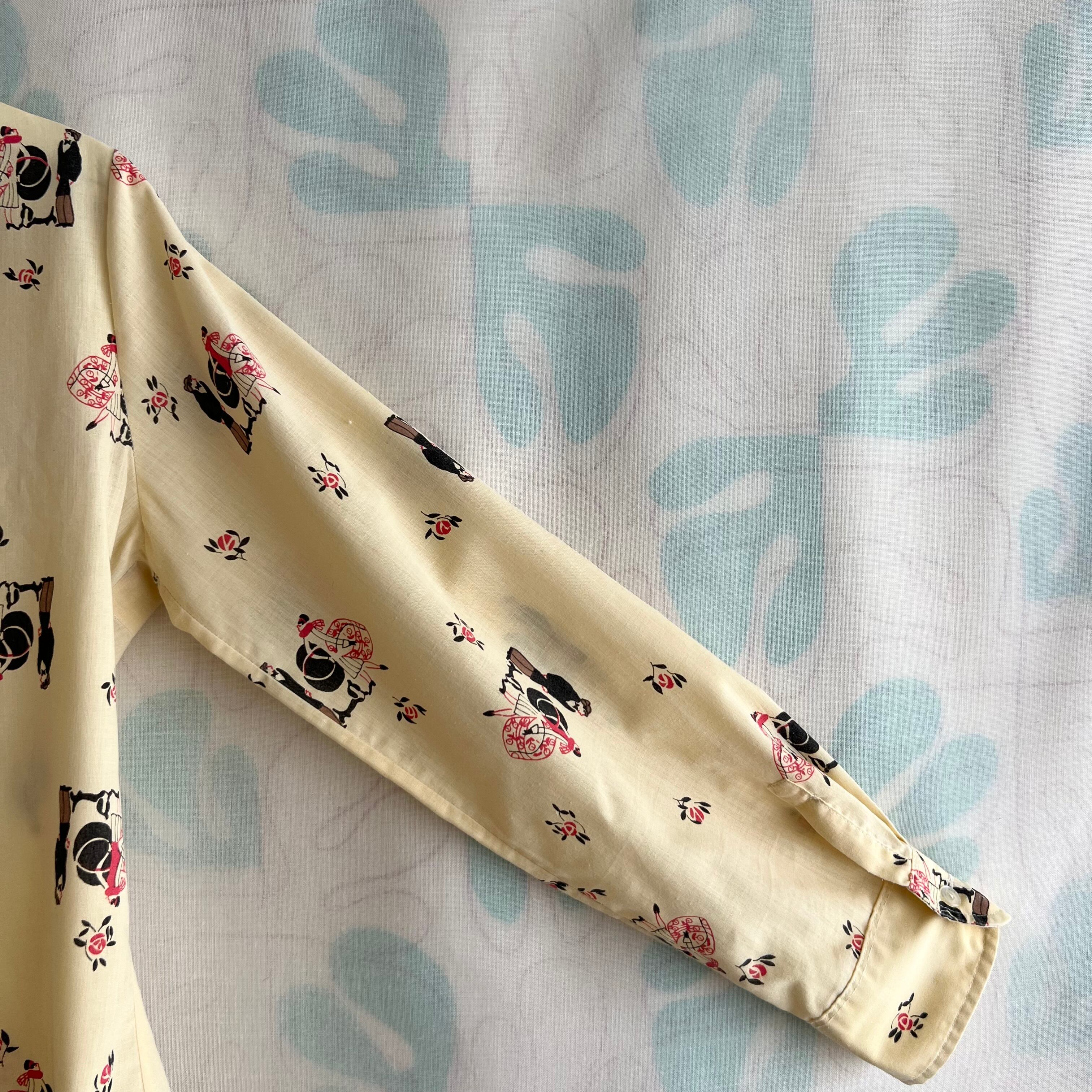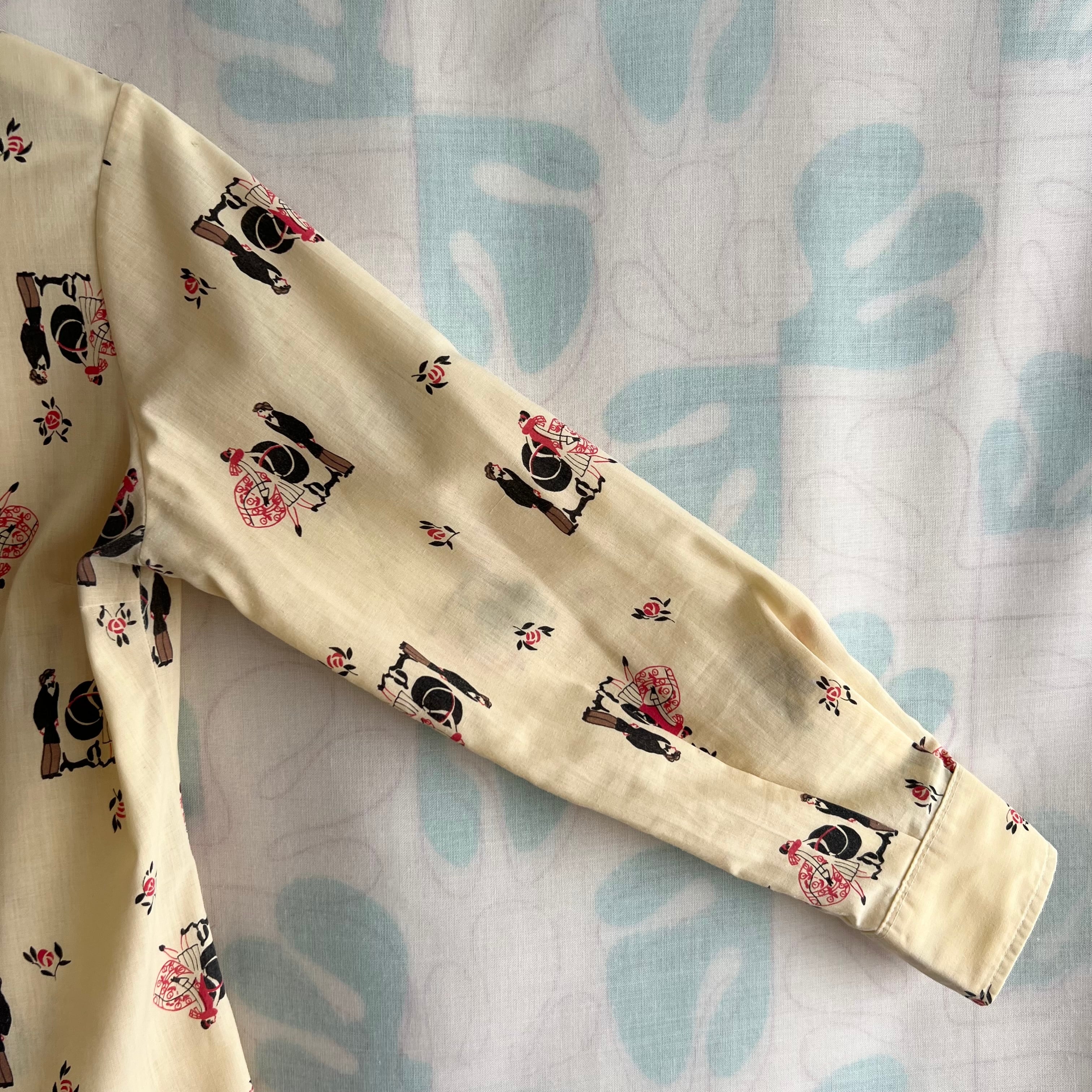 70's 「20年代ギャッツビーな装いの淑女と紳士」プリントの長袖ブラウス。