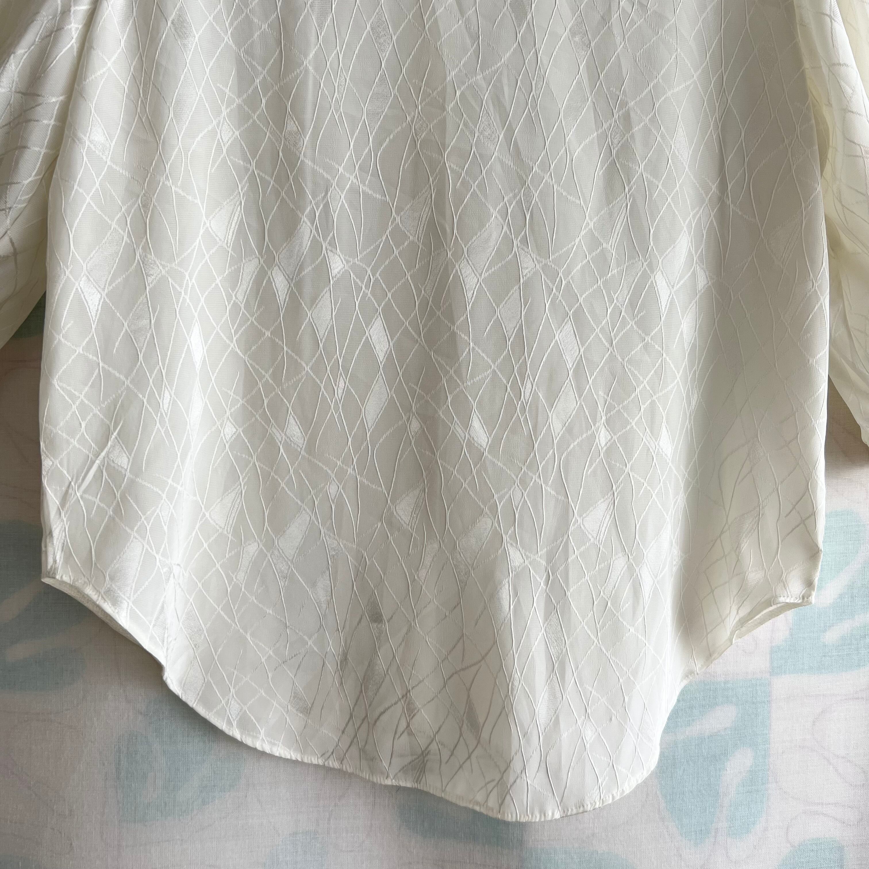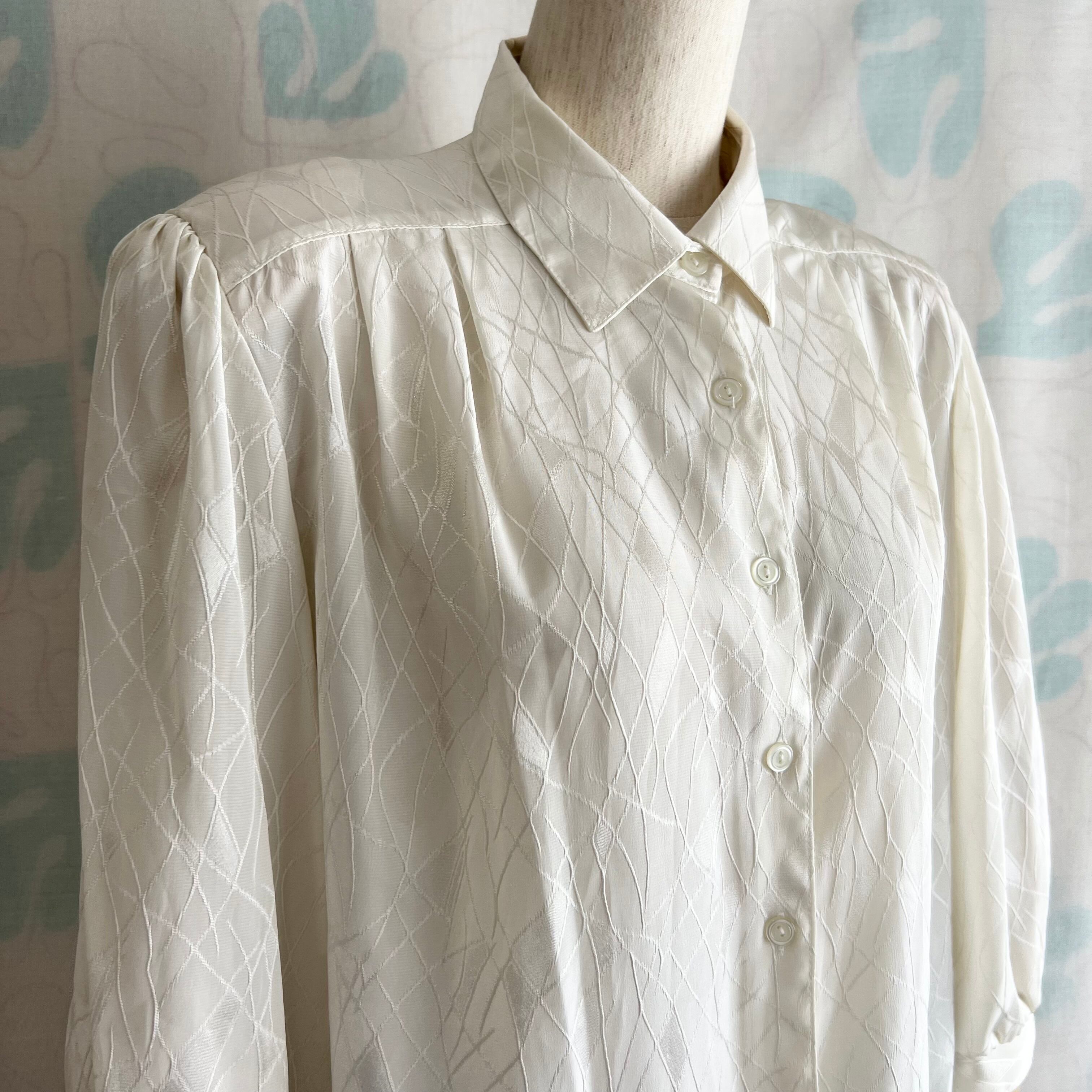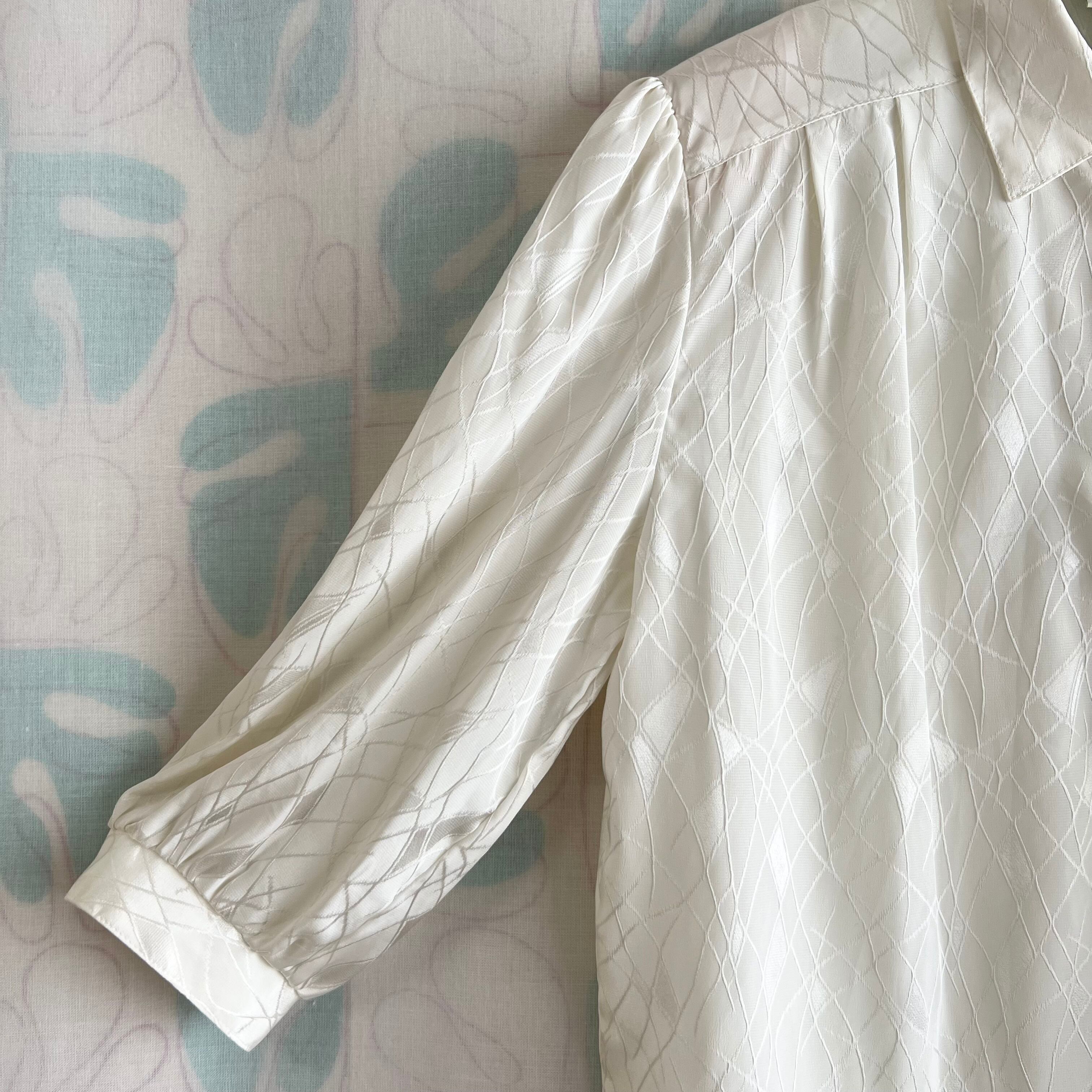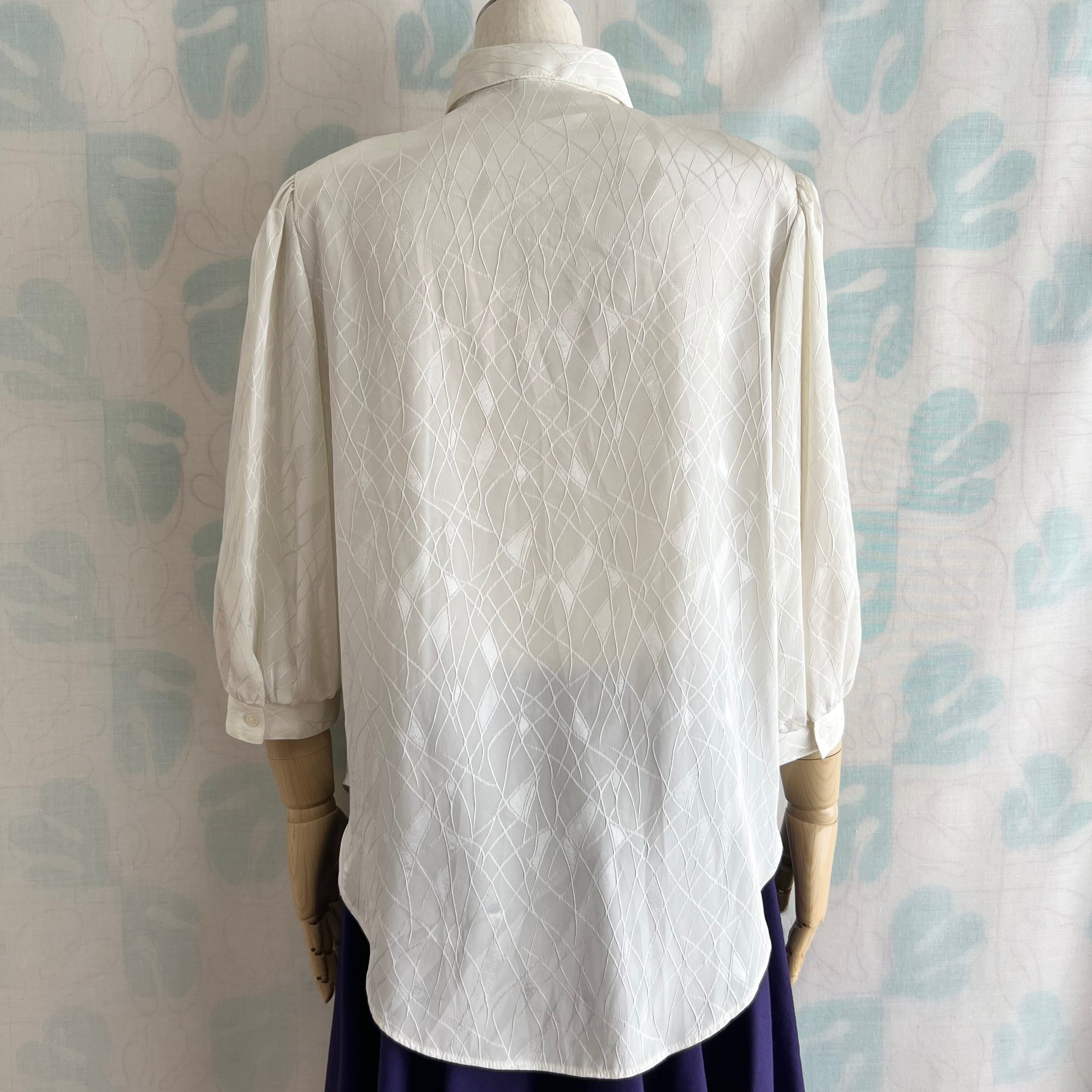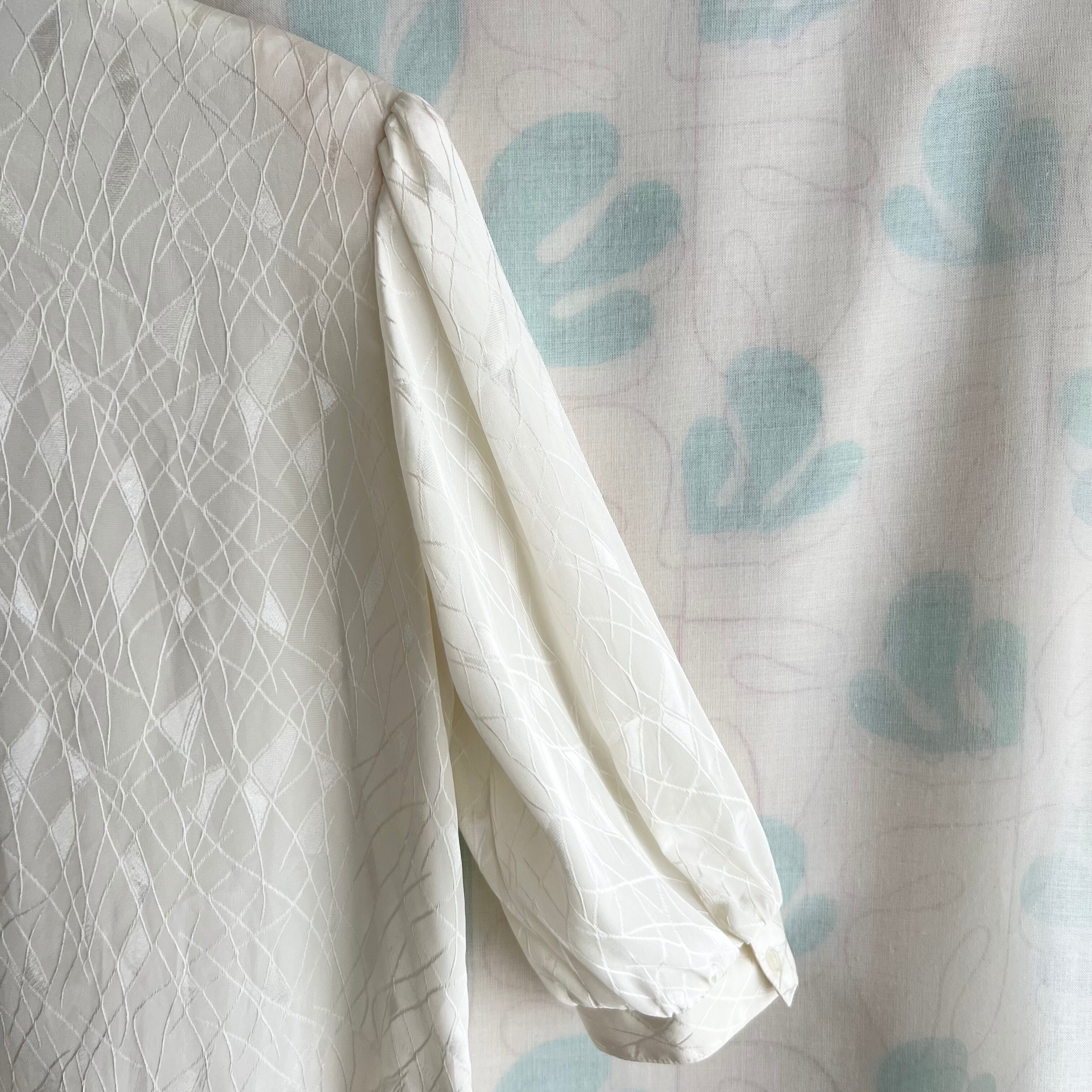 80's ミルク色織柄 七分袖ブラウス。