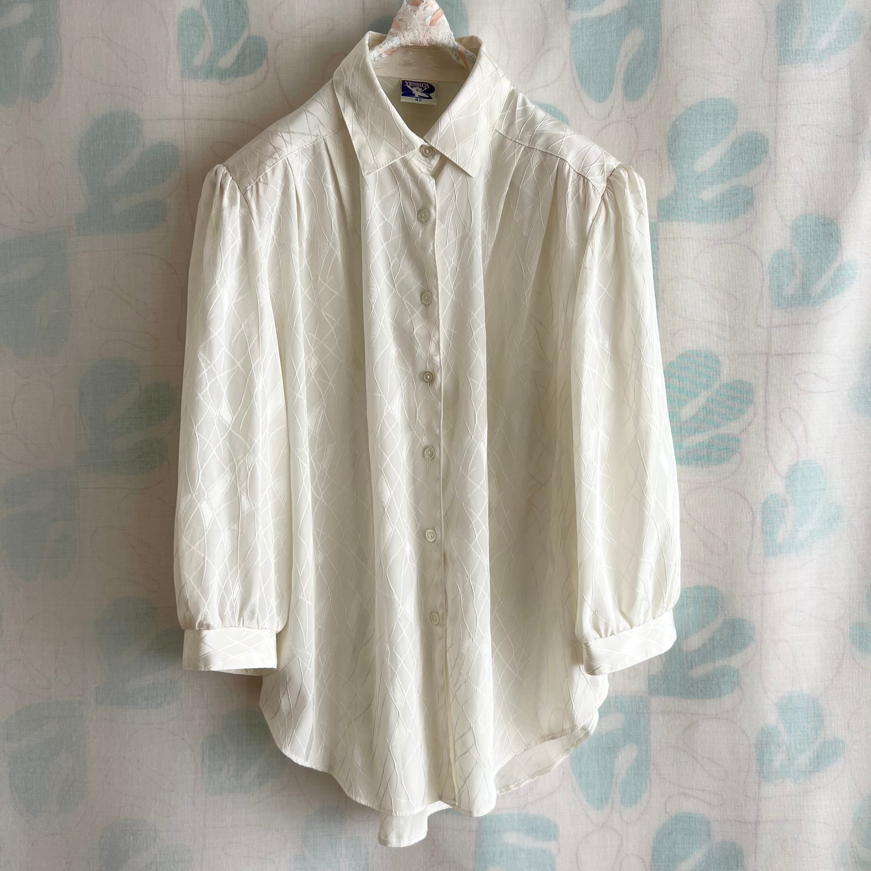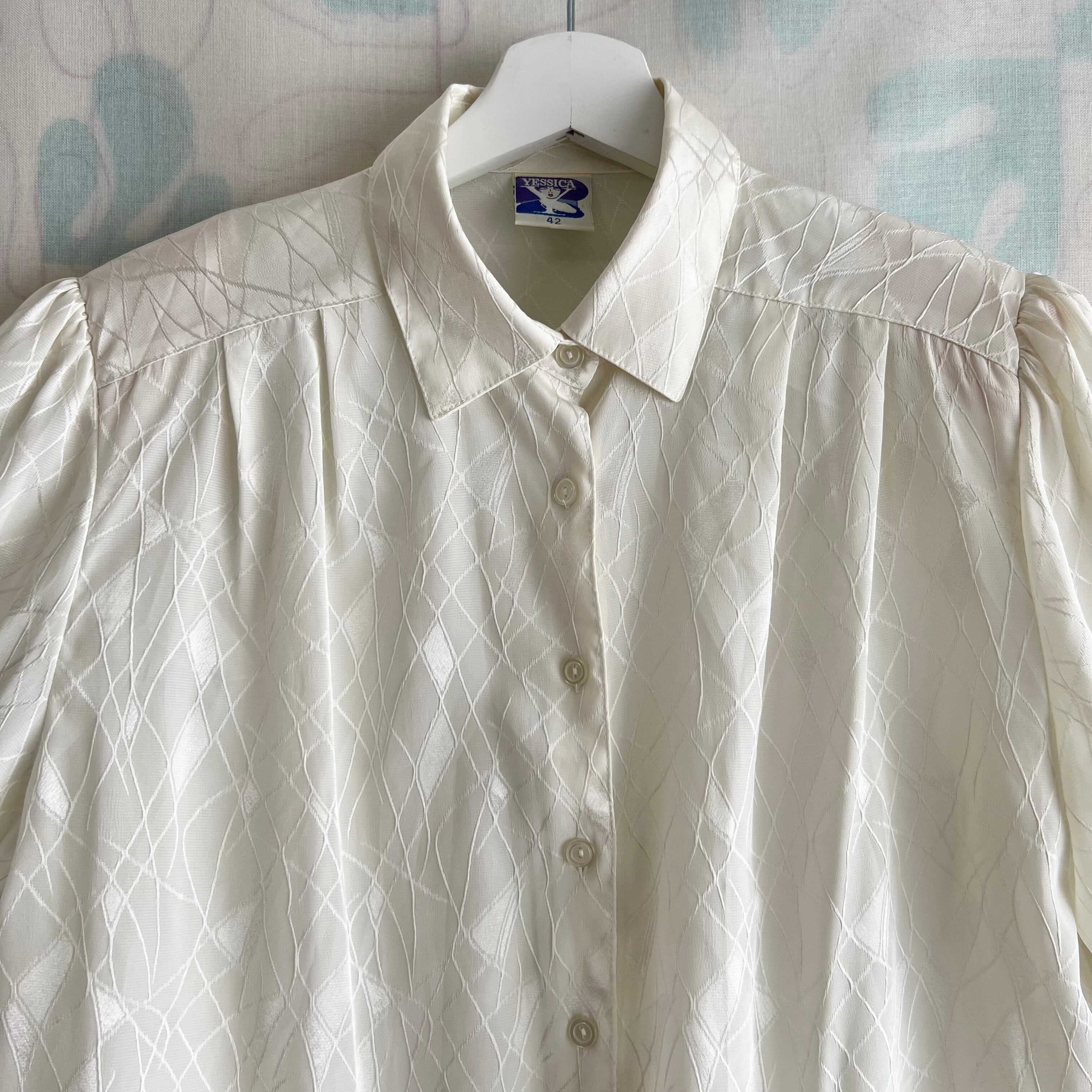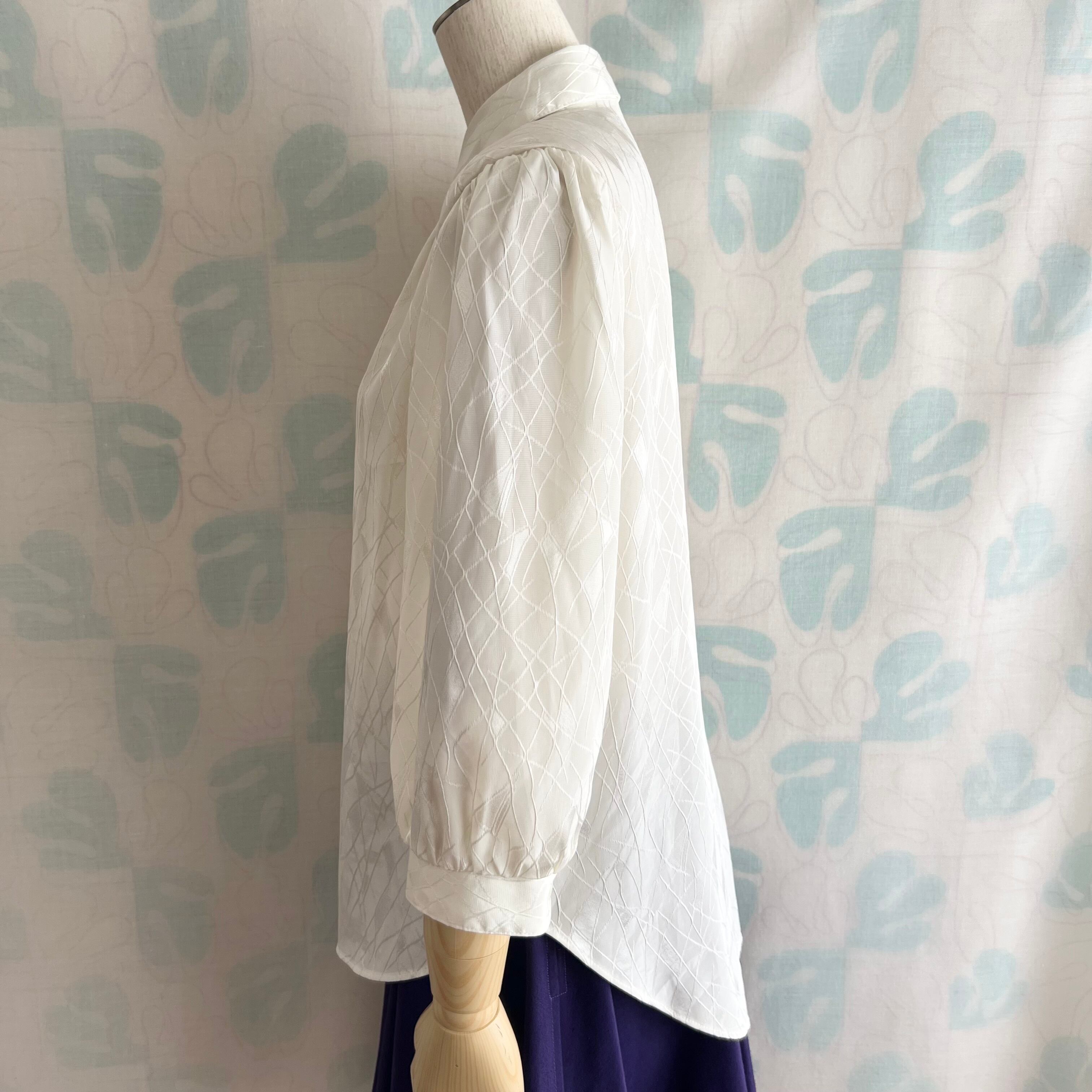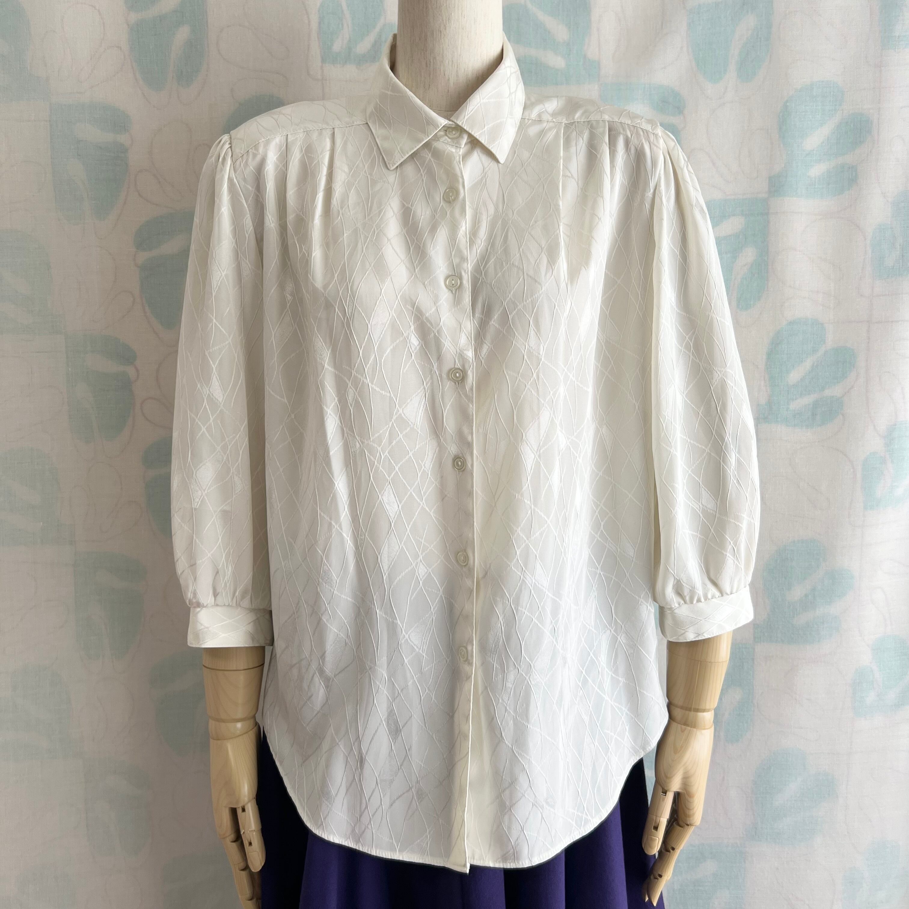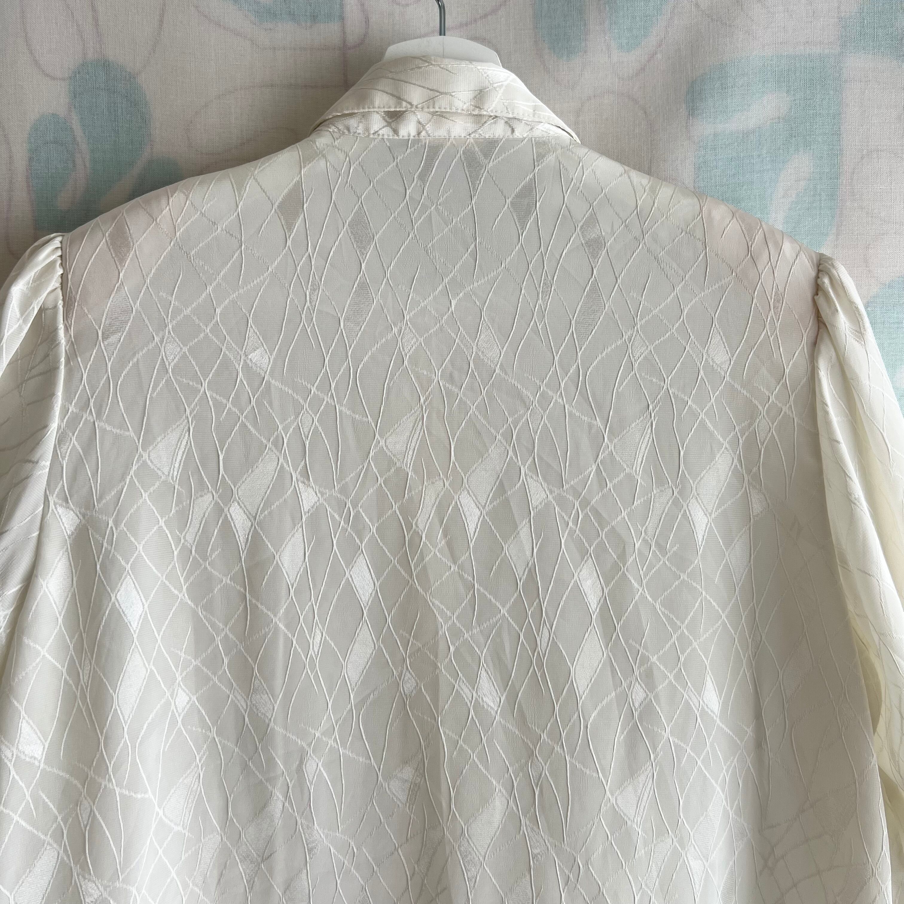 80's ミルク色織柄 七分袖ブラウス。