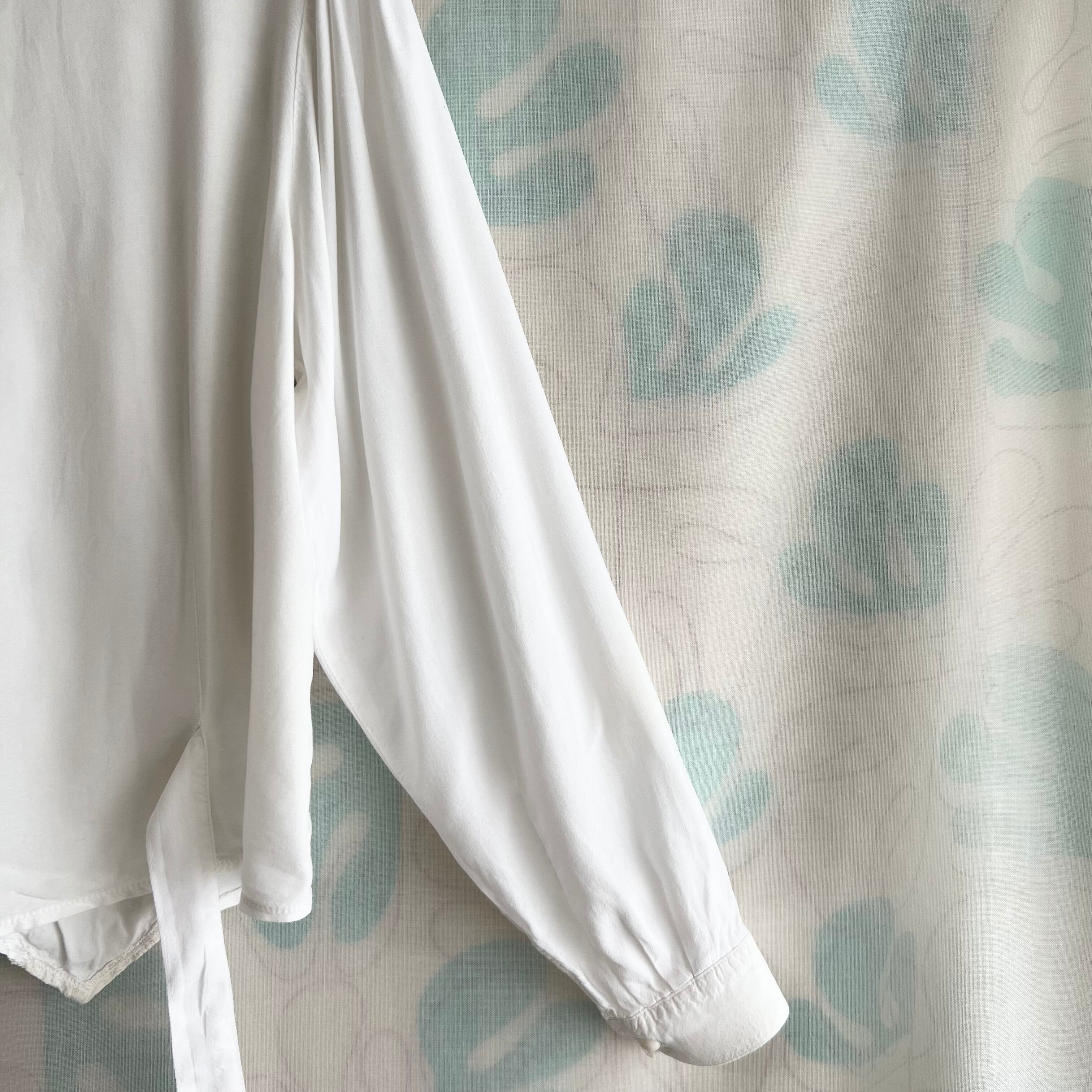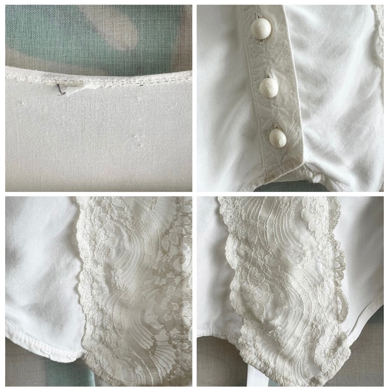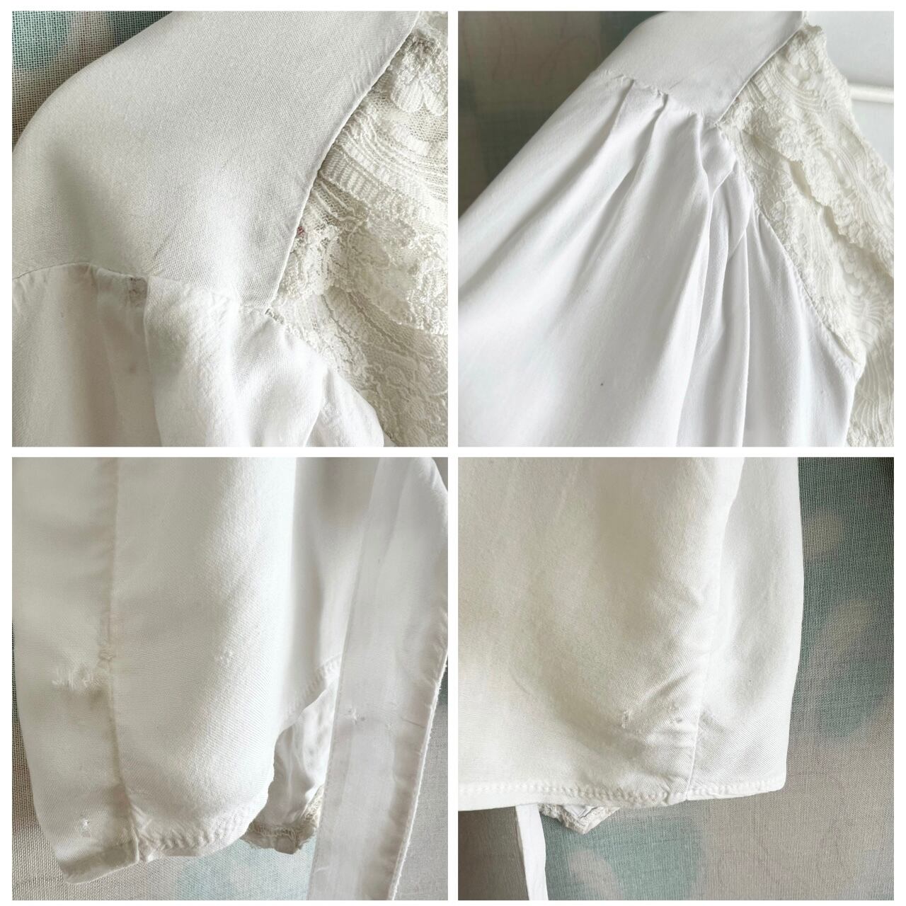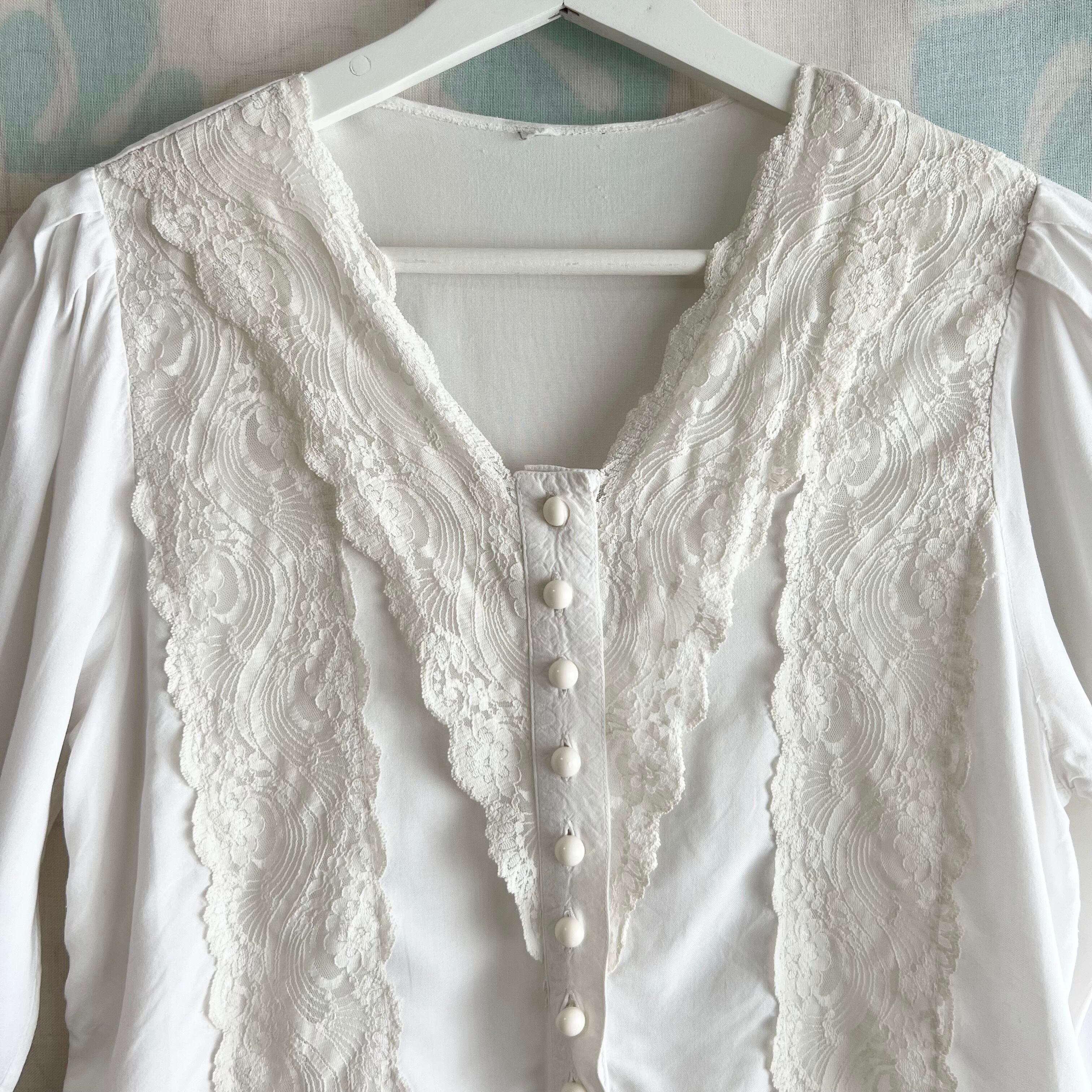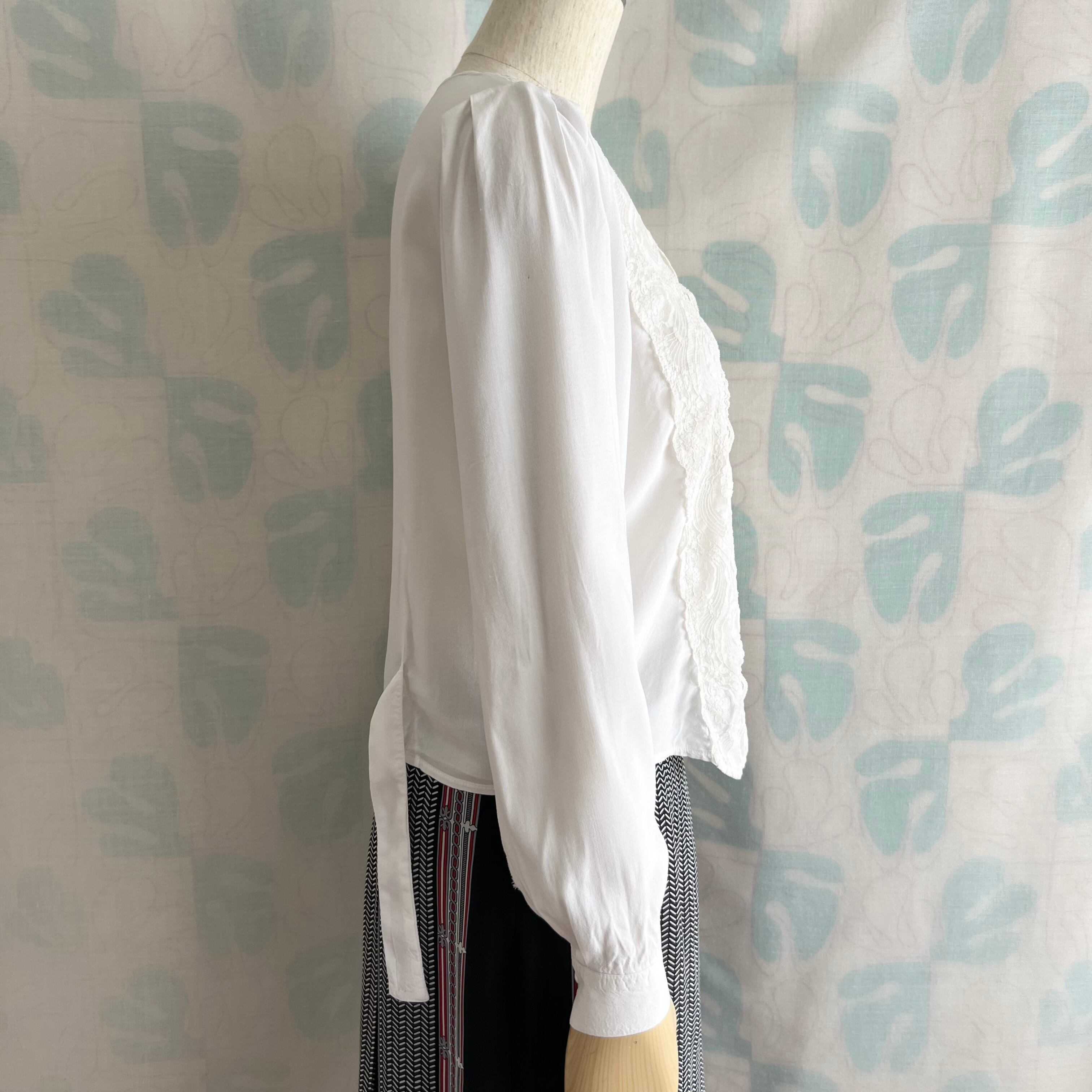 白ベースにオフ白レースがあしらわれた、少しエドワーディアン風なブラウスです。
