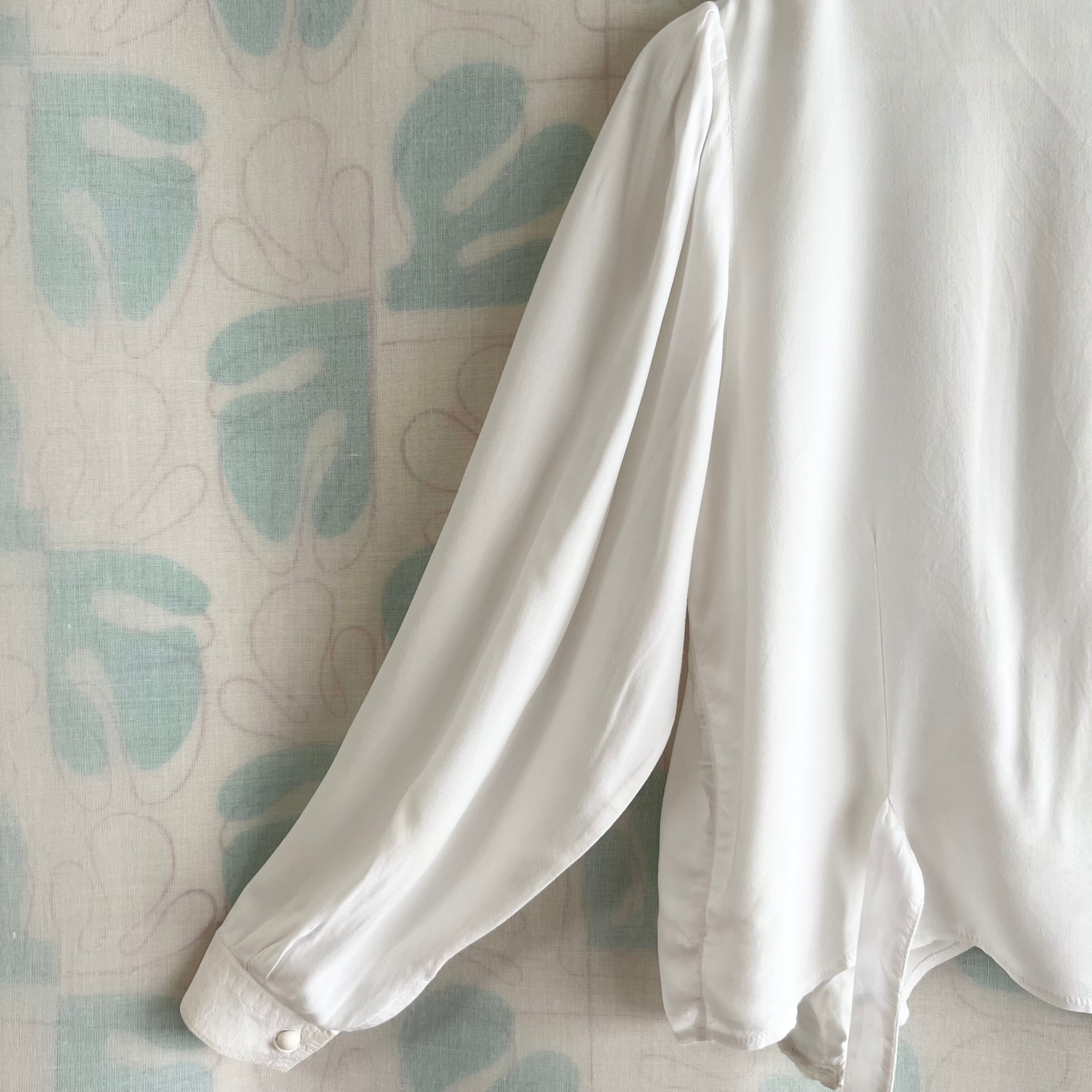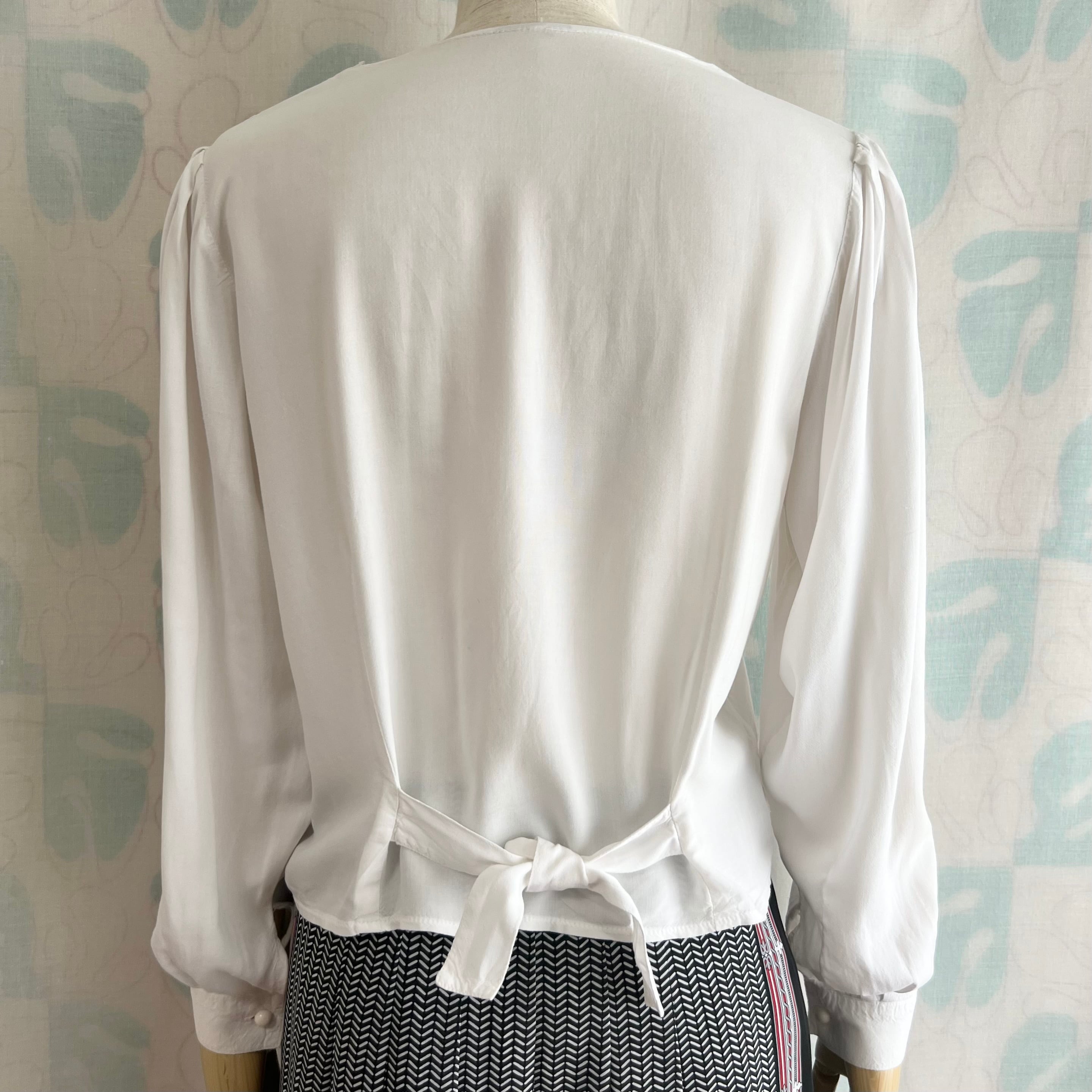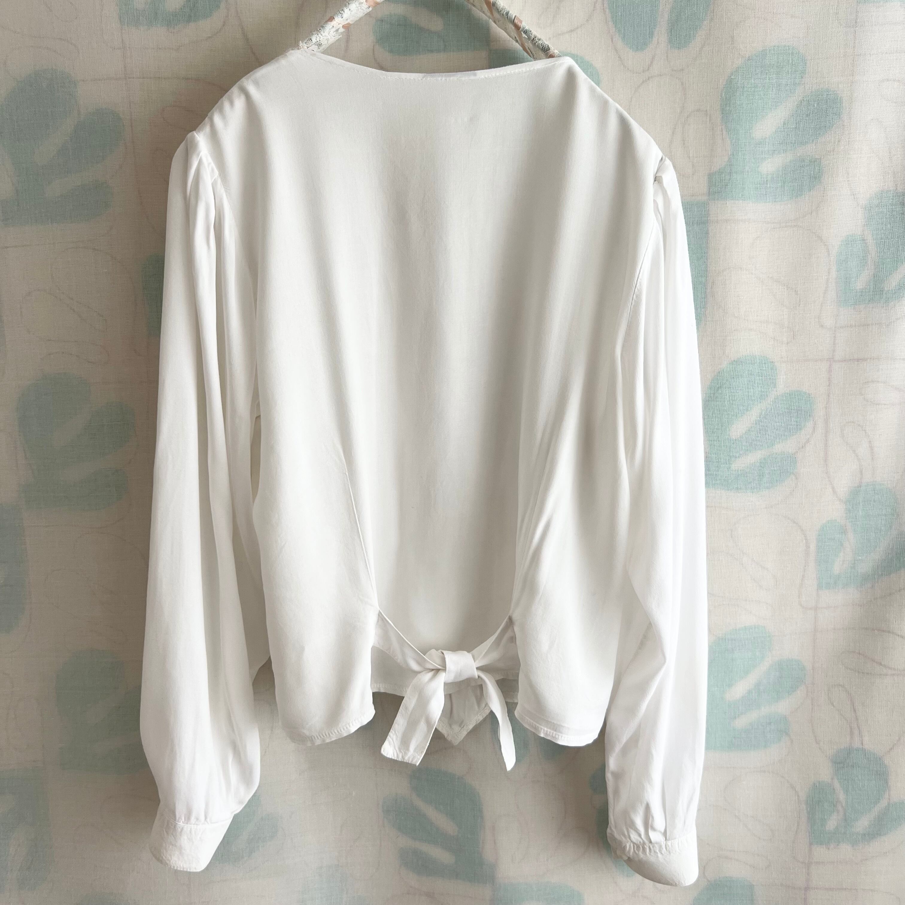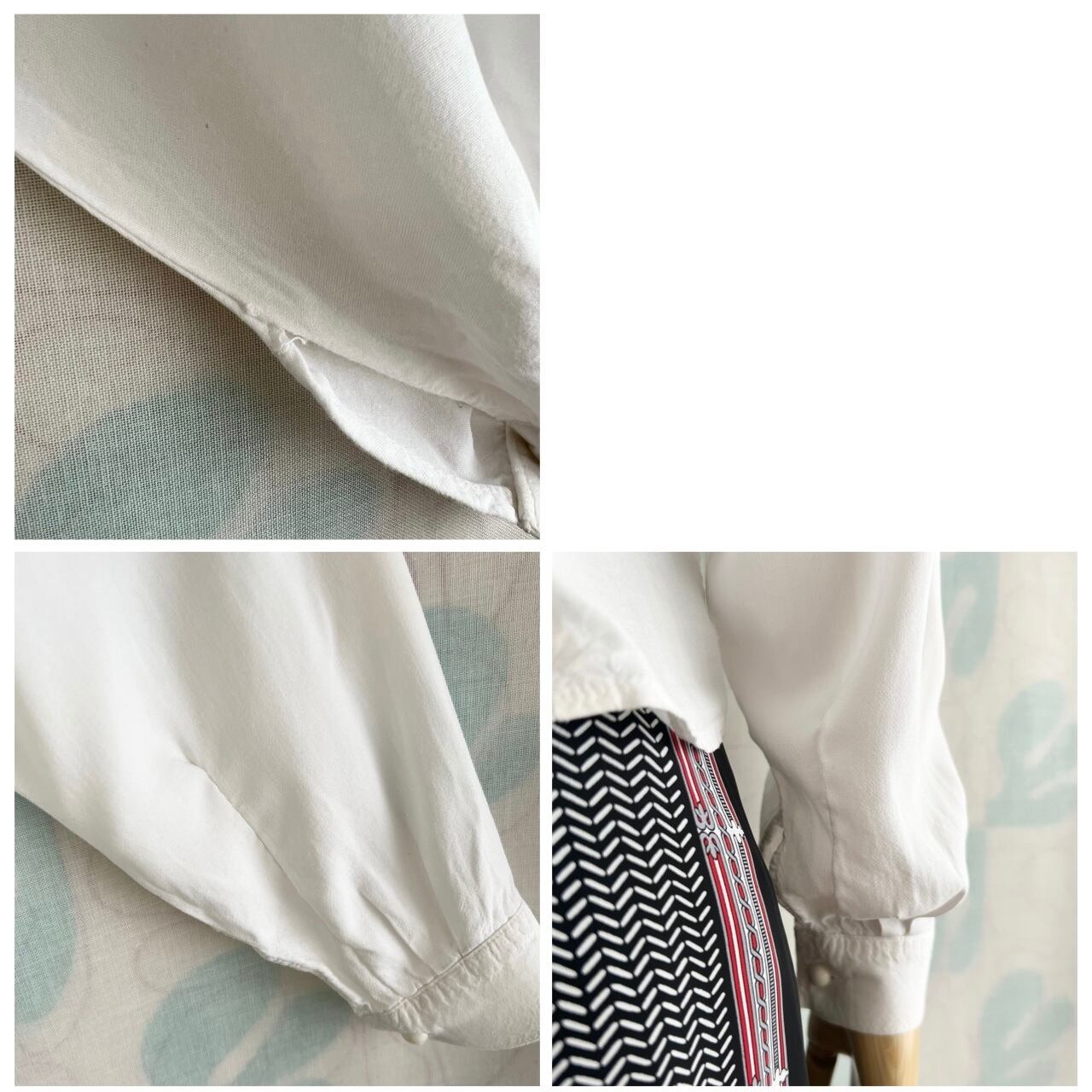 白ベースにオフ白レースがあしらわれた、少しエドワーディアン風なブラウスです。
