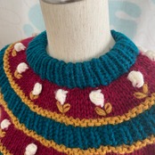 リブ編みで厚みのある襟。袖口、裾のラインなど可愛い要素が詰まったお品です。