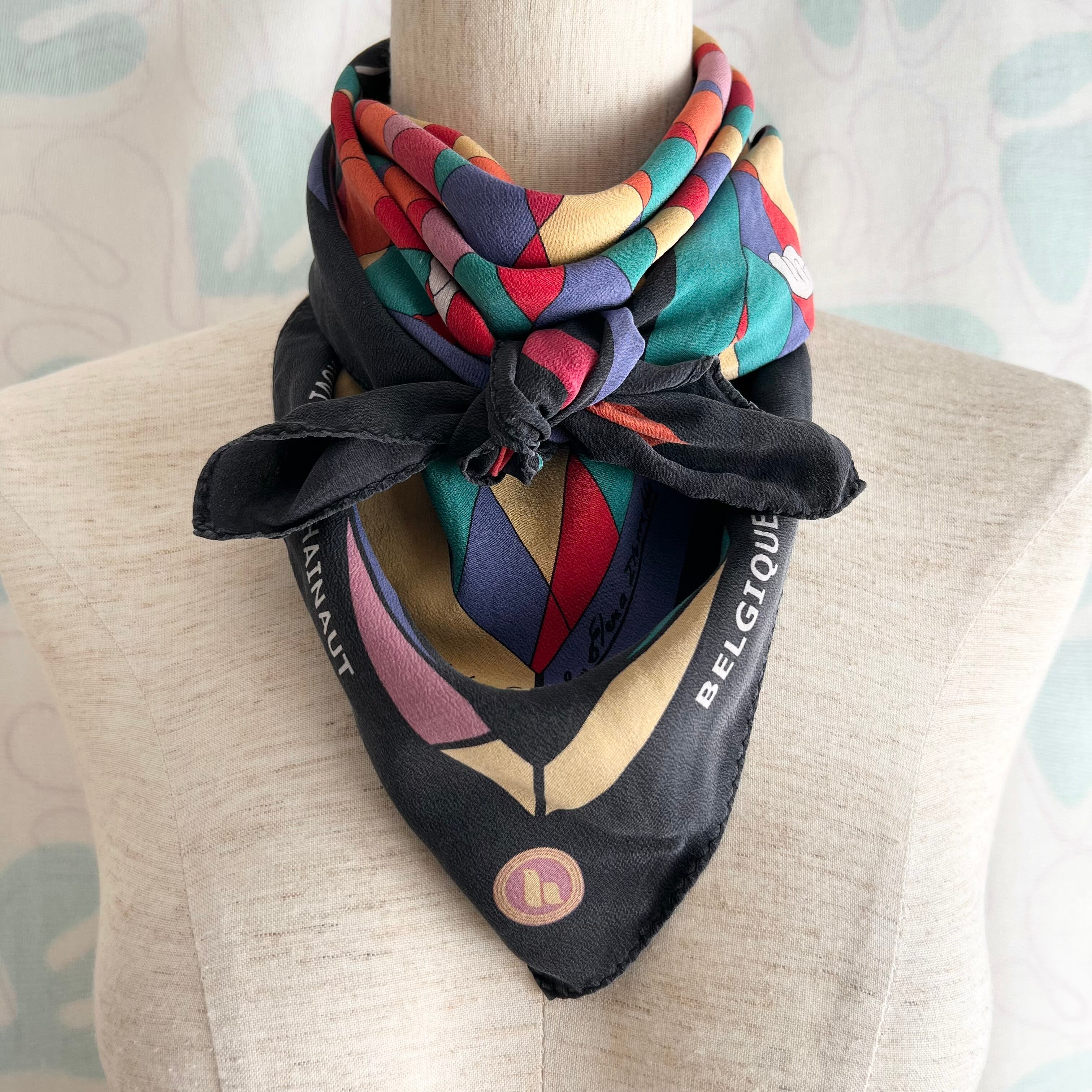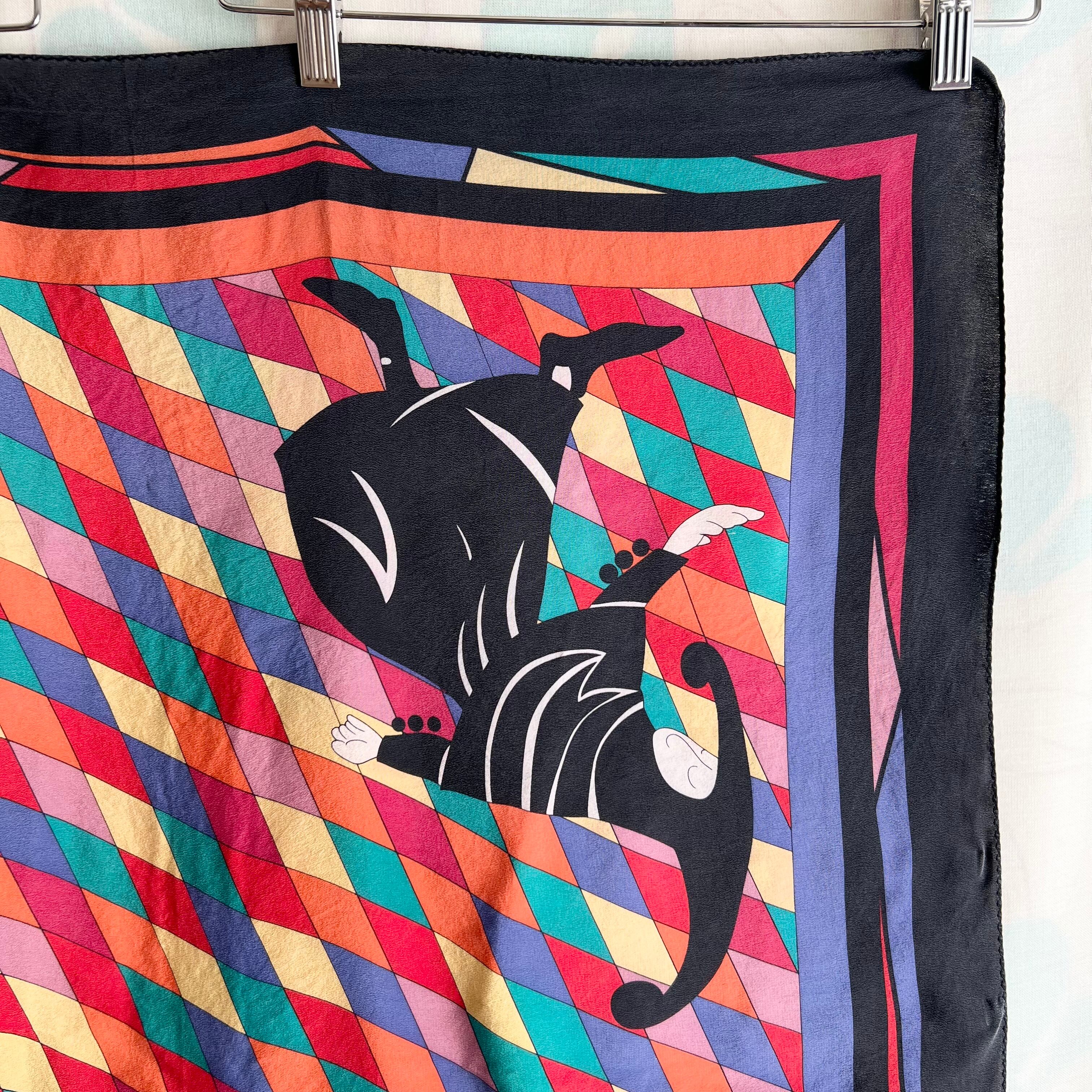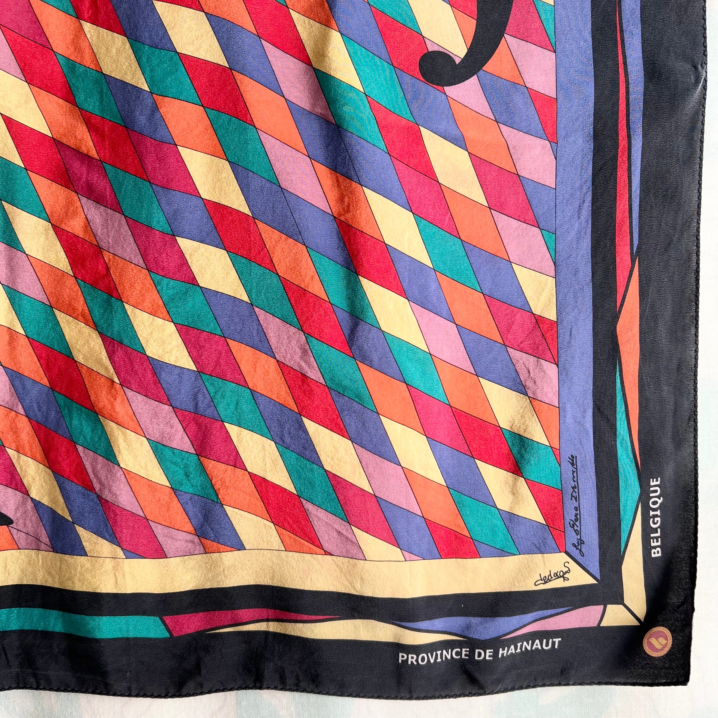 ヴィンテージ カラフルダイヤ柄シルクスカーフ。