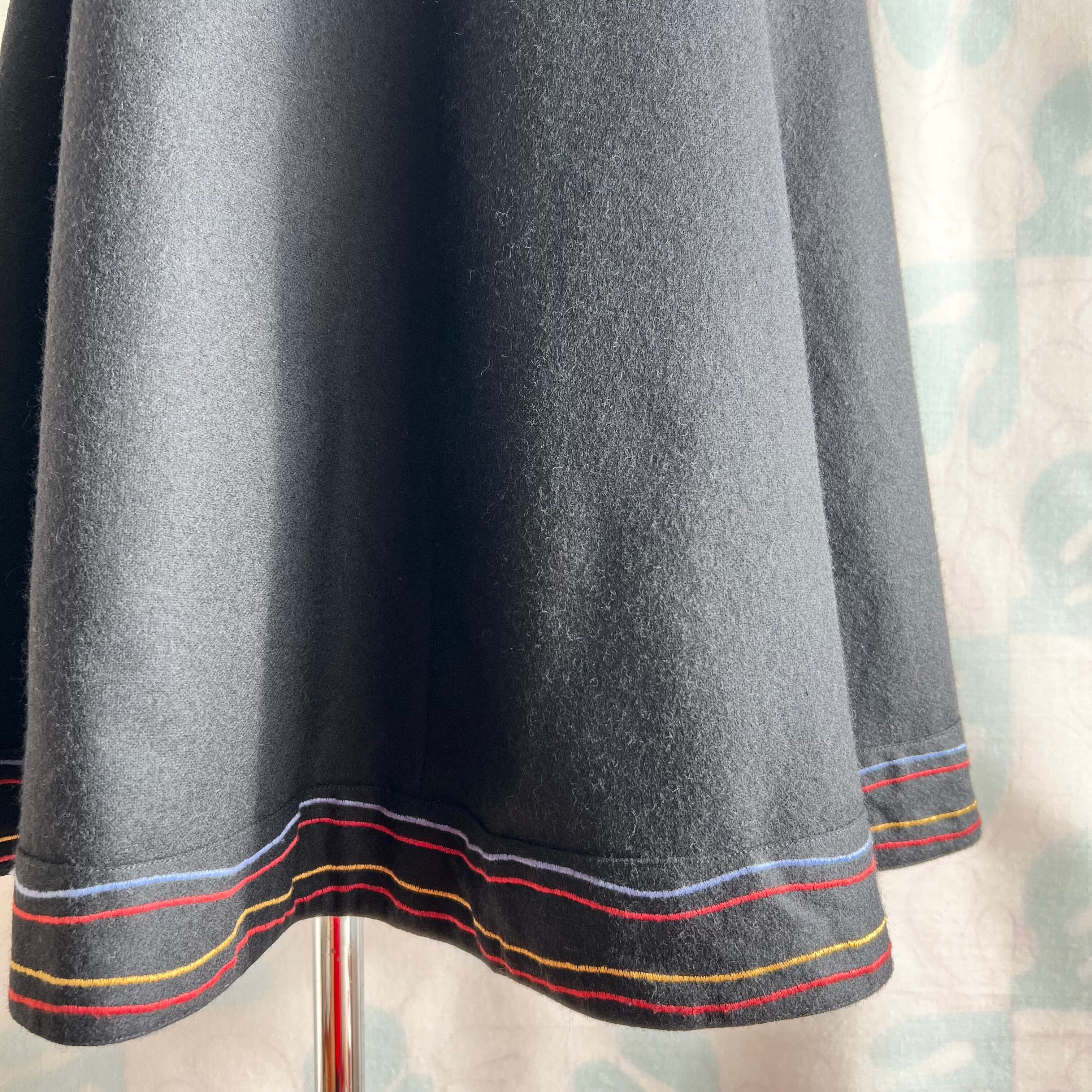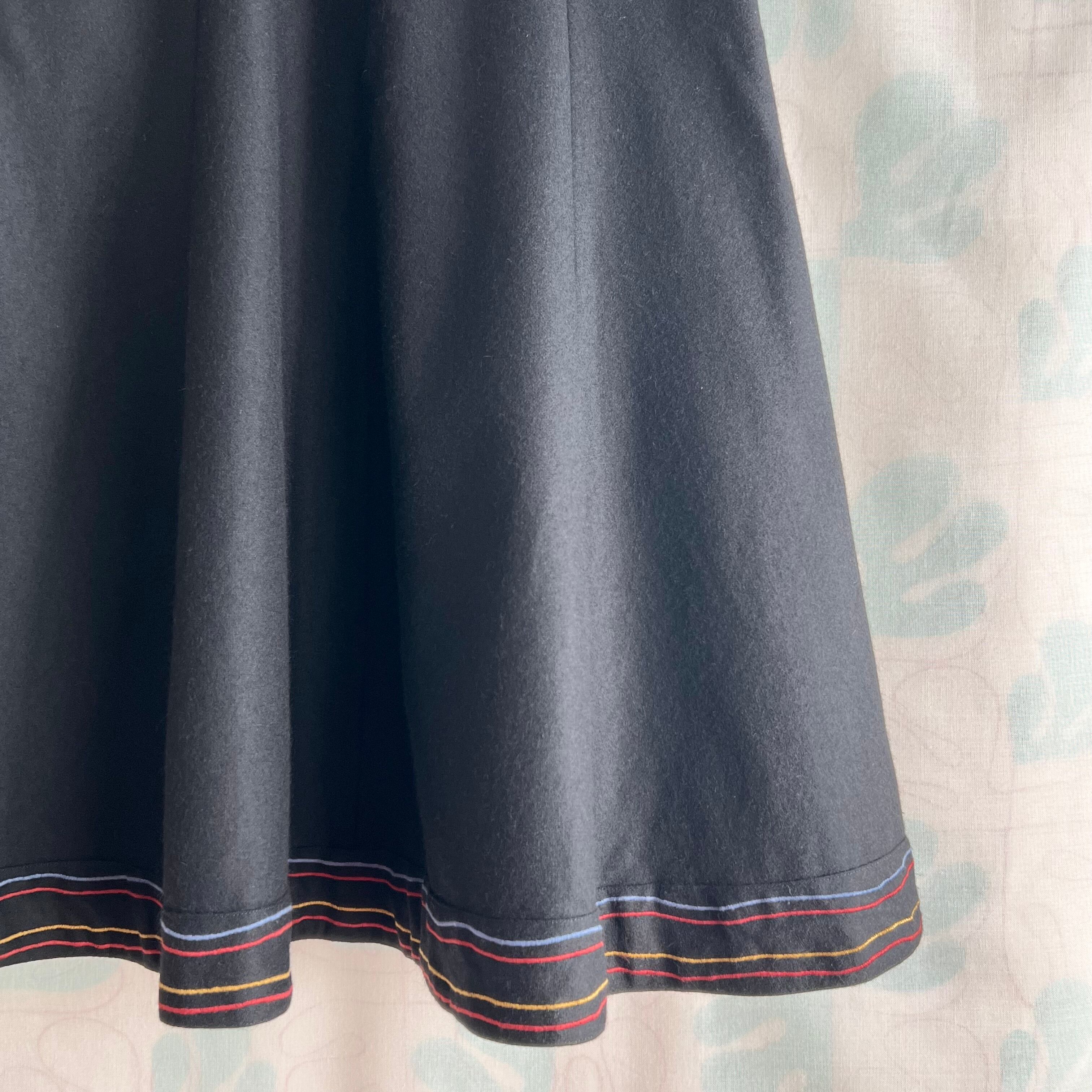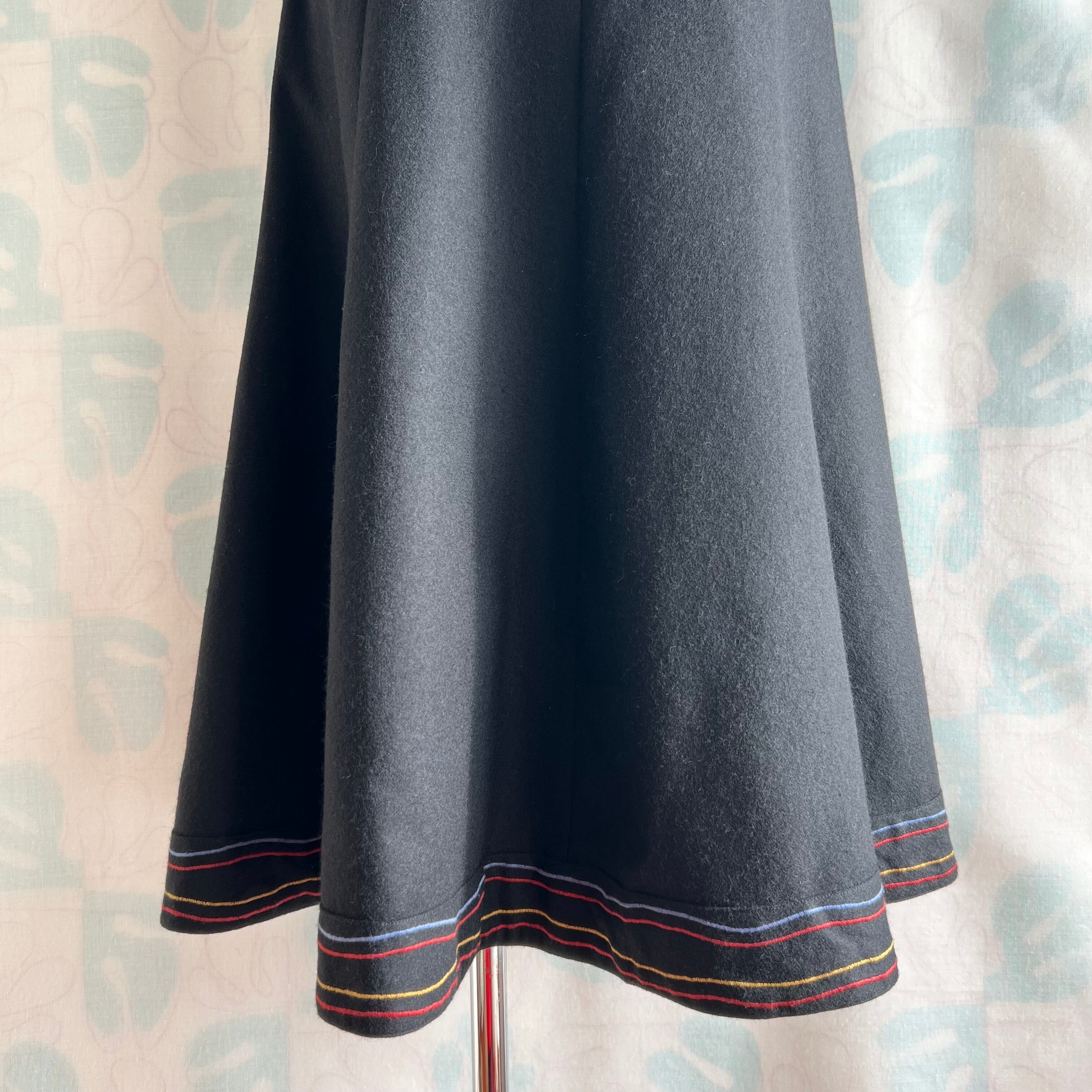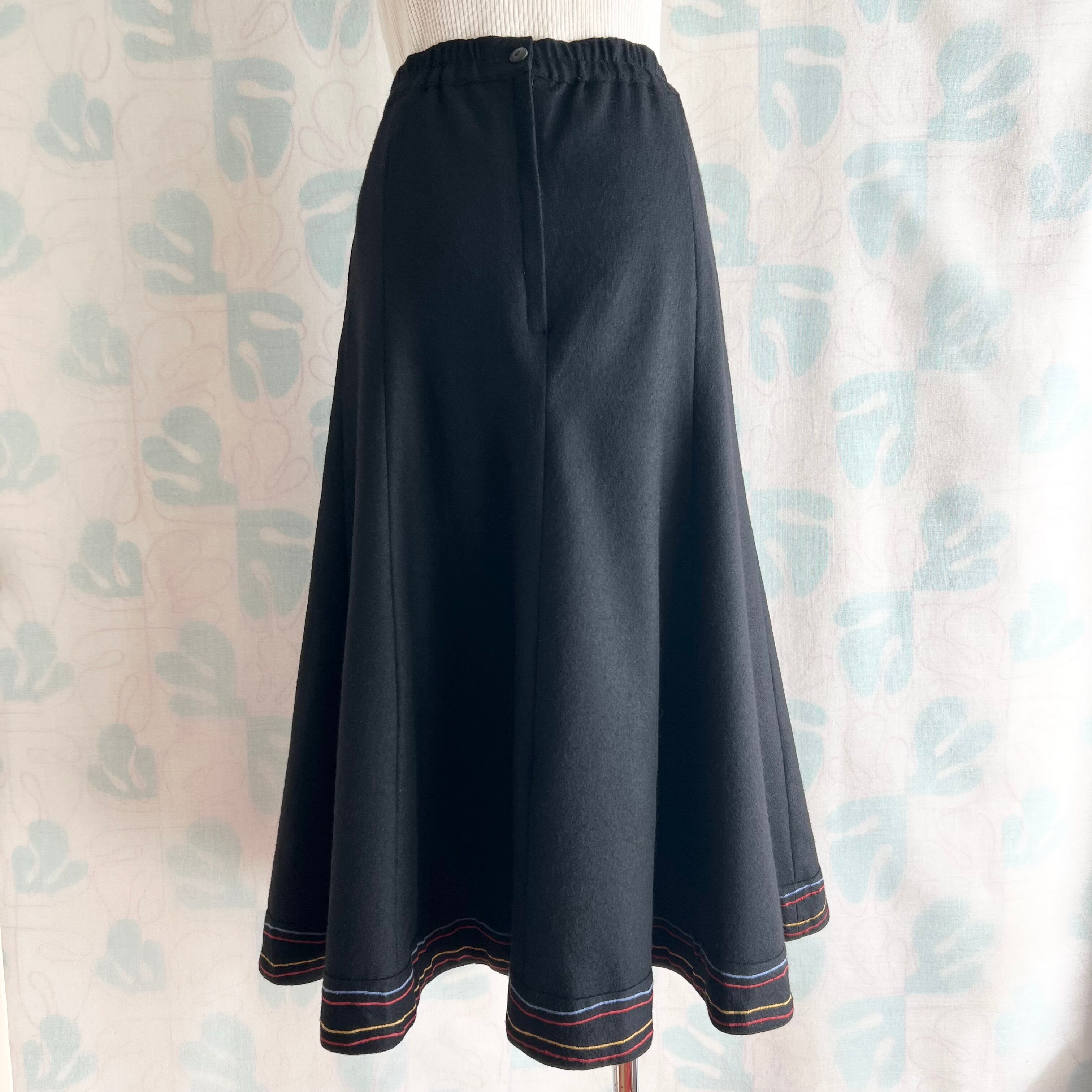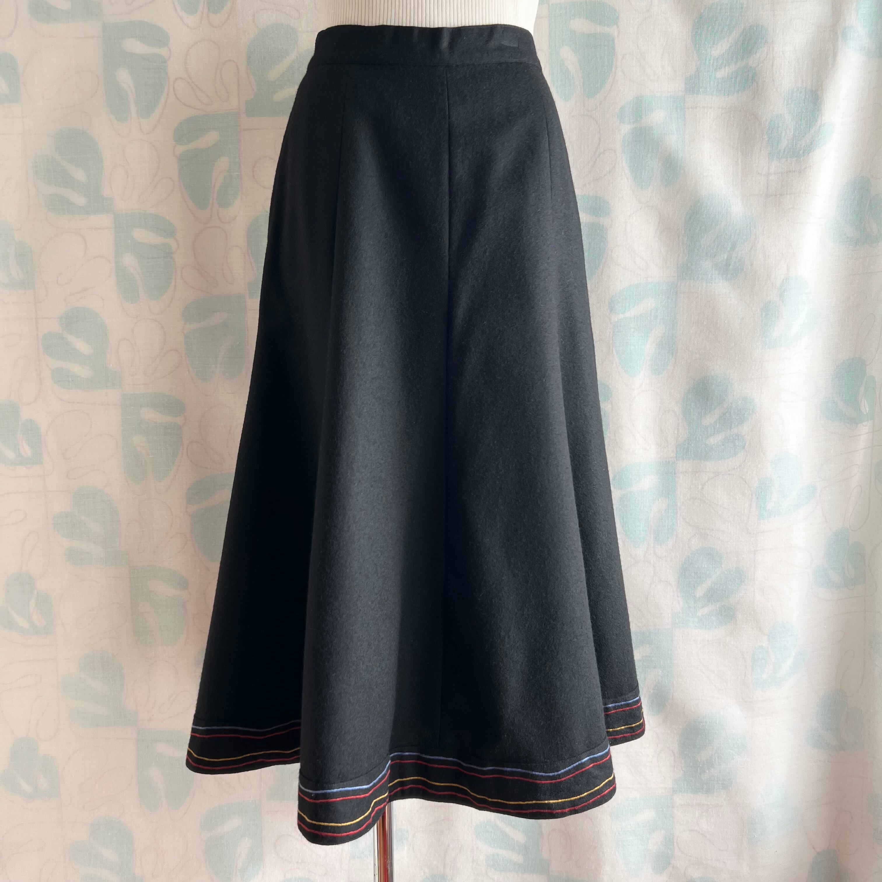 ヴィンテージ ブラック×ミシン刺繍ロングスカート。