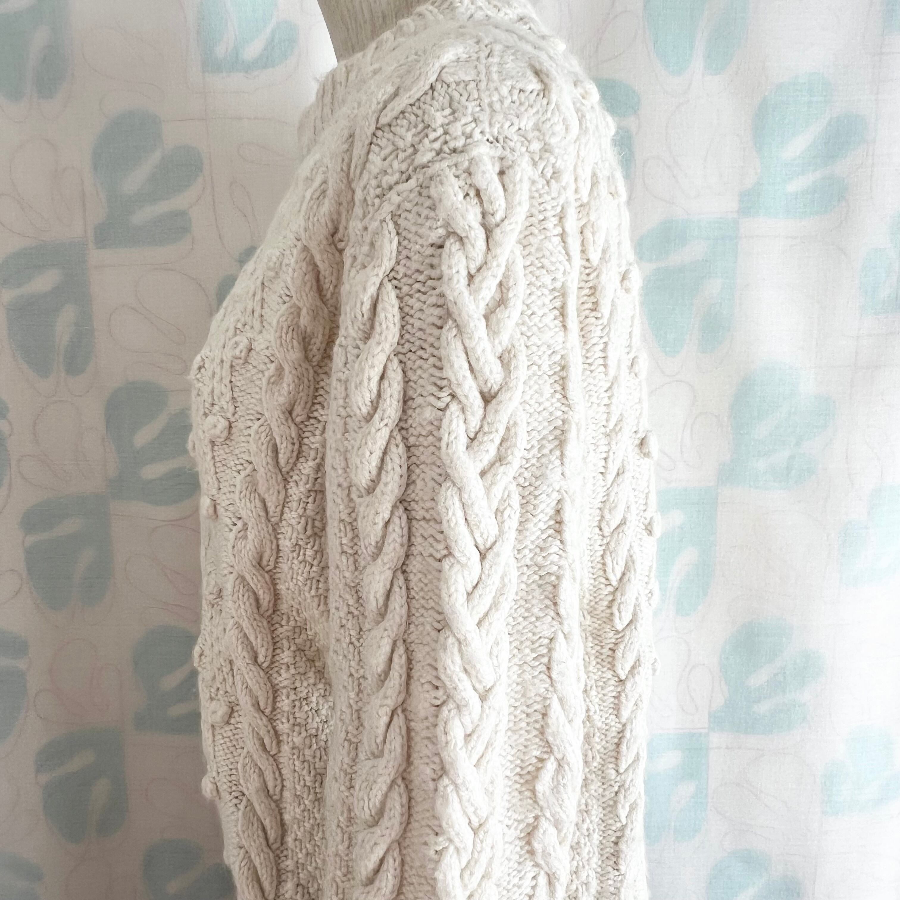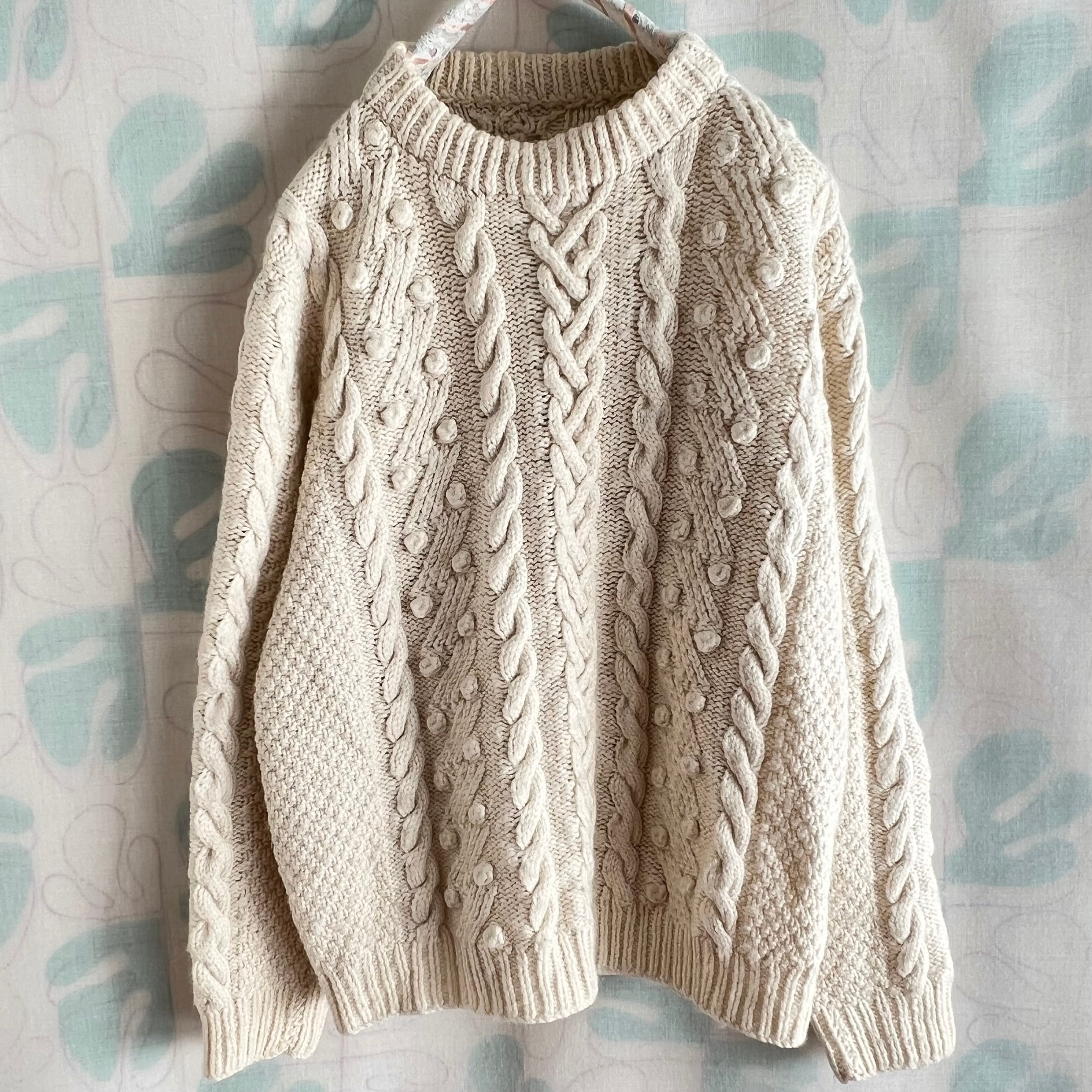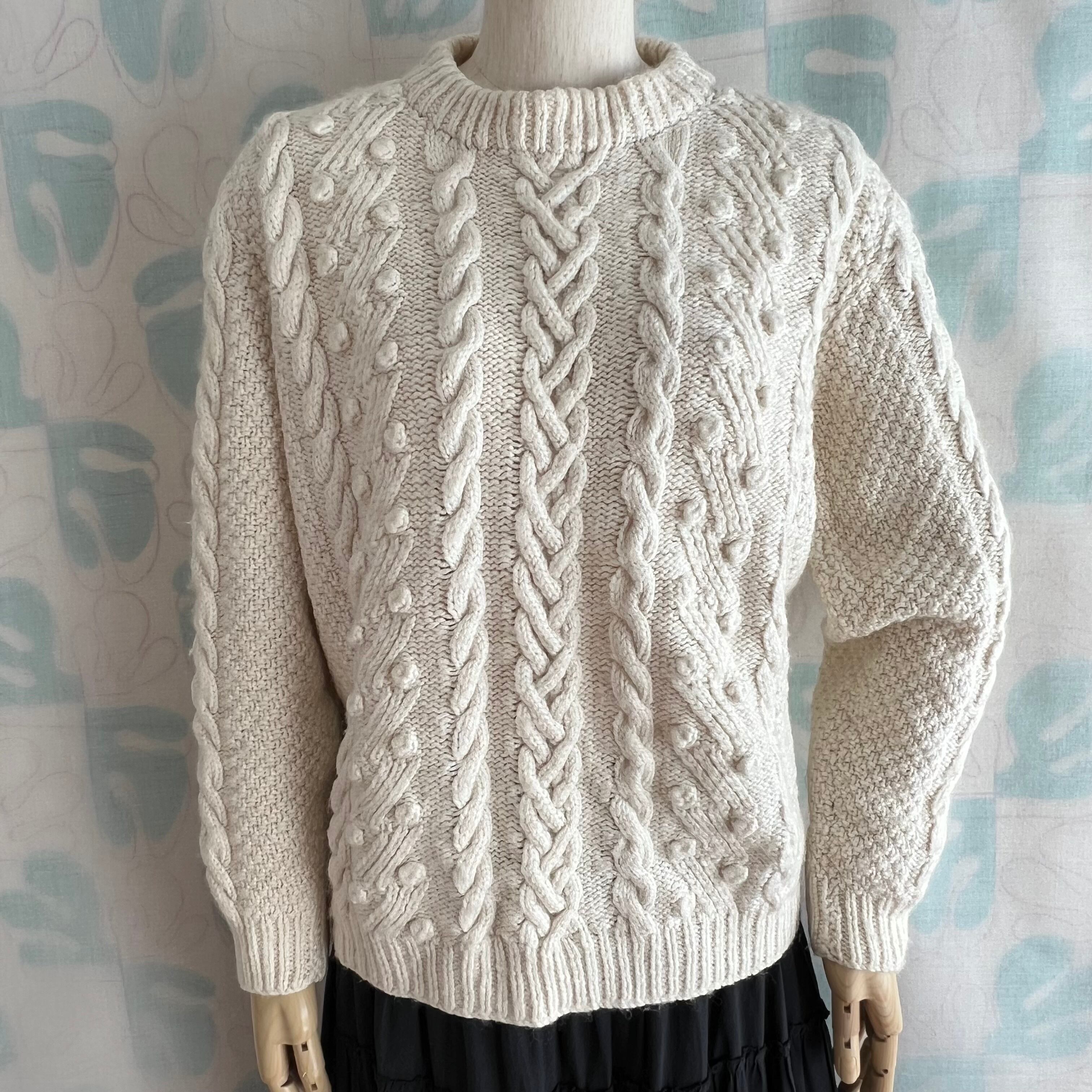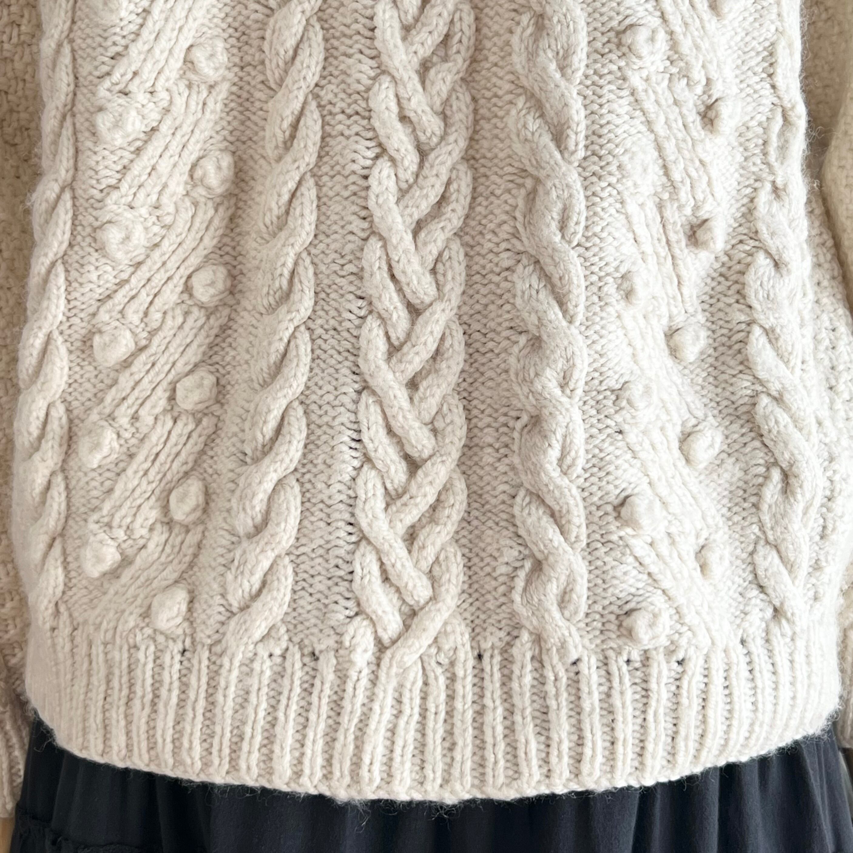 伝統的なアラン模様がたくさん施されたハンドニッティングです。