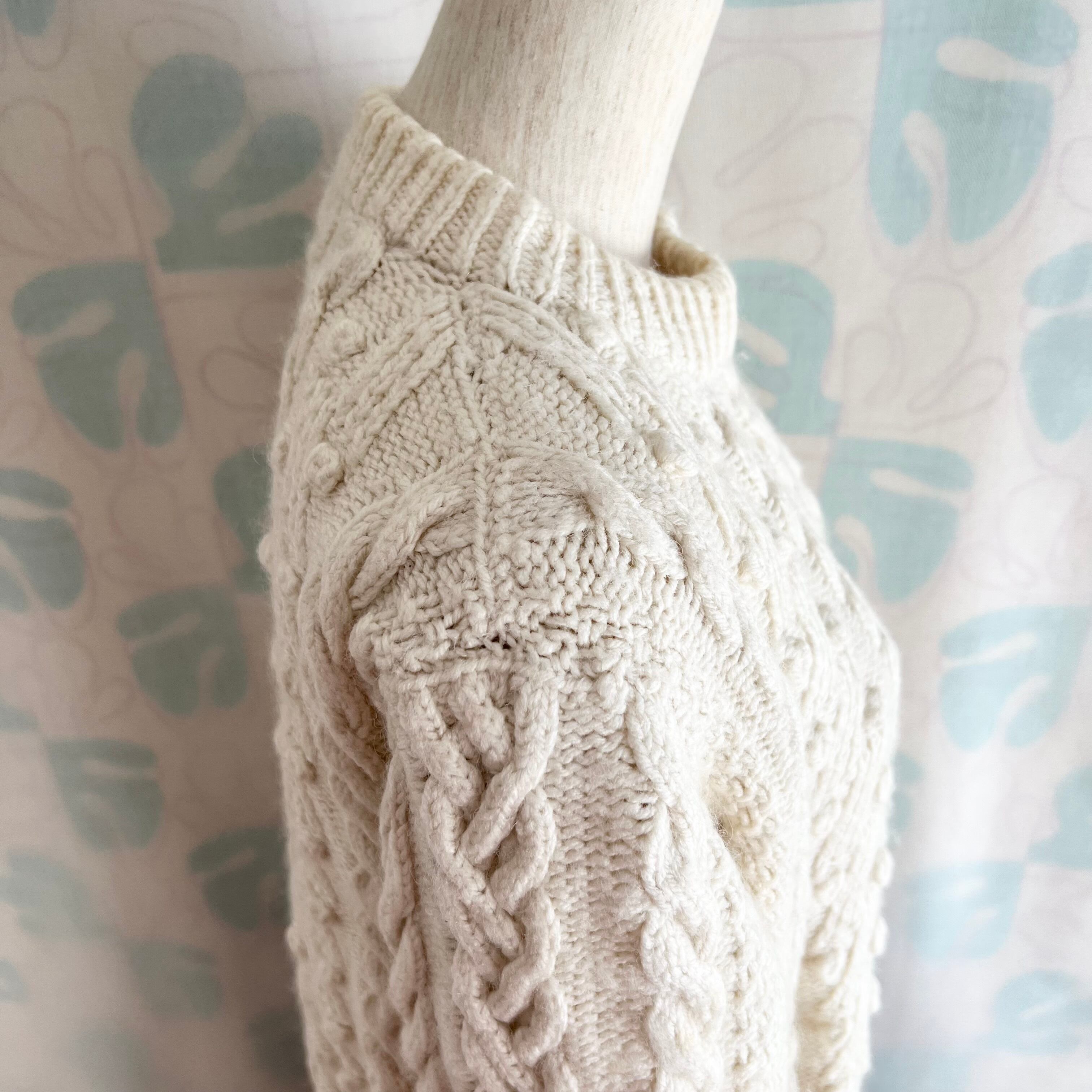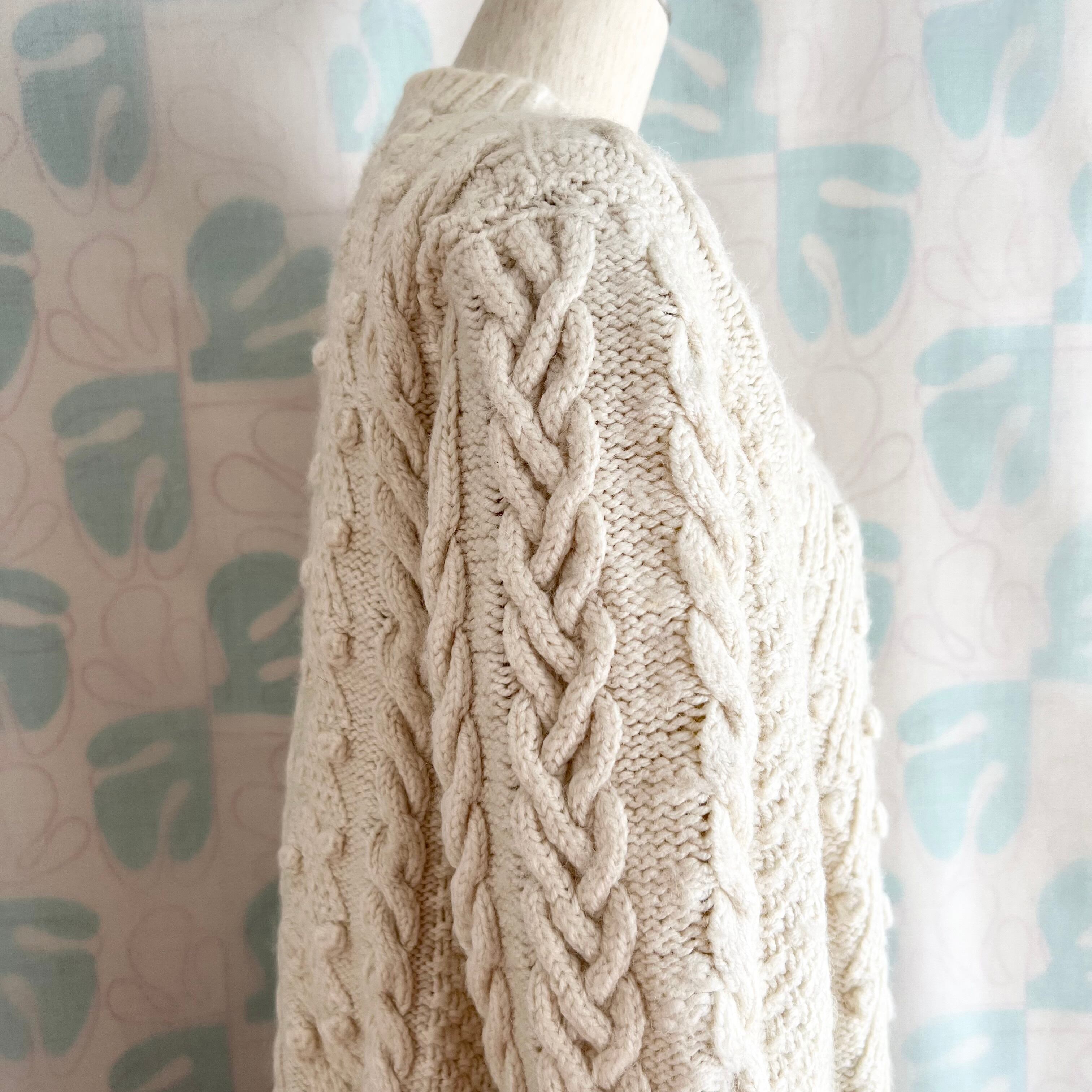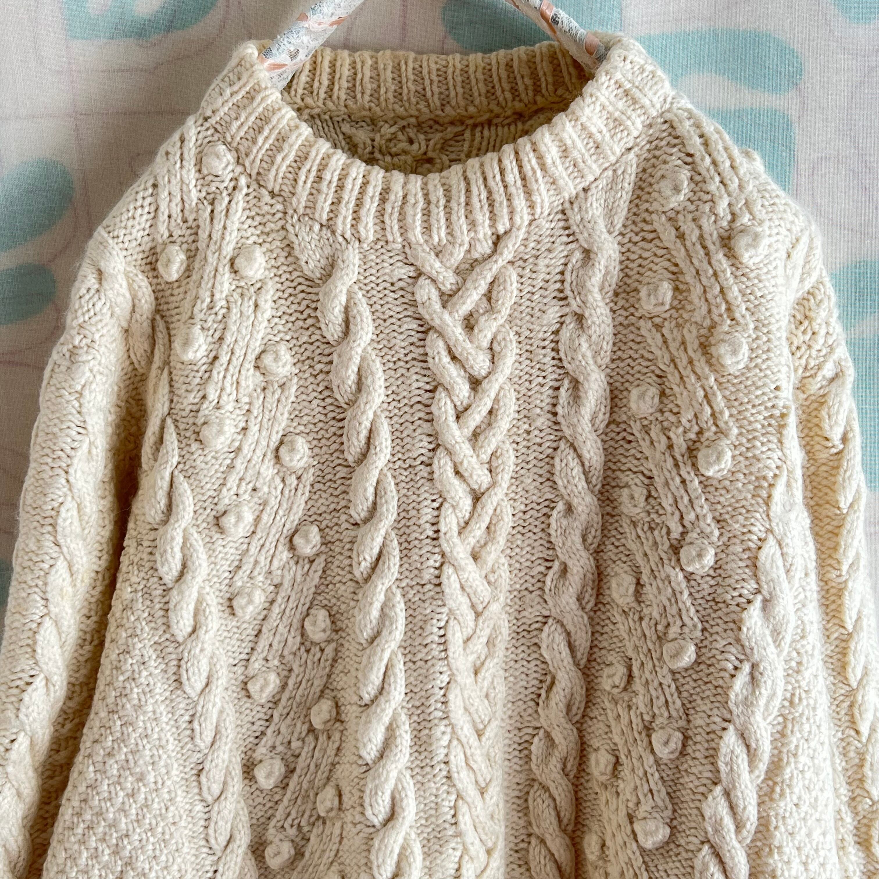 伝統的なアラン模様がたくさん施されたハンドニッティングです。