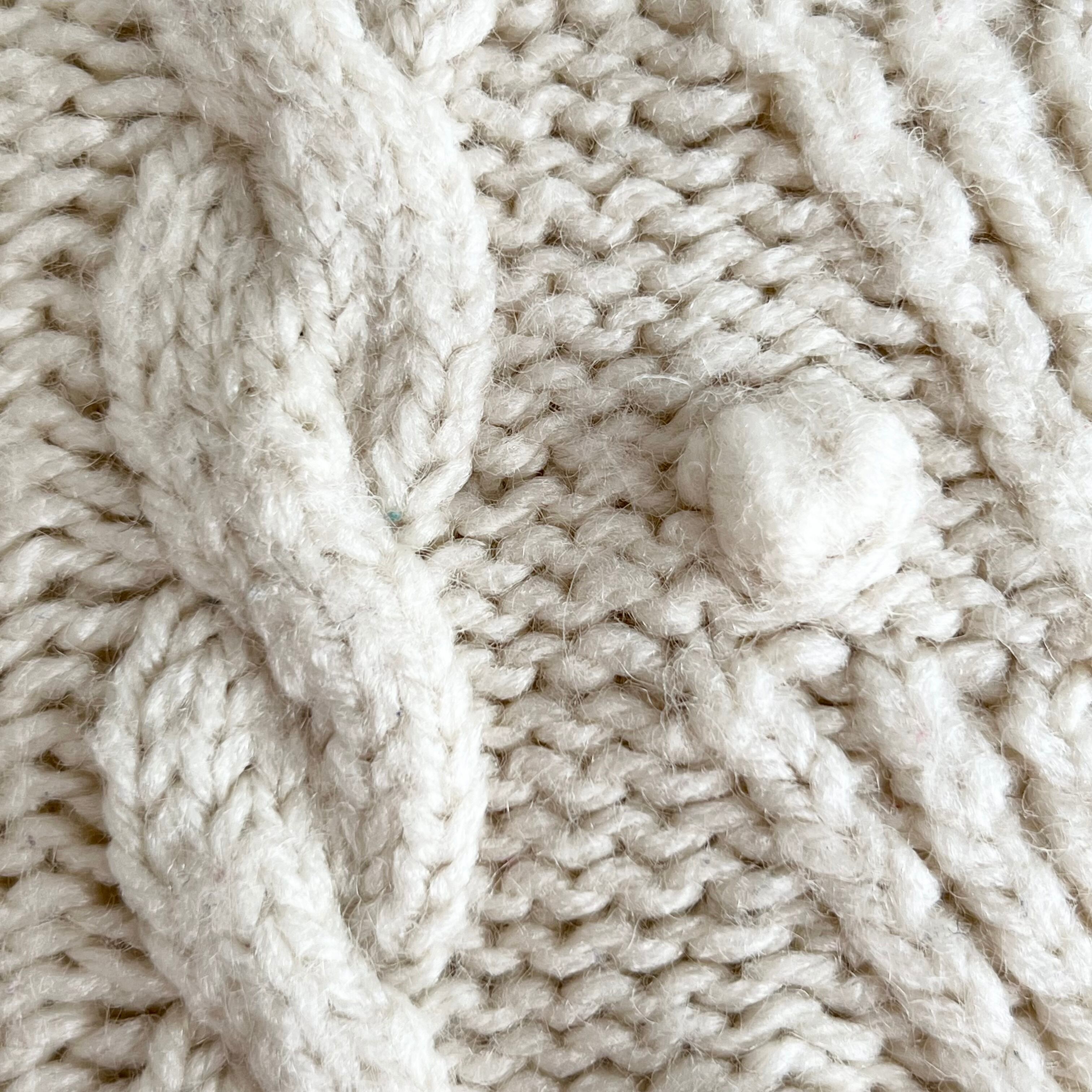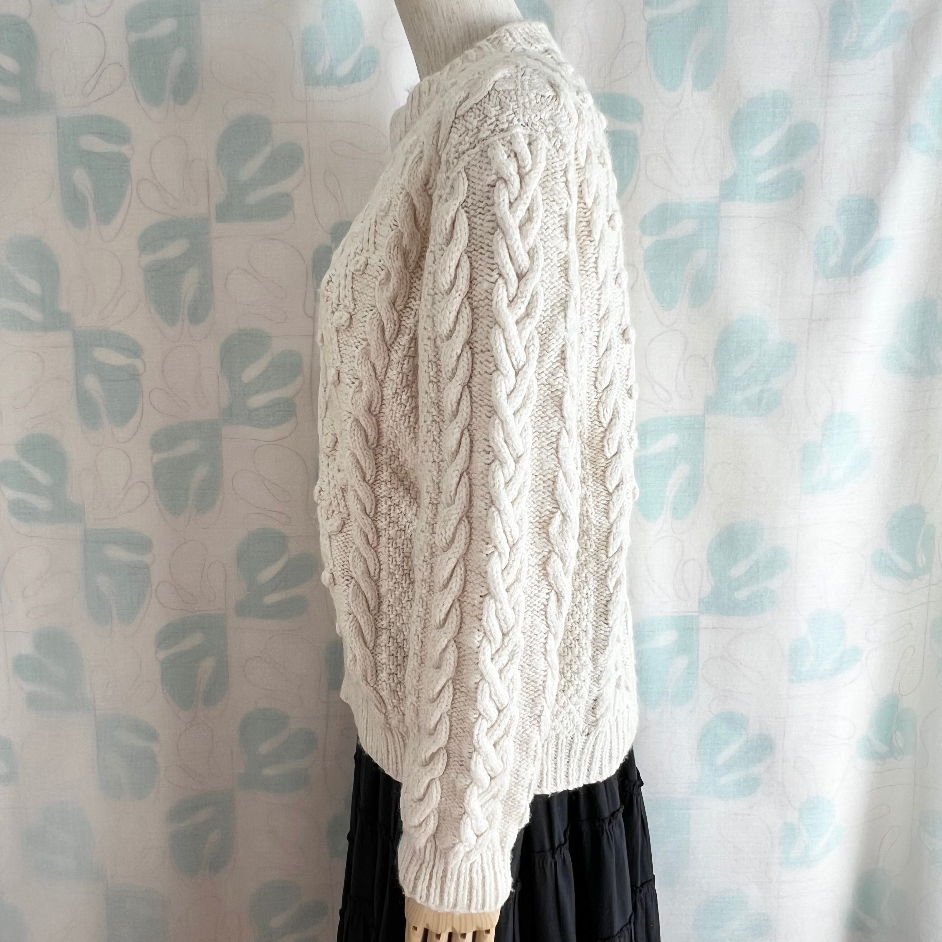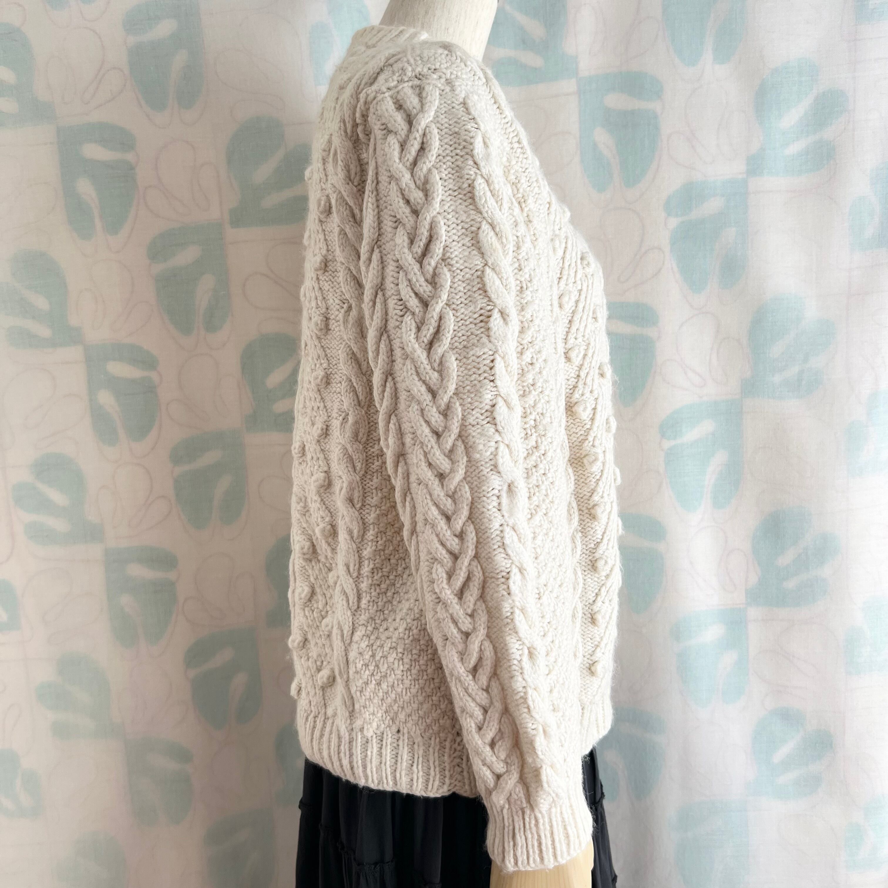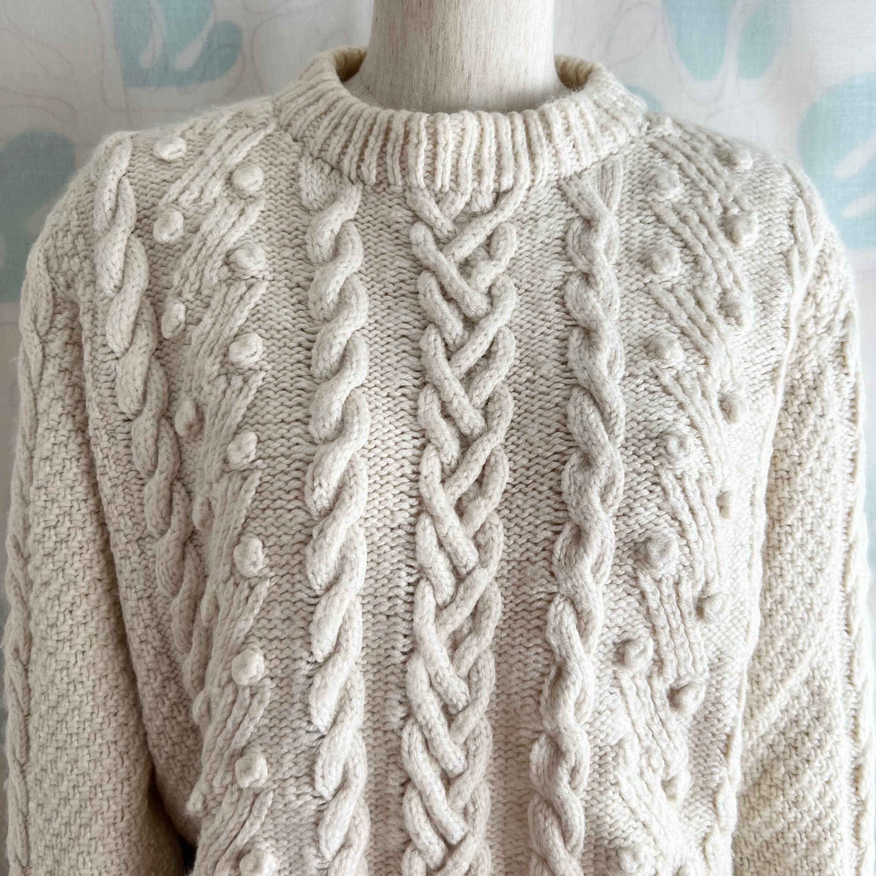 伝統的なアラン模様がたくさん施されたハンドニッティングです。