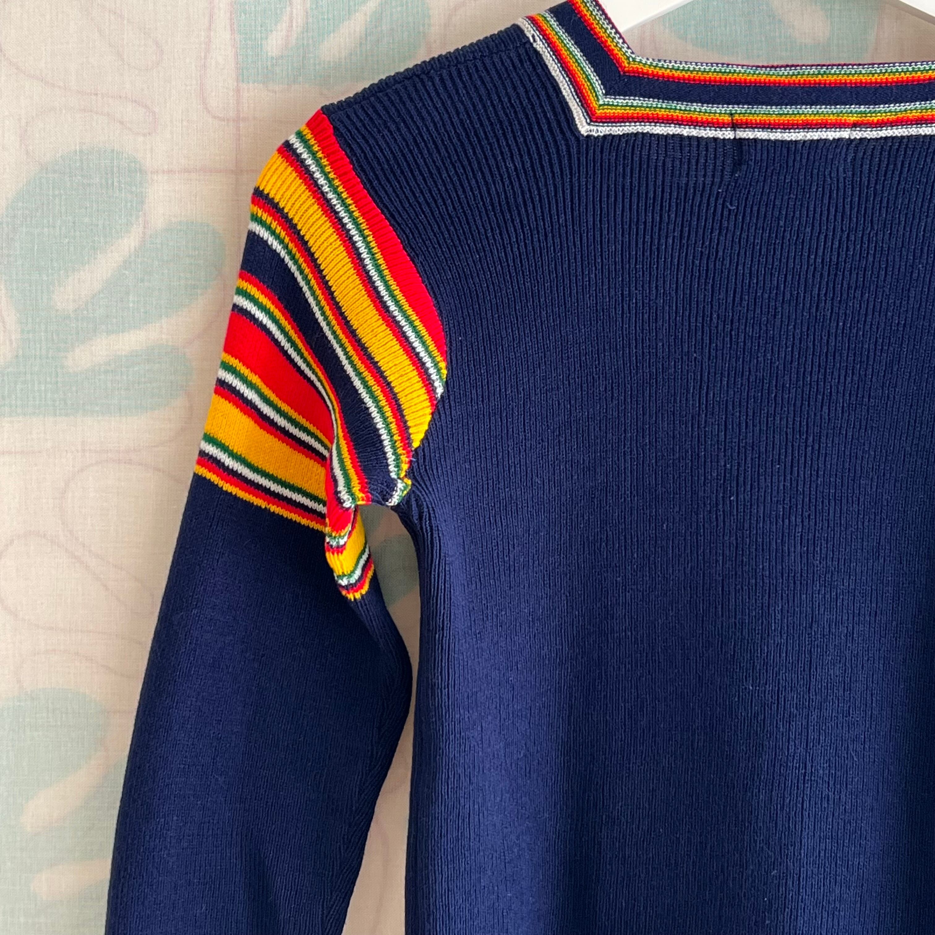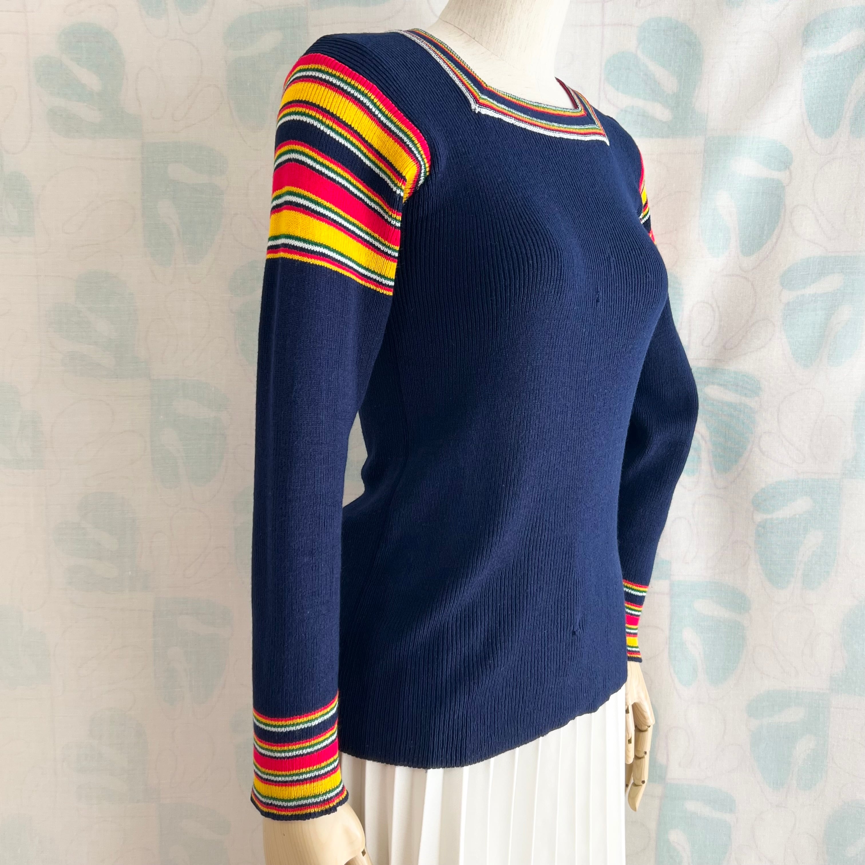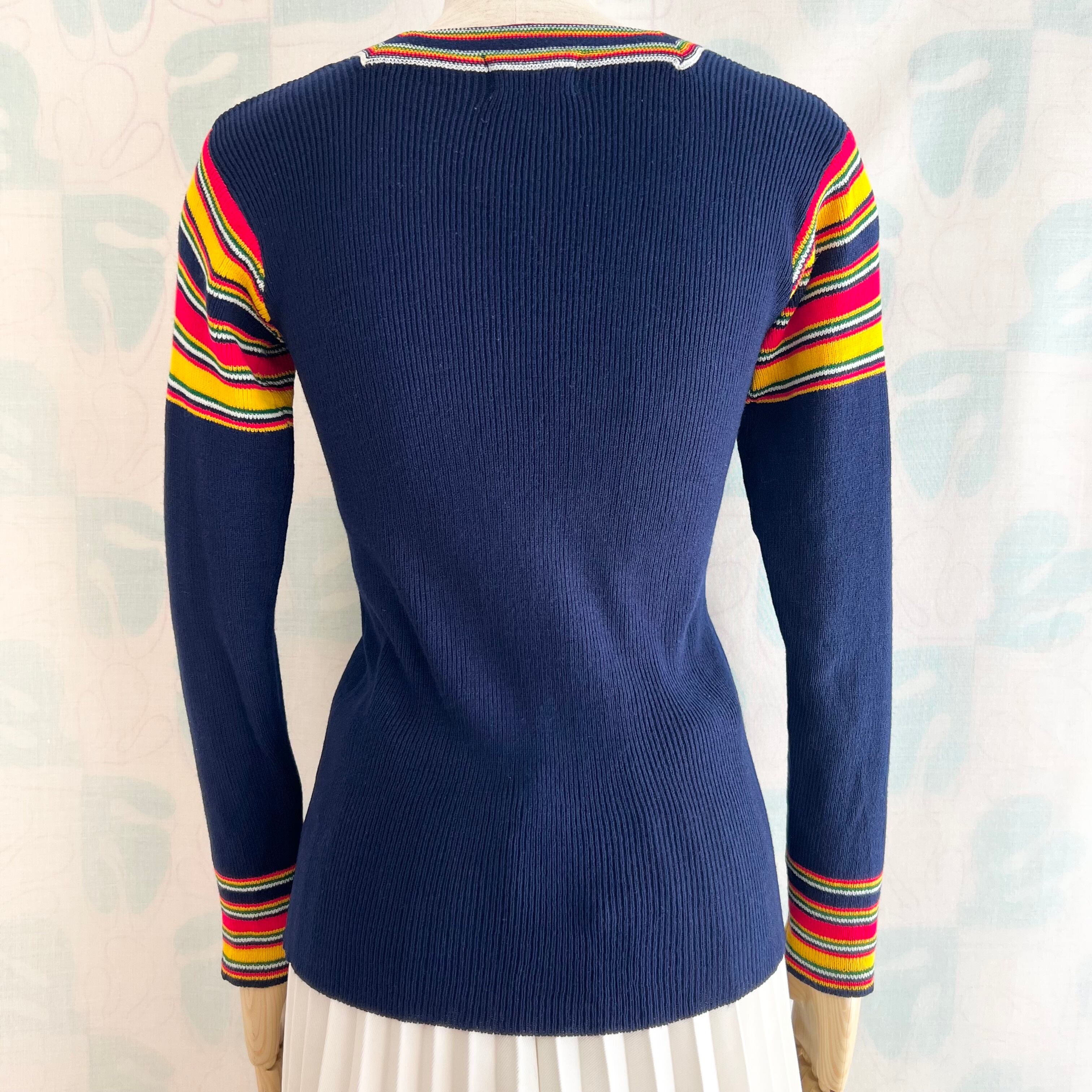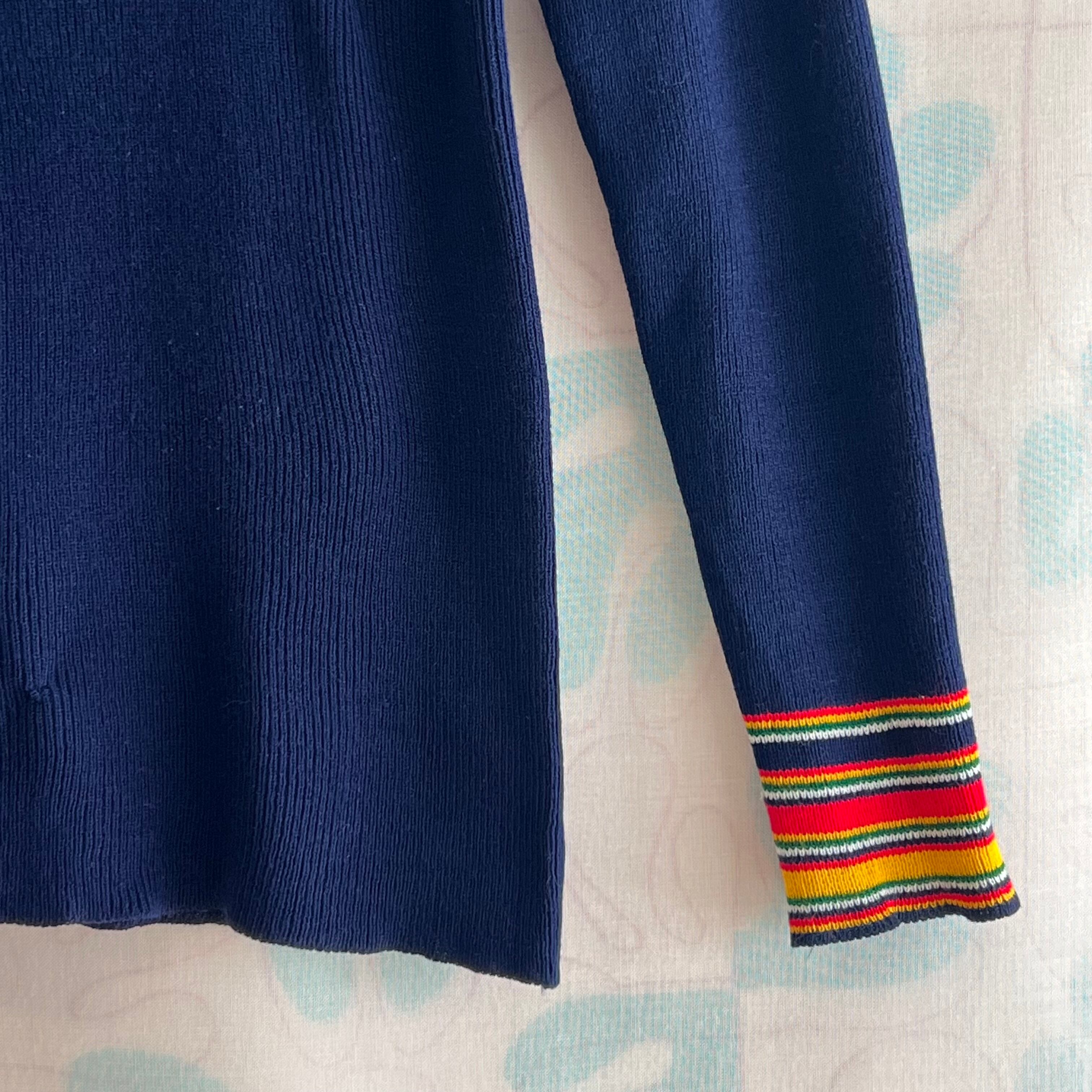 70's navy ribbed knit sweater with colorful stripes