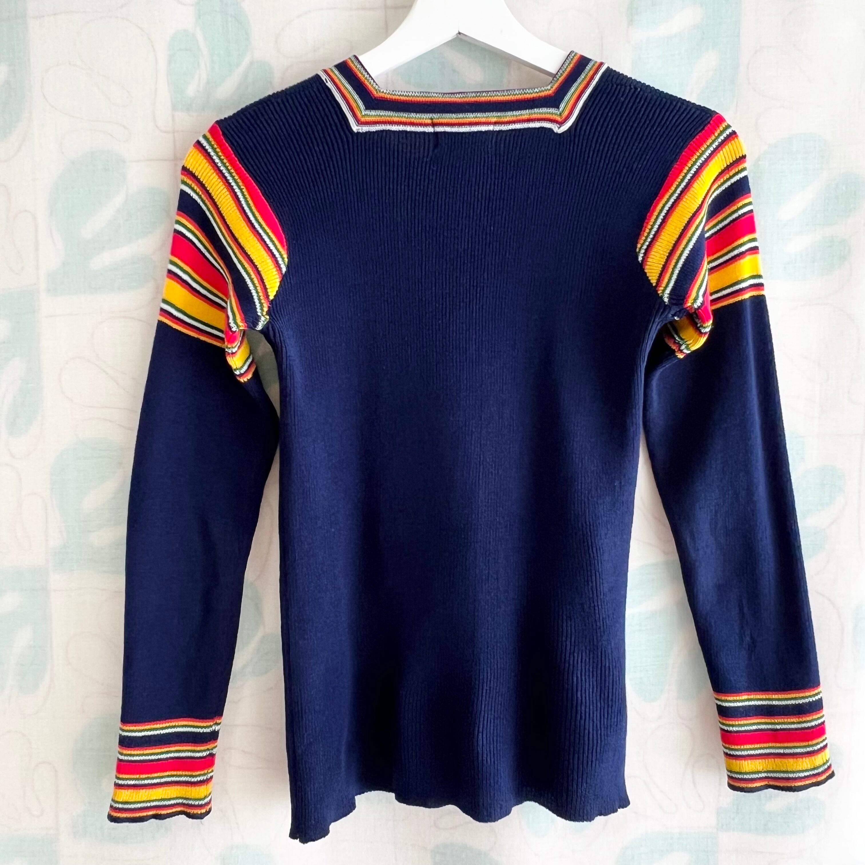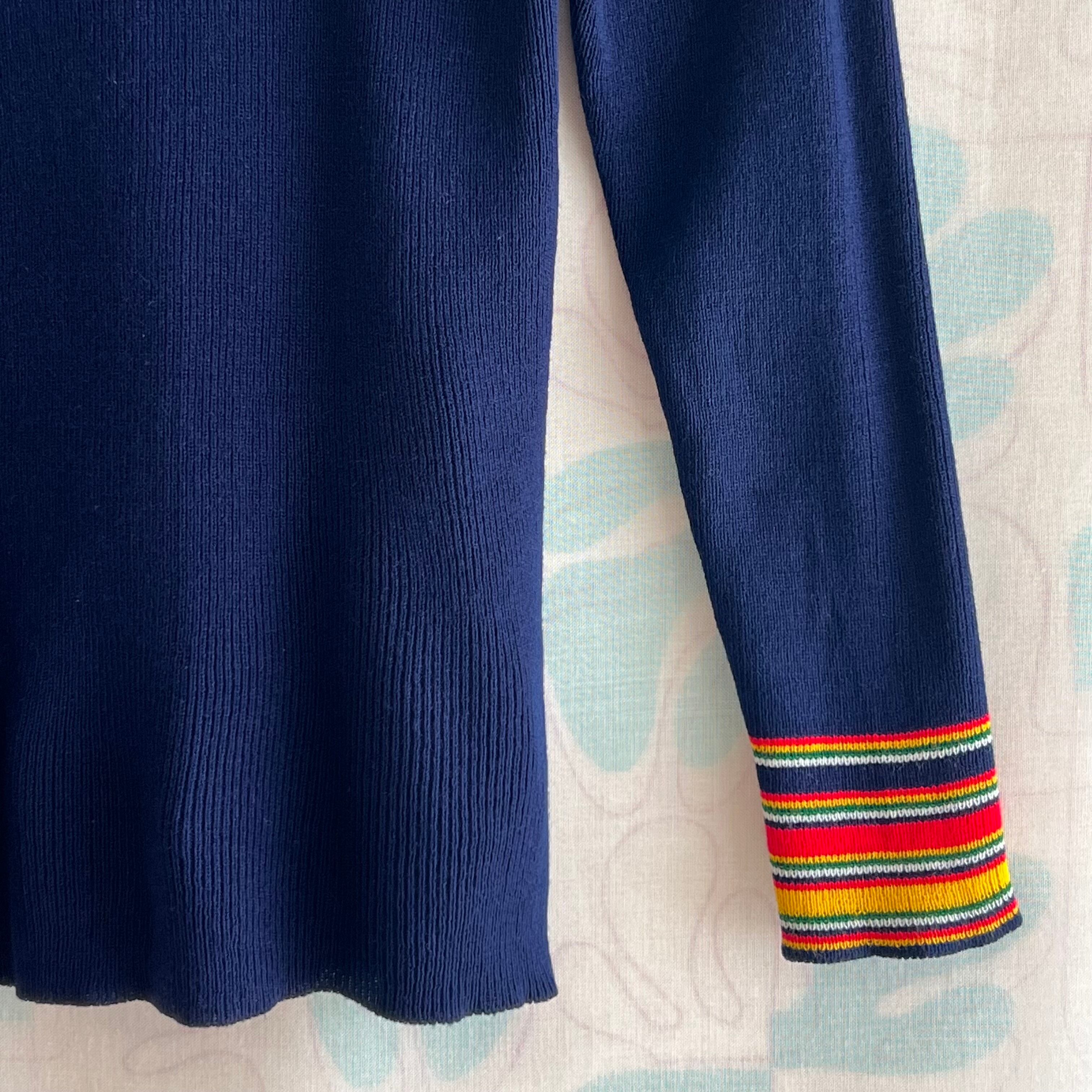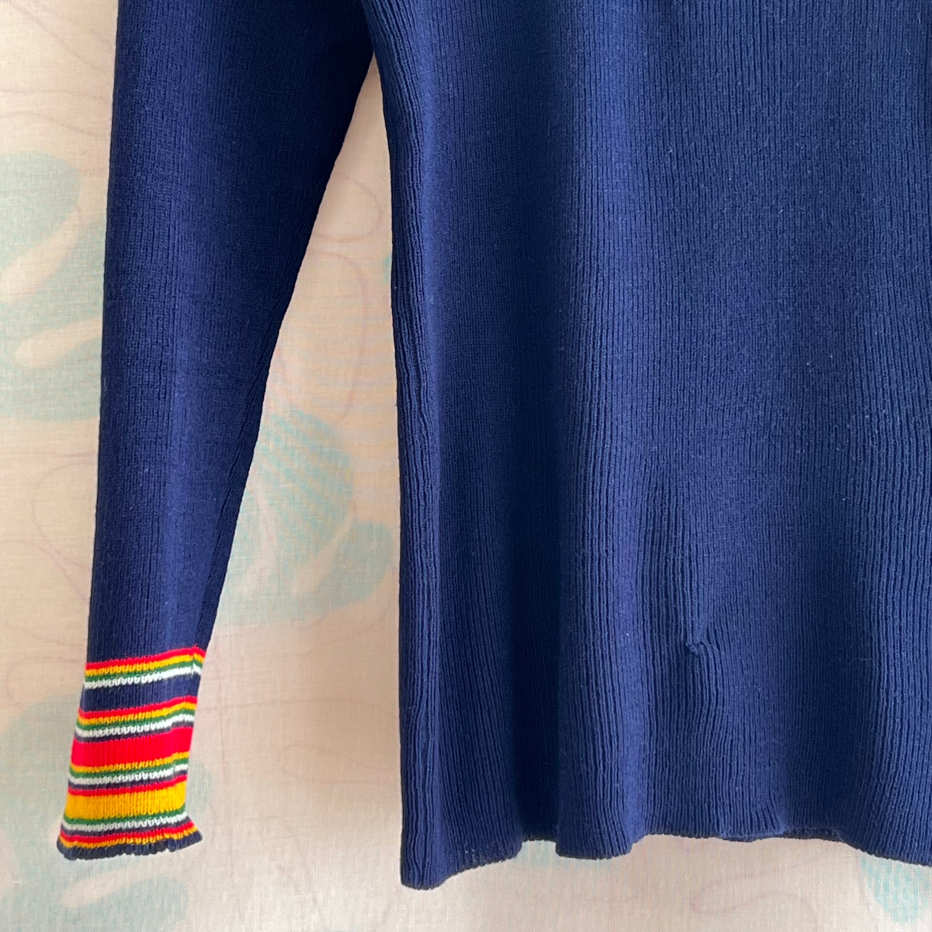 70's navy ribbed knit sweater with colorful stripes