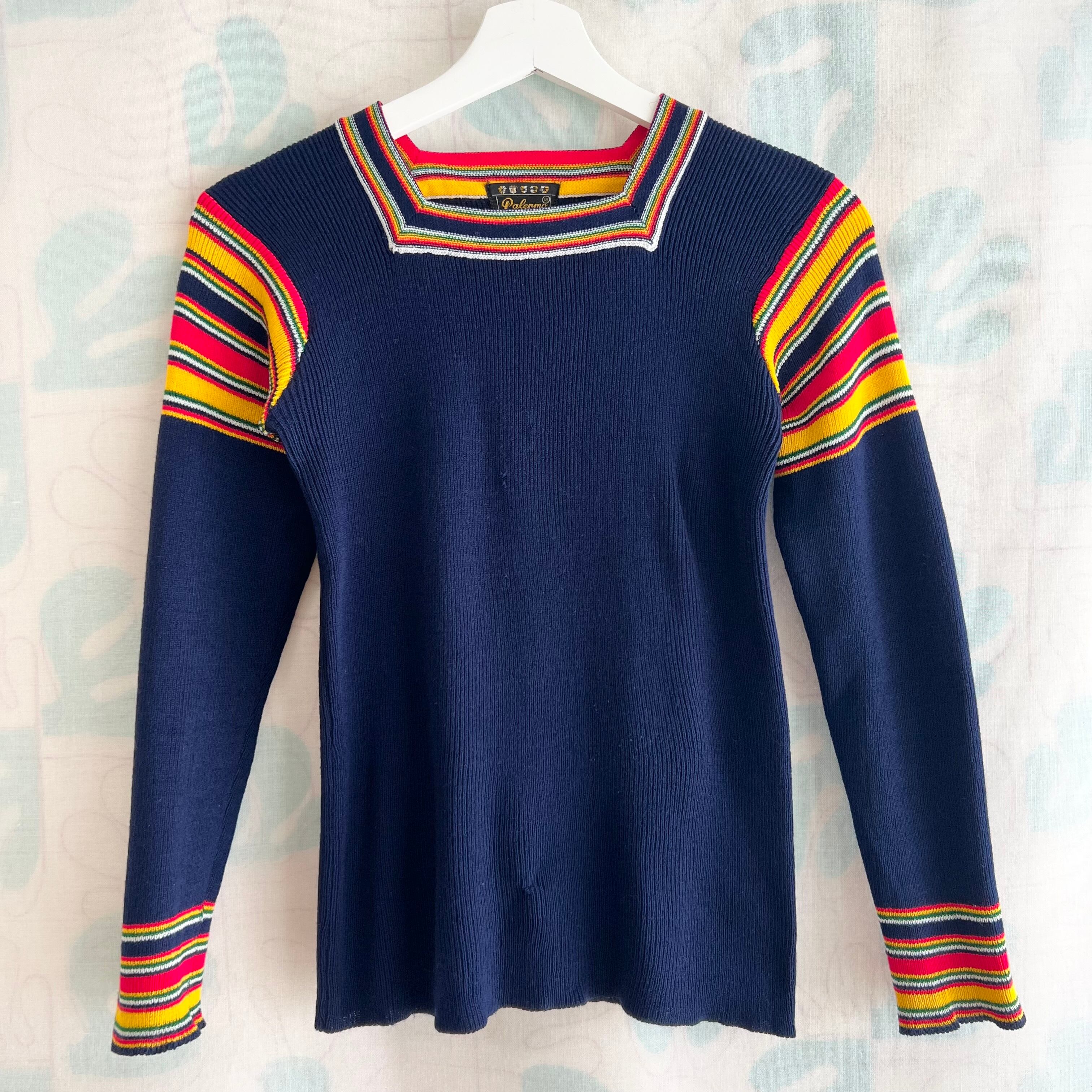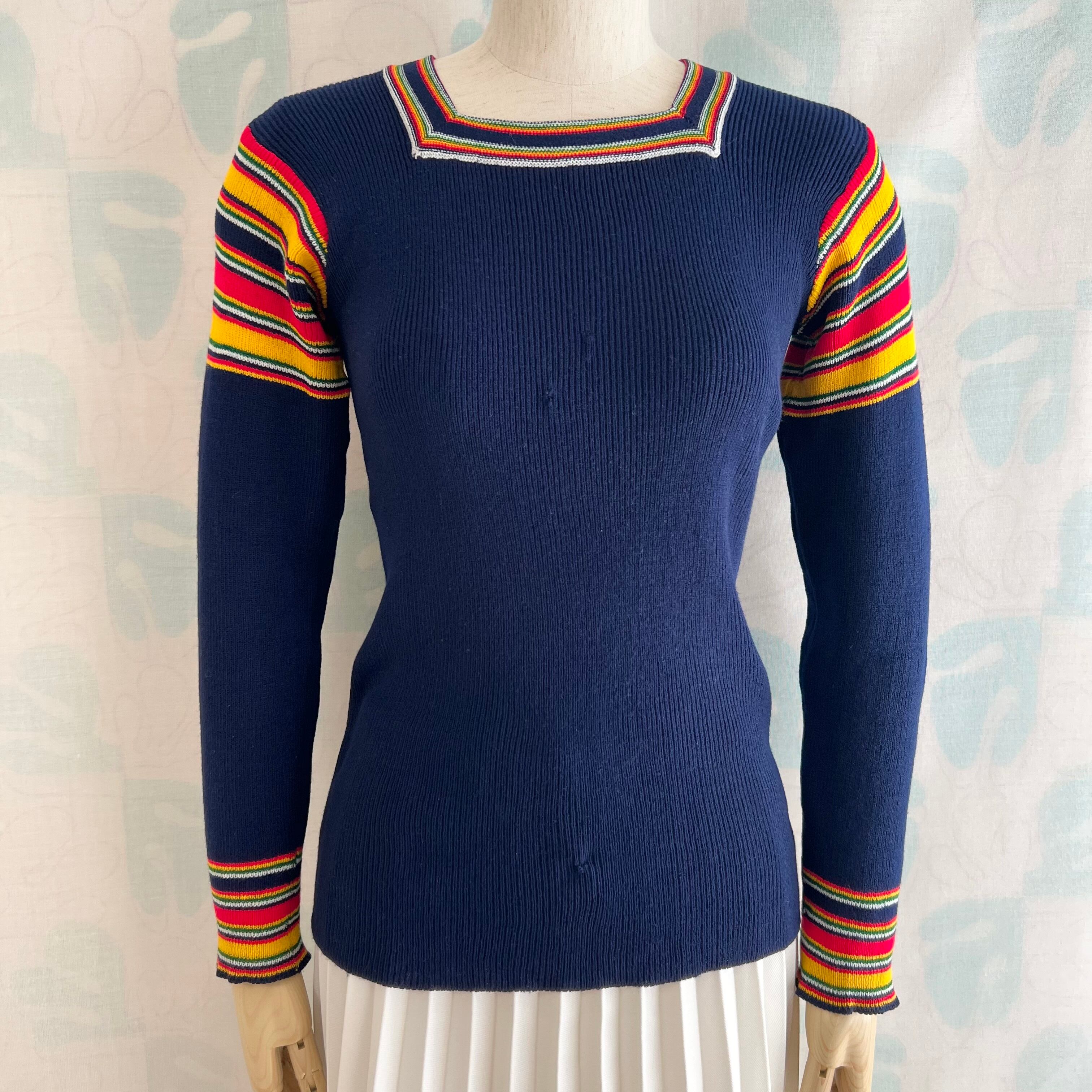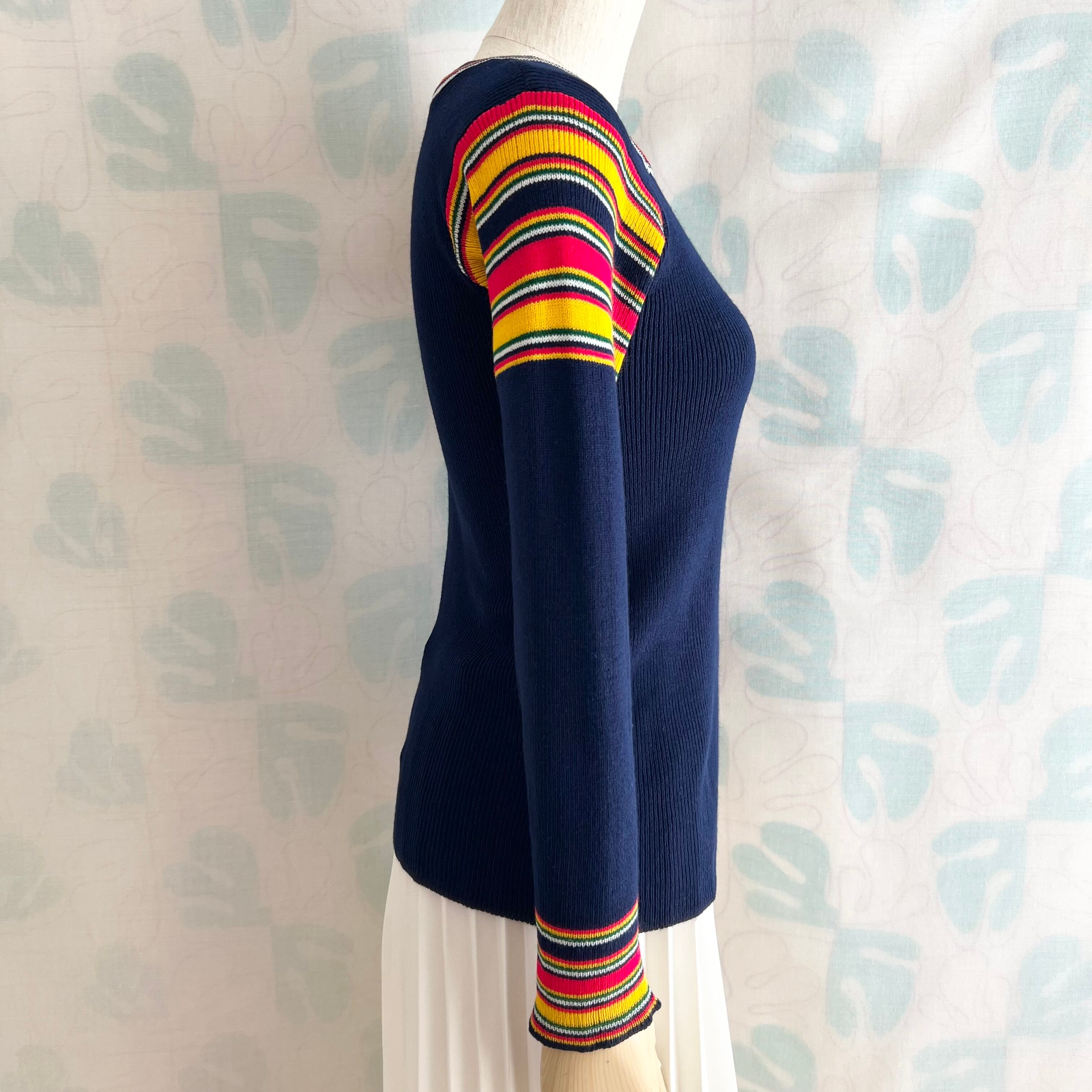 70's カラフルボーダー使いのリブニットセーター。