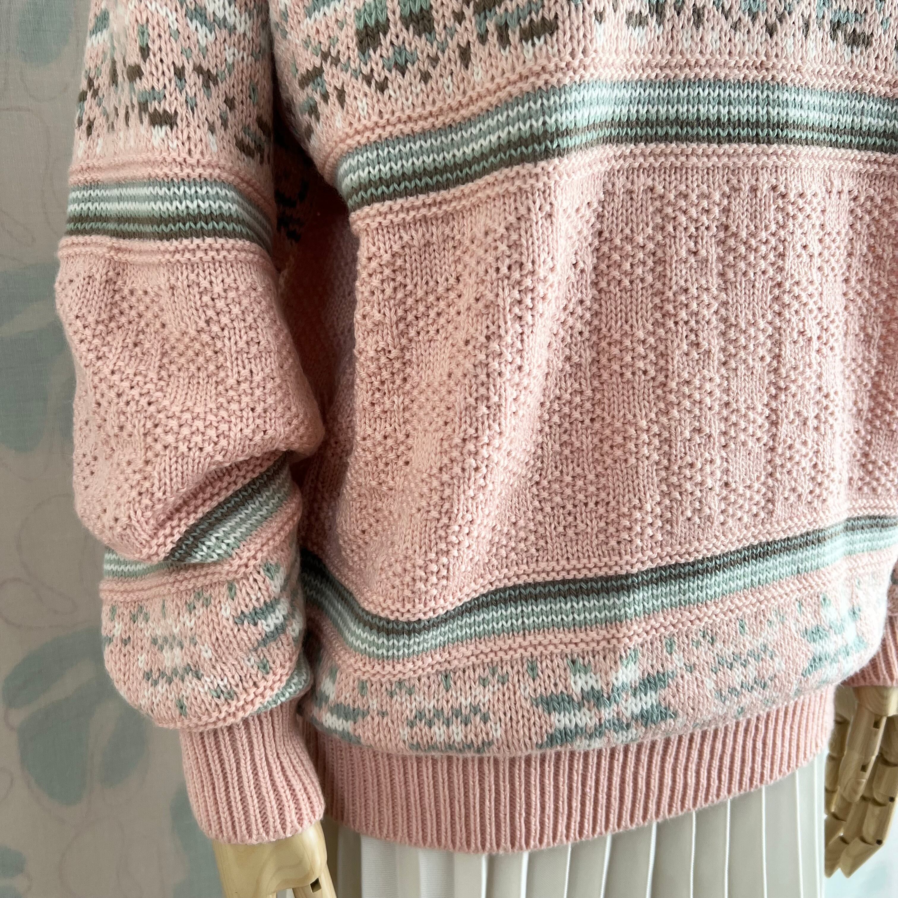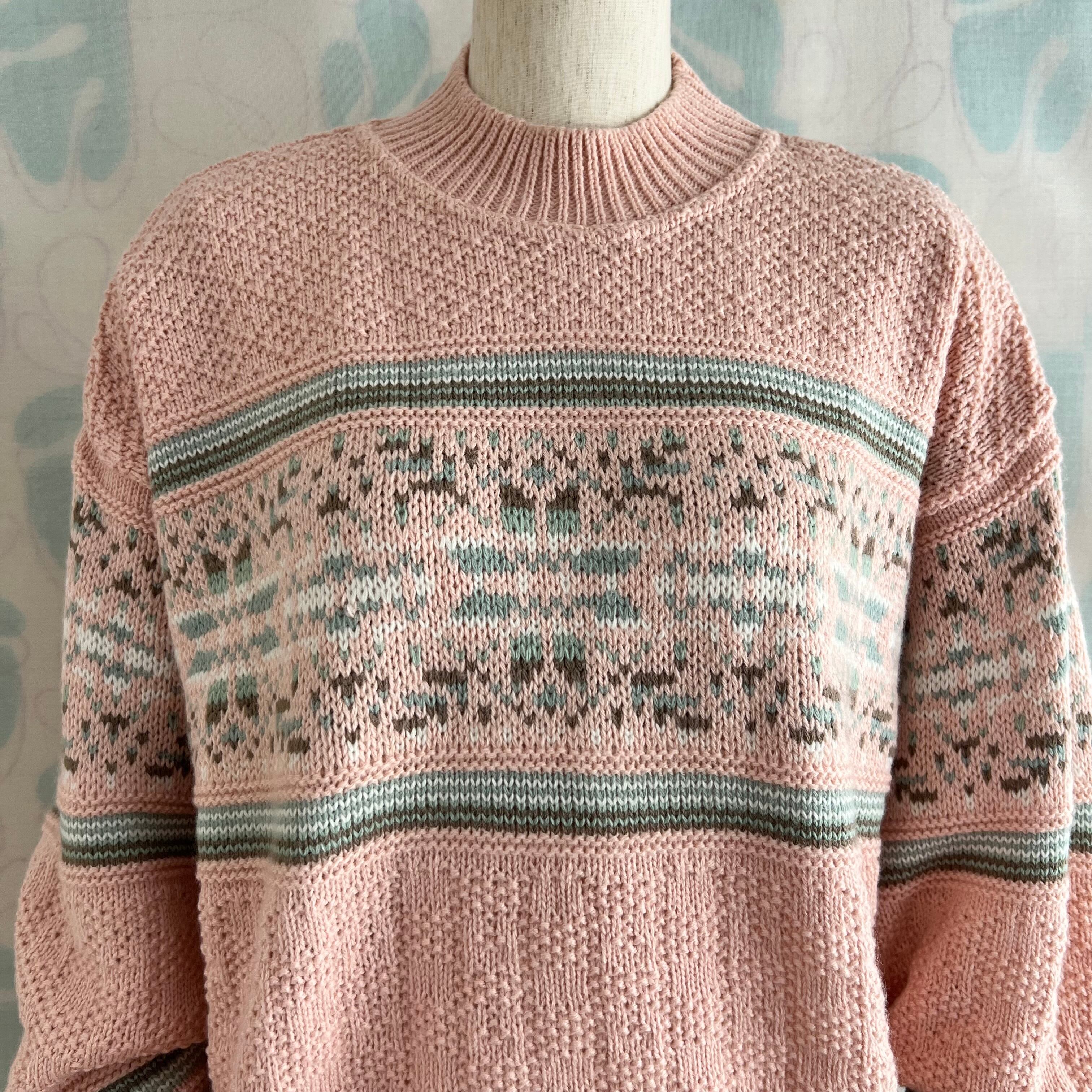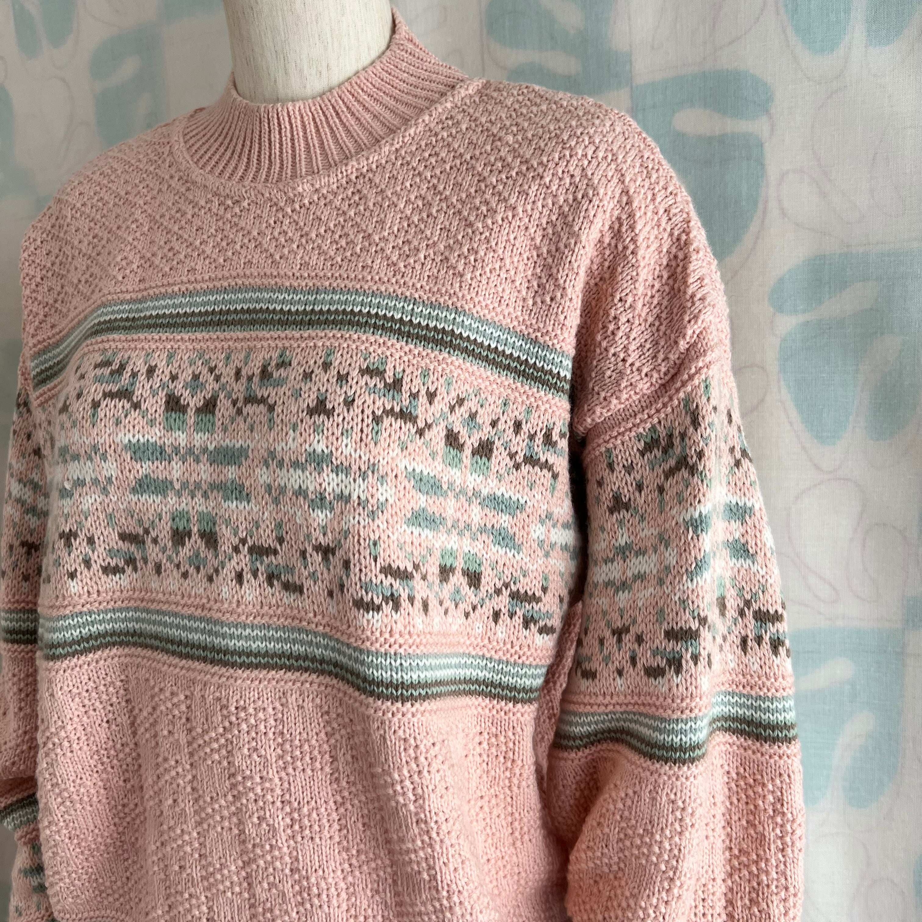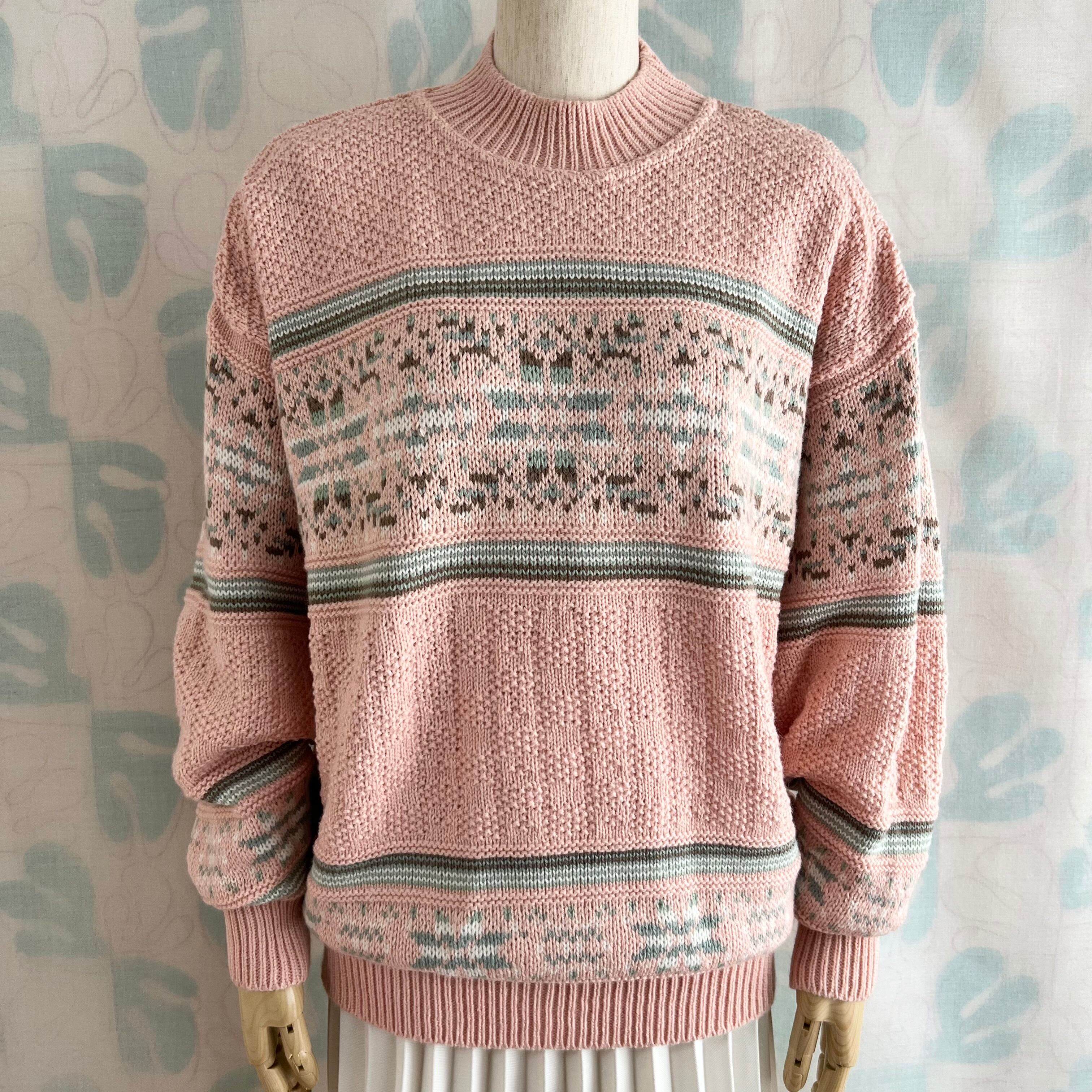 ユーズド ミックス編み地のピンクセーター。