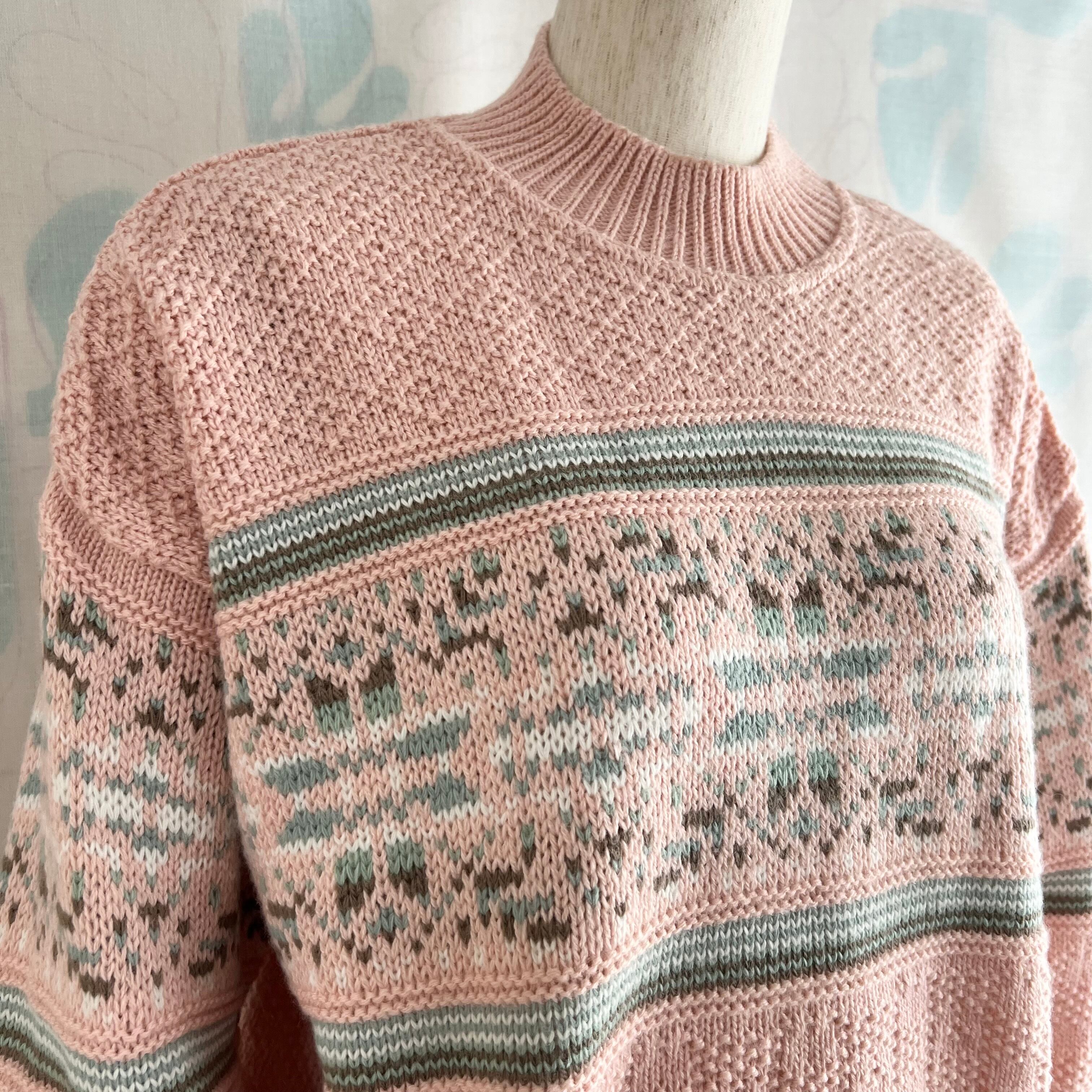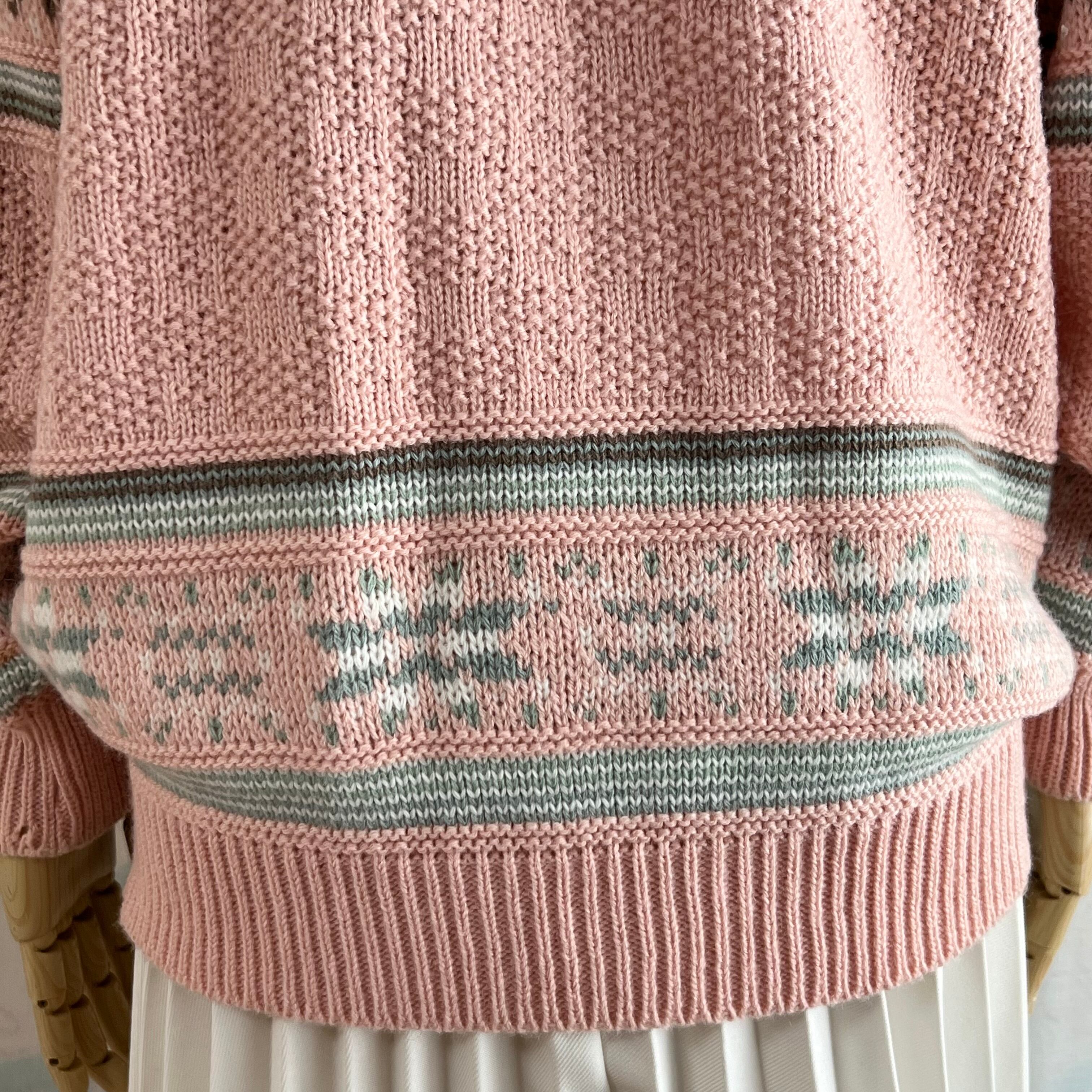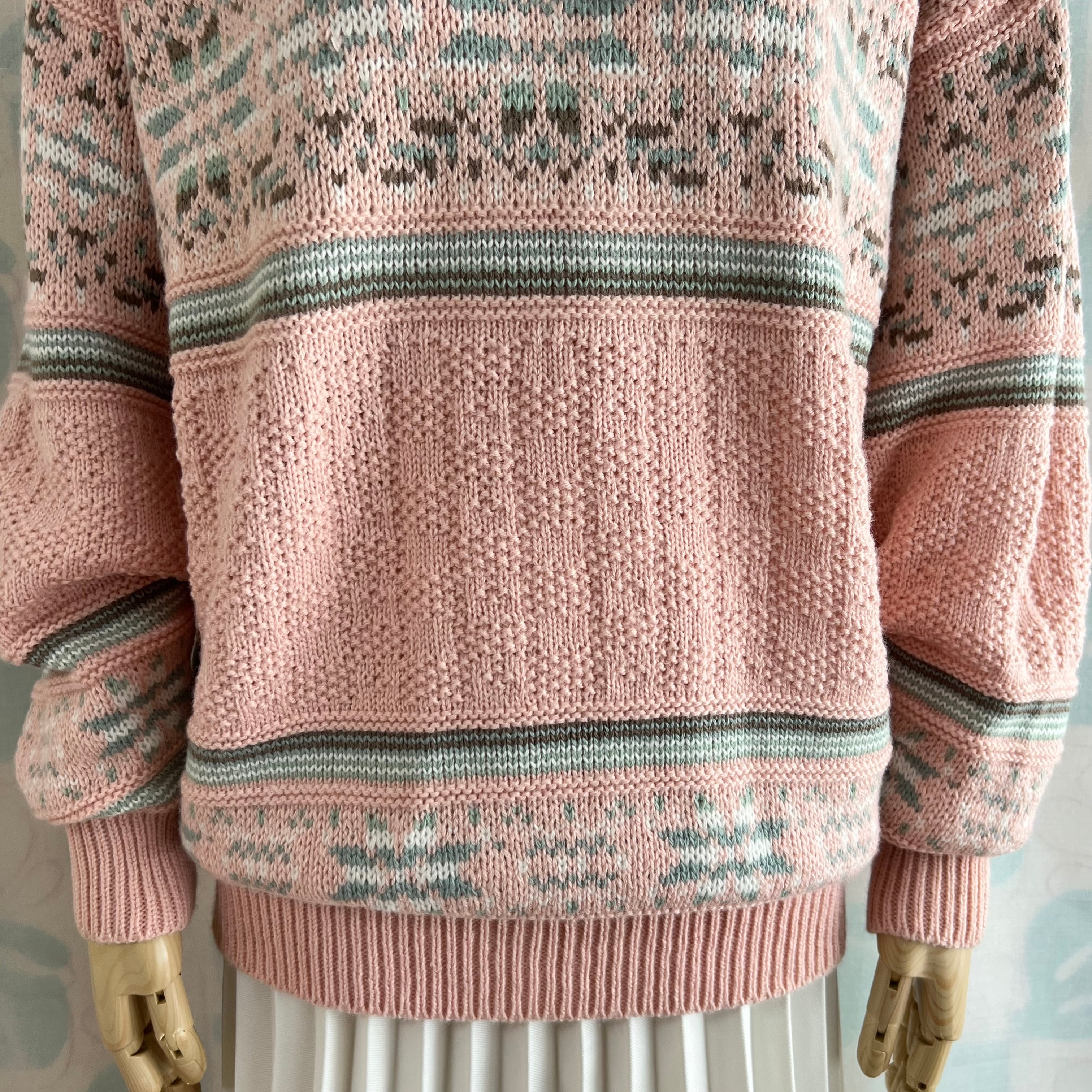 ユーズド ミックス編み地のピンクセーター。