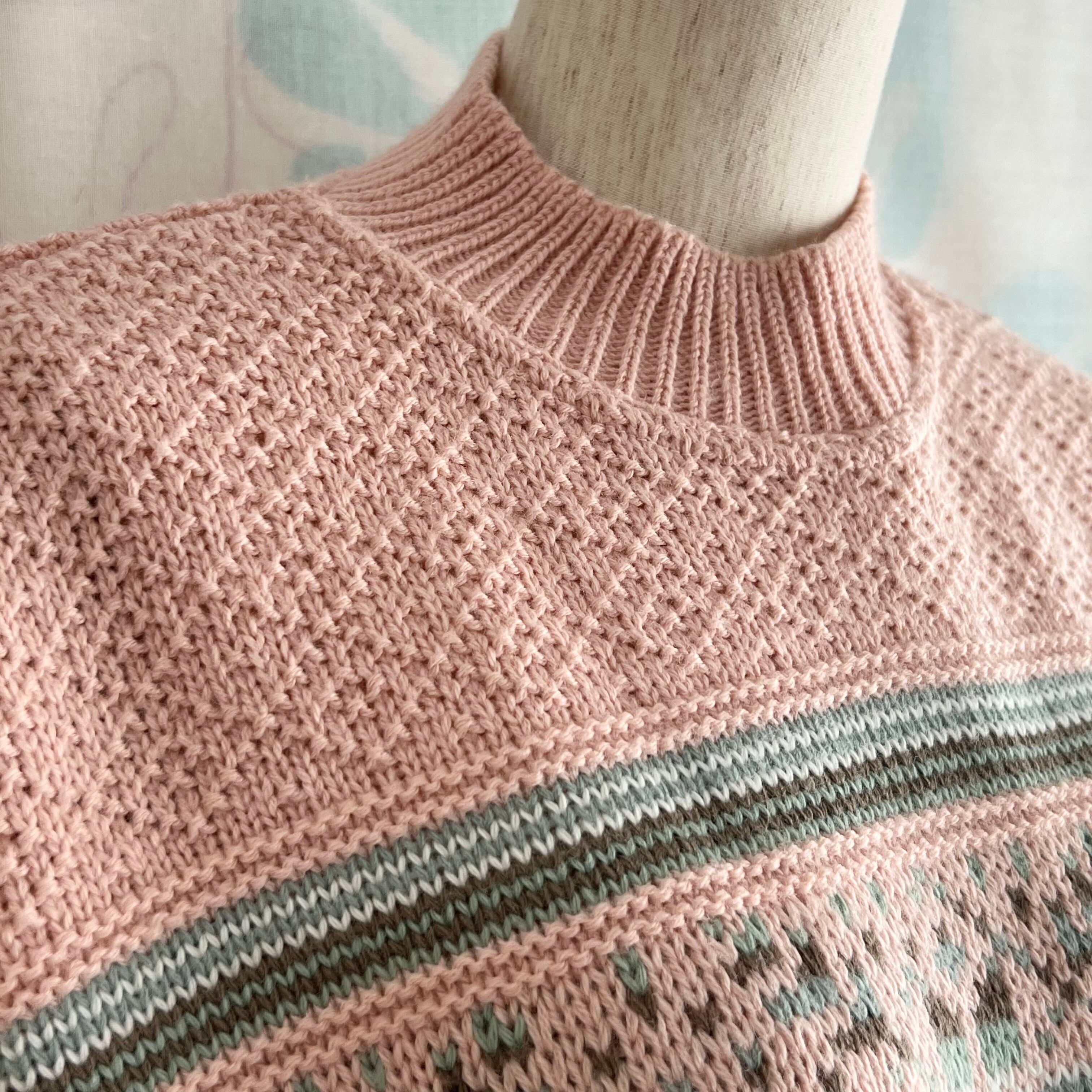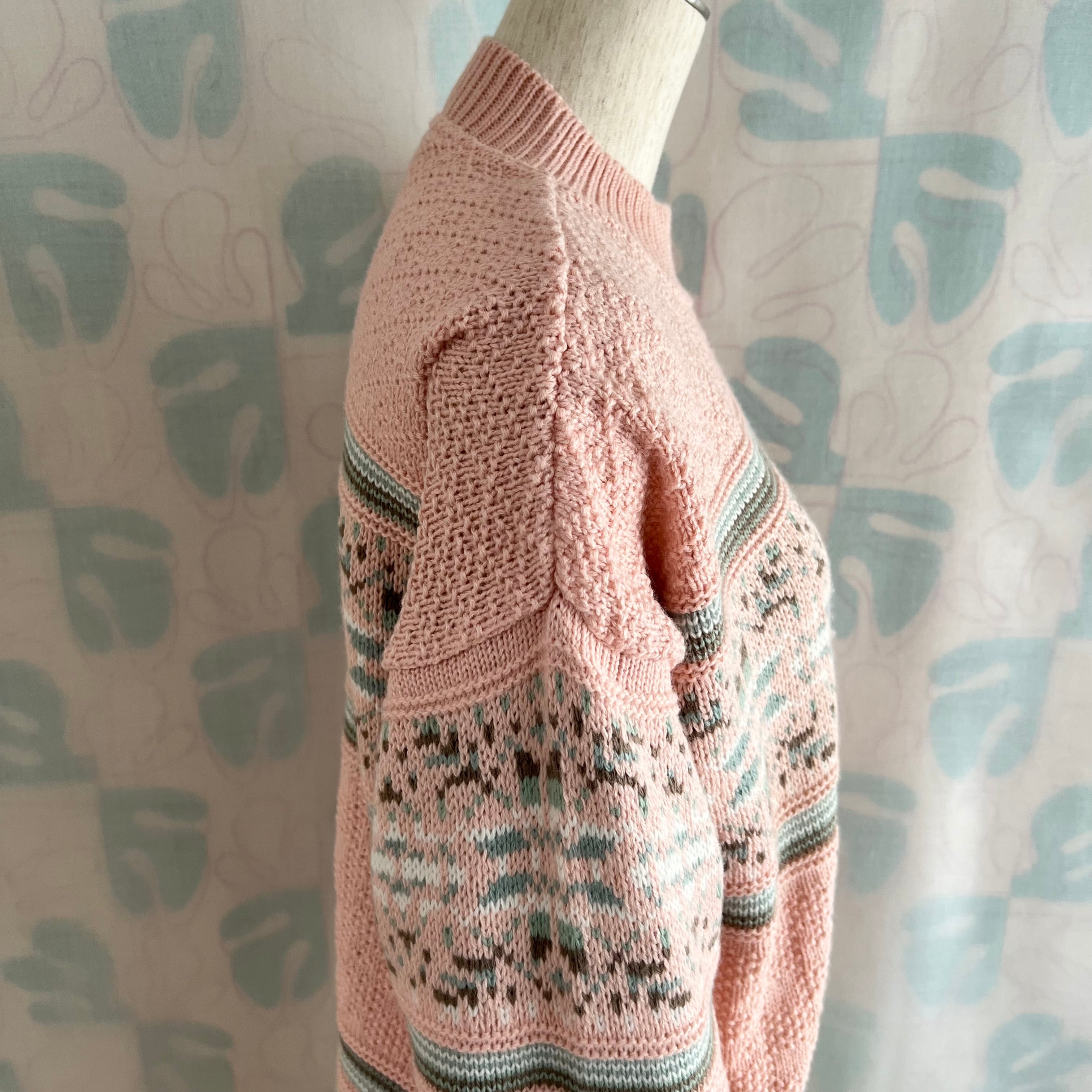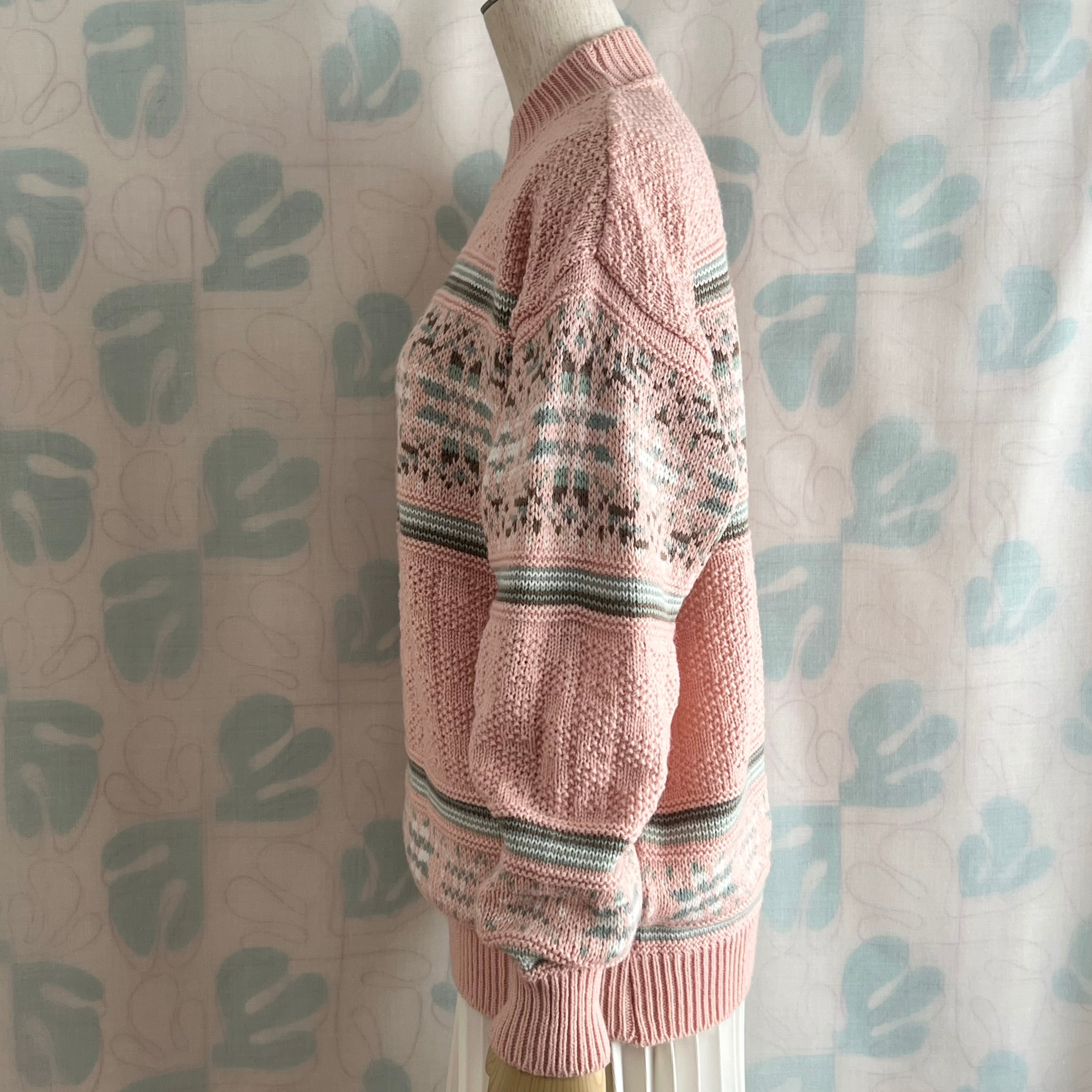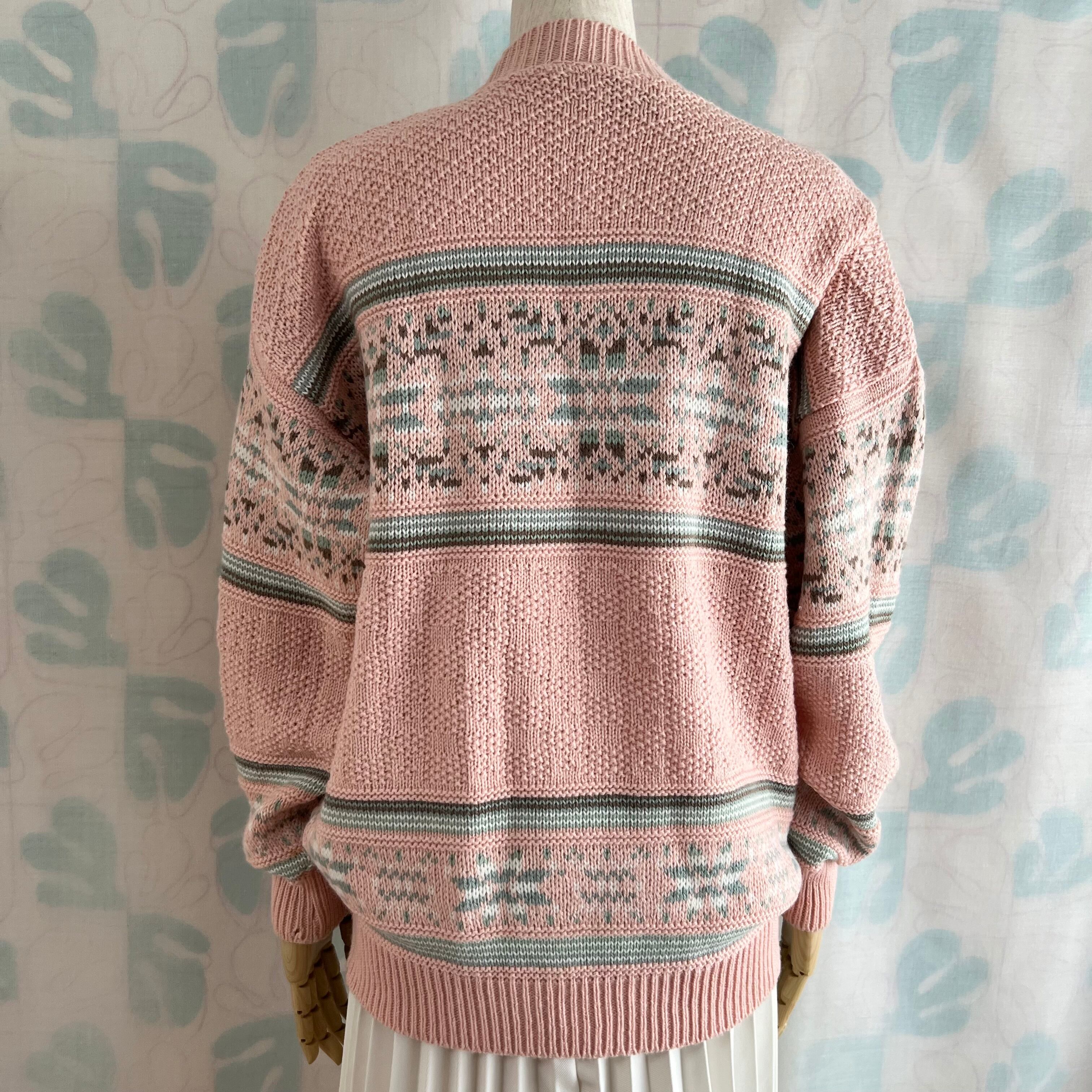 ユーズド ミックス編み地のピンクセーター。