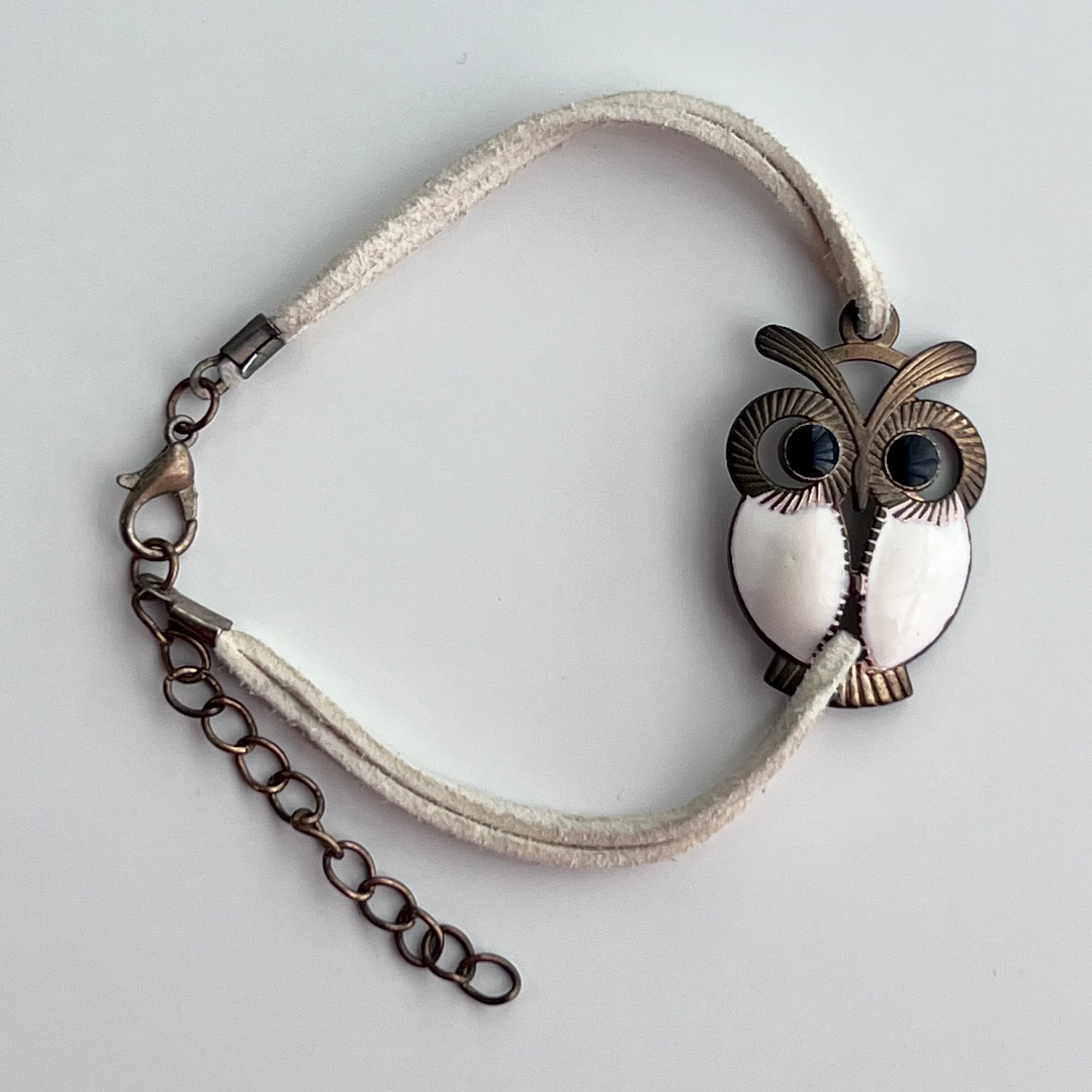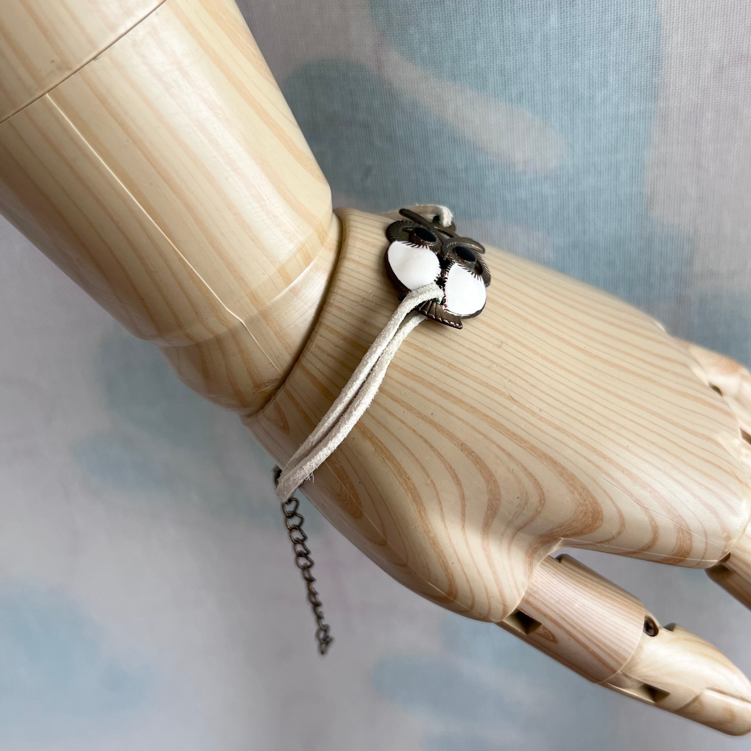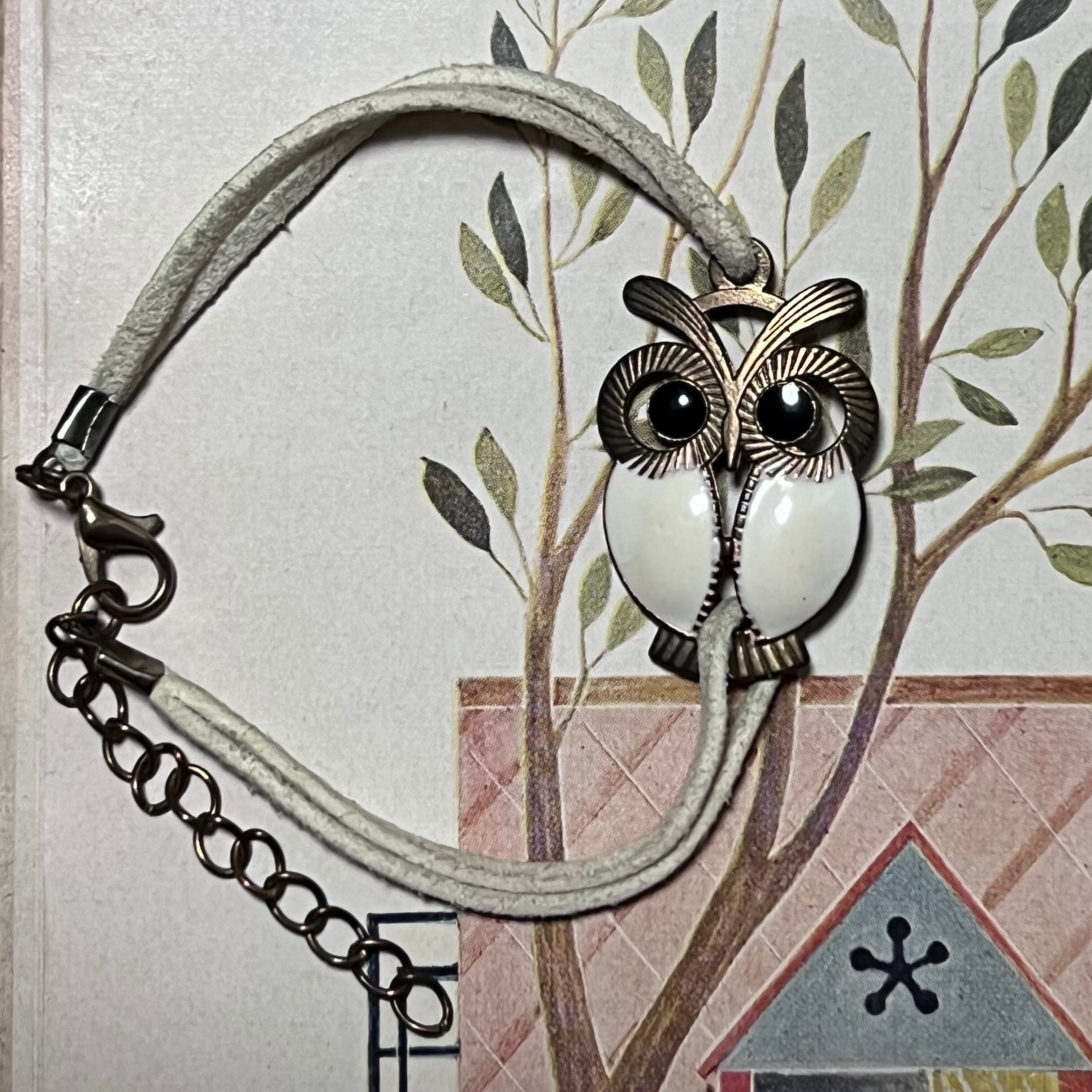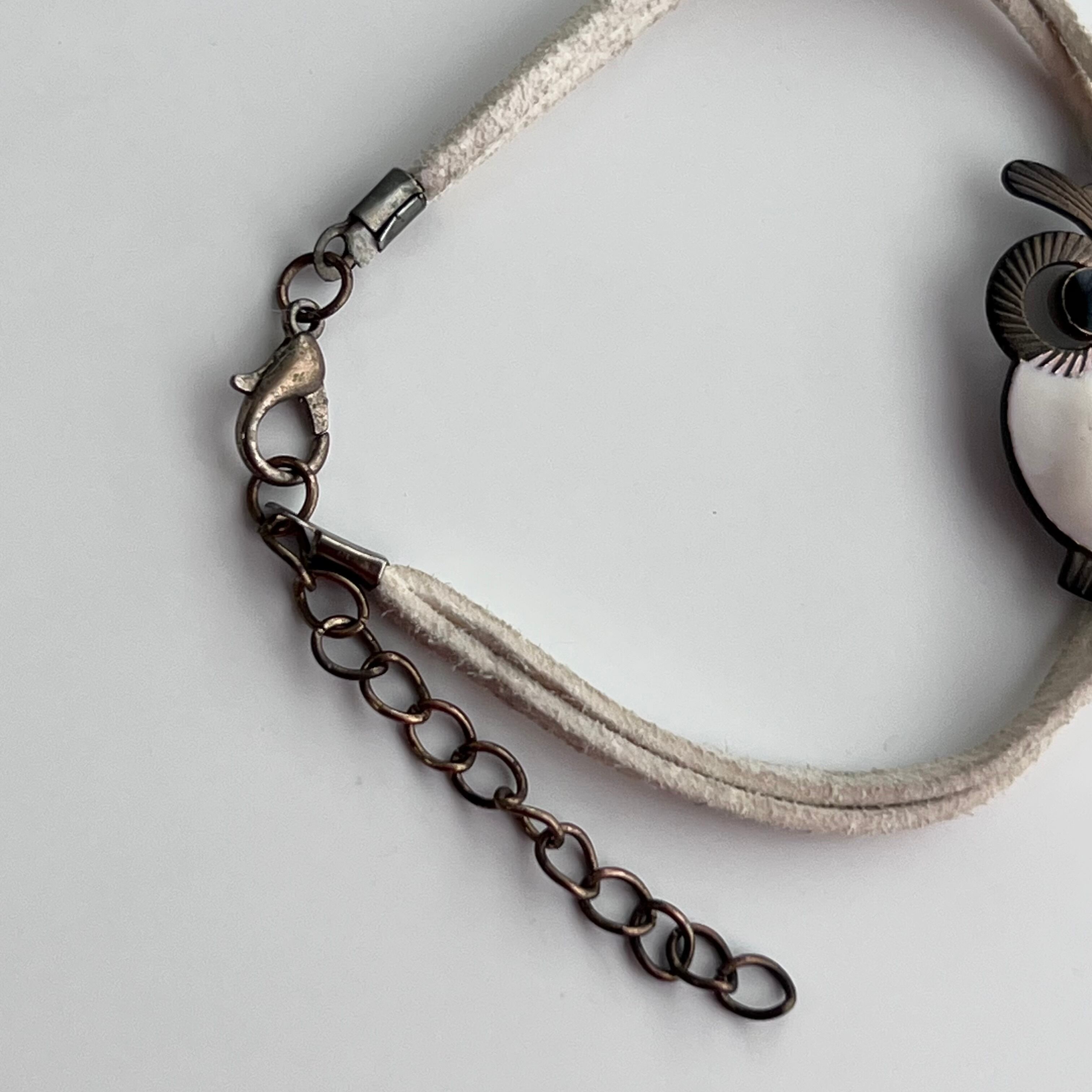 チェーン代わりの白いスエードレザーがフクロウさんを引き立てています。