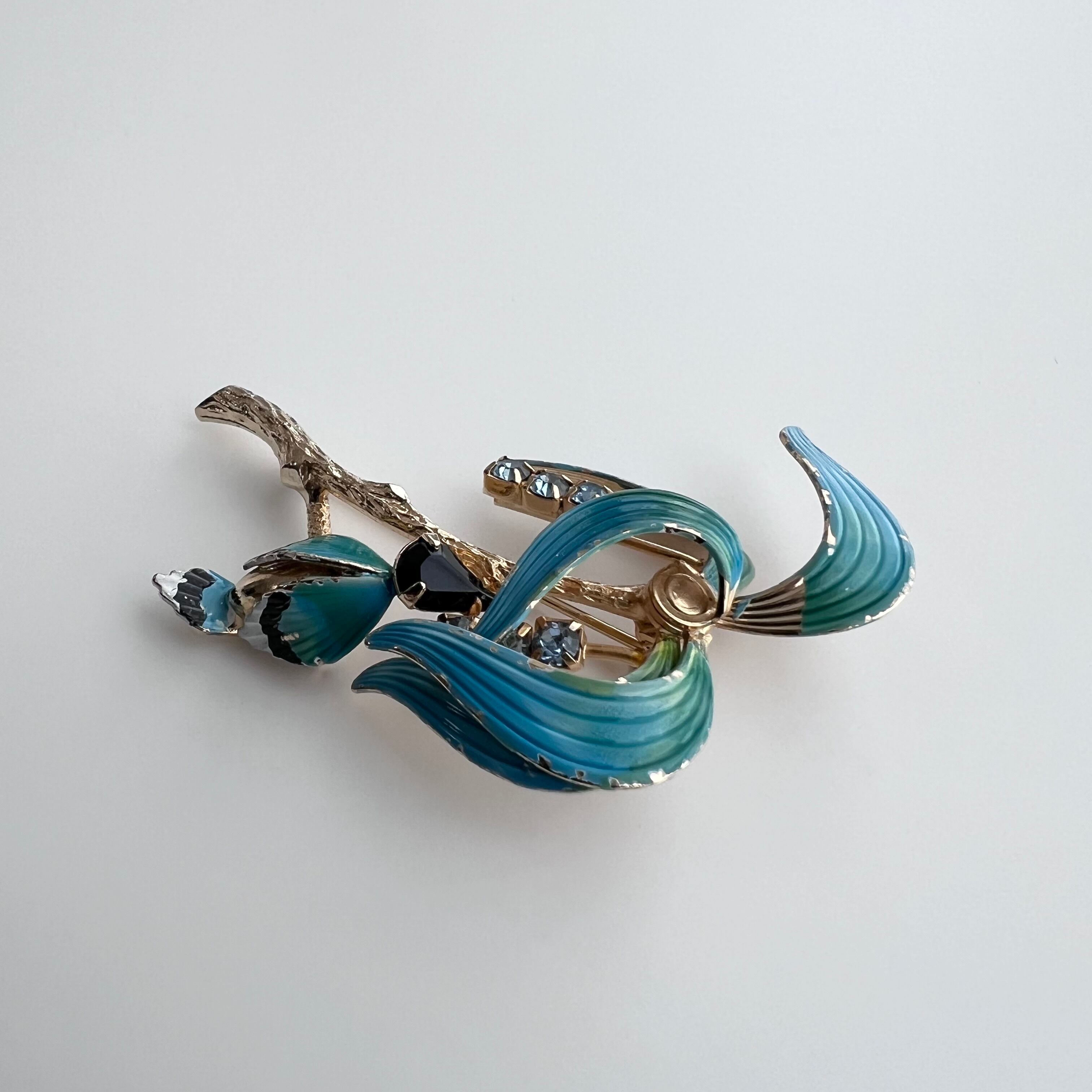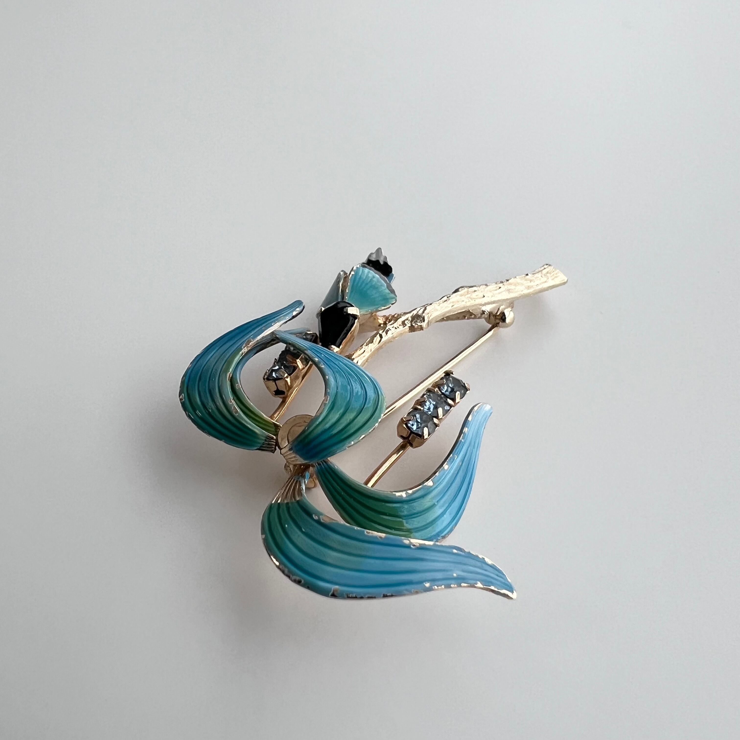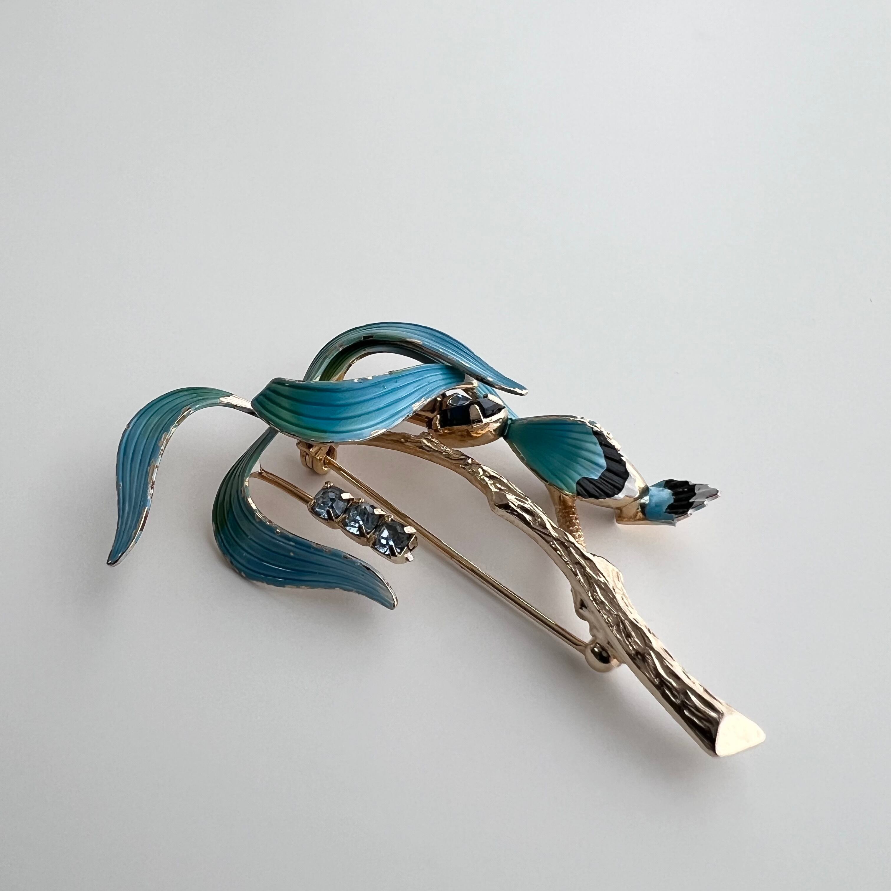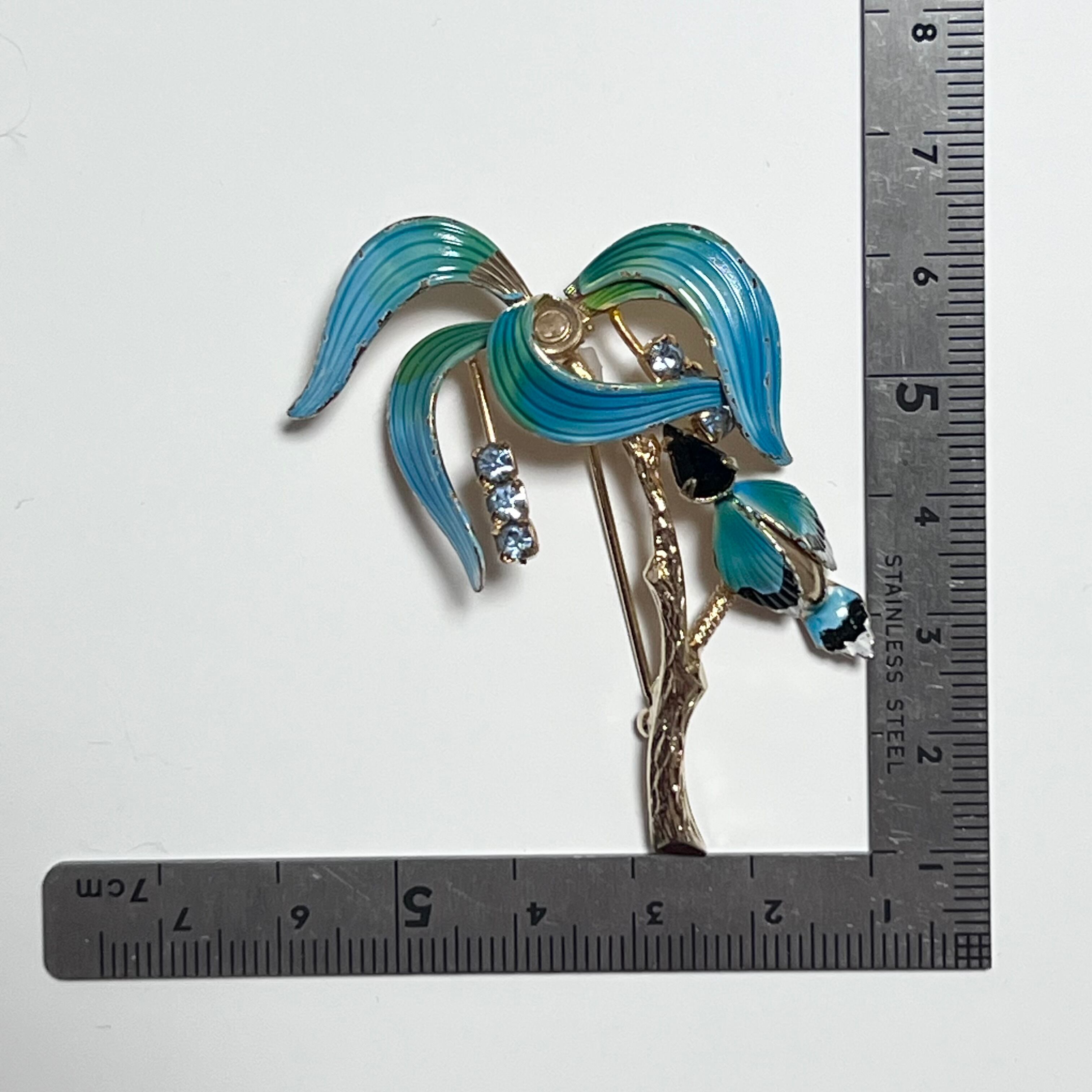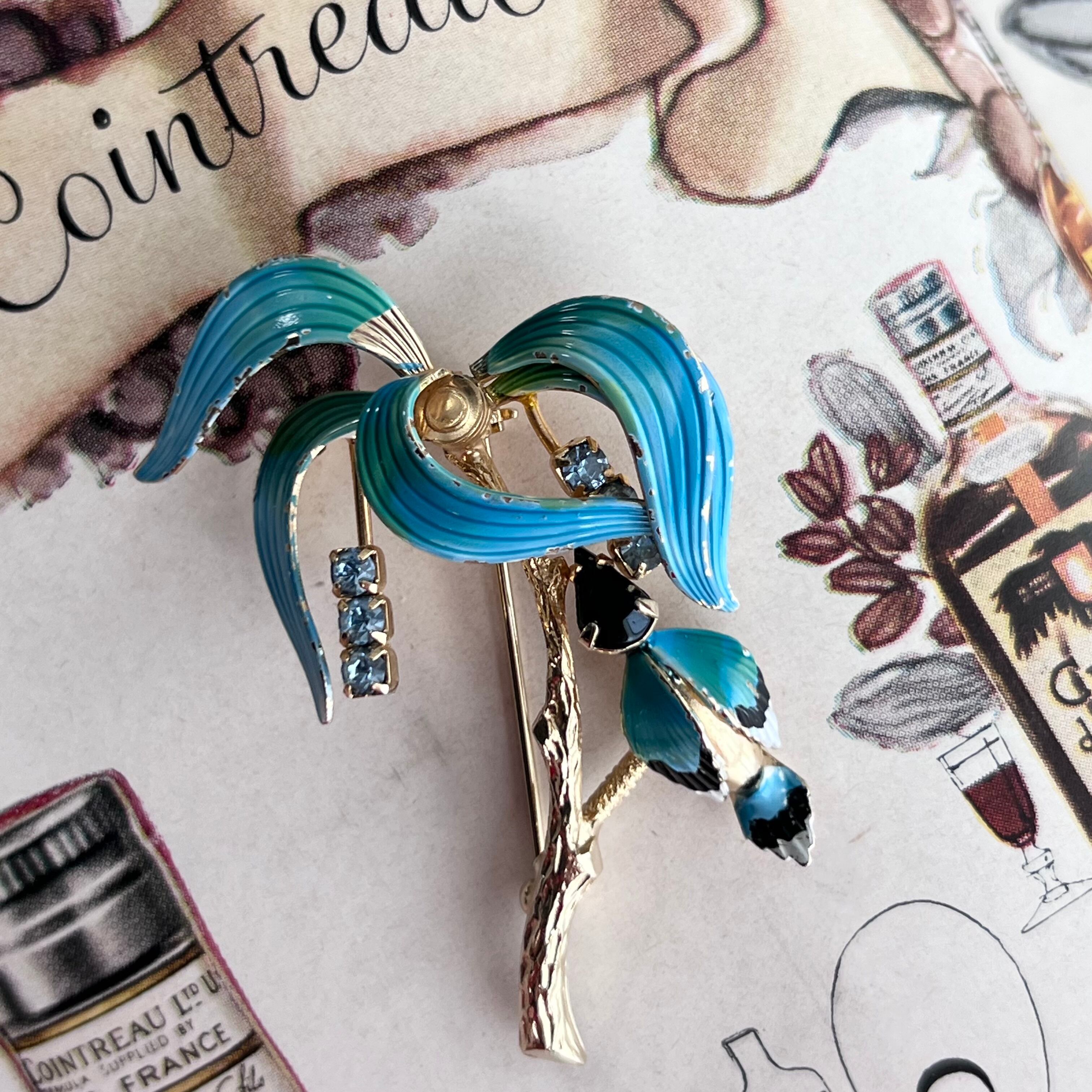 ヴィンテージ 南国の木と鳥のブローチ。