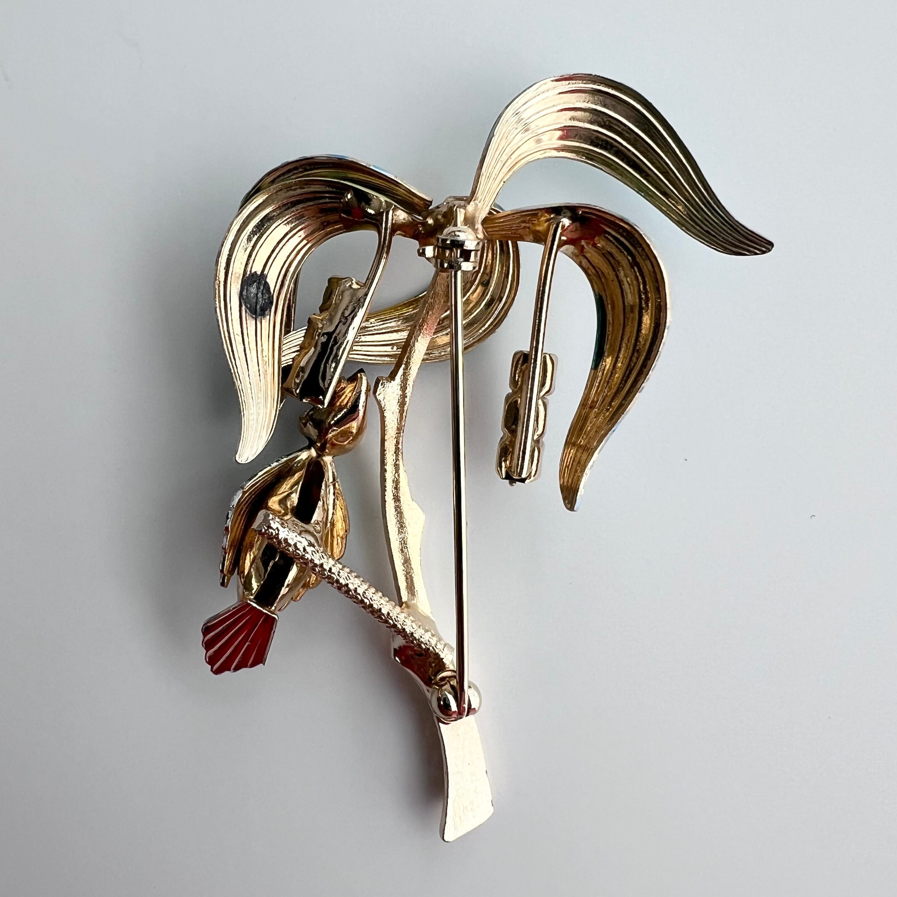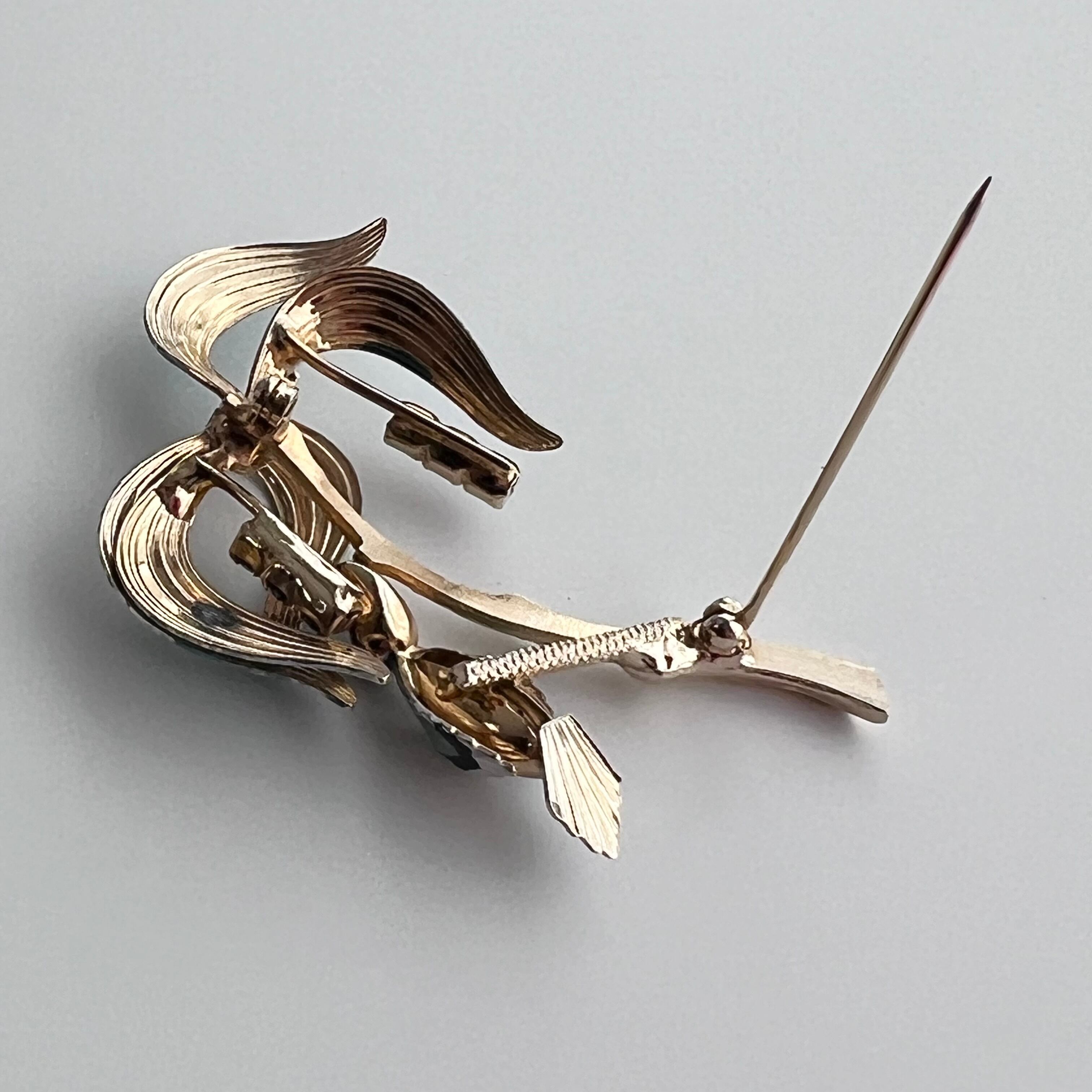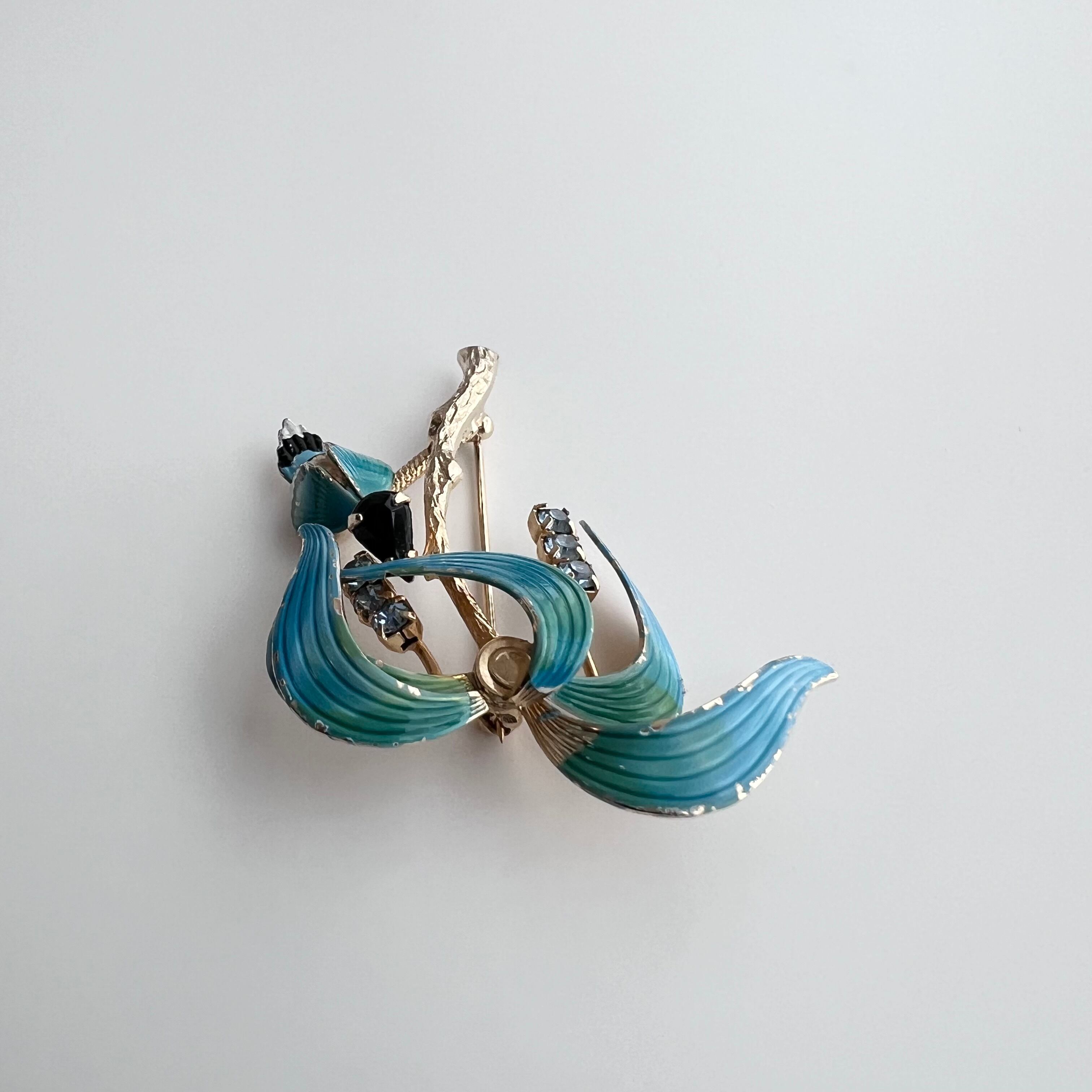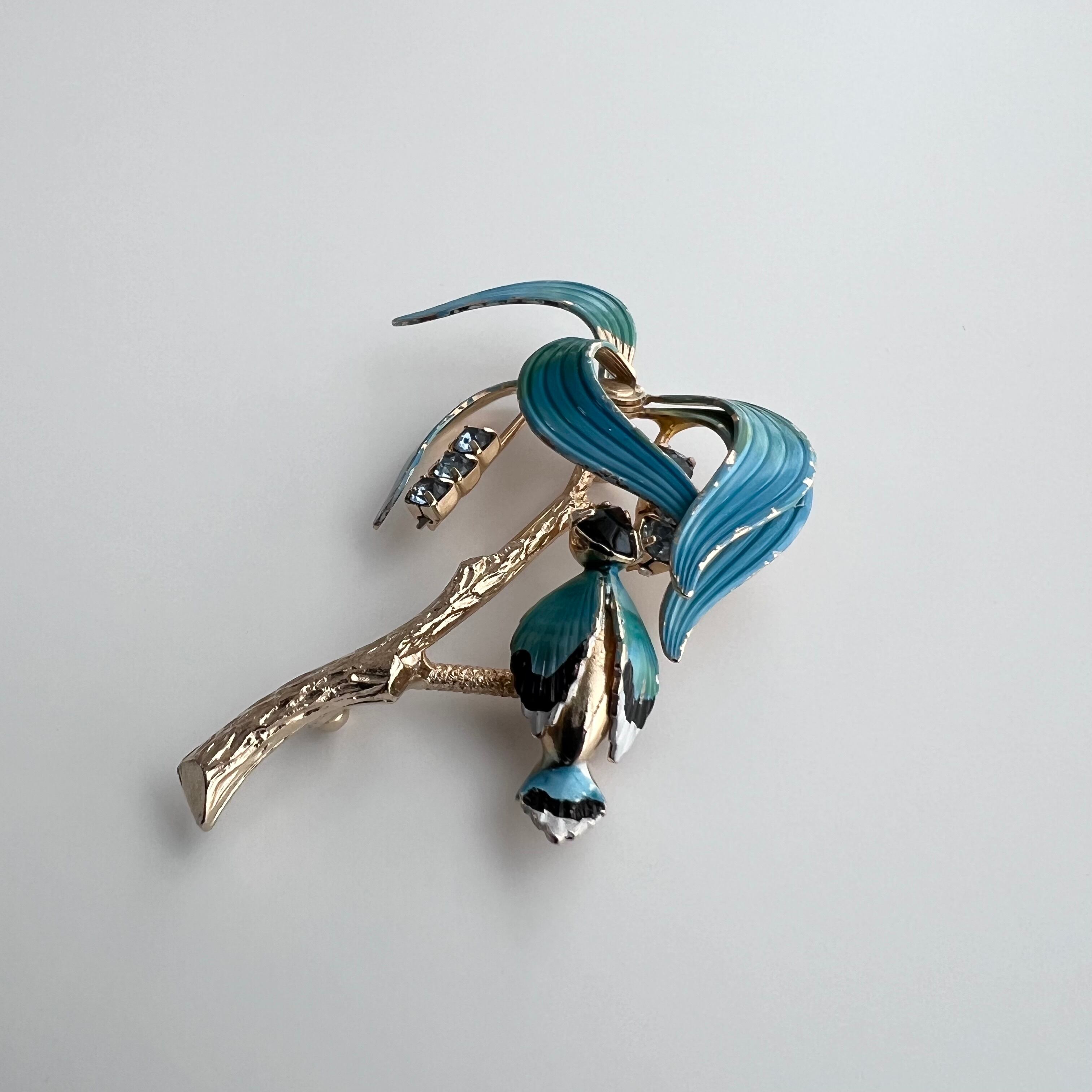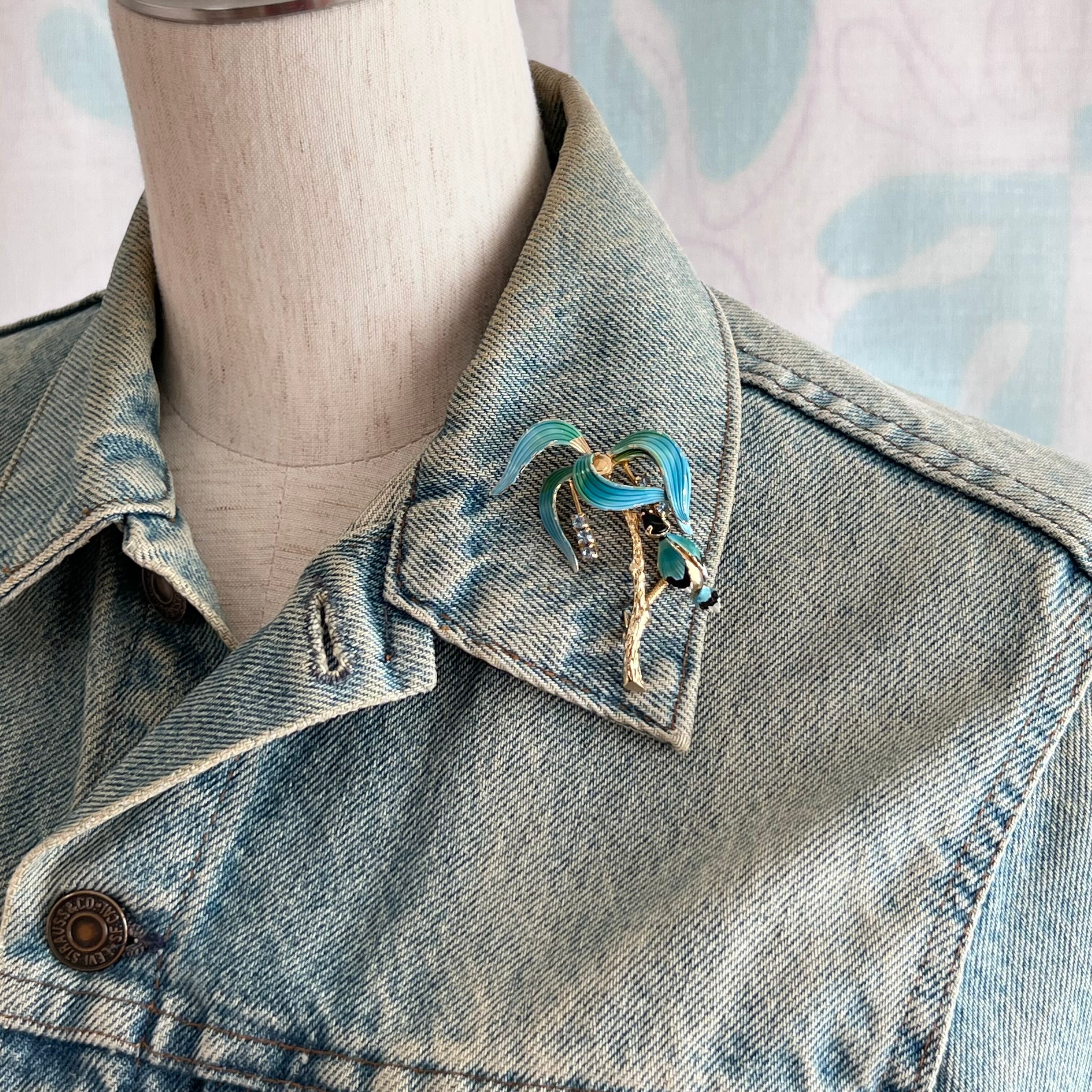 ヴィンテージ 南国の木と鳥のブローチ。