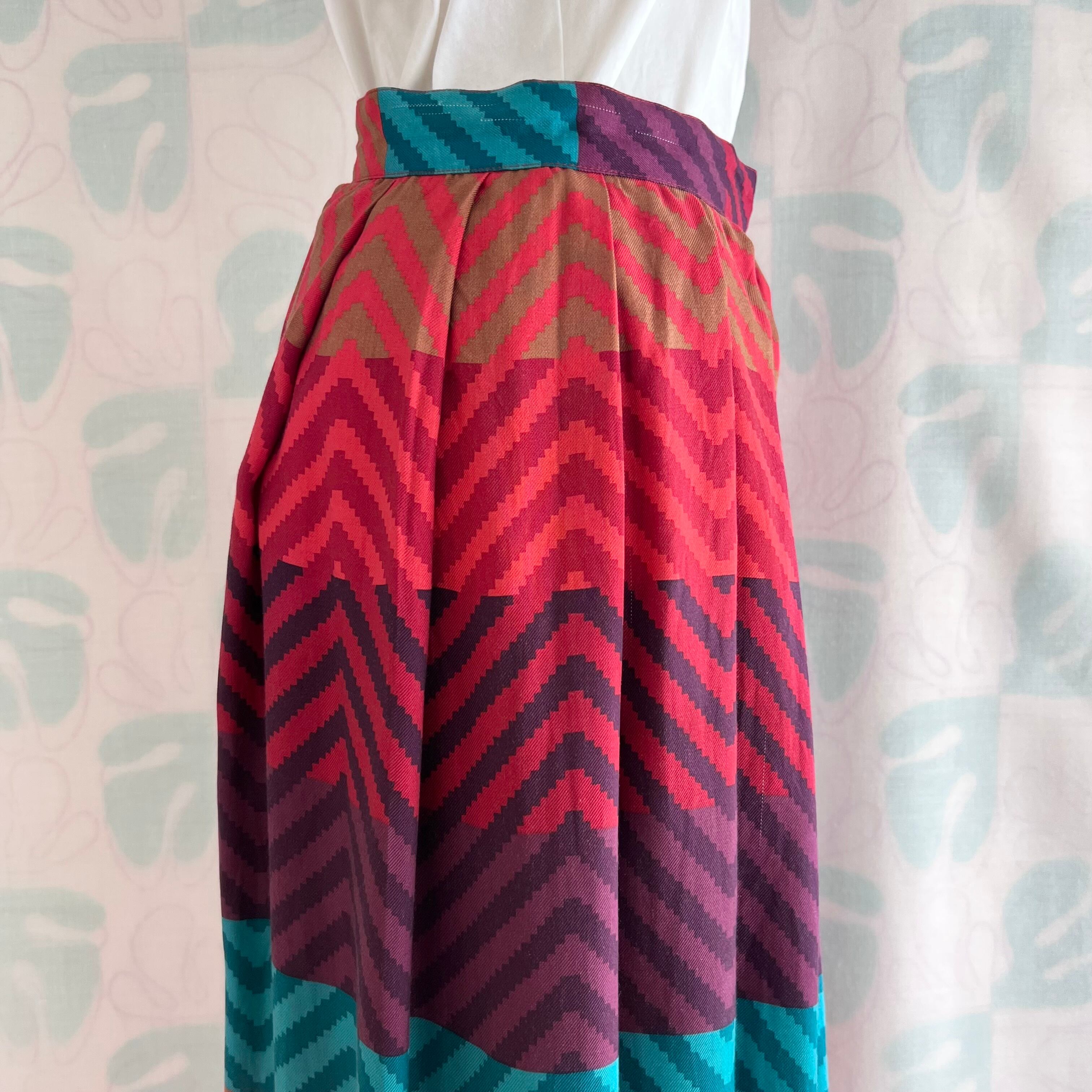 80's〜90's カラフルジグザグレーヨンスカート。