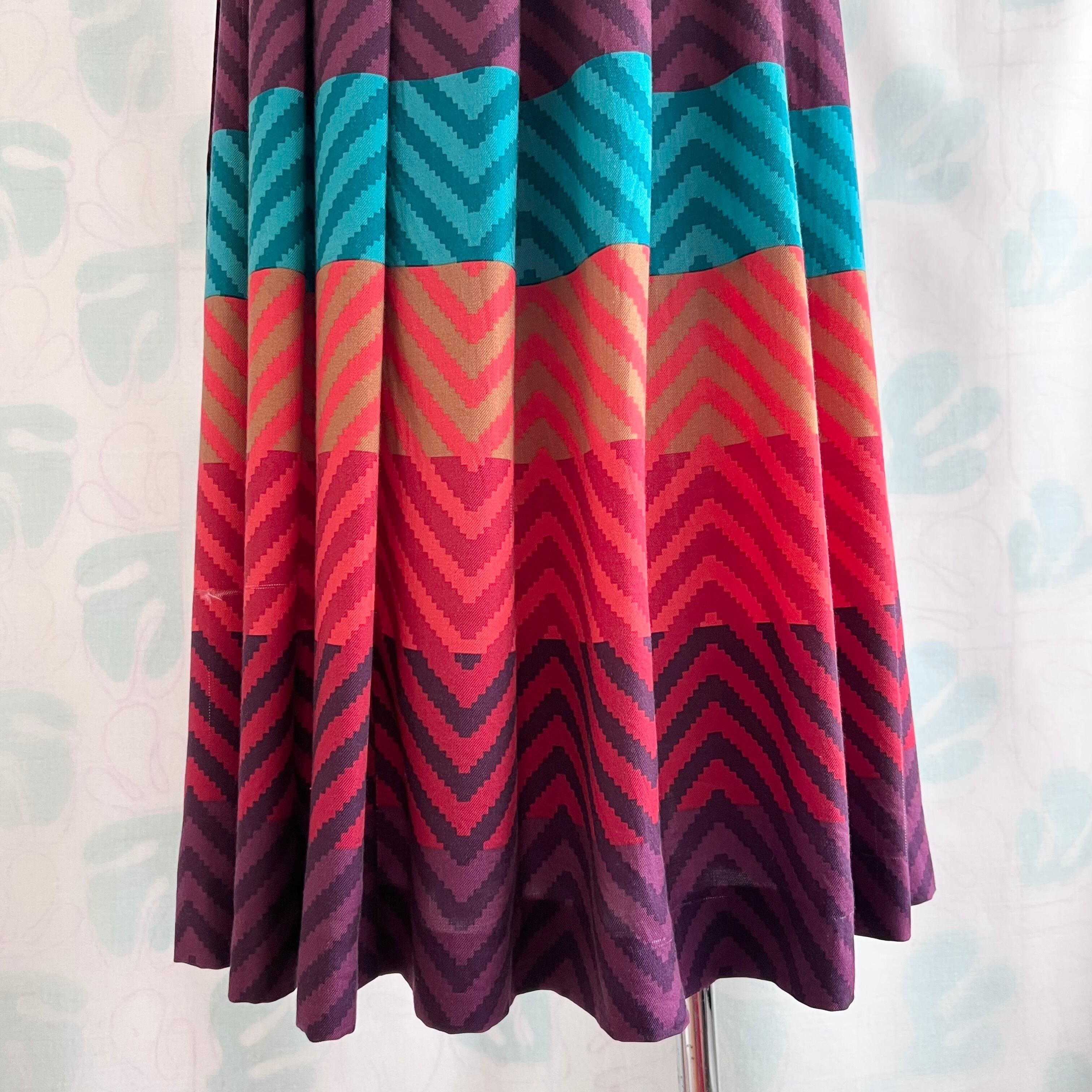 80's〜90's colorful zigzag rayon skirt