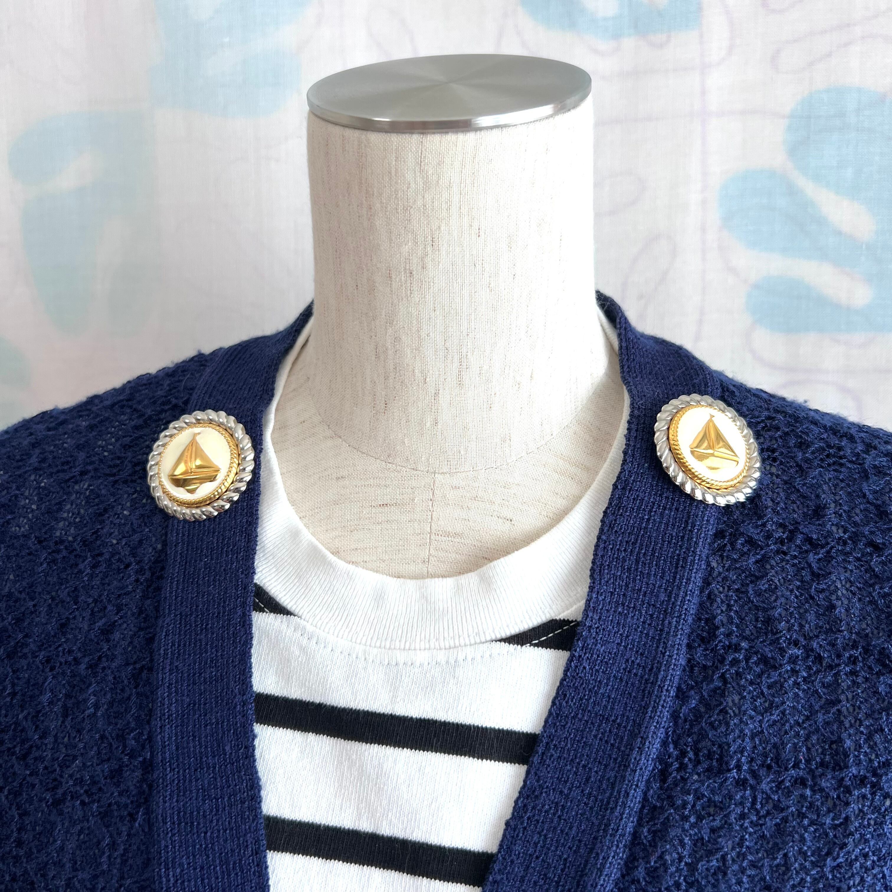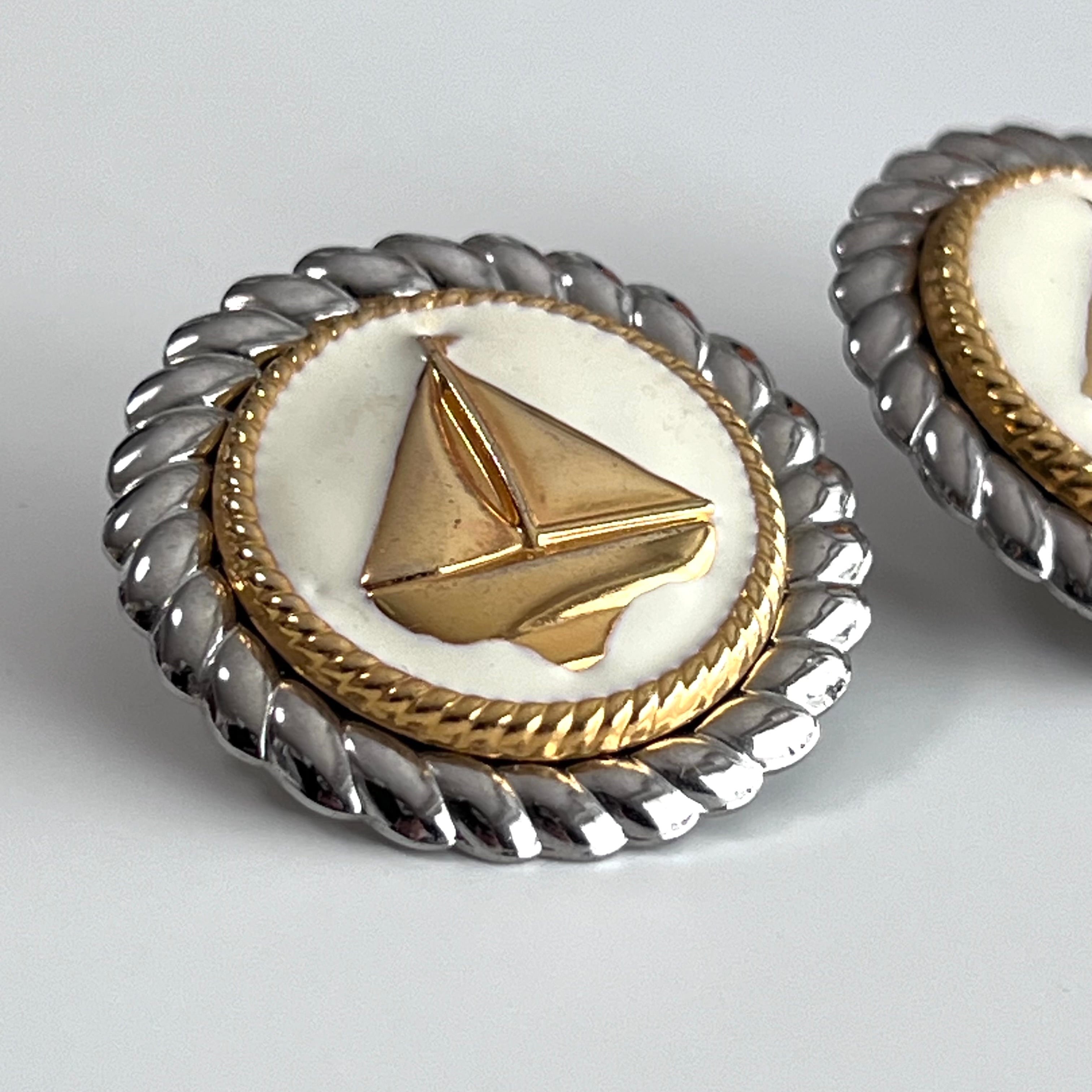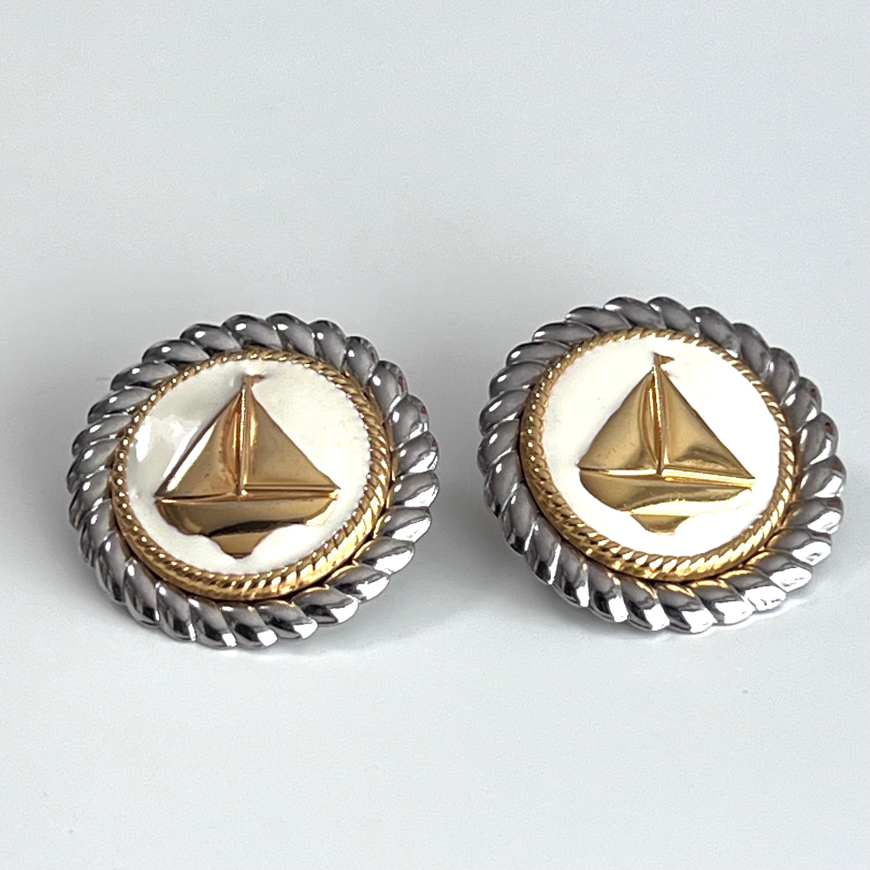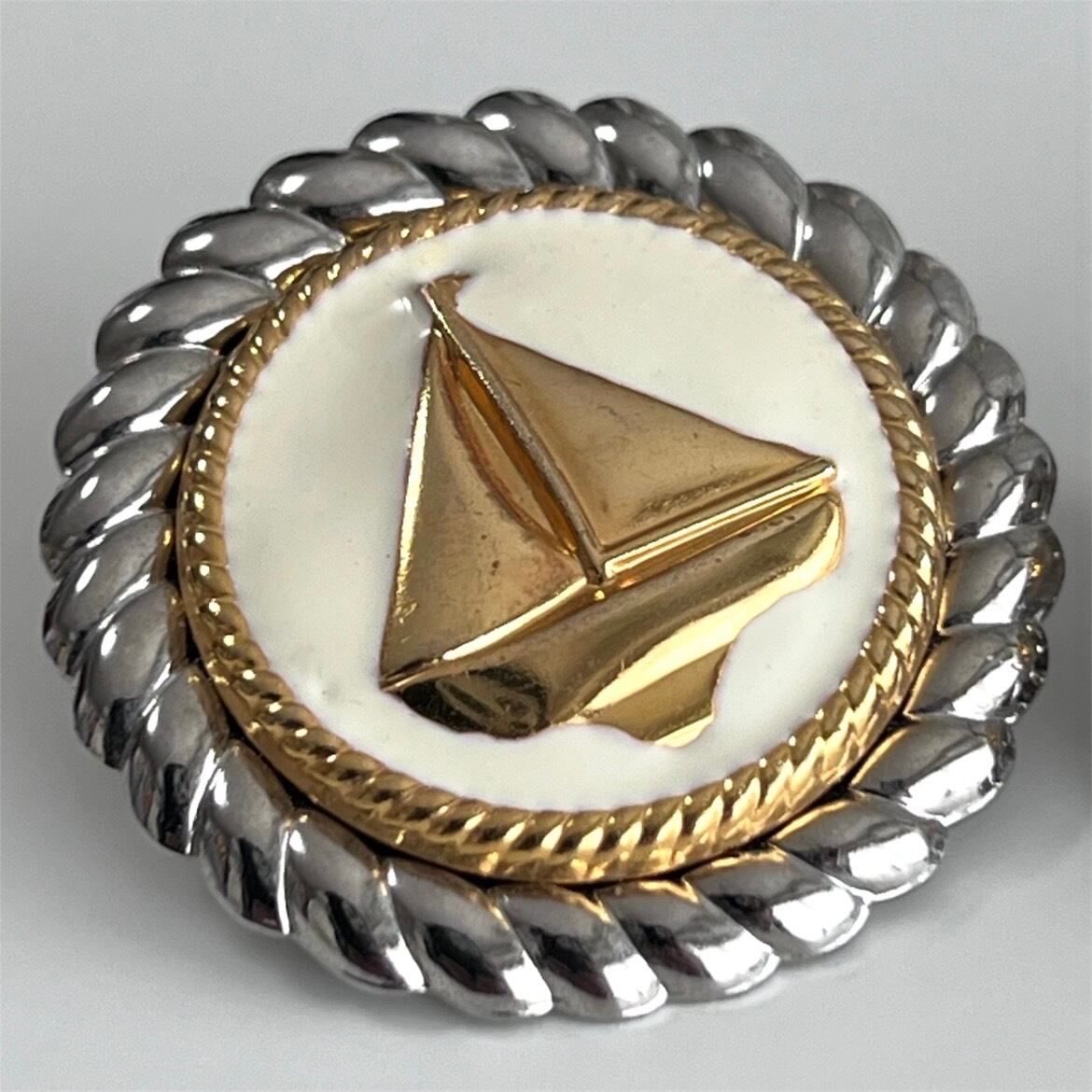 ロープを思わせるシルバーとゴールドの縁取りとゴールドトーンのヨット。