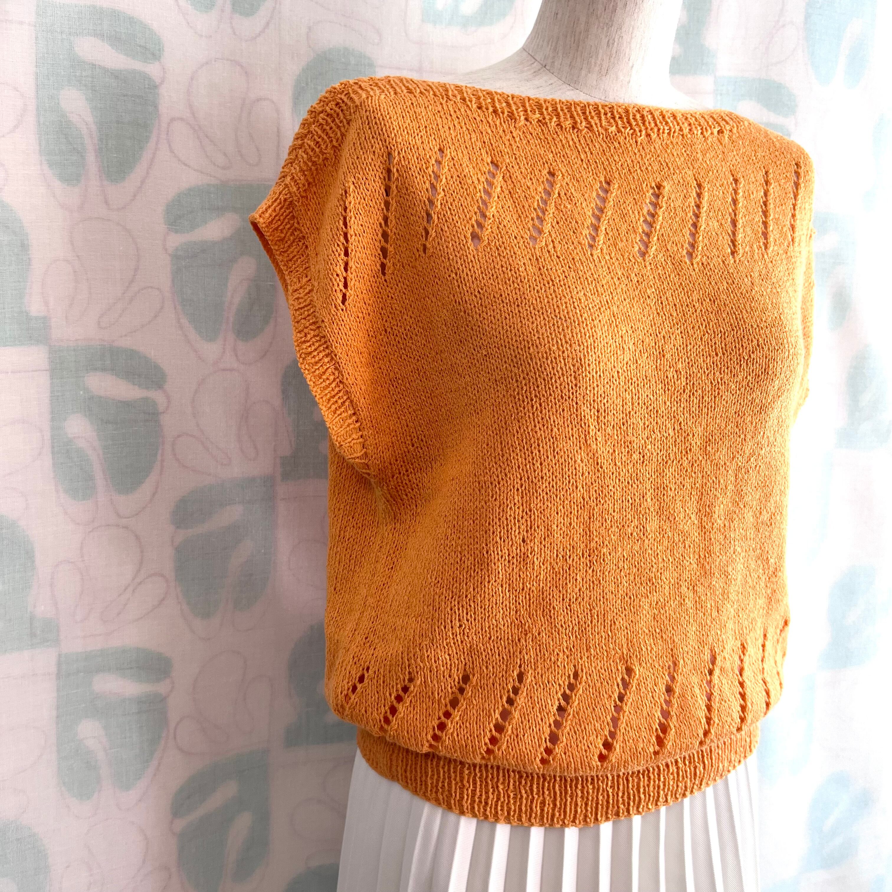 ヴィンテージ オレンジ フレンチスリーブ サマーニット。