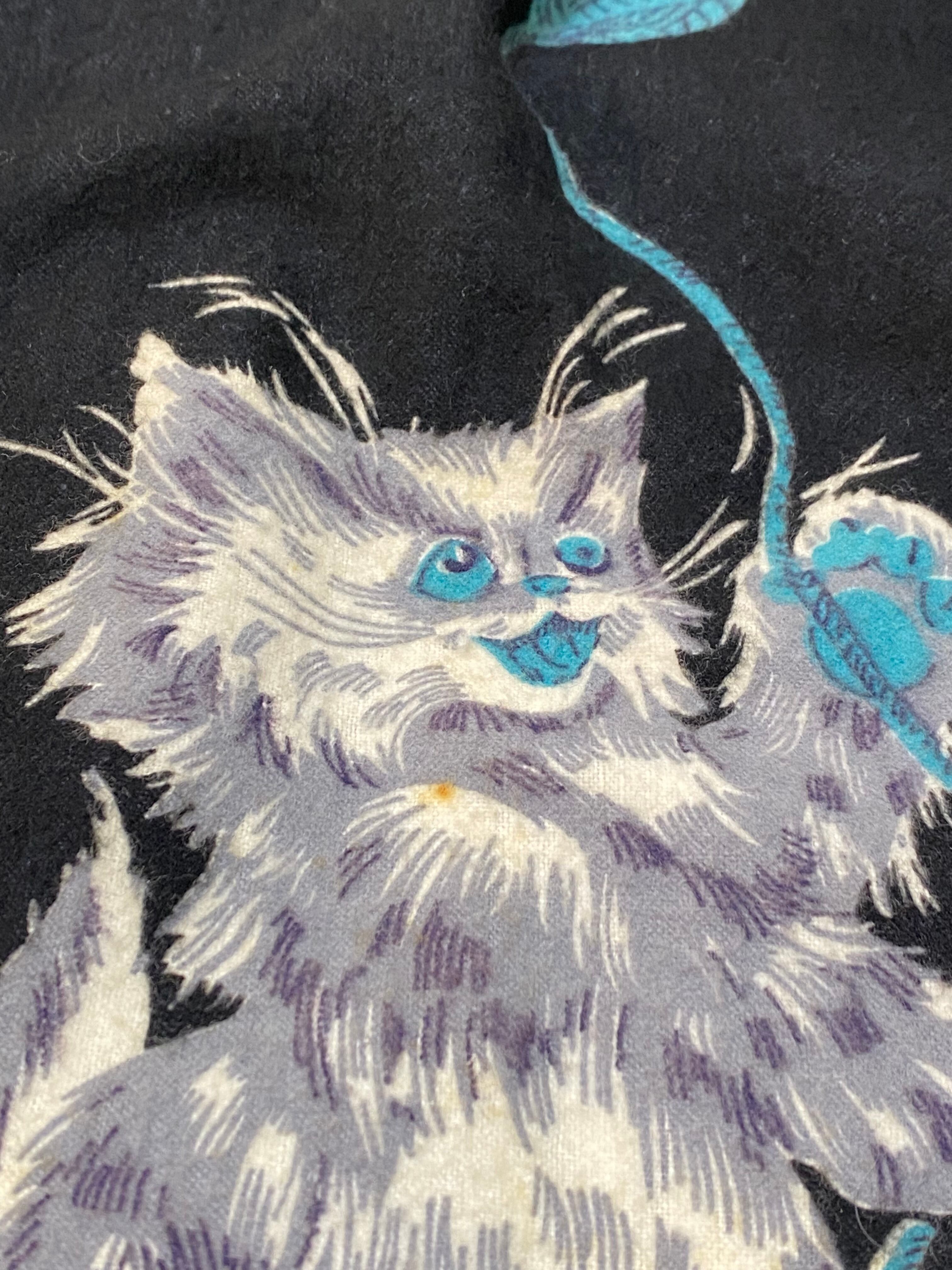 {コンディション}後ろ左側、ネコの顔にシミあります。(最後の画像でご確認下さい。)それ以外は使用感はありますが、ほぼ良いコンディションです。